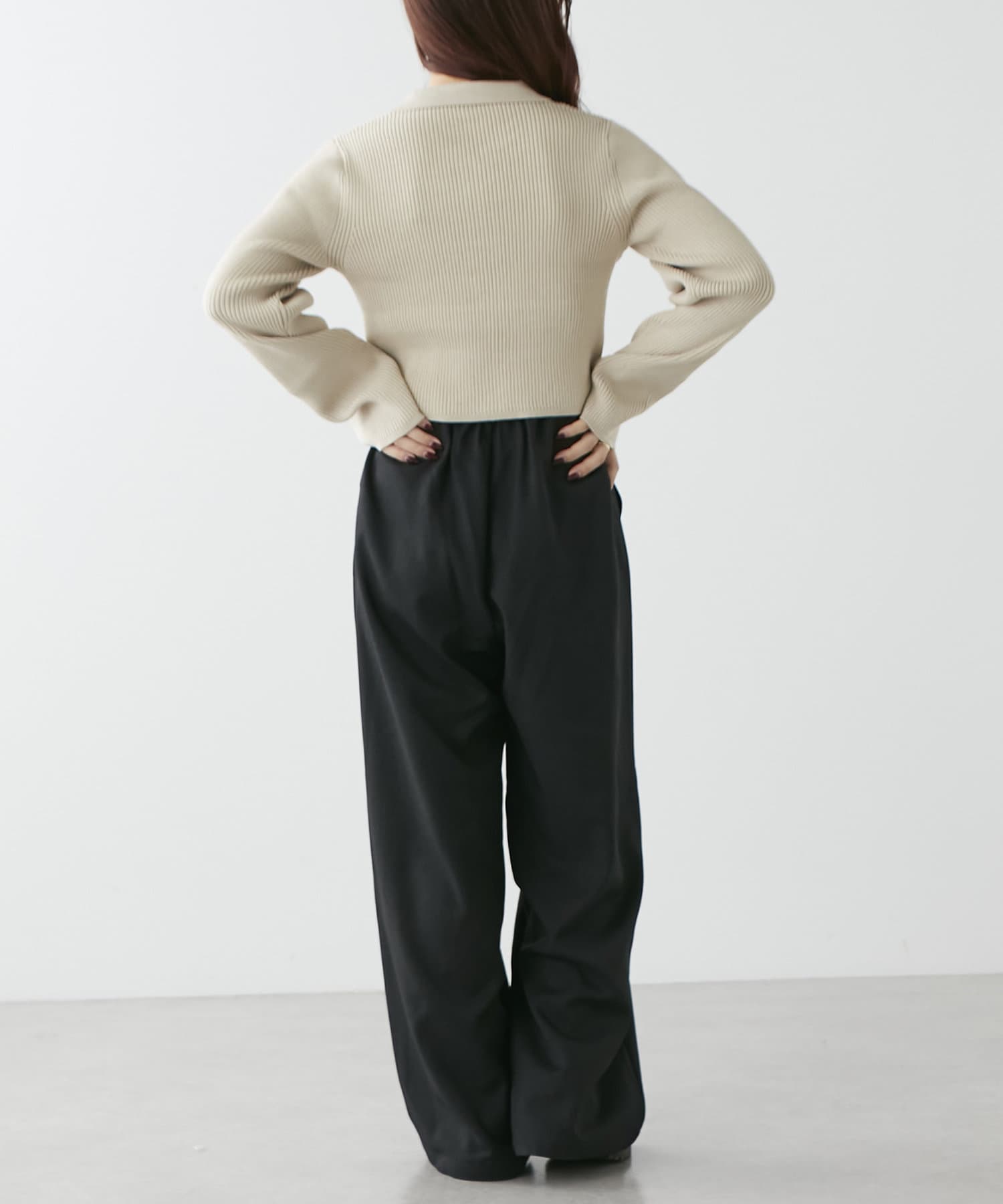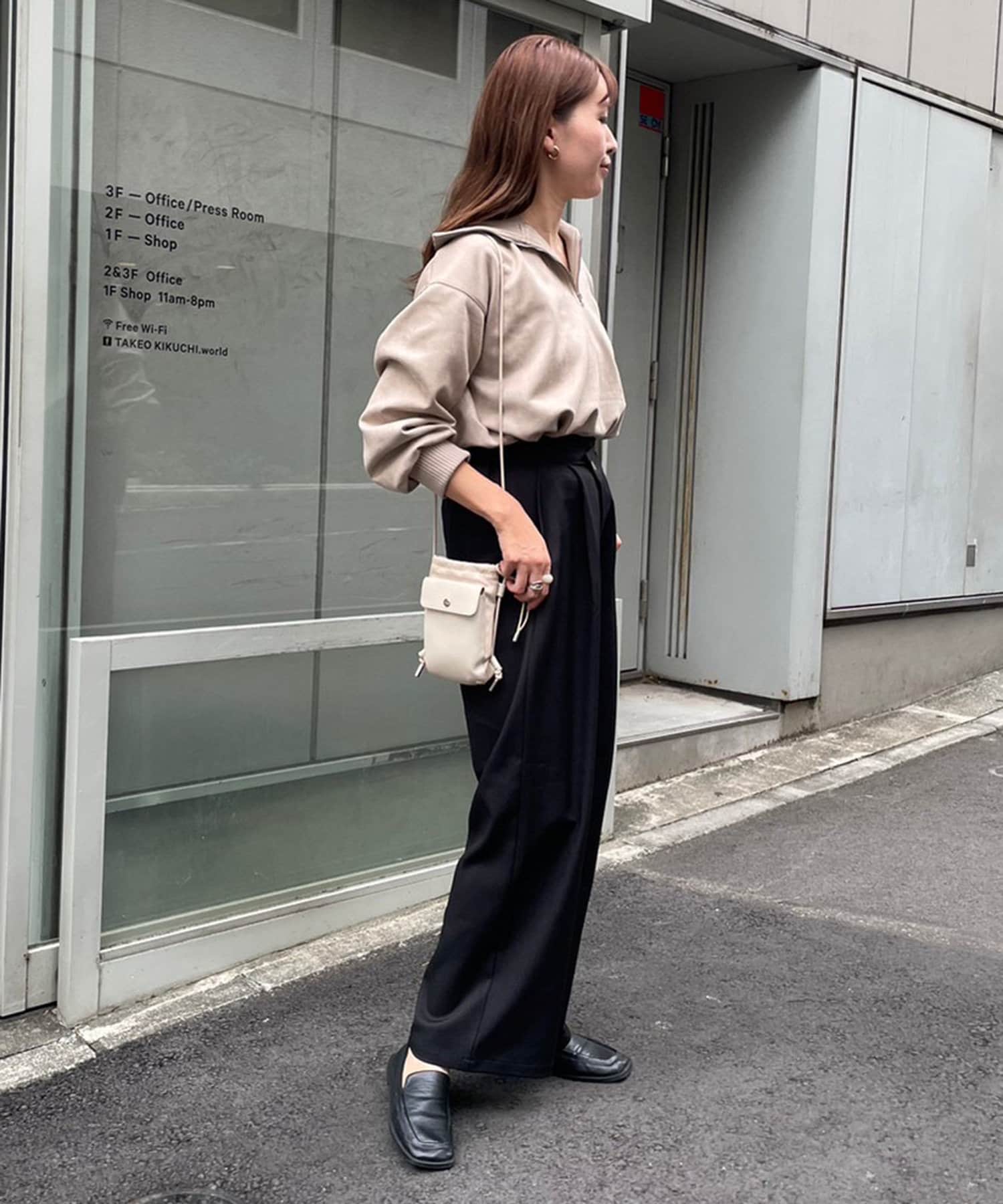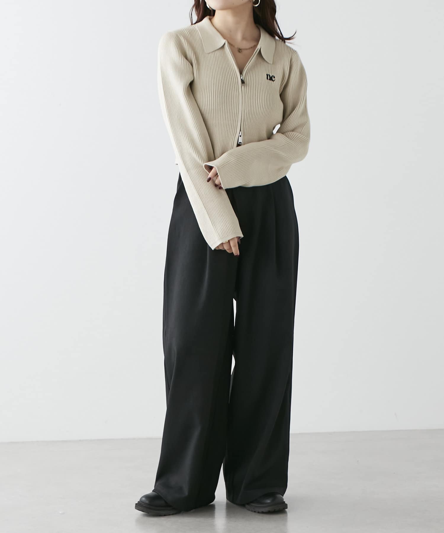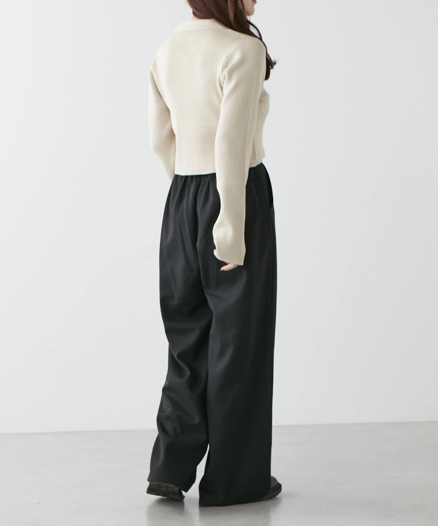 ・タイトめなトップスニットと合わせてオフィスカジュアルスタイリングも叶います。