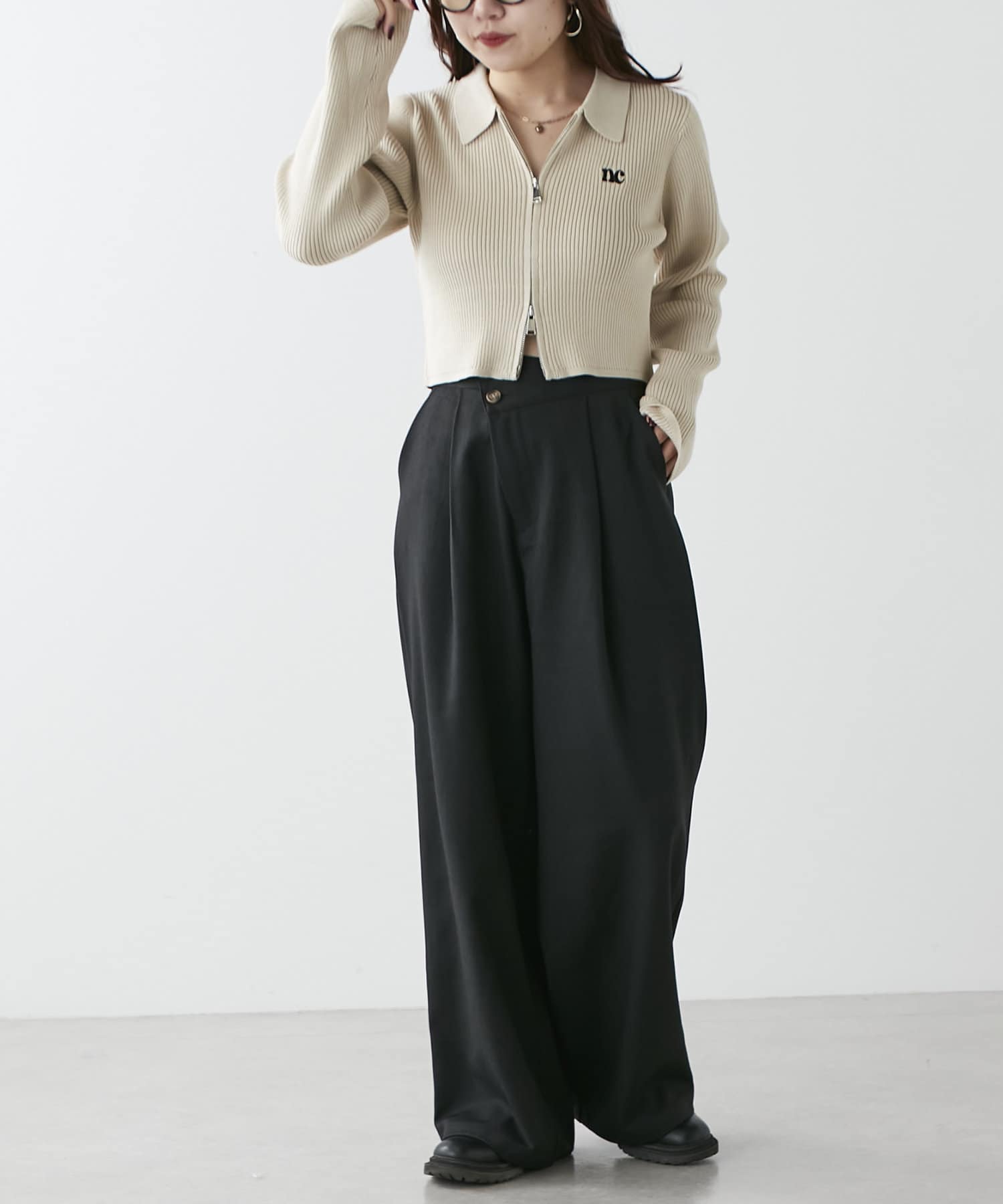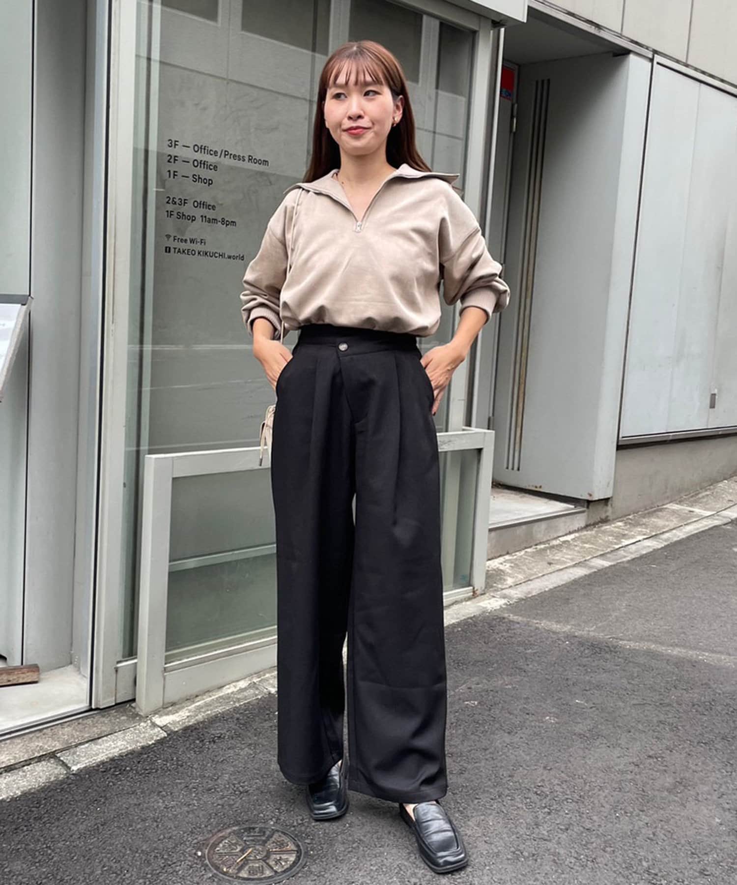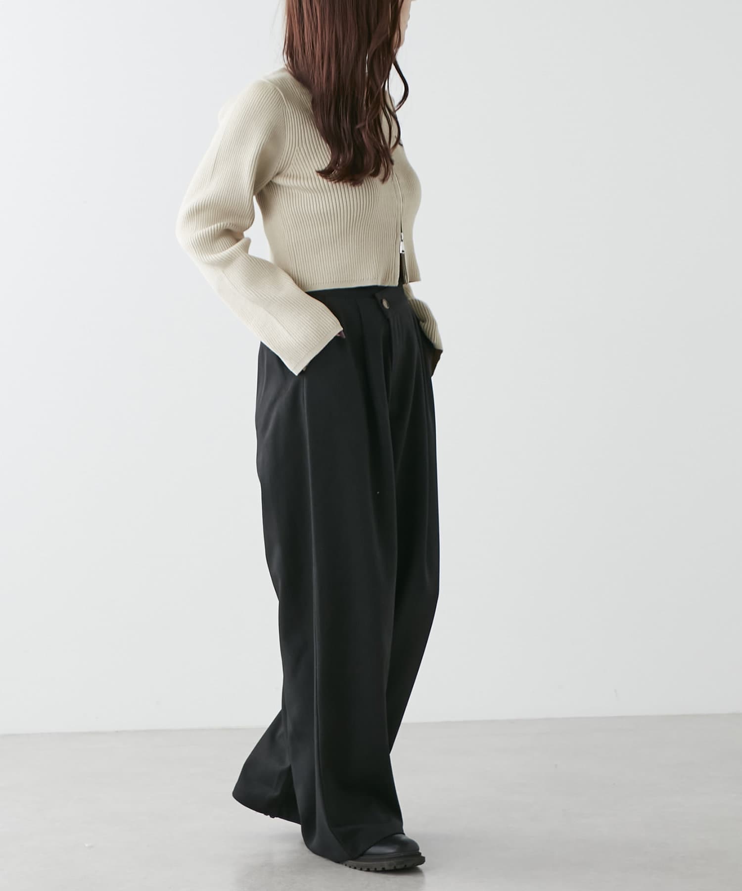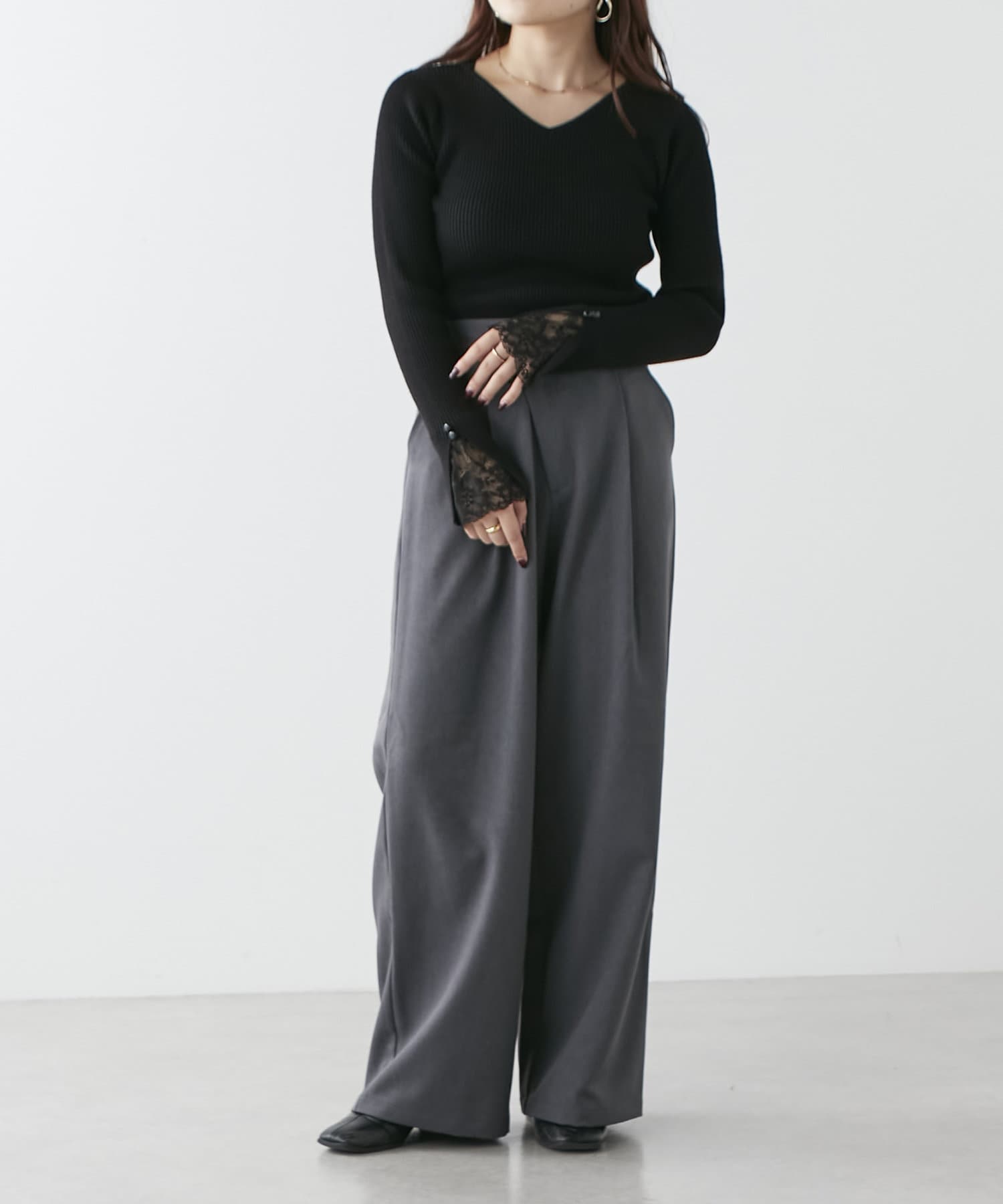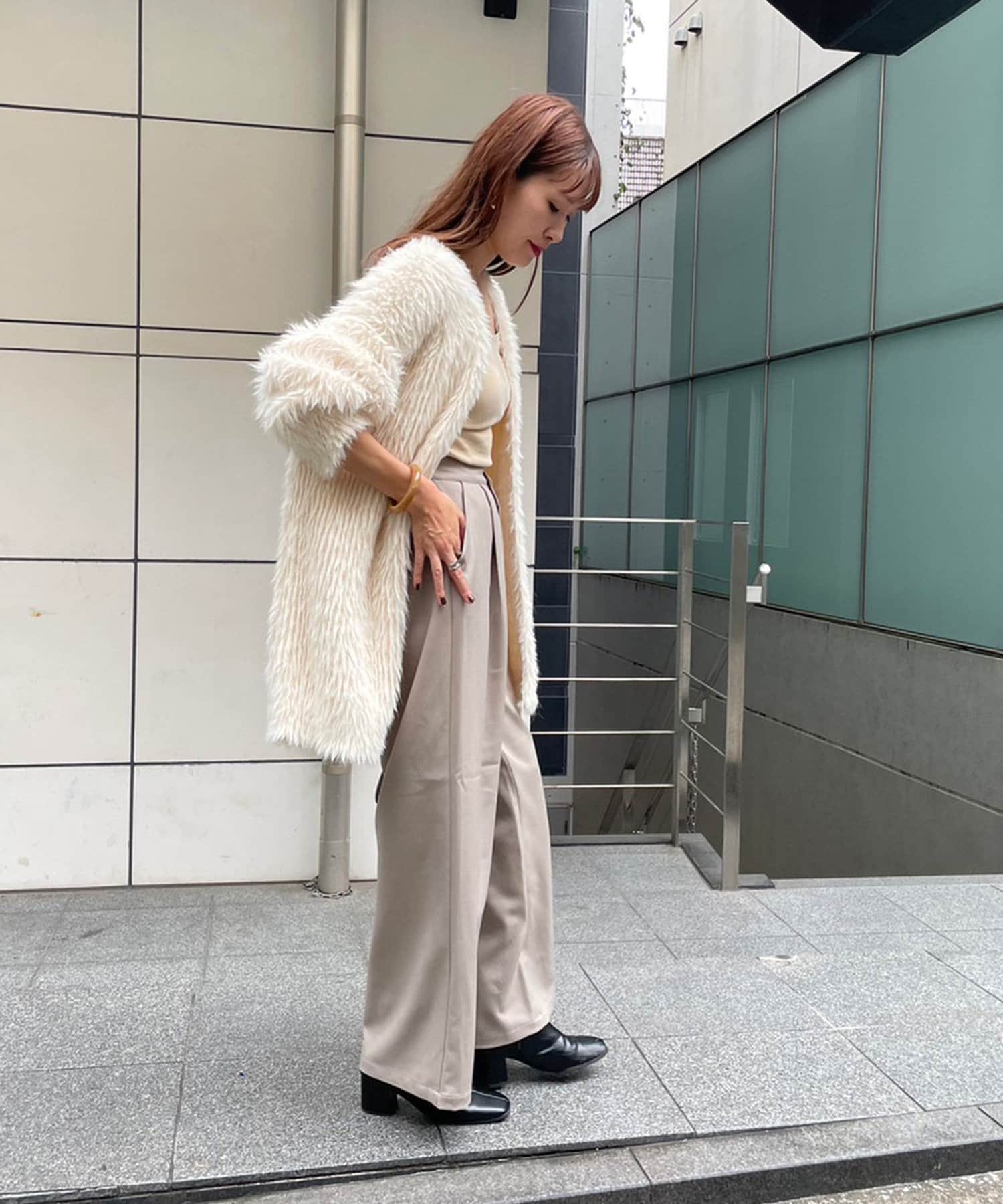 ・タイトめなトップスニットと合わせてオフィスカジュアルスタイリングも叶います。