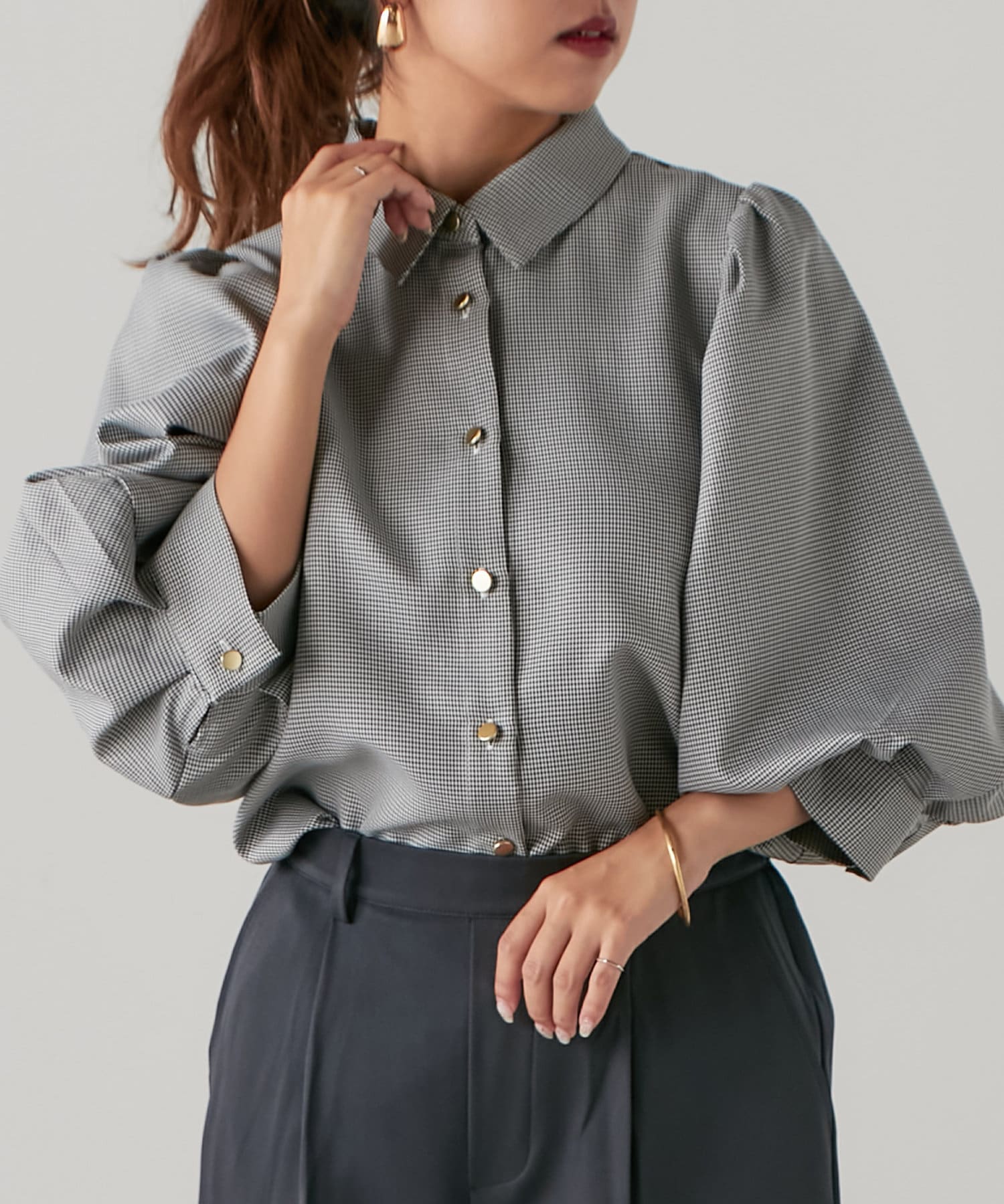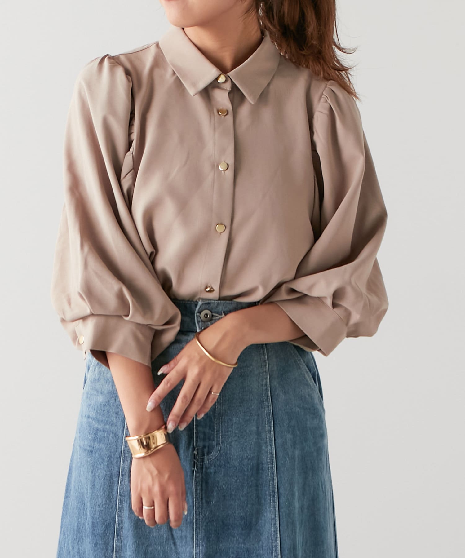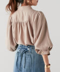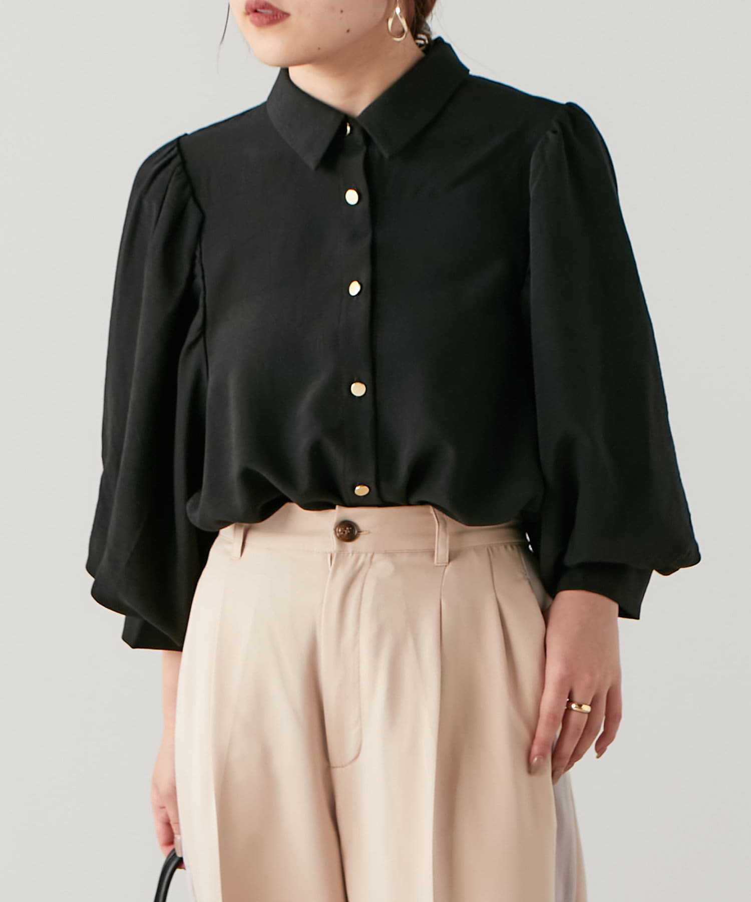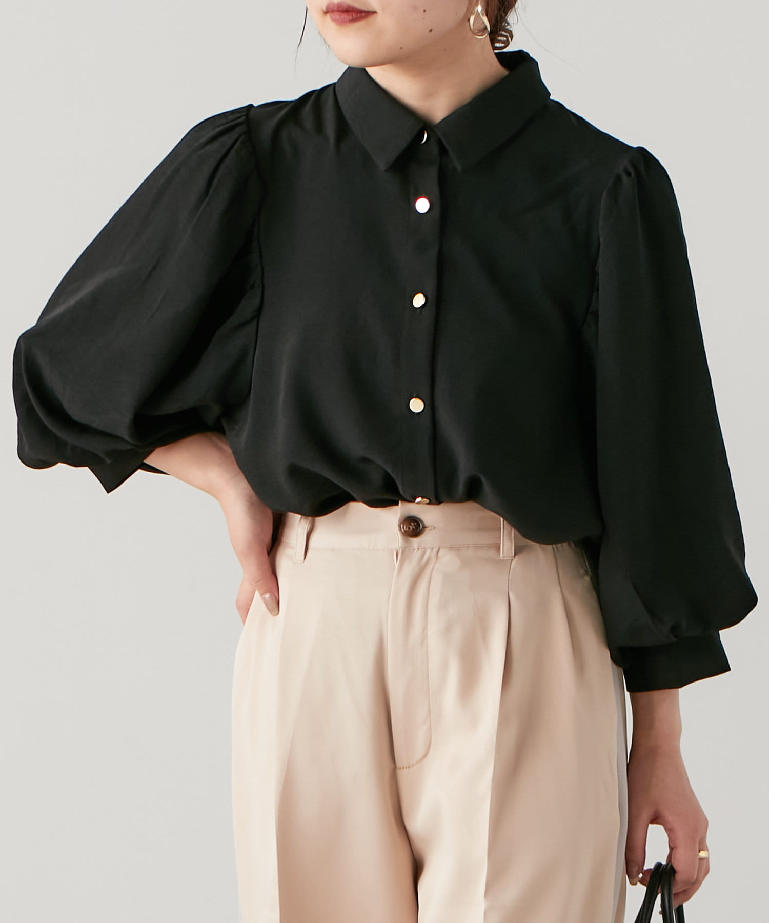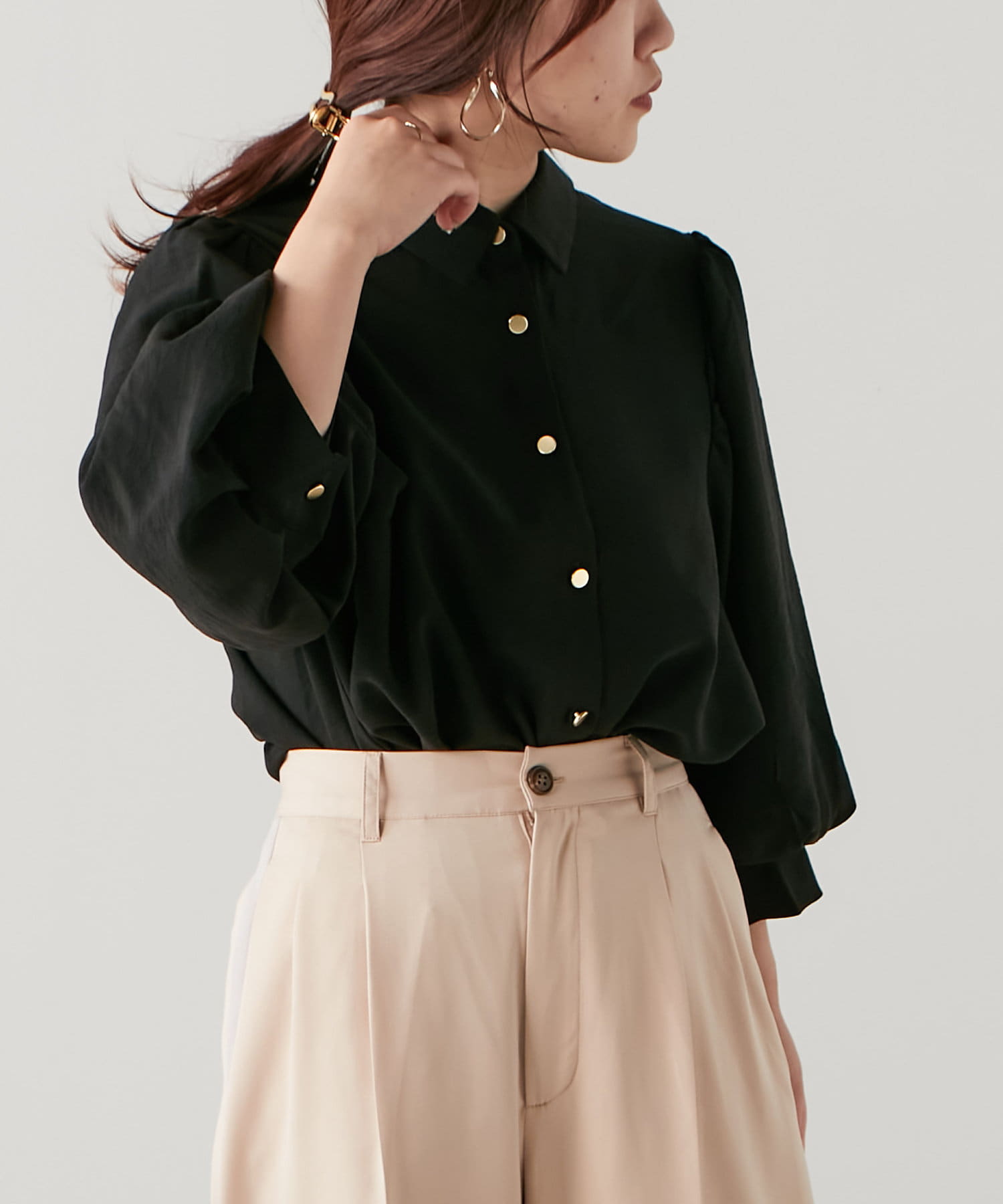 袖ボリューム金ボタンブラウス