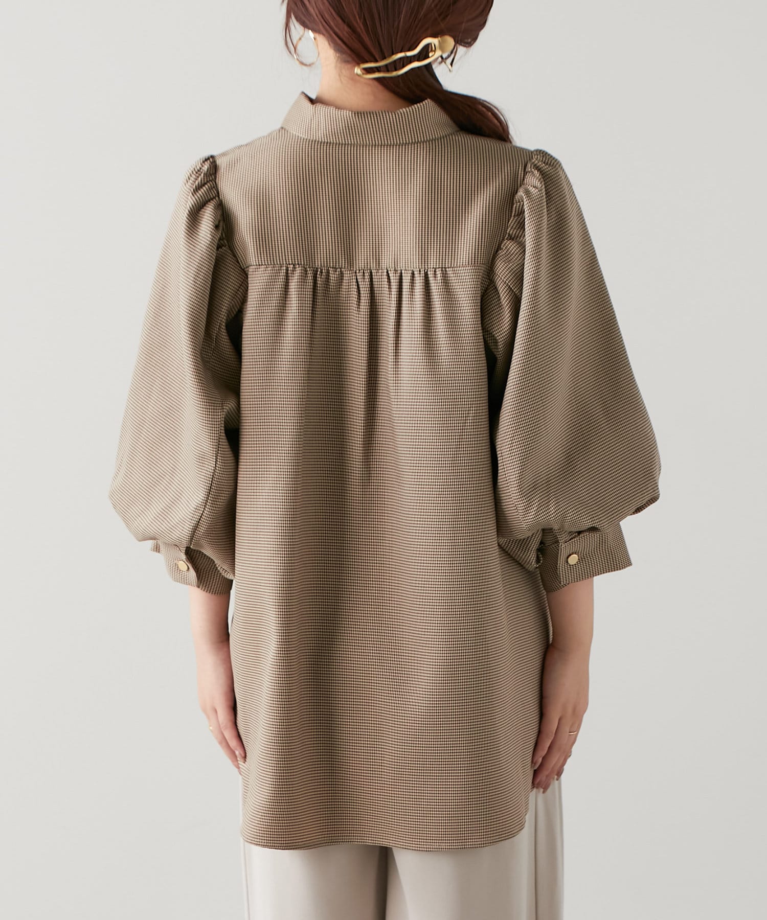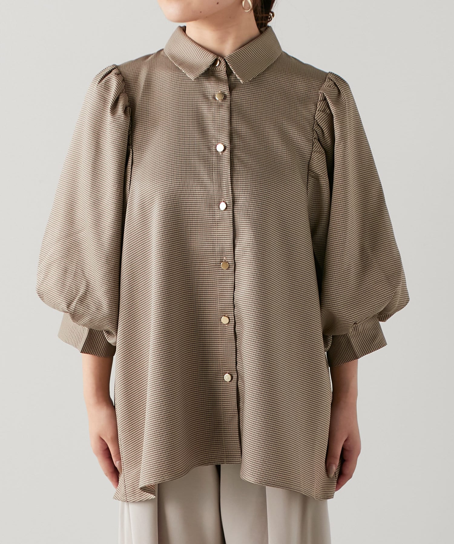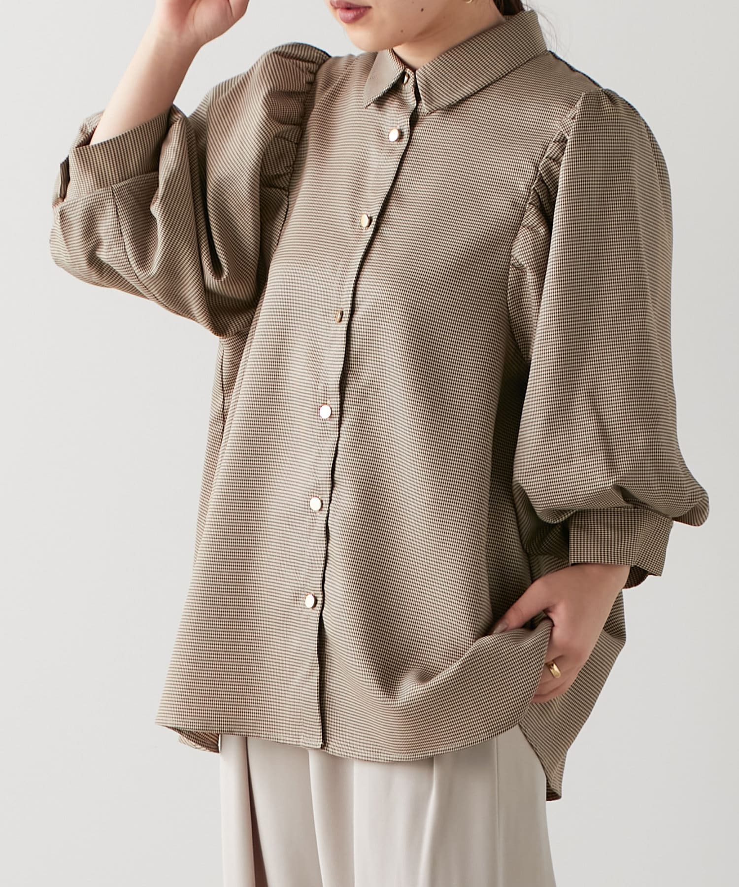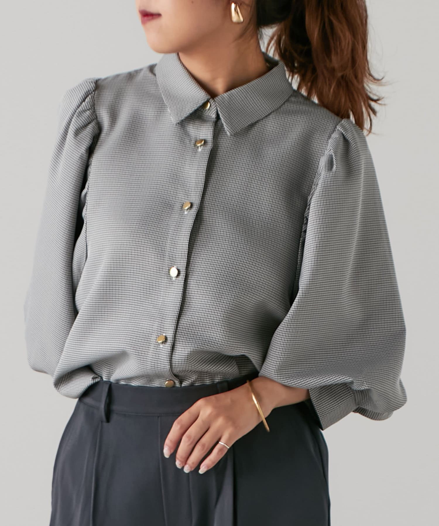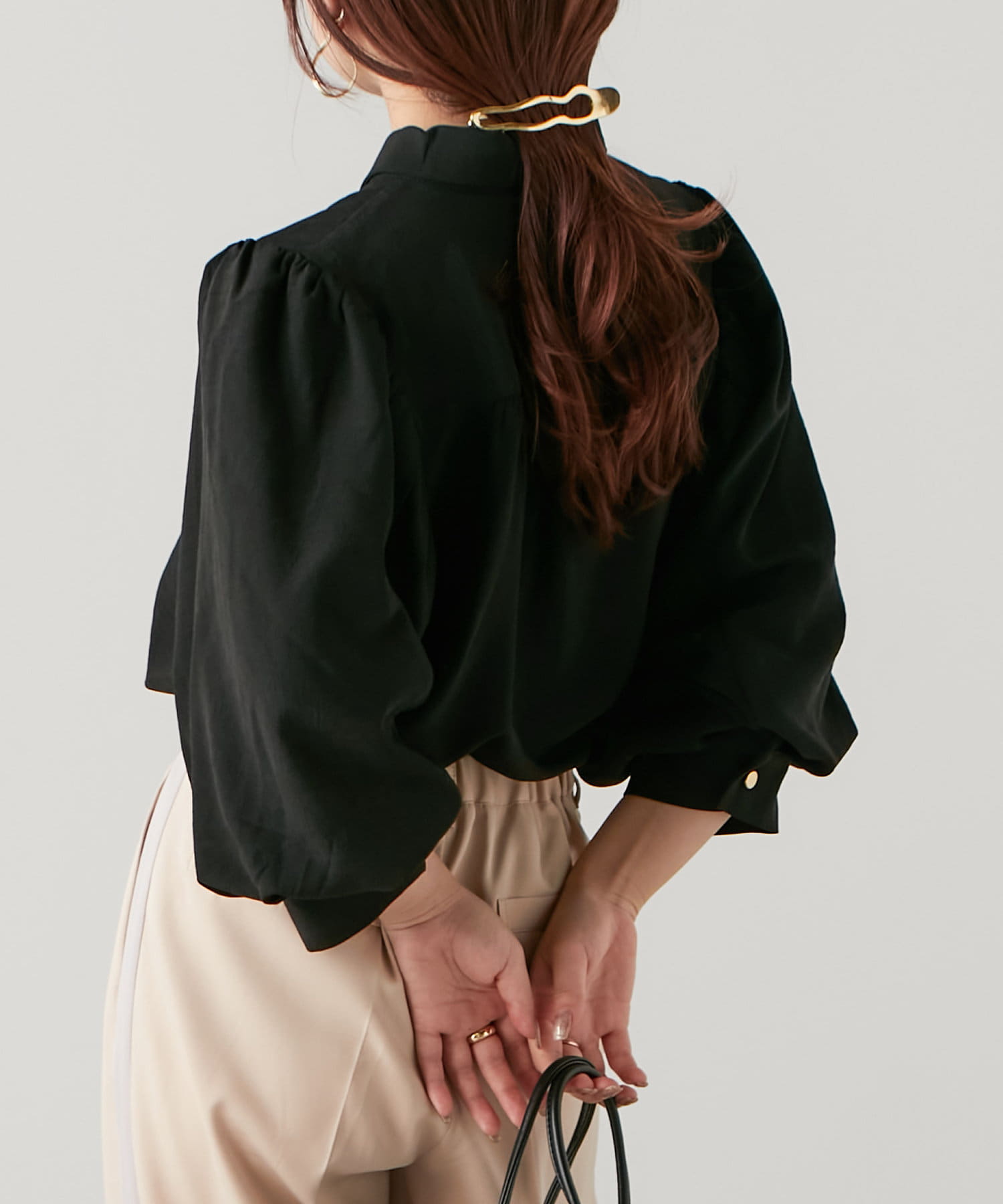 袖ボリューム金ボタンブラウス