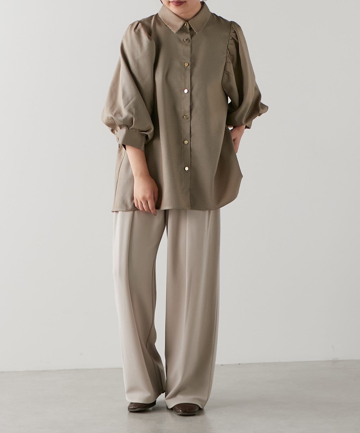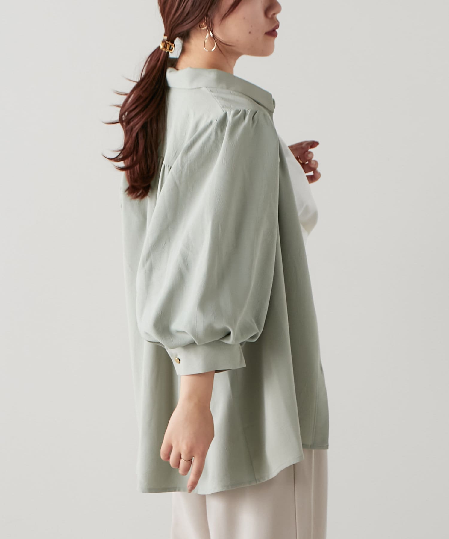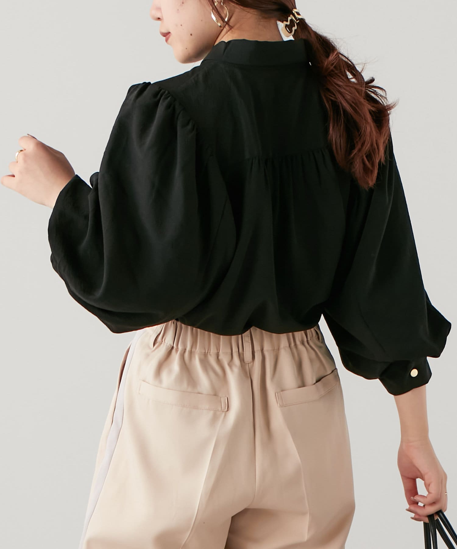 ・ふんわりとしたシルエットとボリューム袖が女性らしく、着るだけで華やかな印象に。