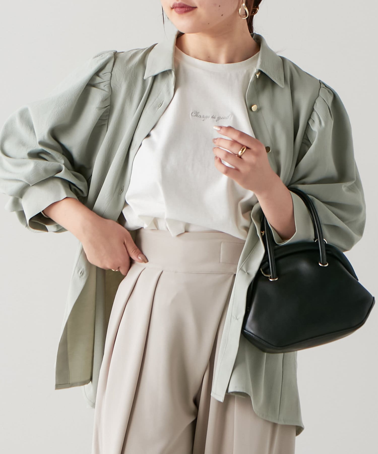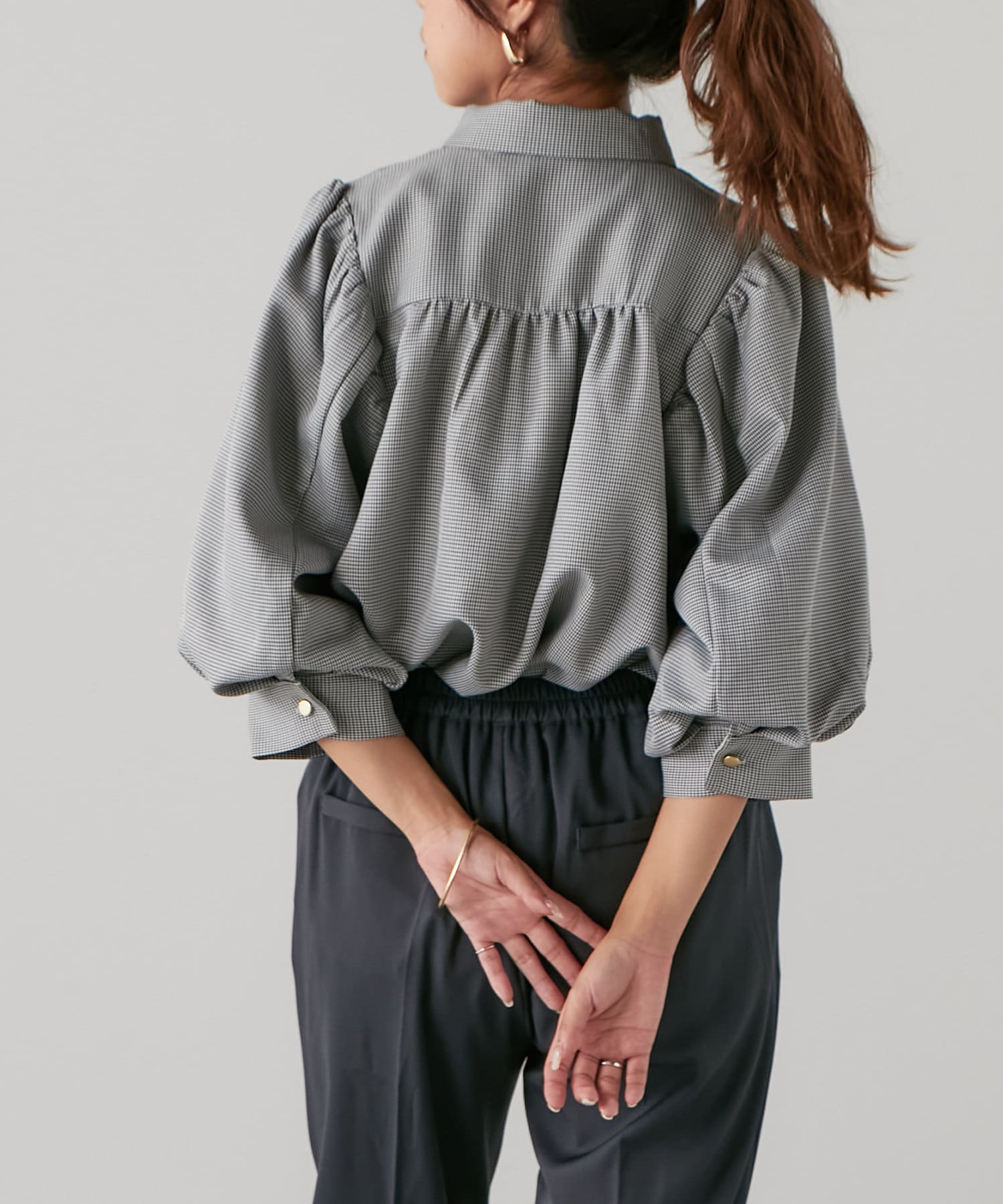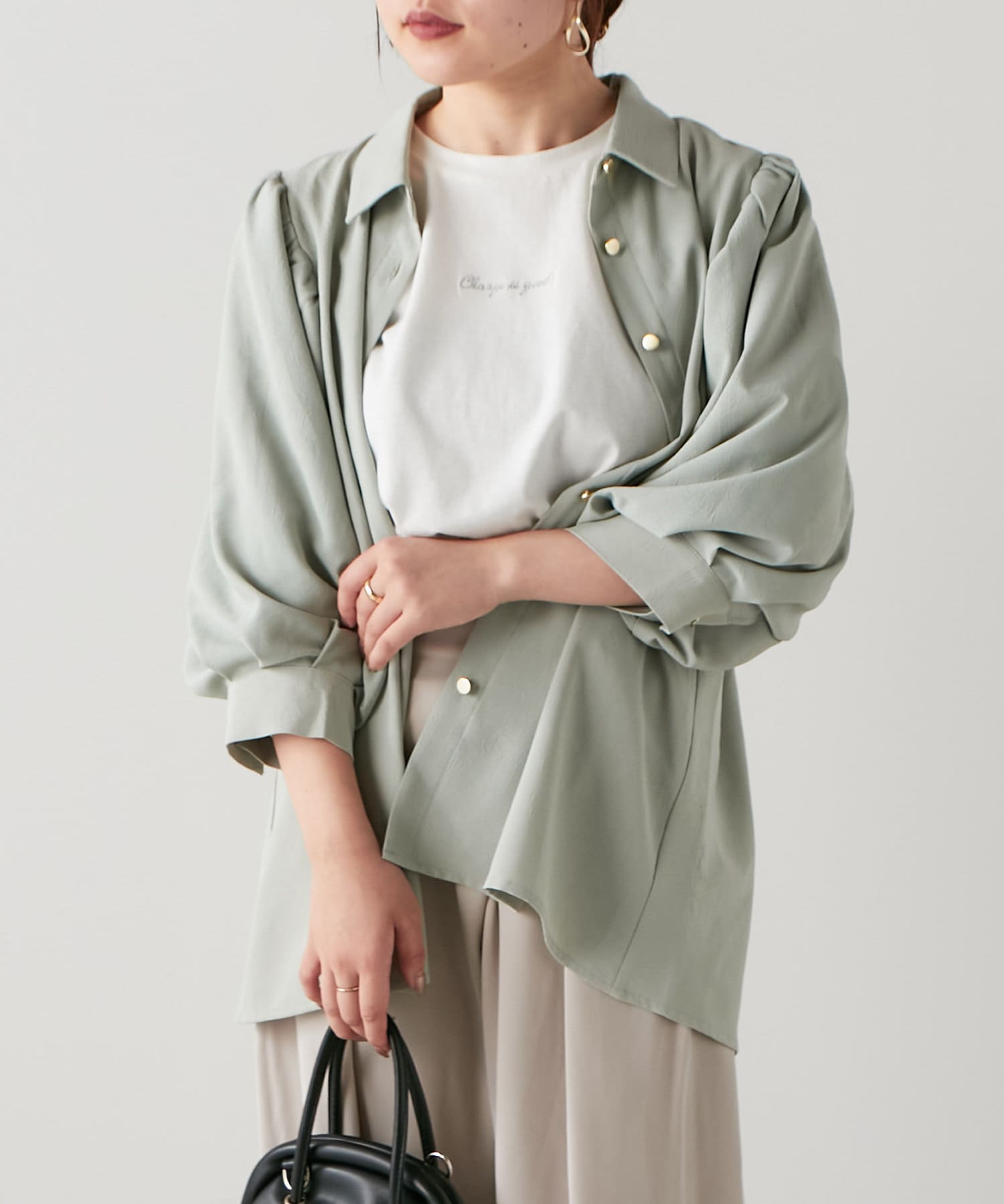 ・ふんわりとしたシルエットとボリューム袖が女性らしく、着るだけで華やかな印象に。