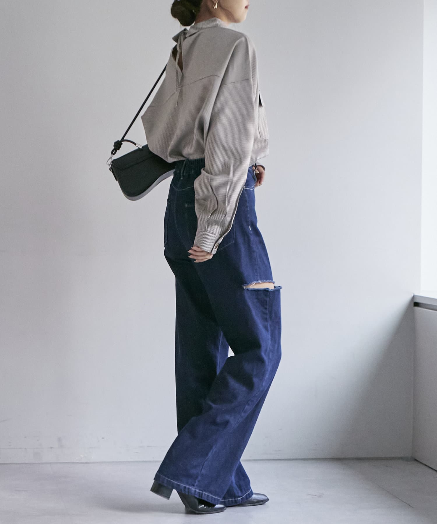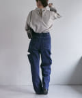 ・シンプルにデニム合わせ、前だけインでこなれ感をプラス