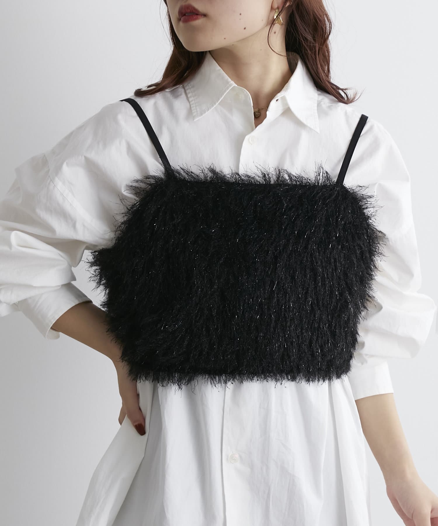 ・ラメ入りファーがキラキラとさりげなく輝くビスチェ
