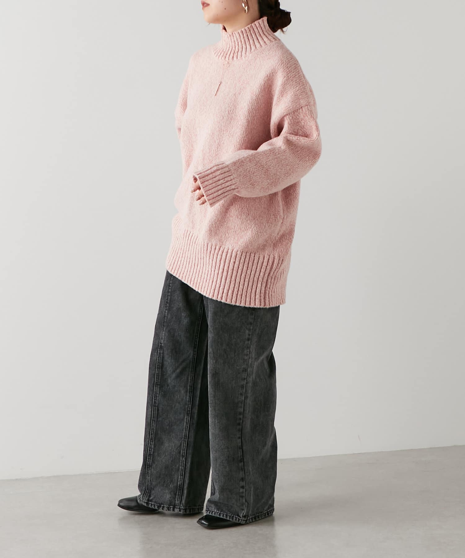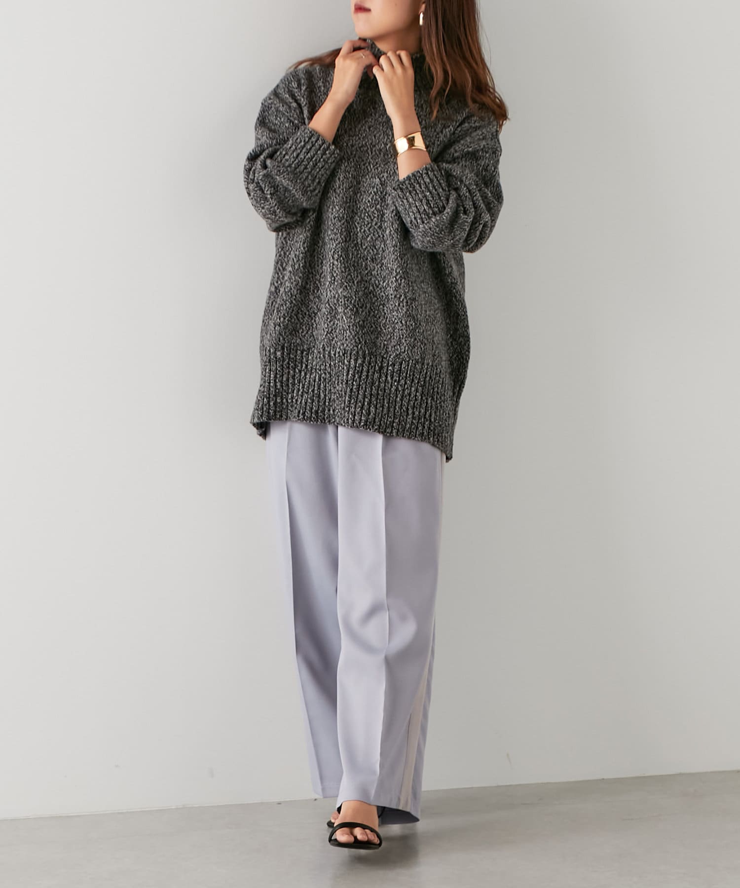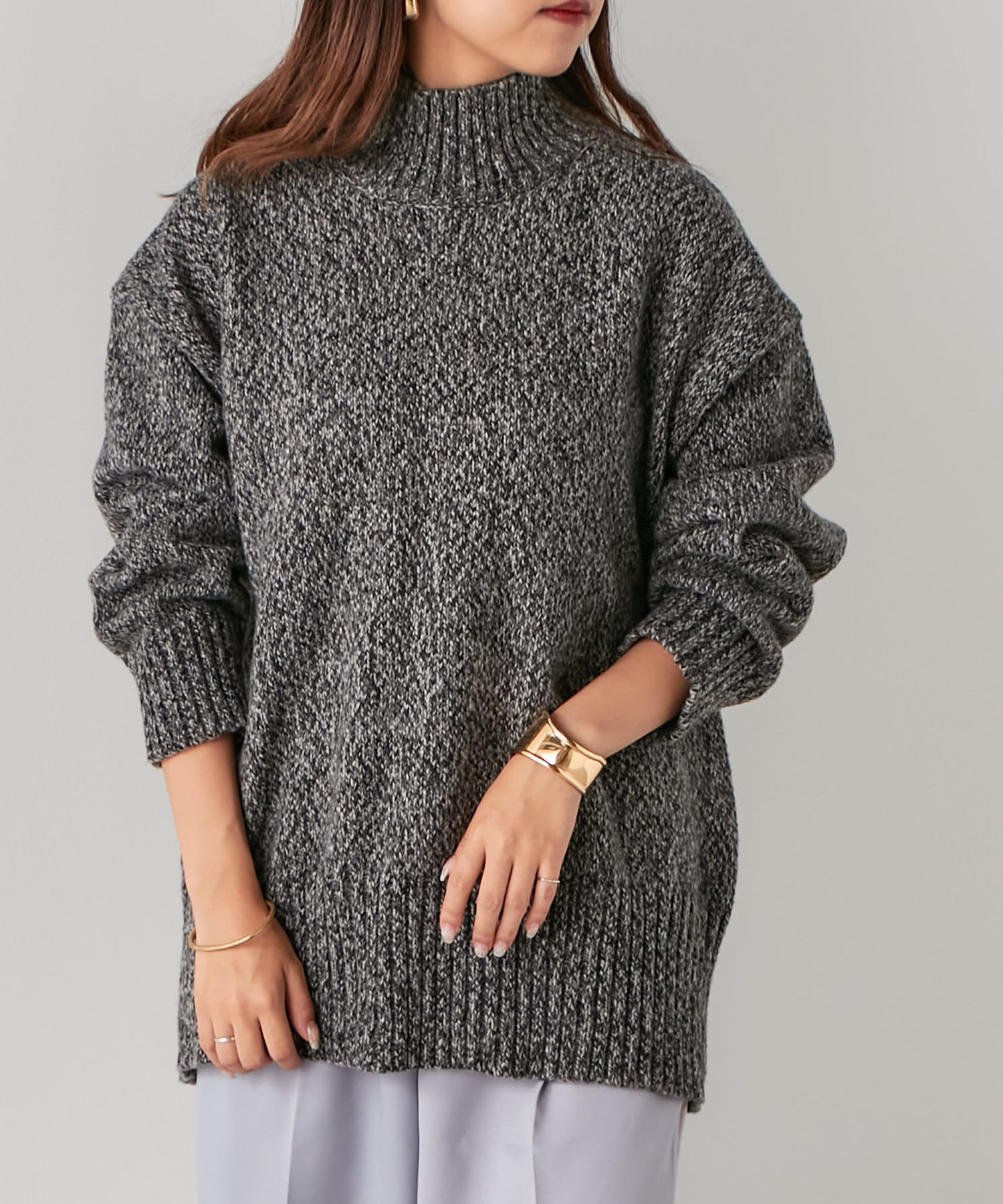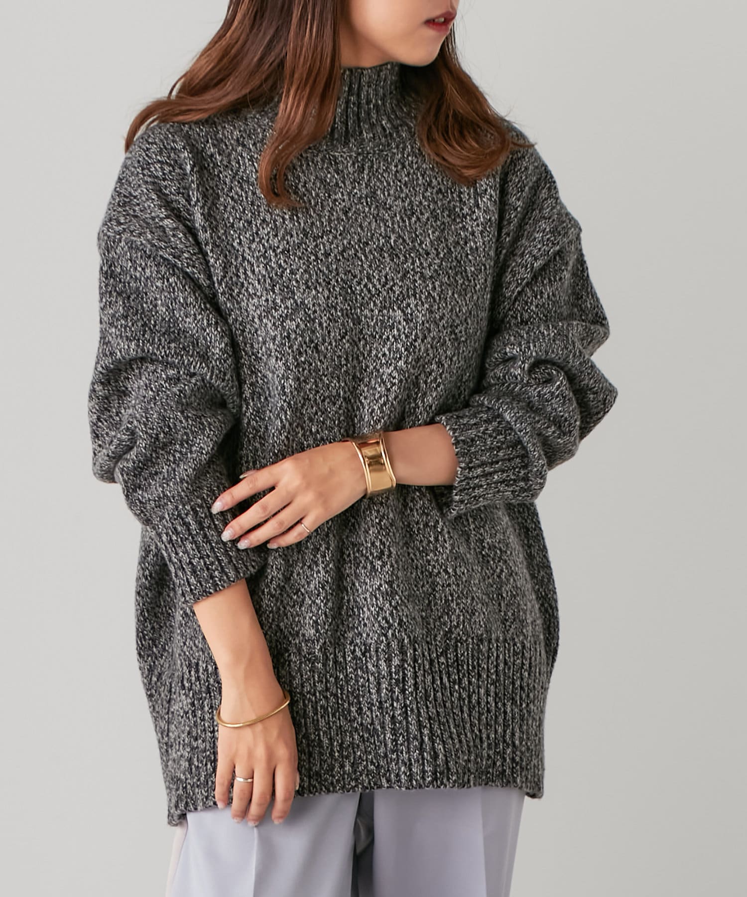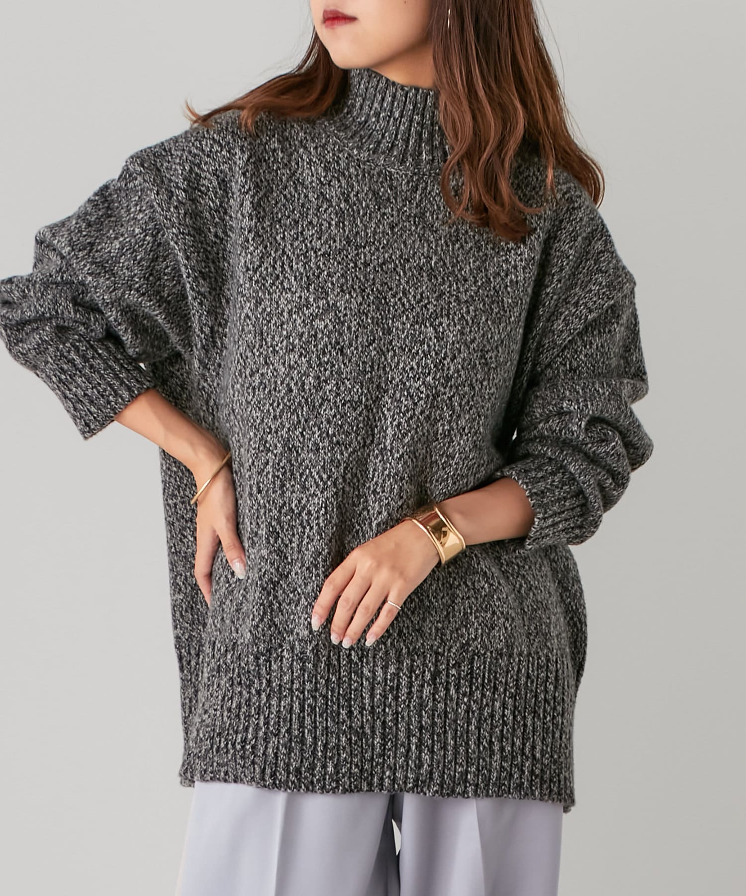・ヒップが隠れる丈感が嬉しいミックス柄ニット