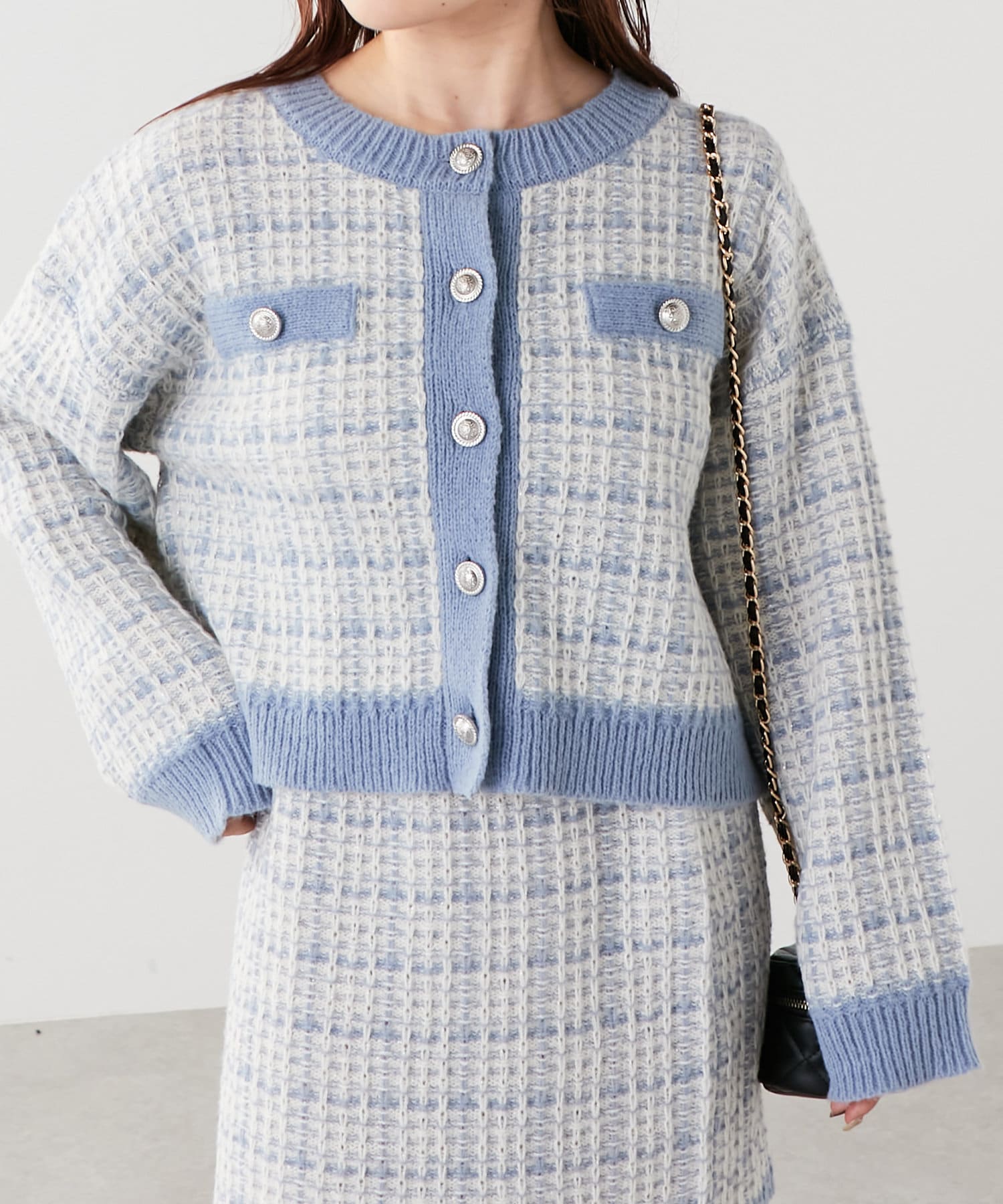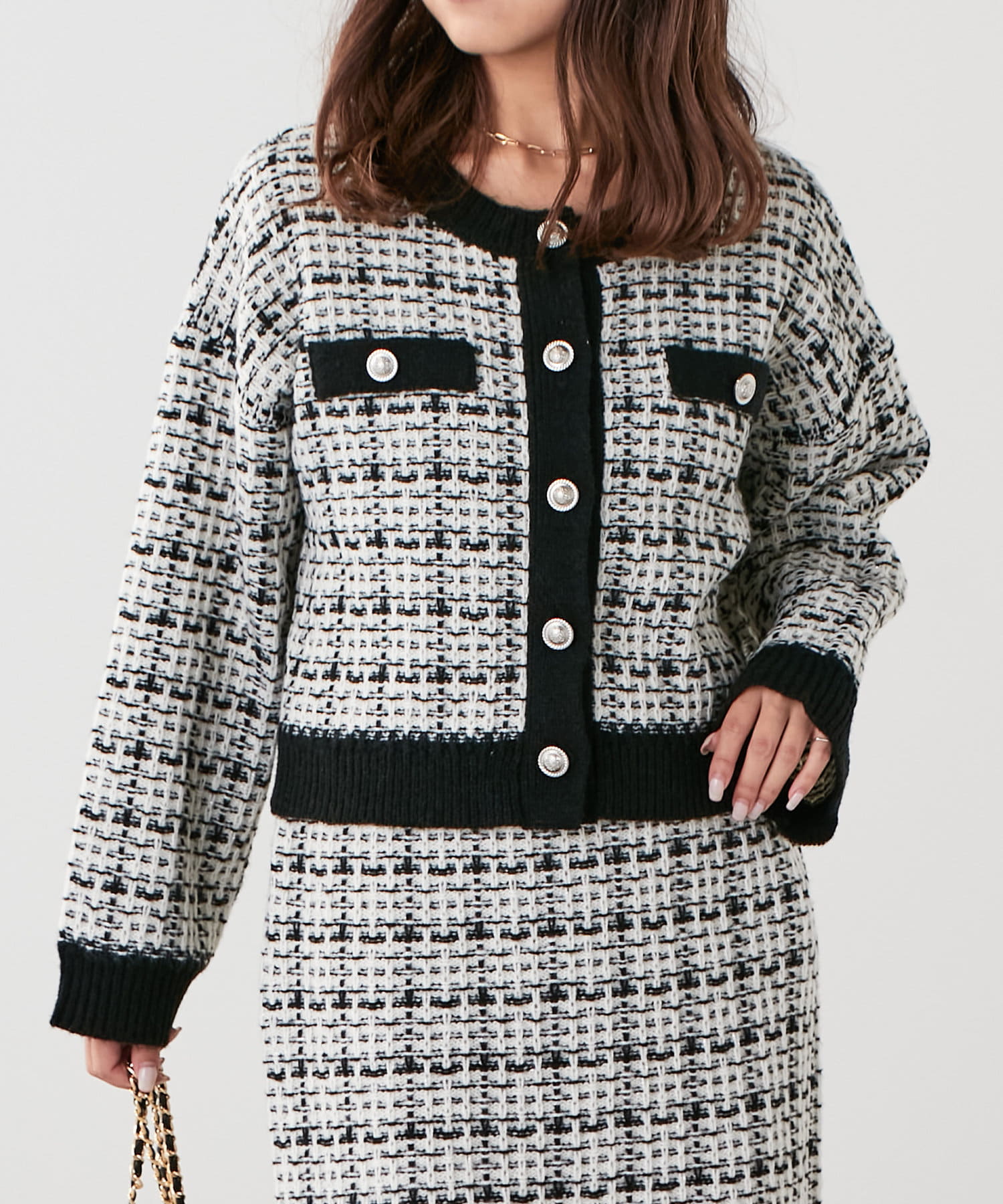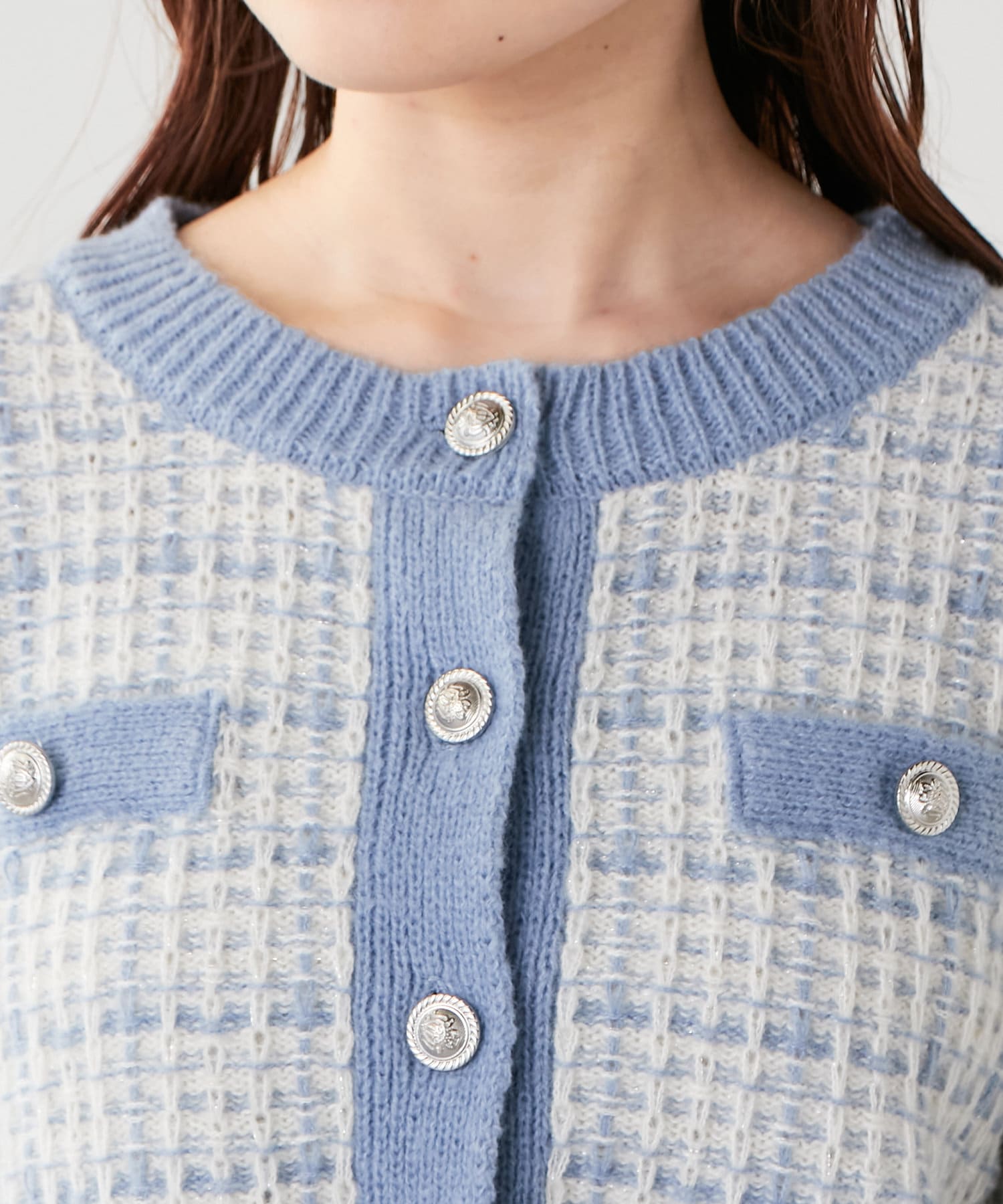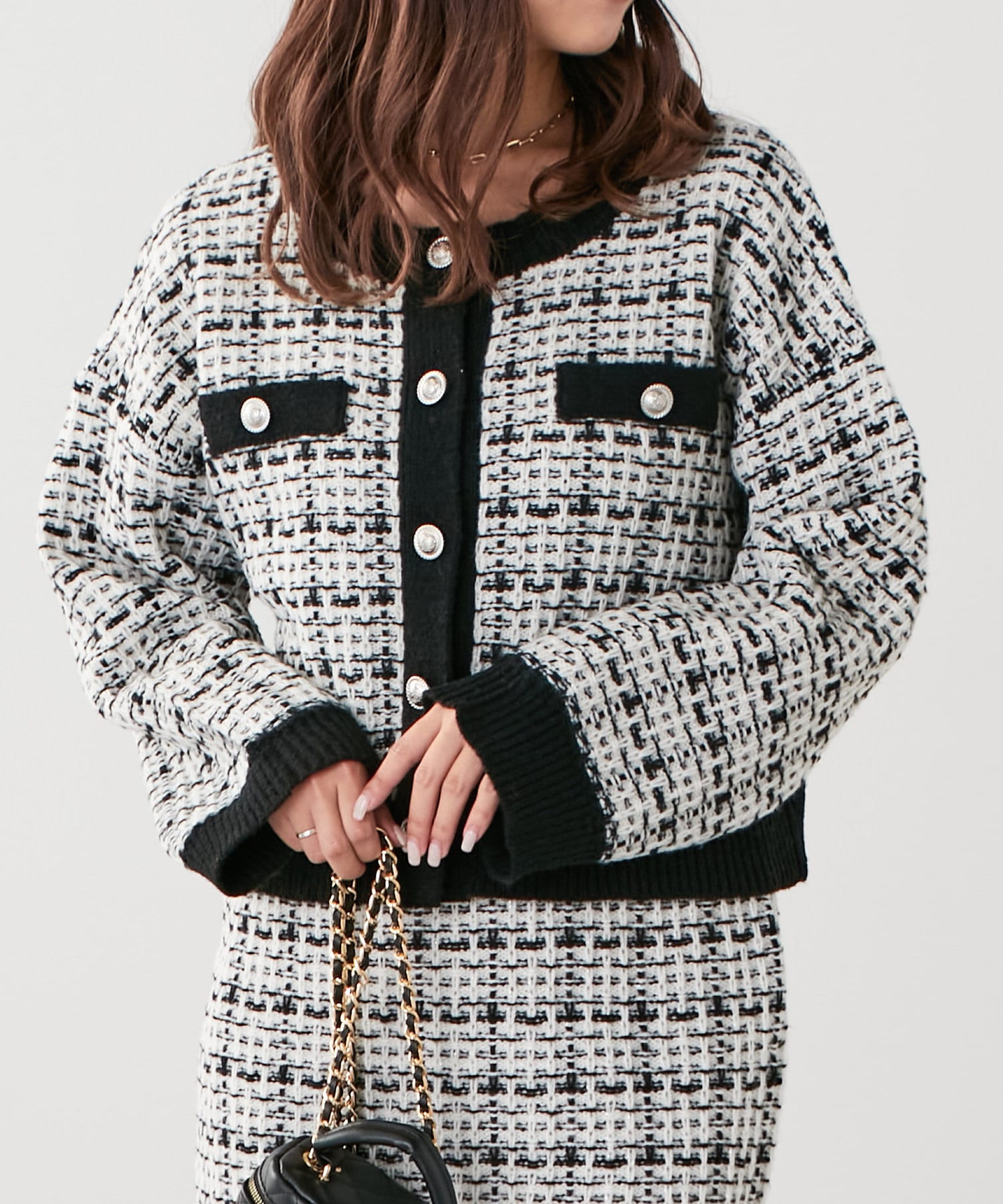 【セットアップ着用可】ラメツイード金釦カーディガン