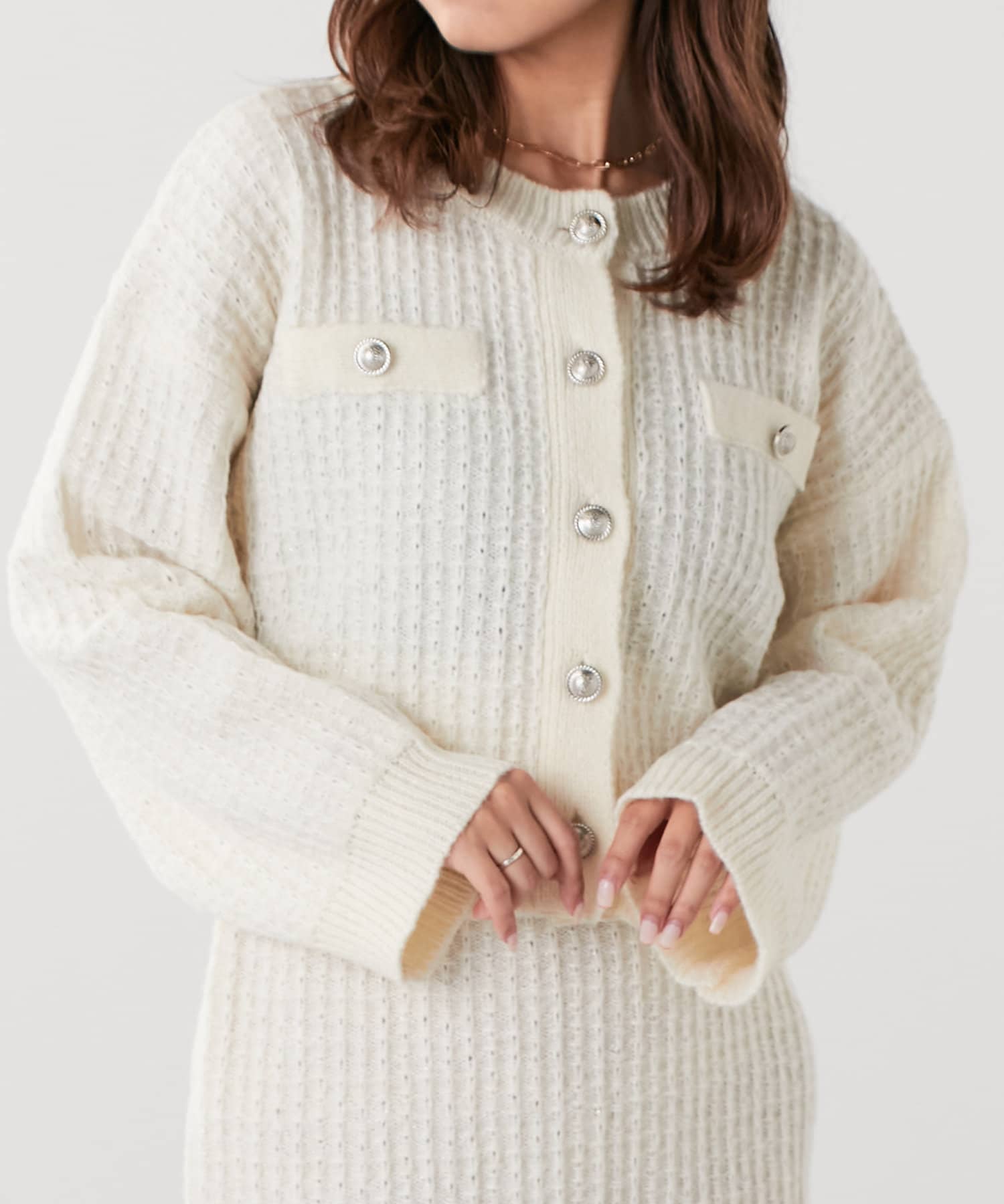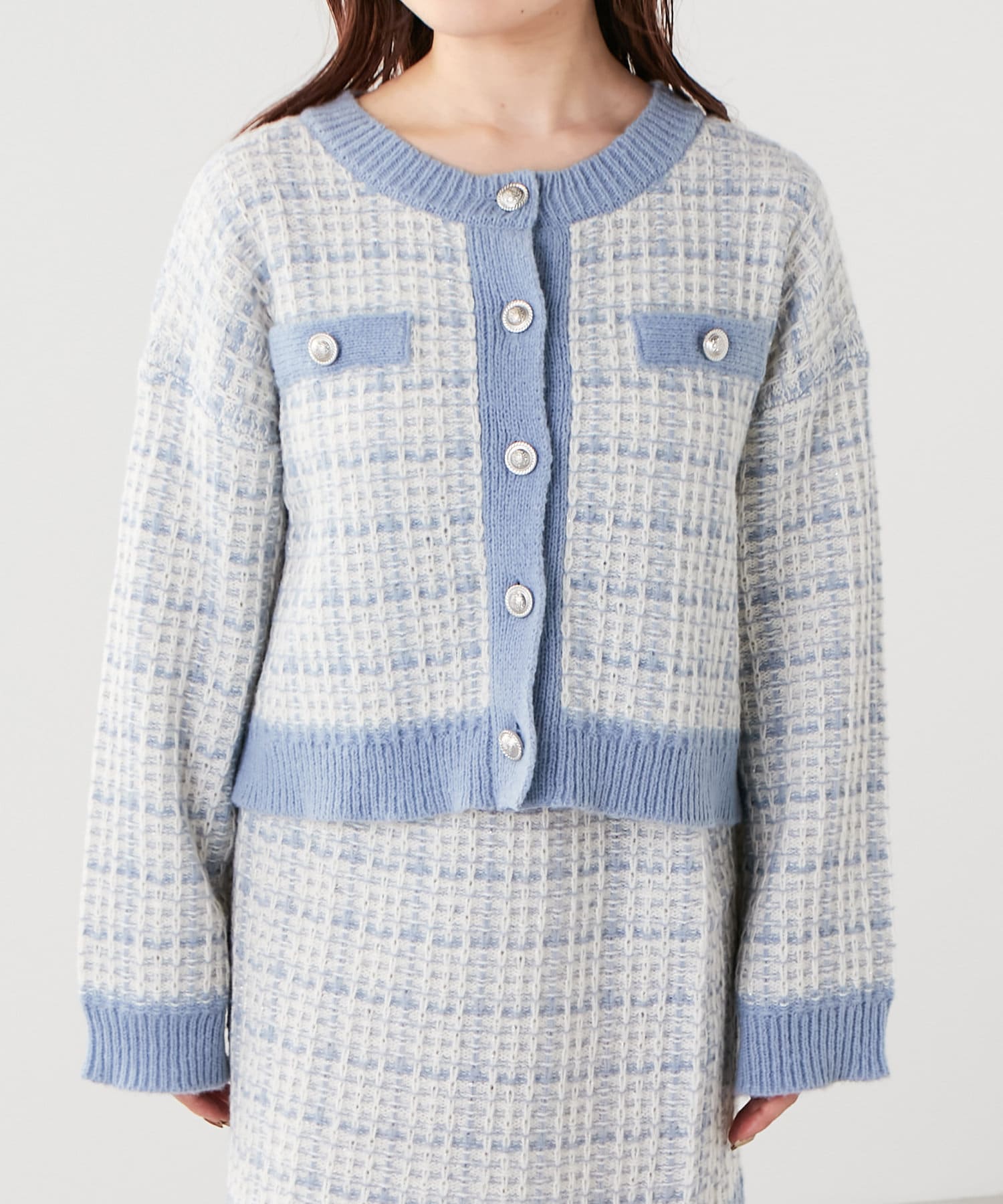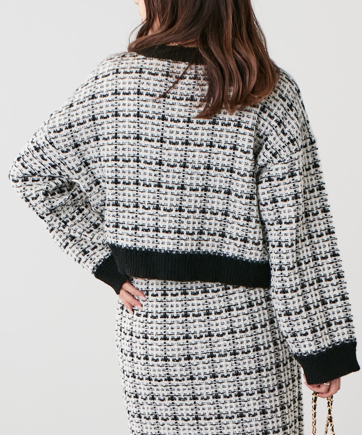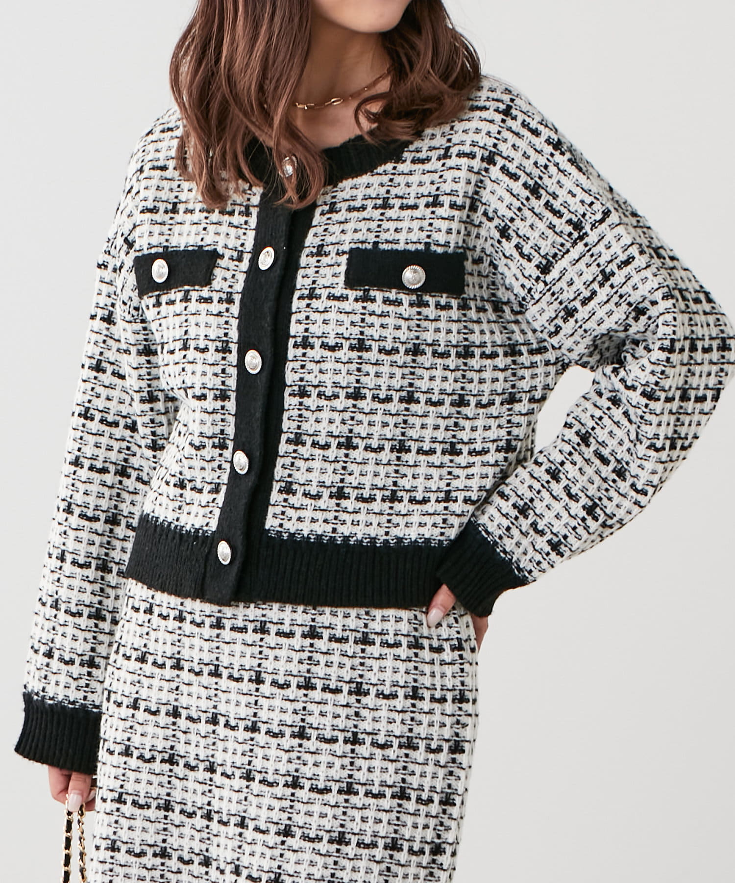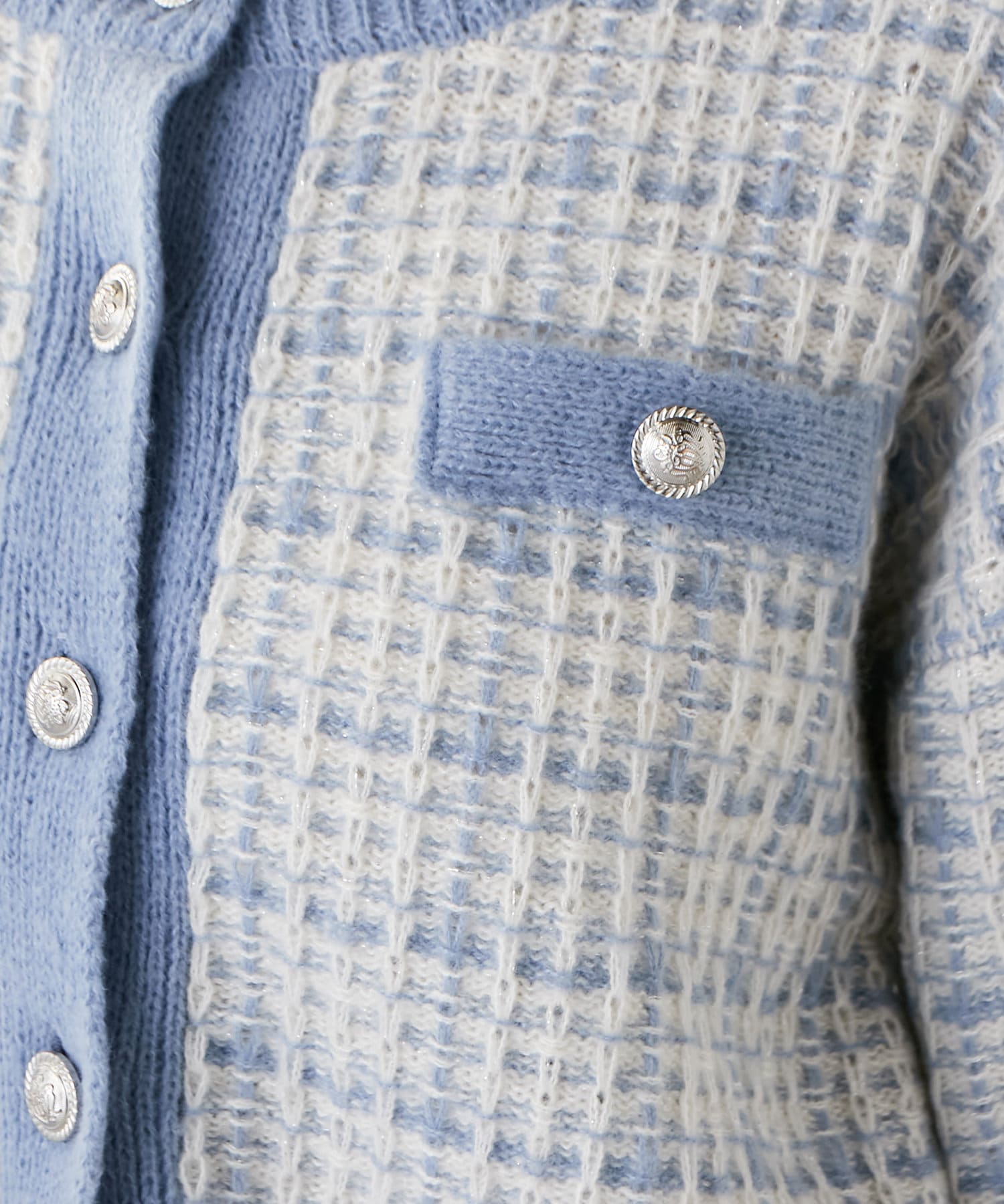 【セットアップ着用可】ラメツイード金釦カーディガン