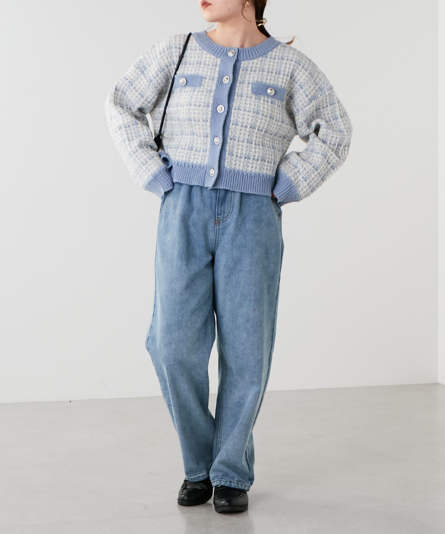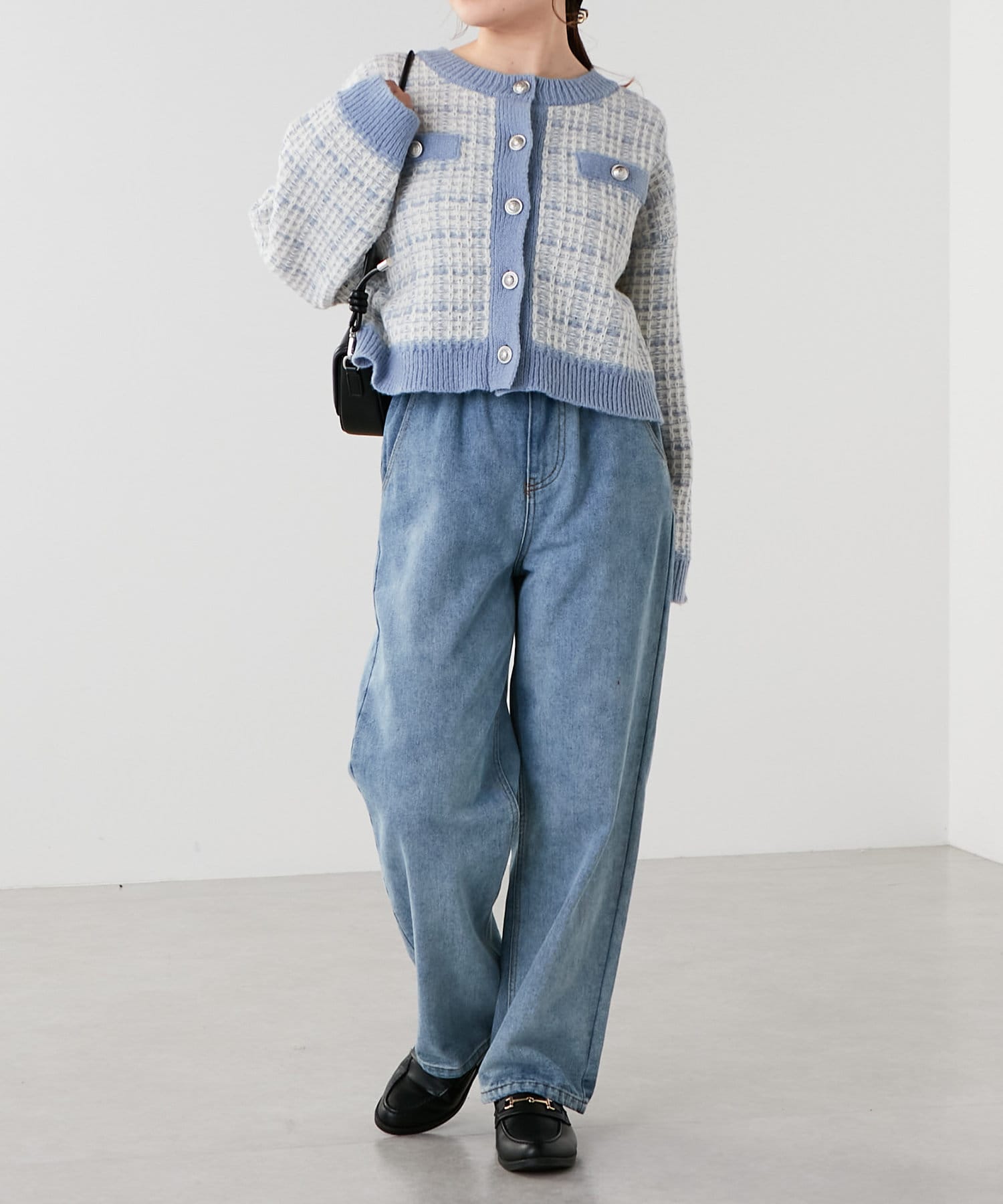 ・一枚で韓国っぽスタイルが決まるラメツイードカーディガン