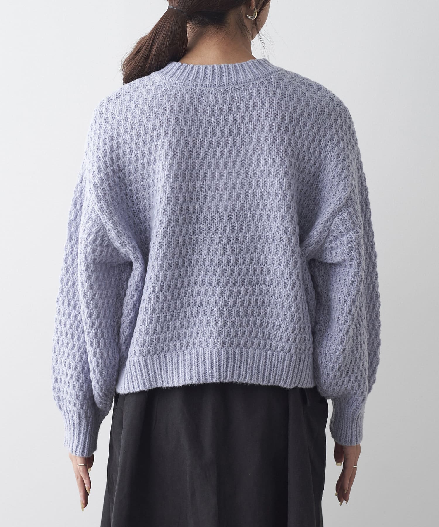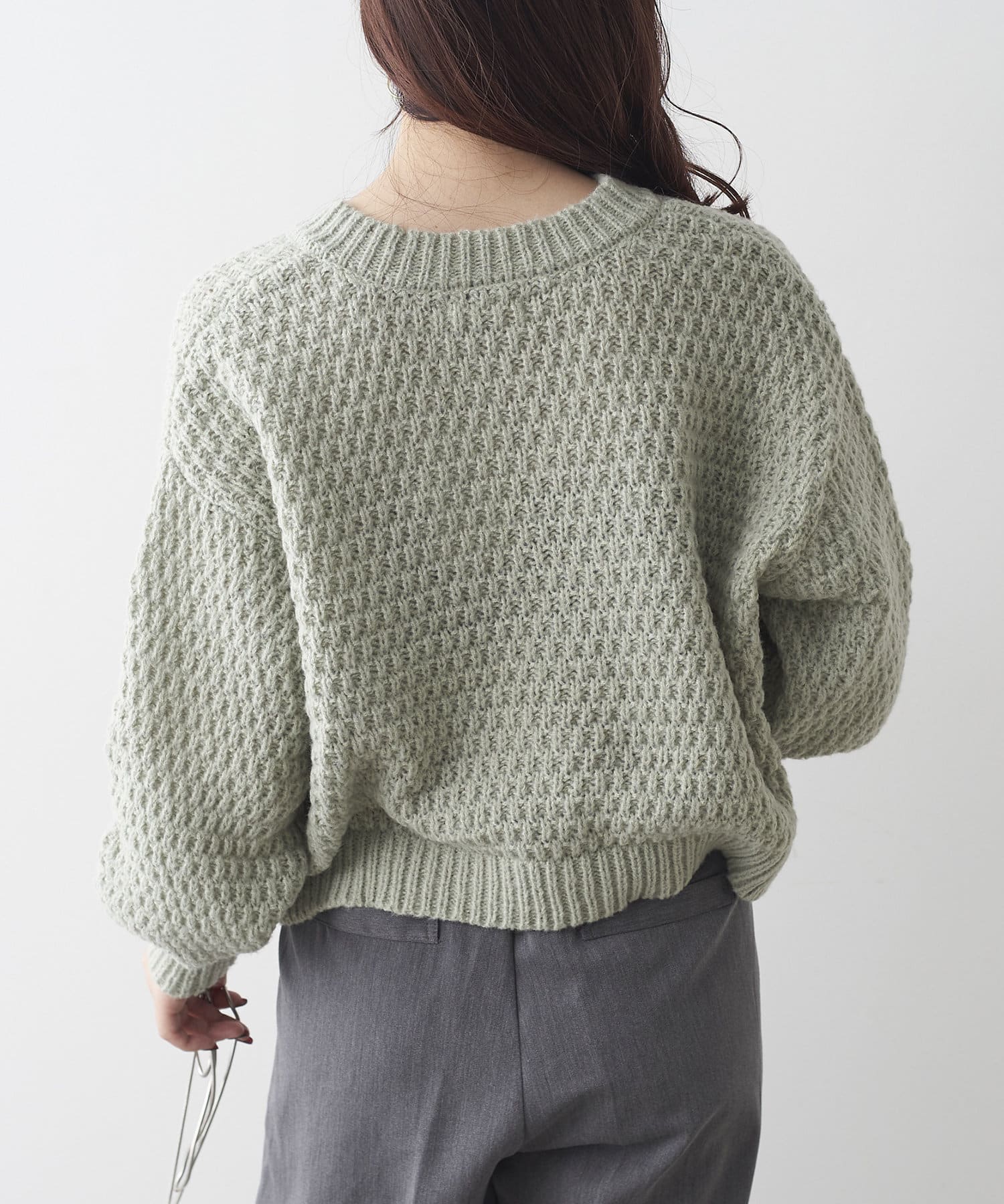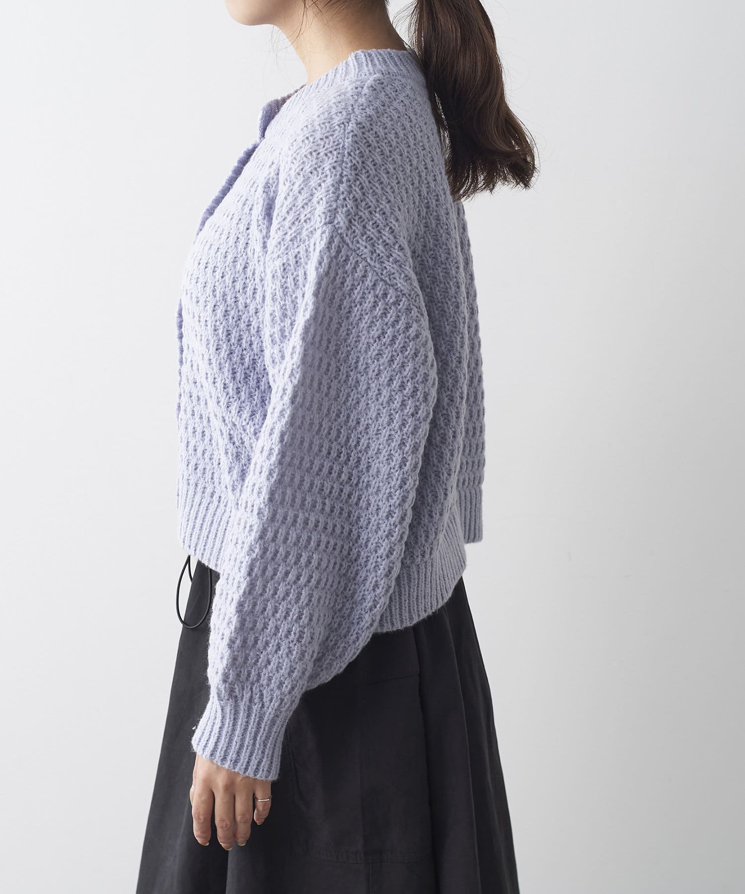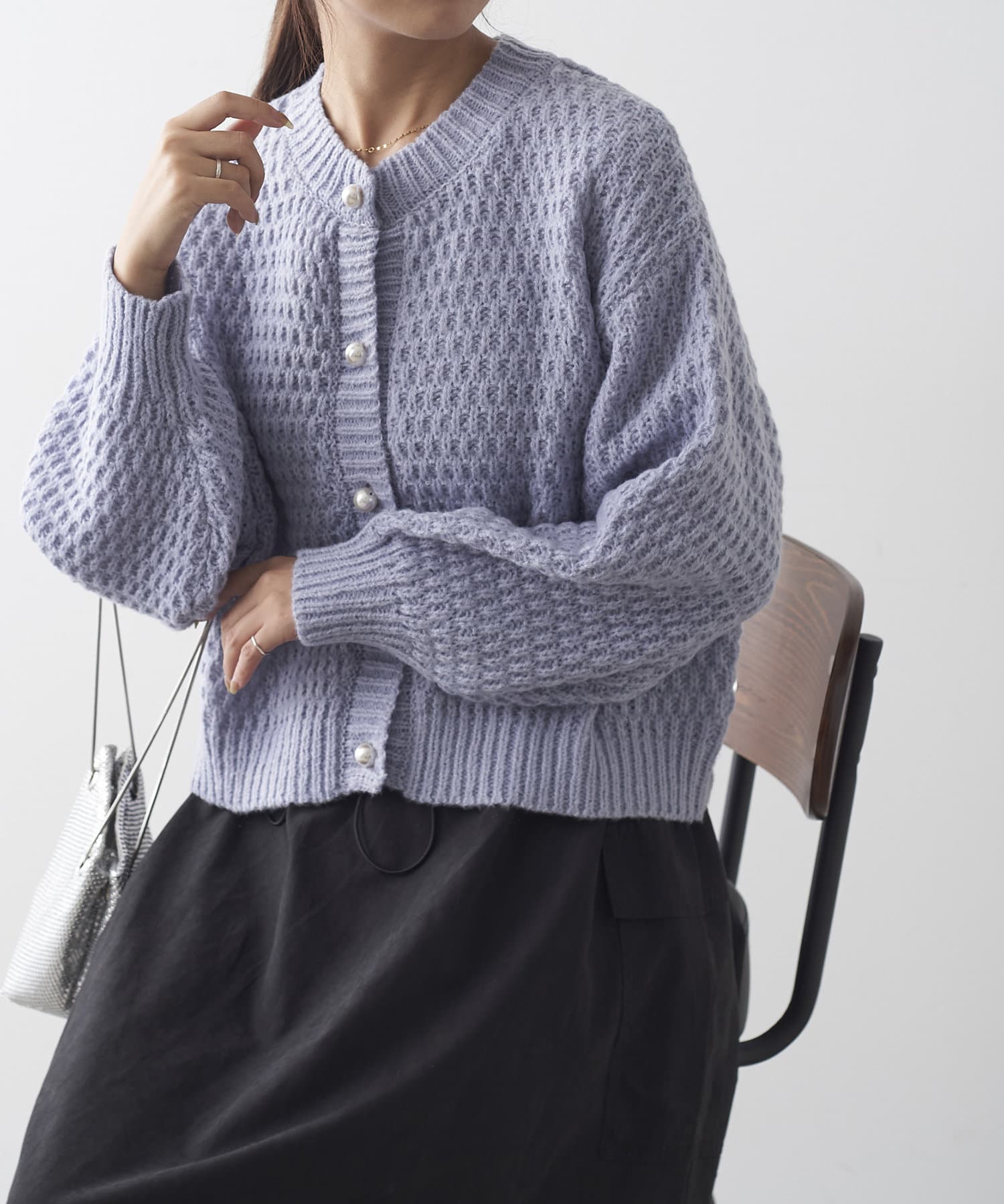 鹿の子編みパール釦カーデ