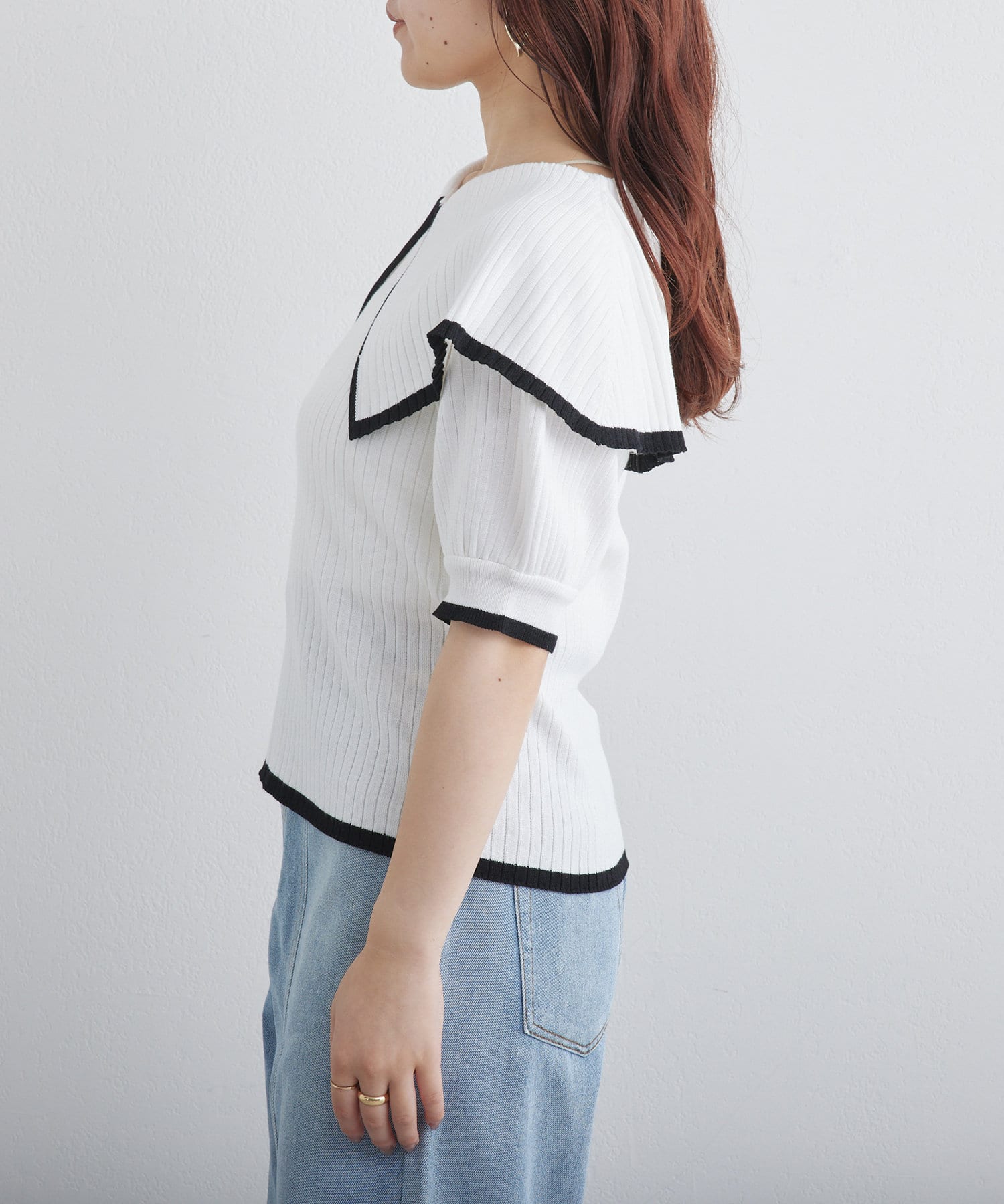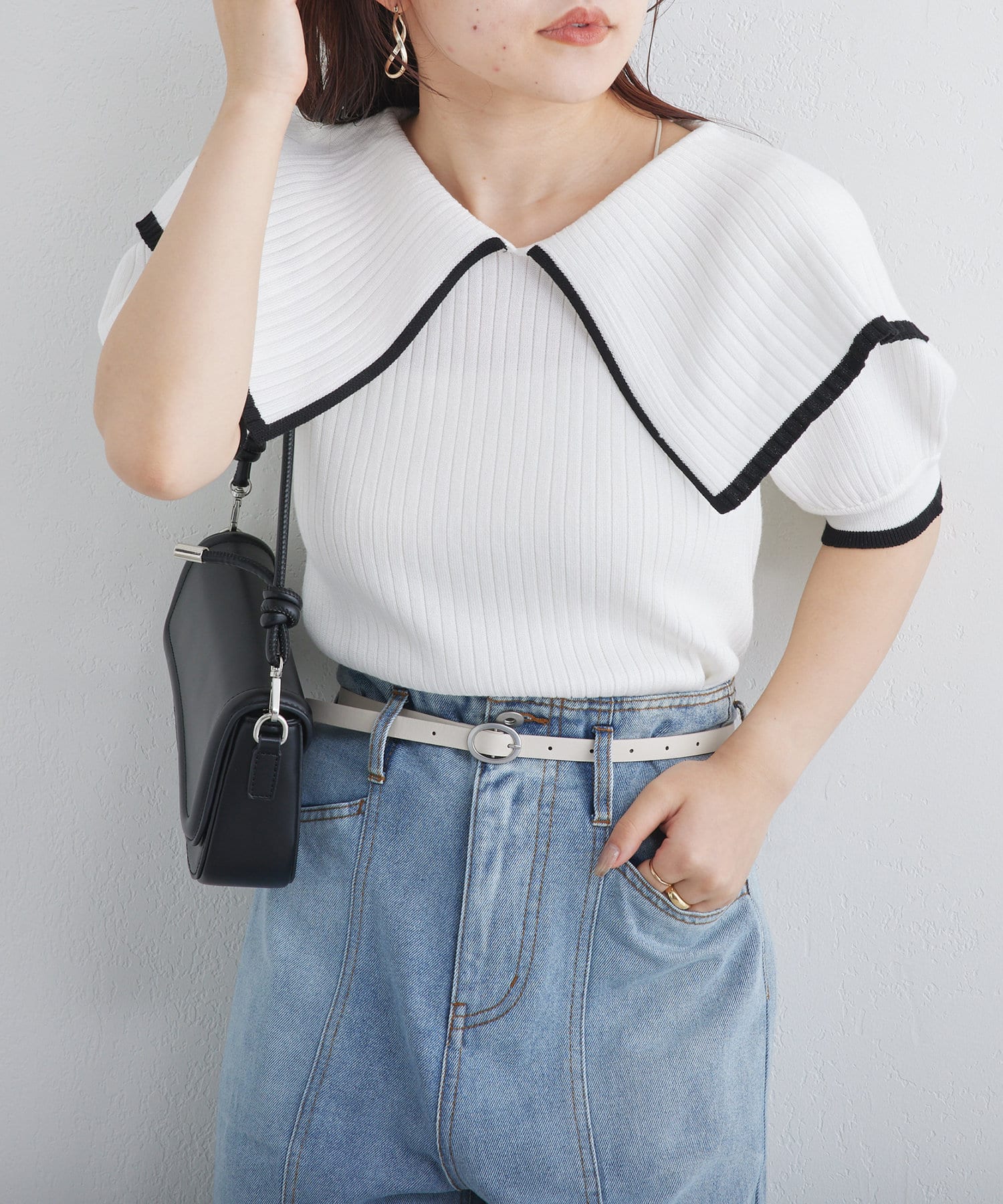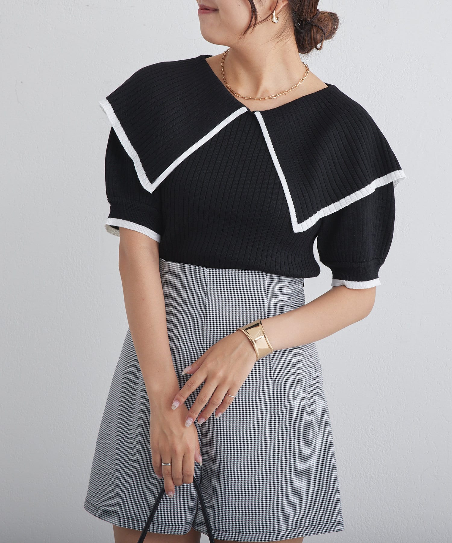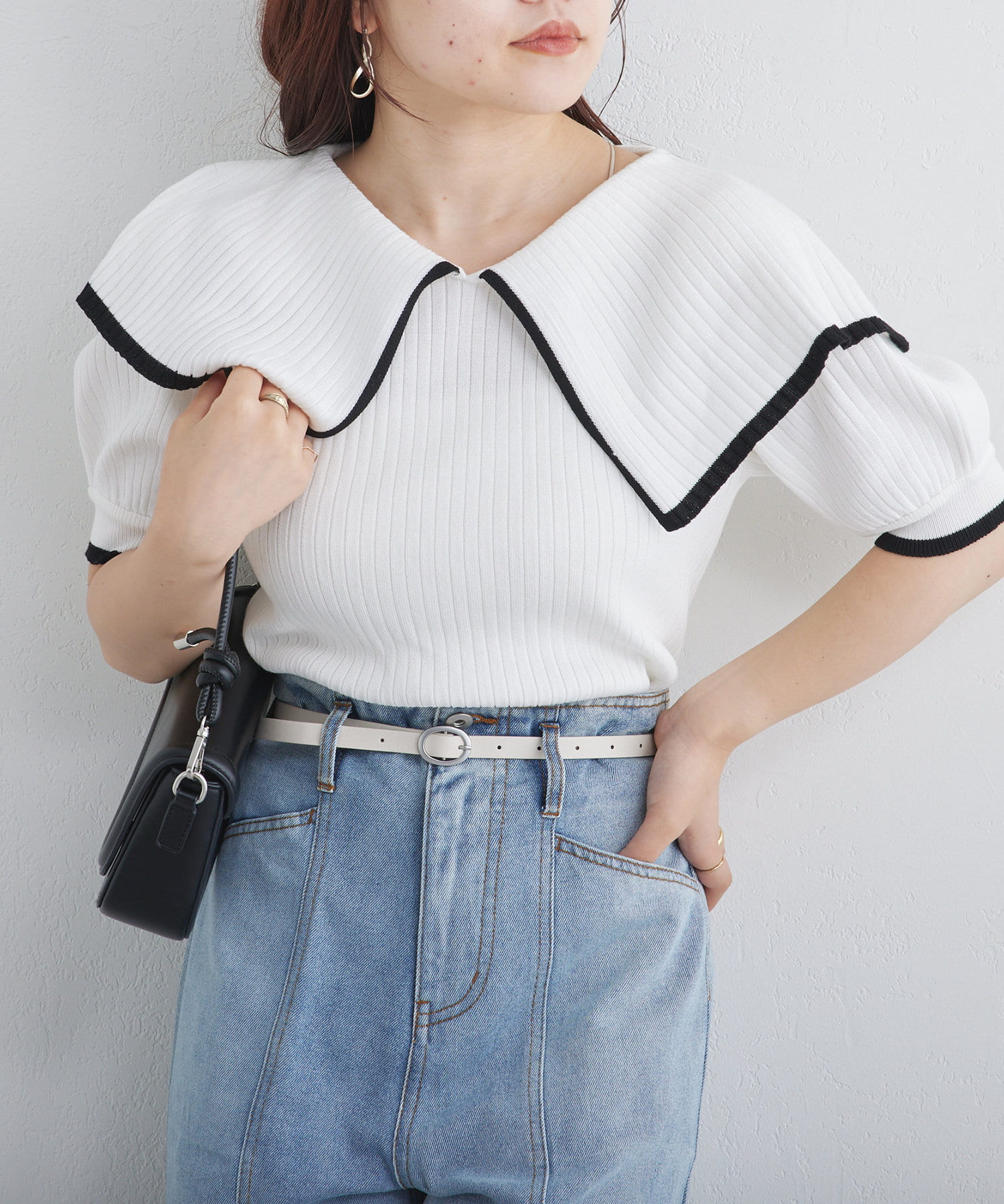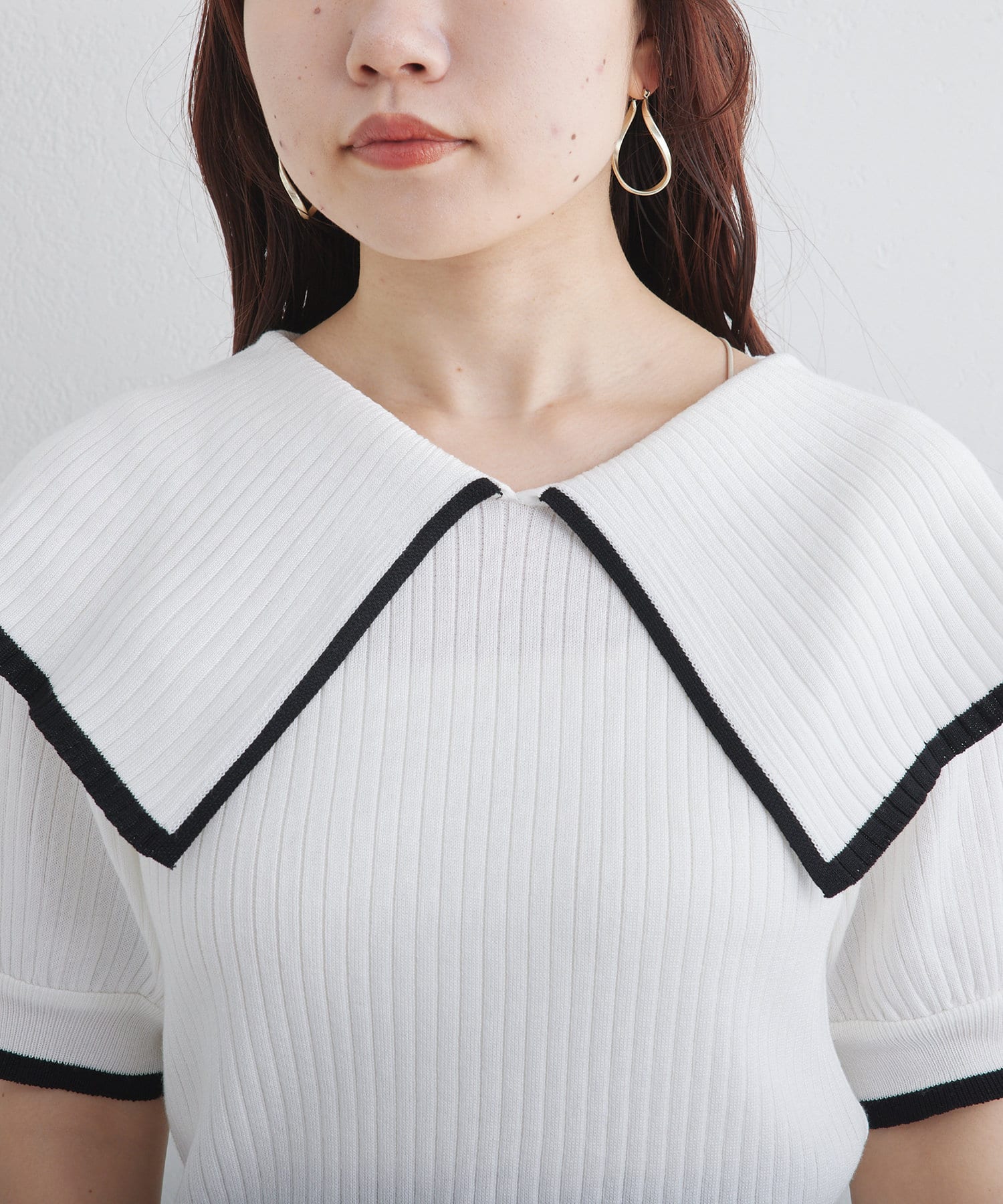 ・大きな襟で小顔効果抜群なのがうれしいトップス
