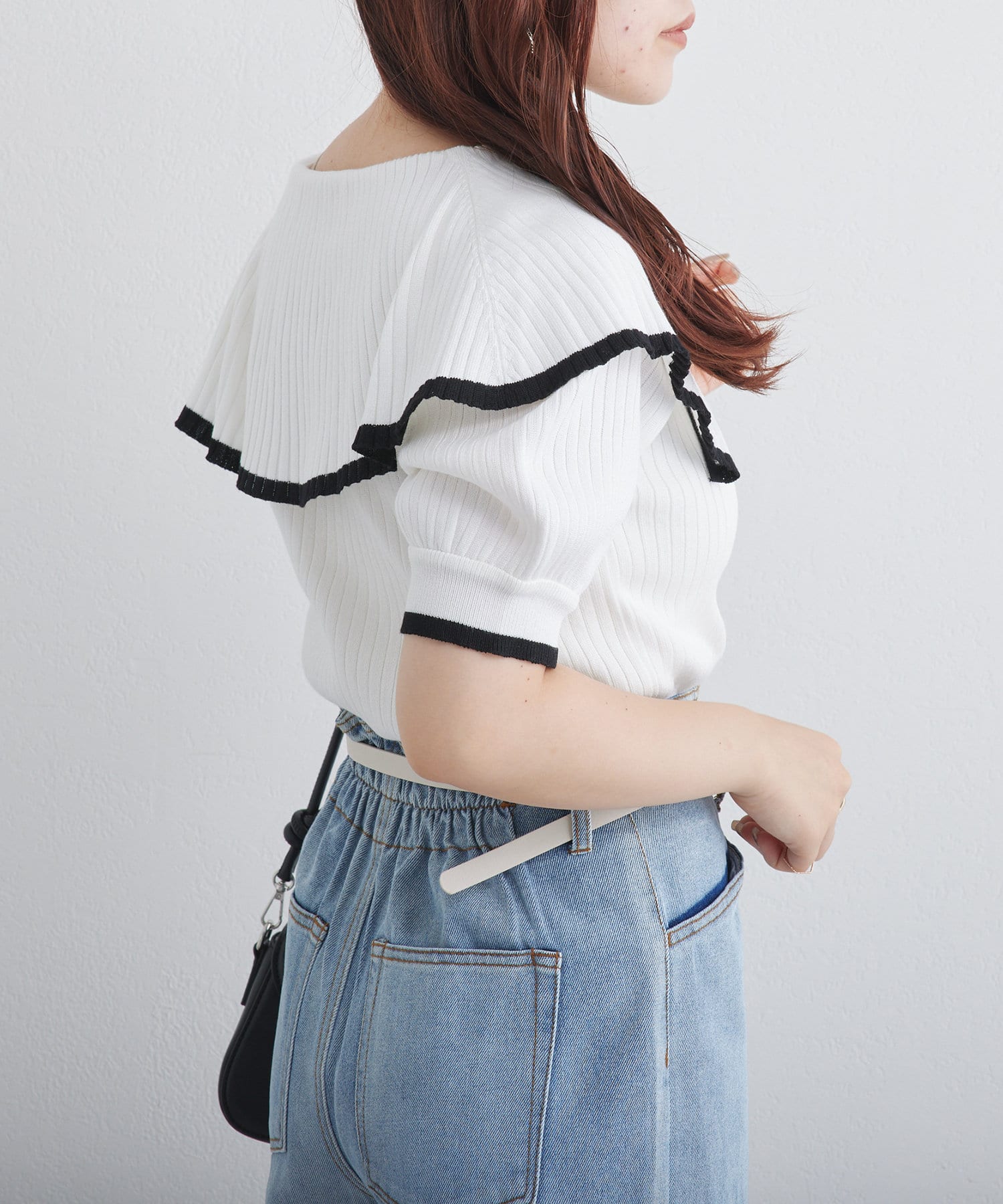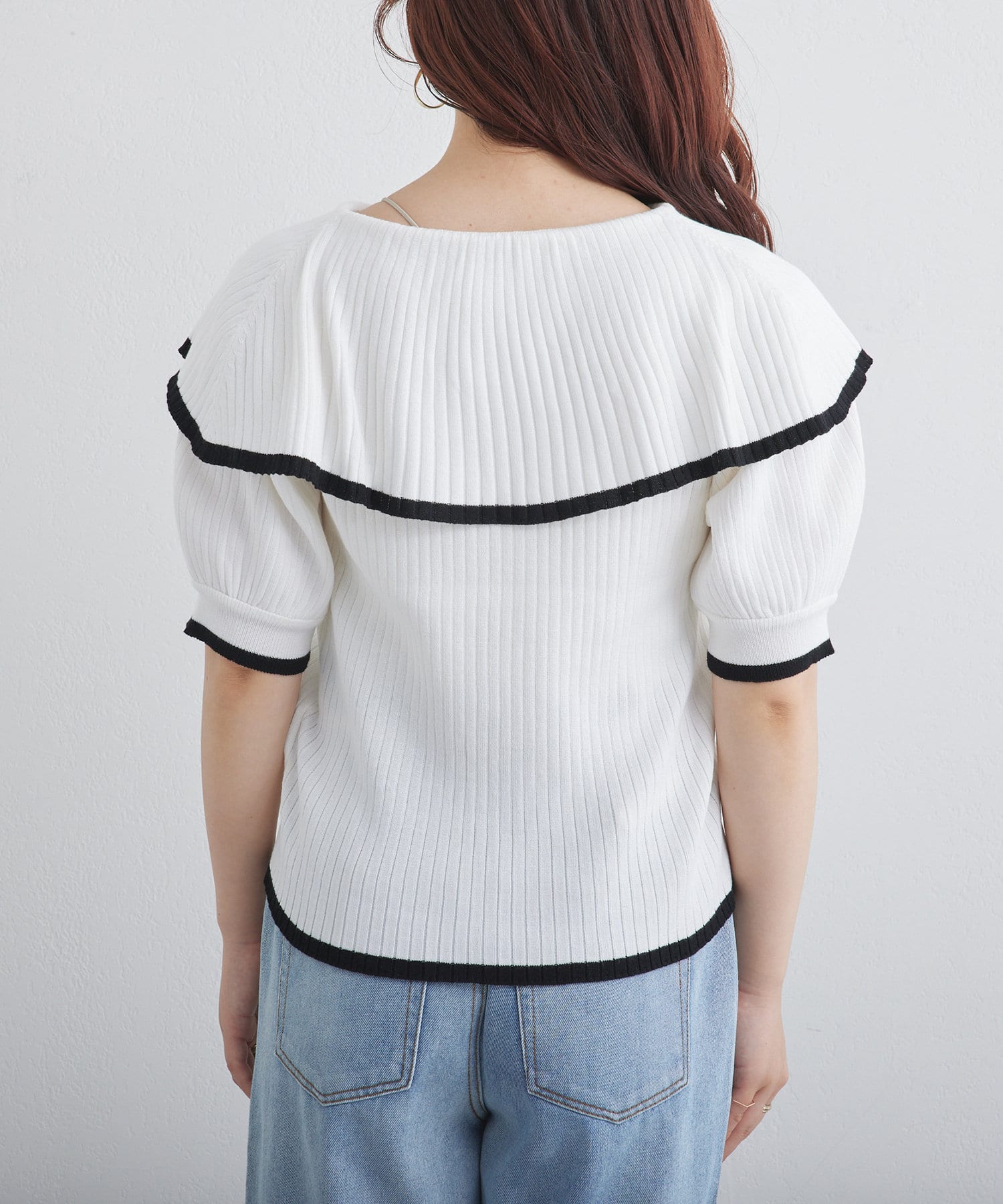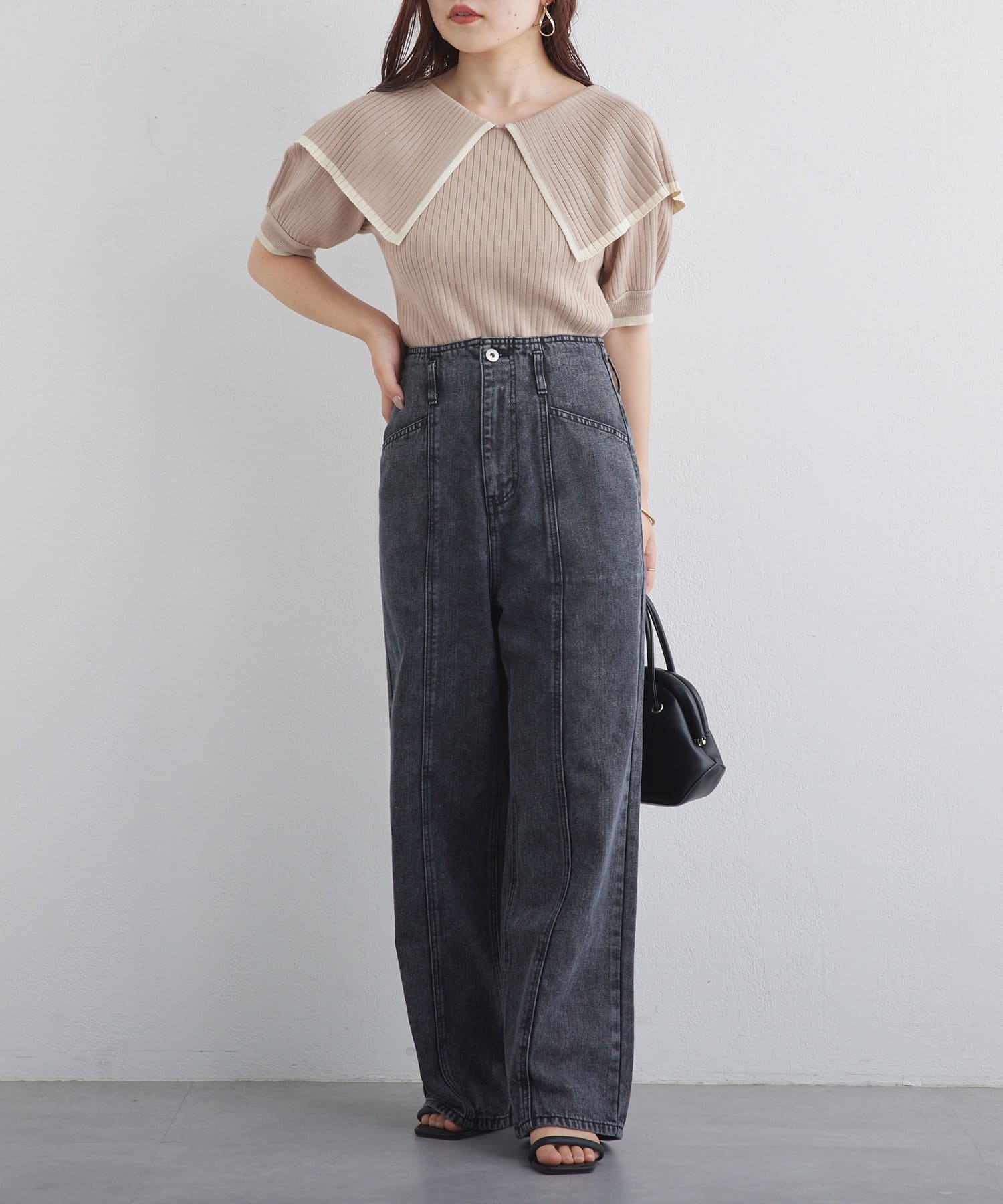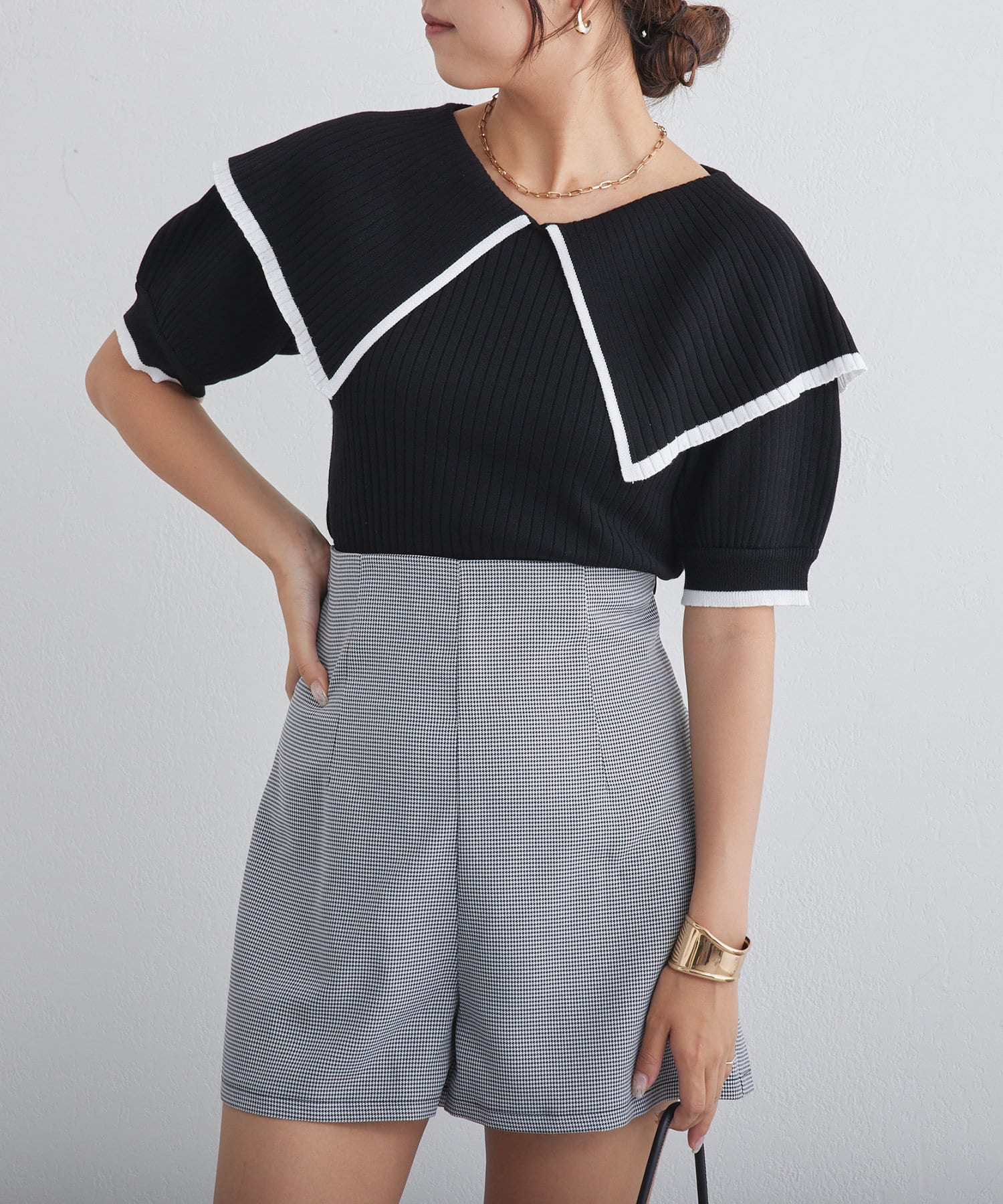 ・大きな襟で小顔効果抜群なのがうれしいトップス