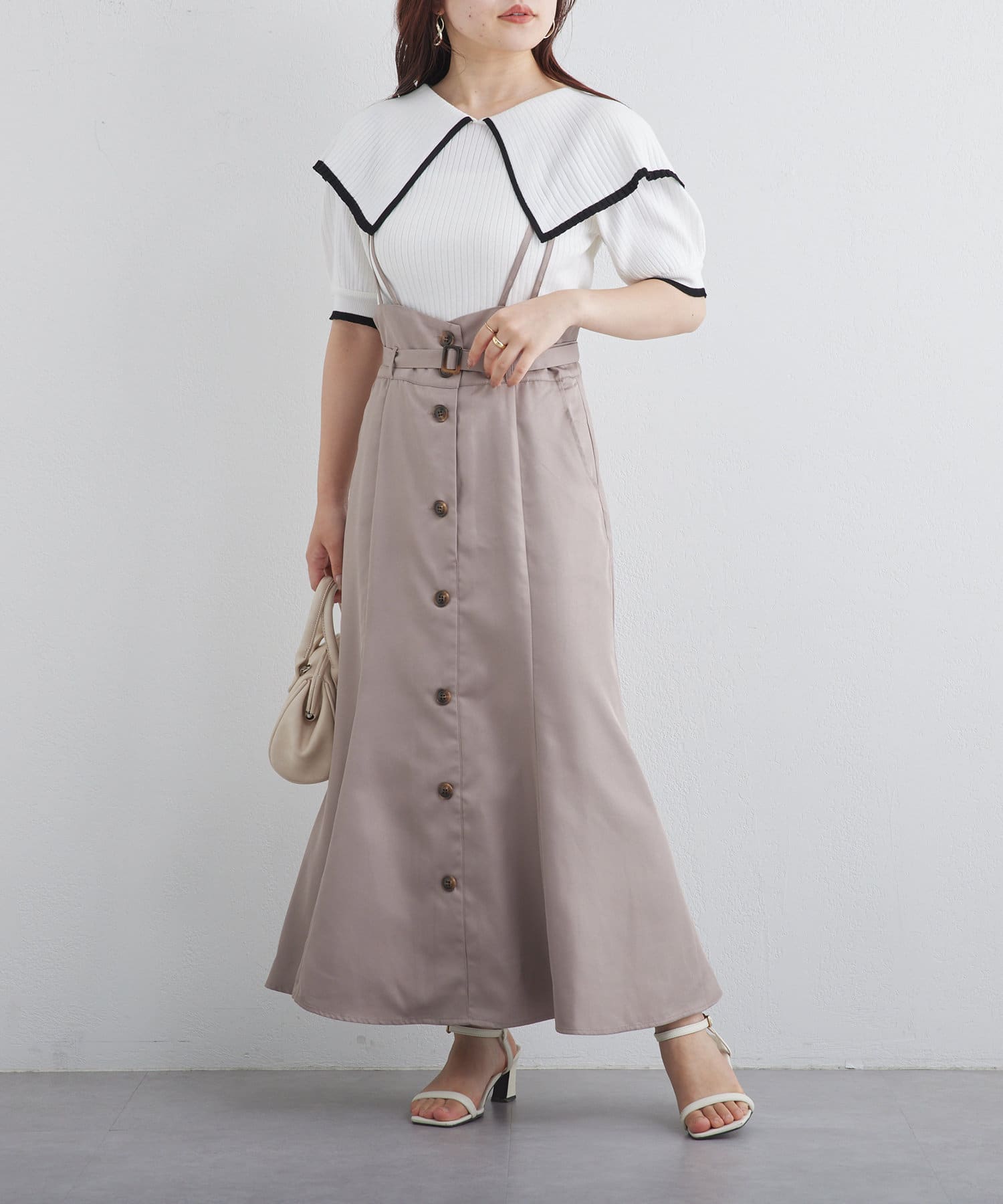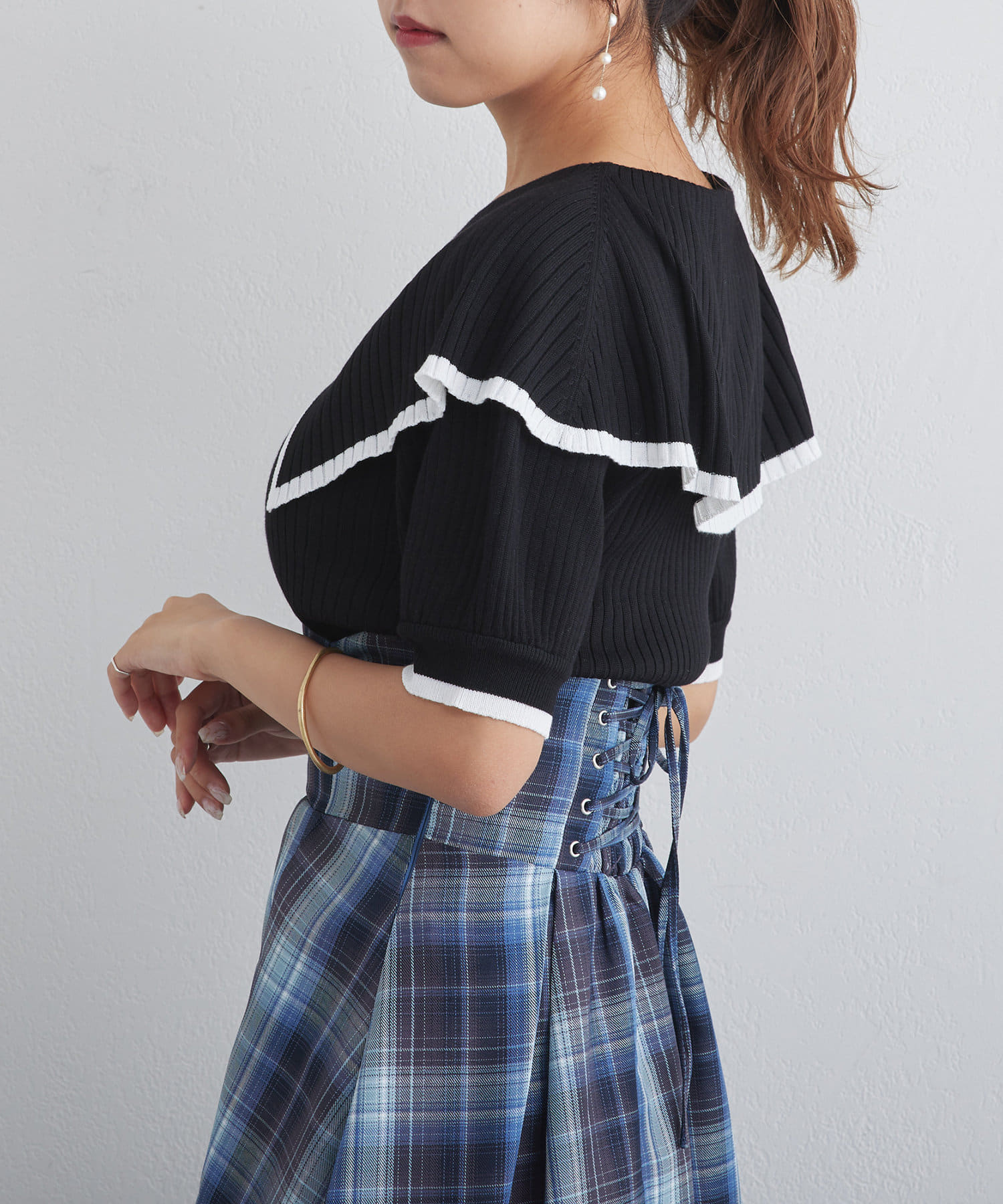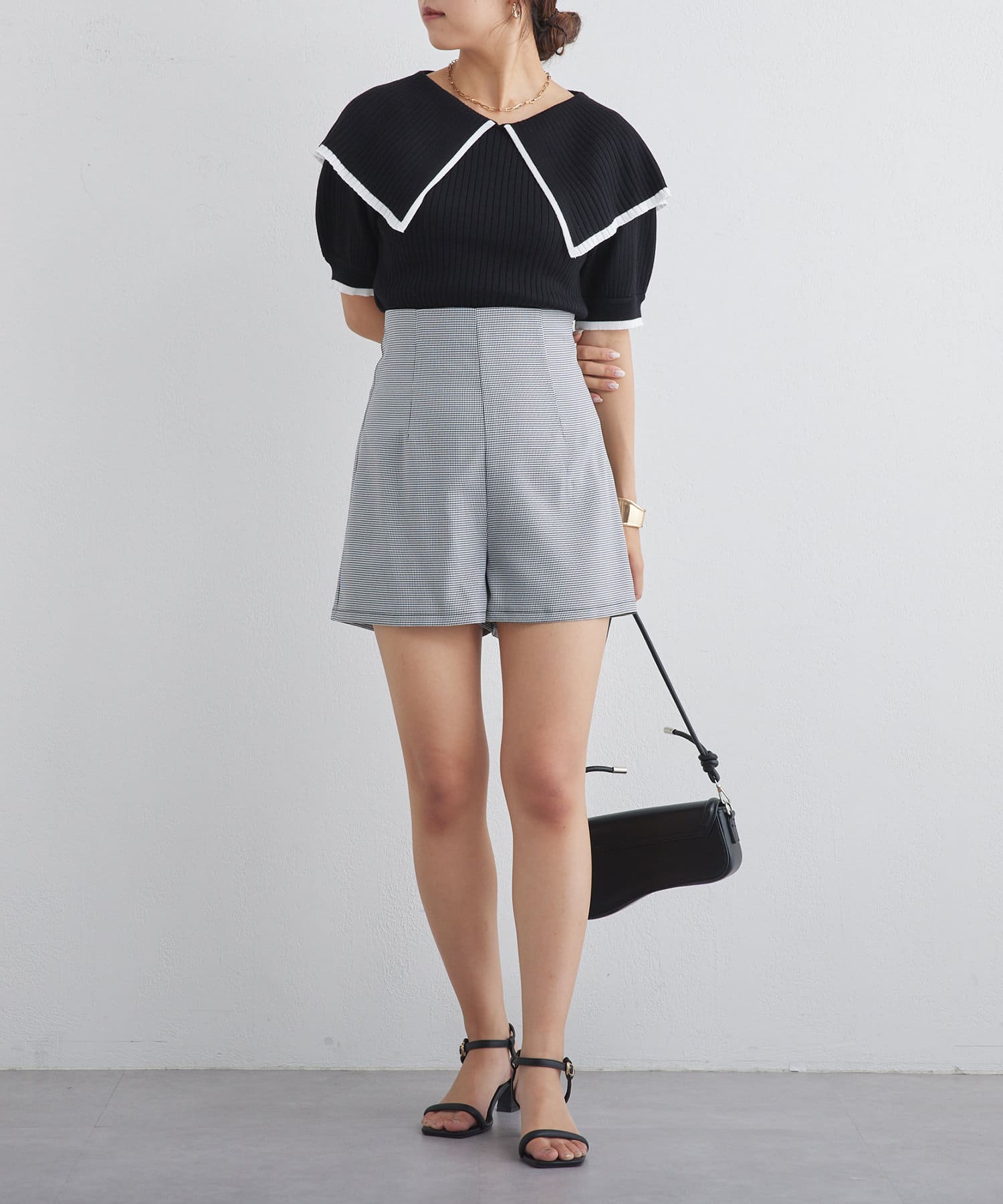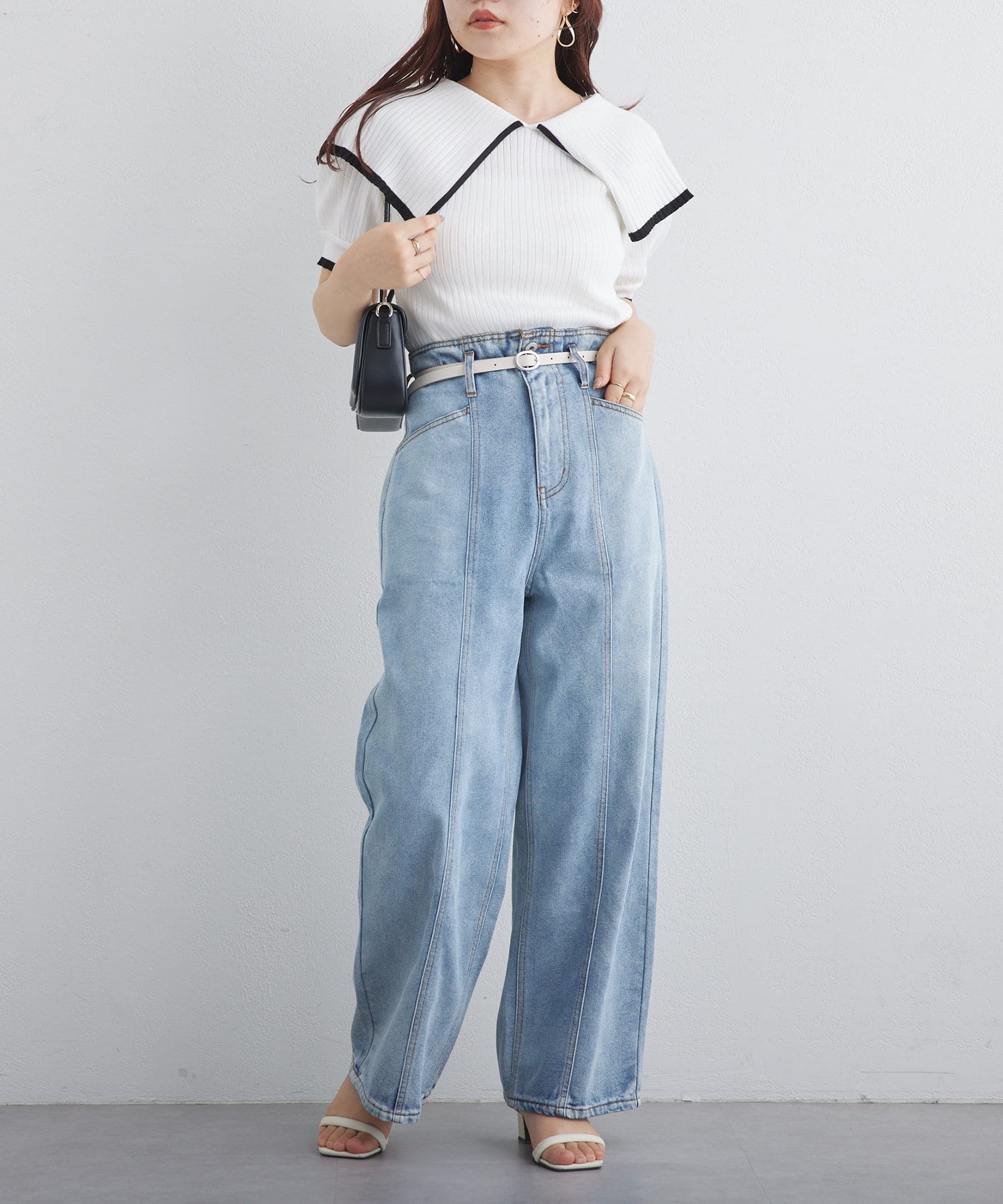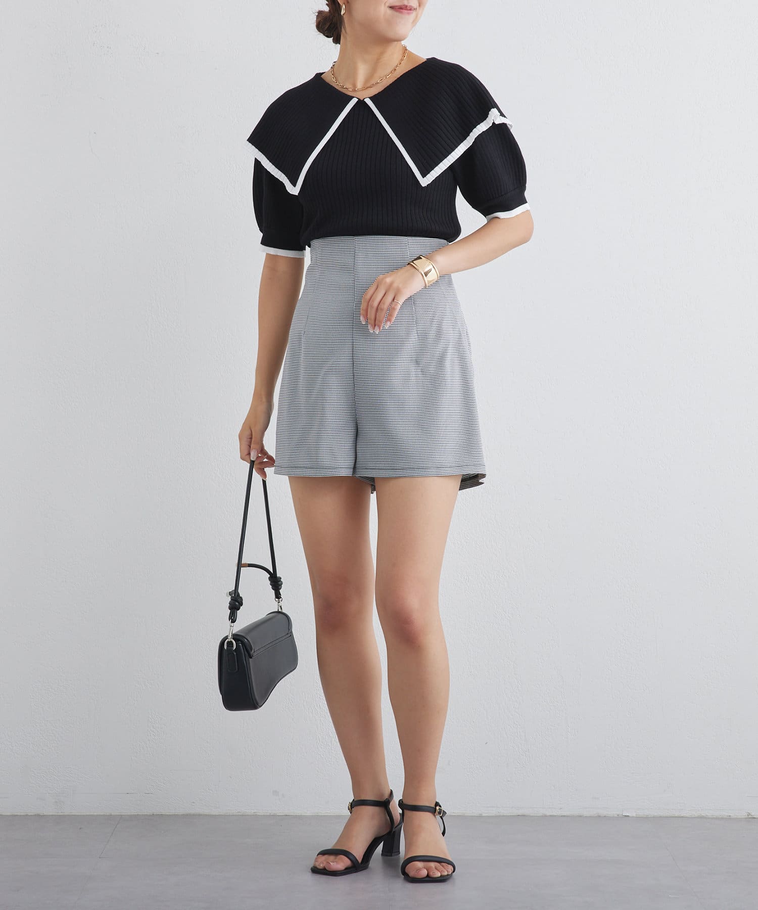 ・大きな襟で小顔効果抜群なのがうれしいトップス