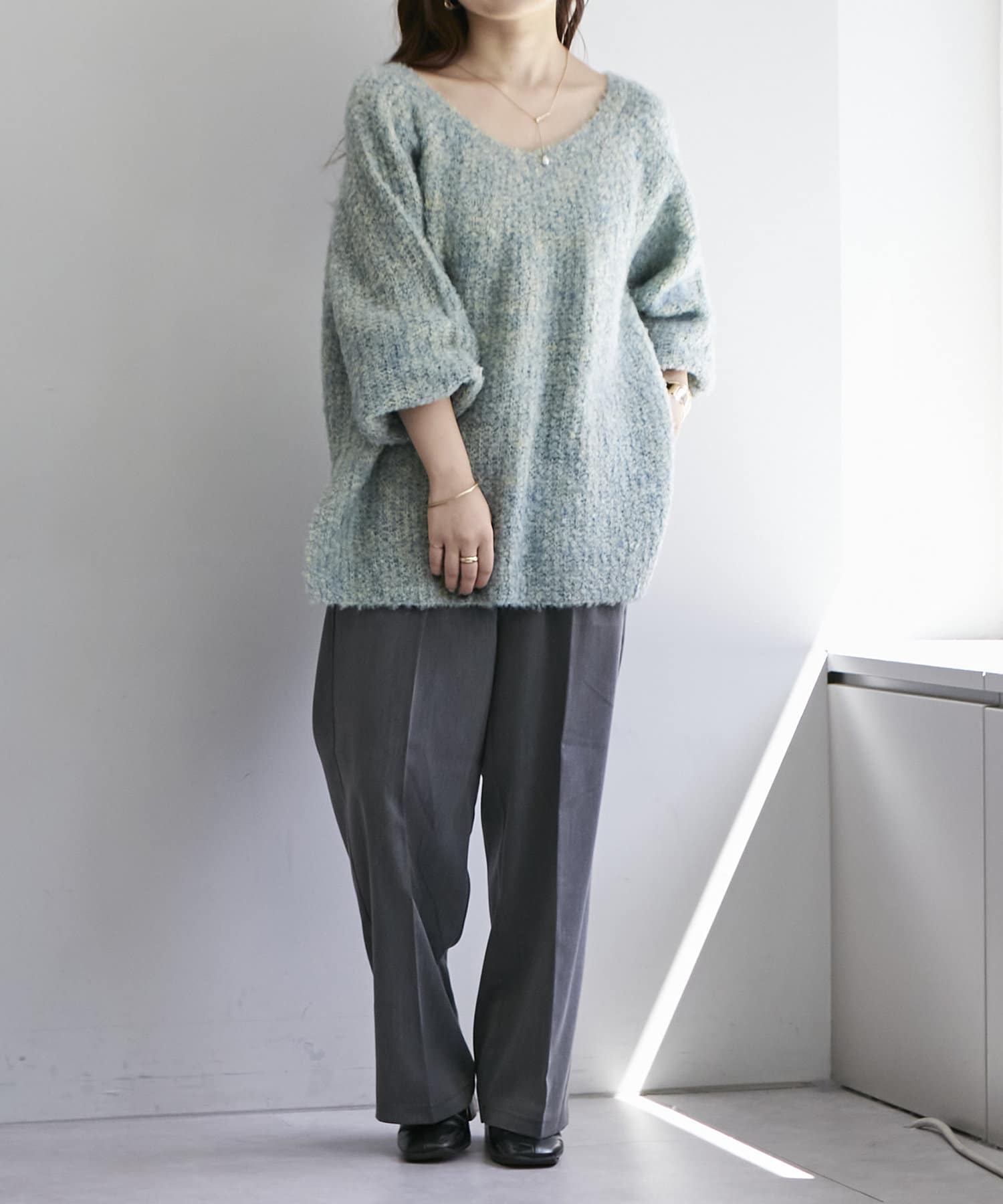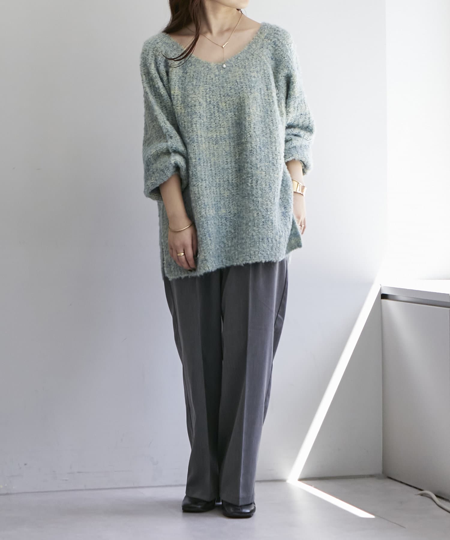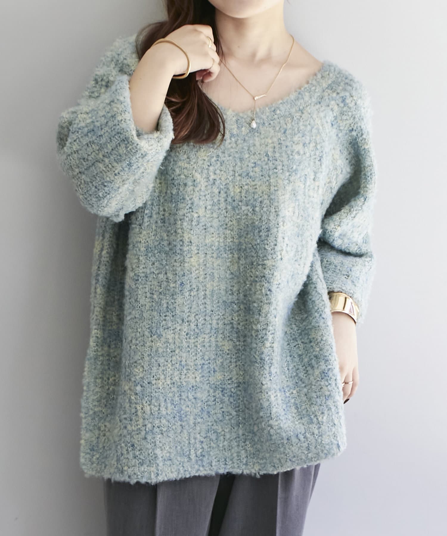 ・様々な色が織り交ざったミックスヤーンはふわっとした表面感もポイント。