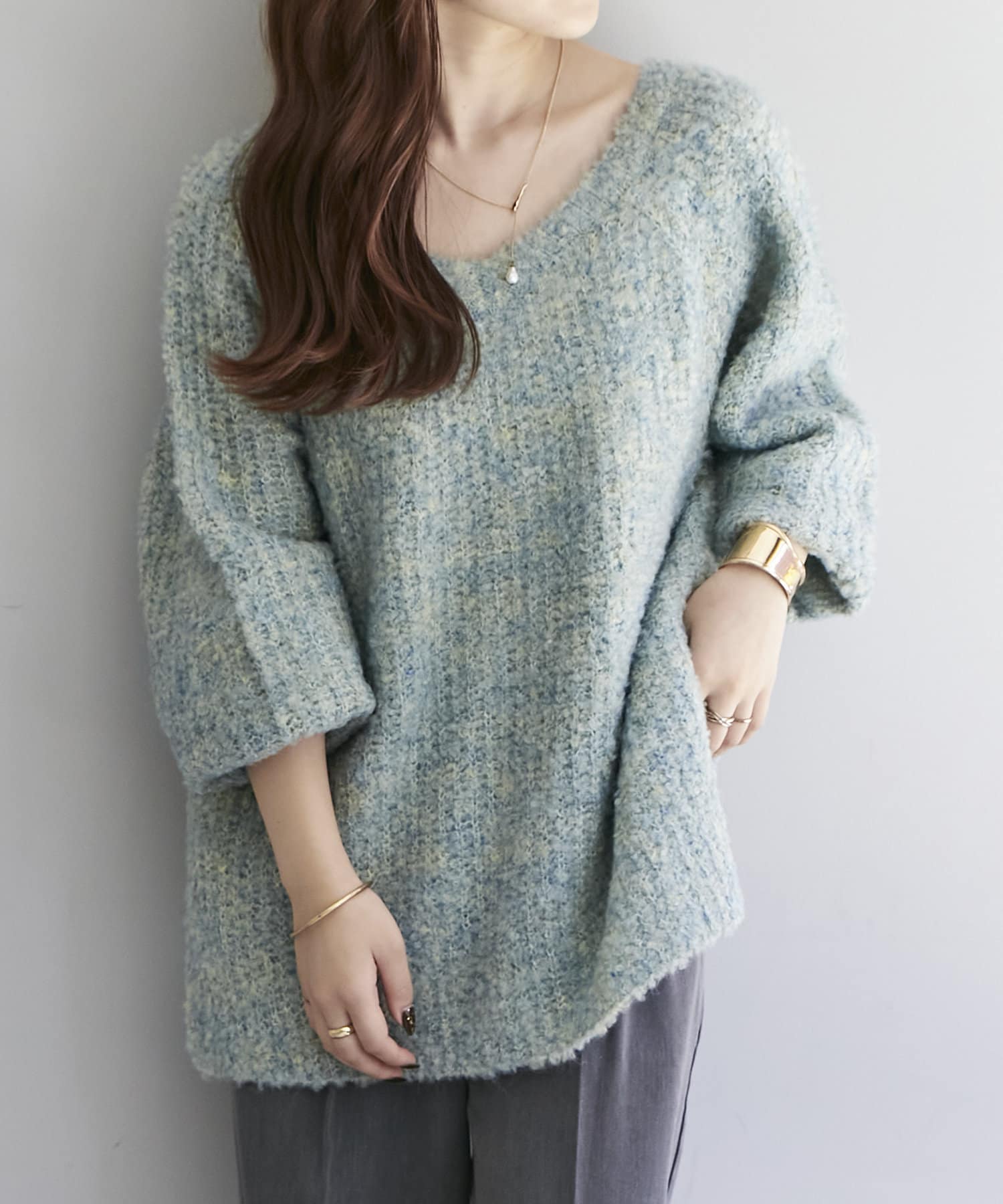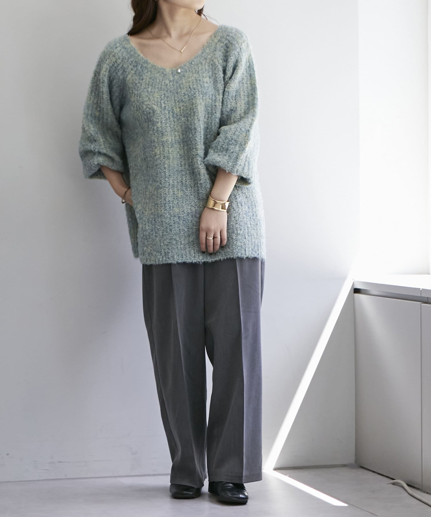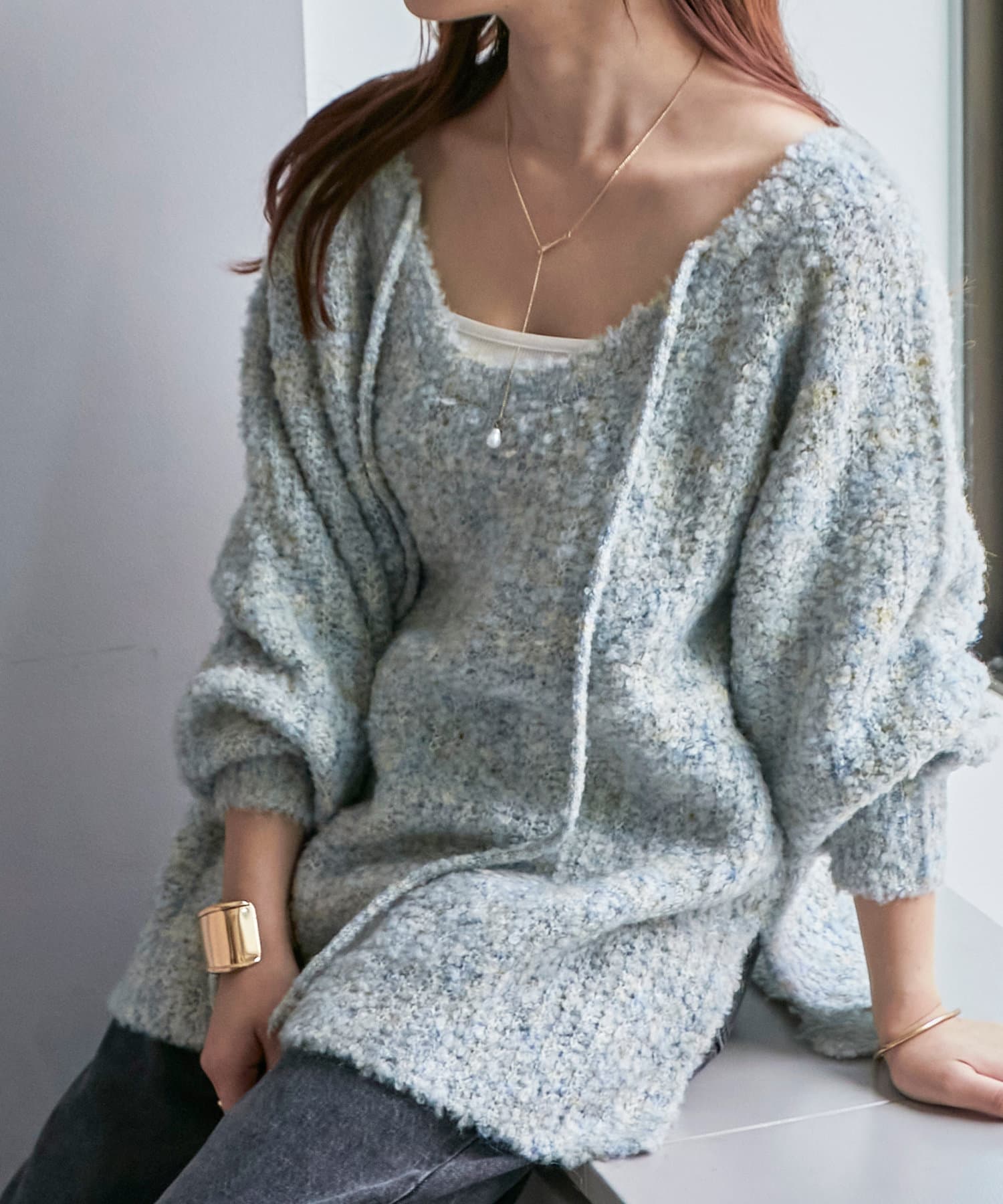 ・様々な色が織り交ざったミックスヤーンはふわっとした表面感もポイント。