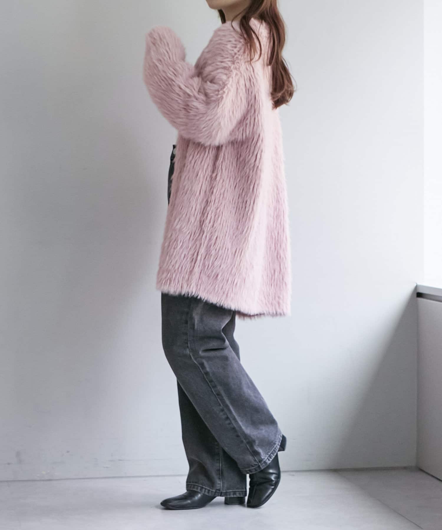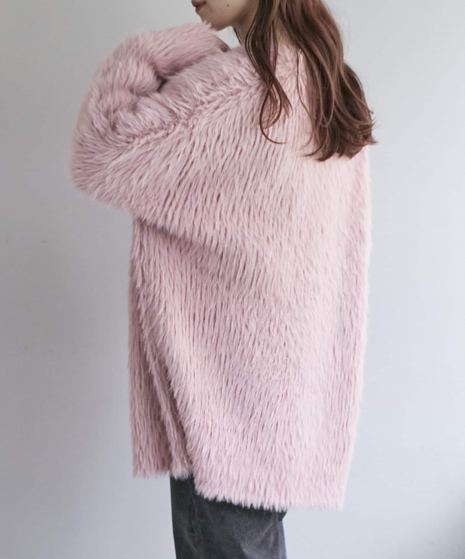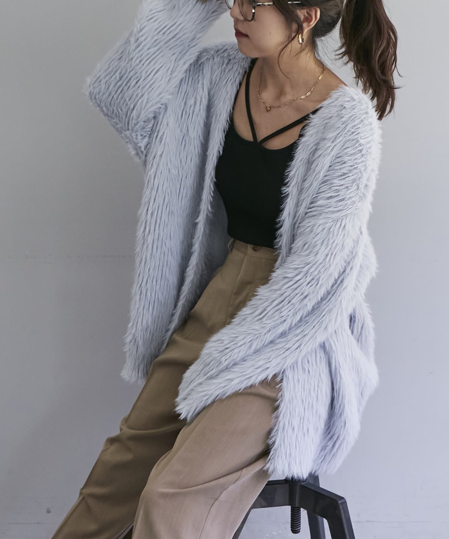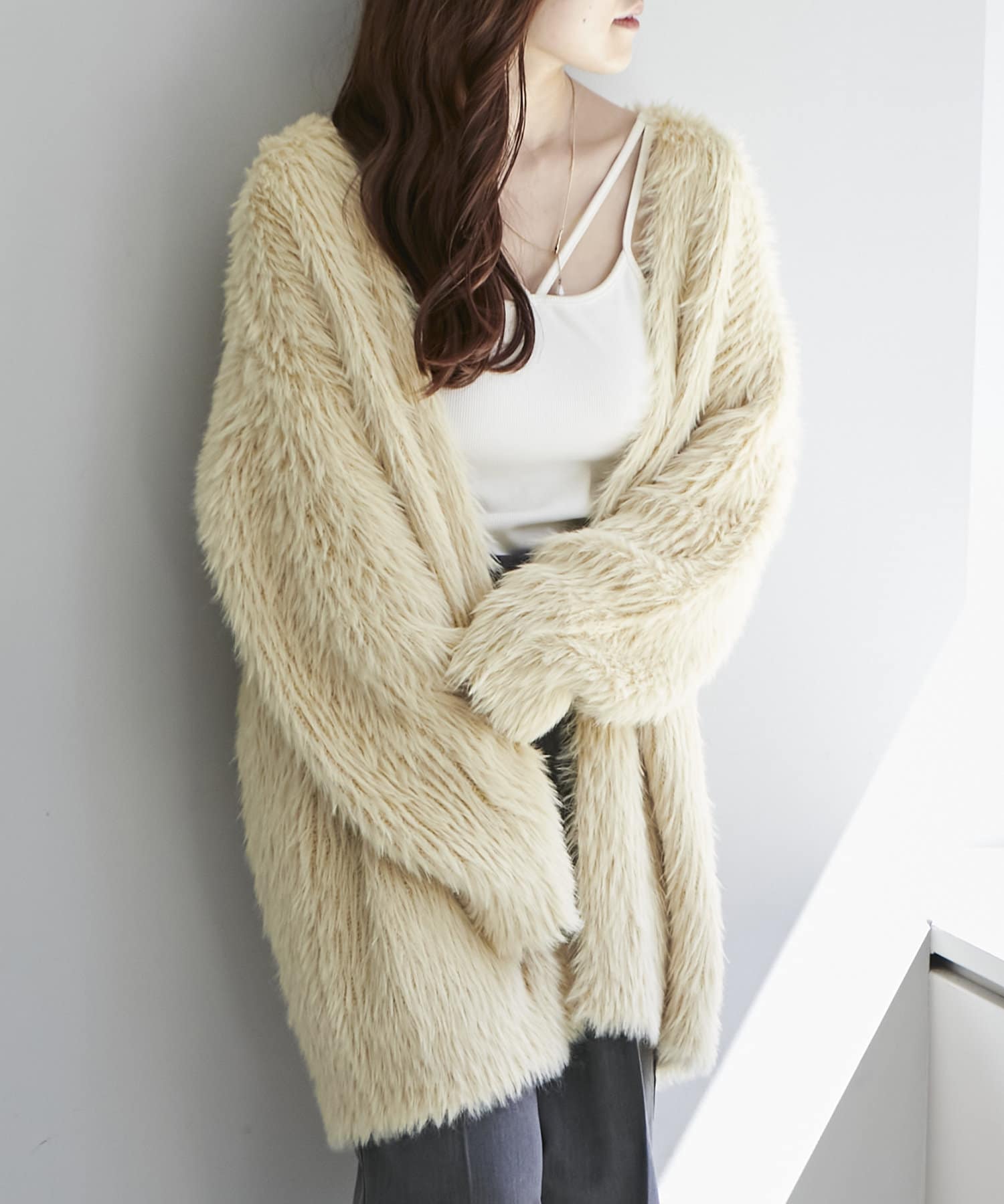 ・トレンドライクな毛足の長いシャギーカーディガン。