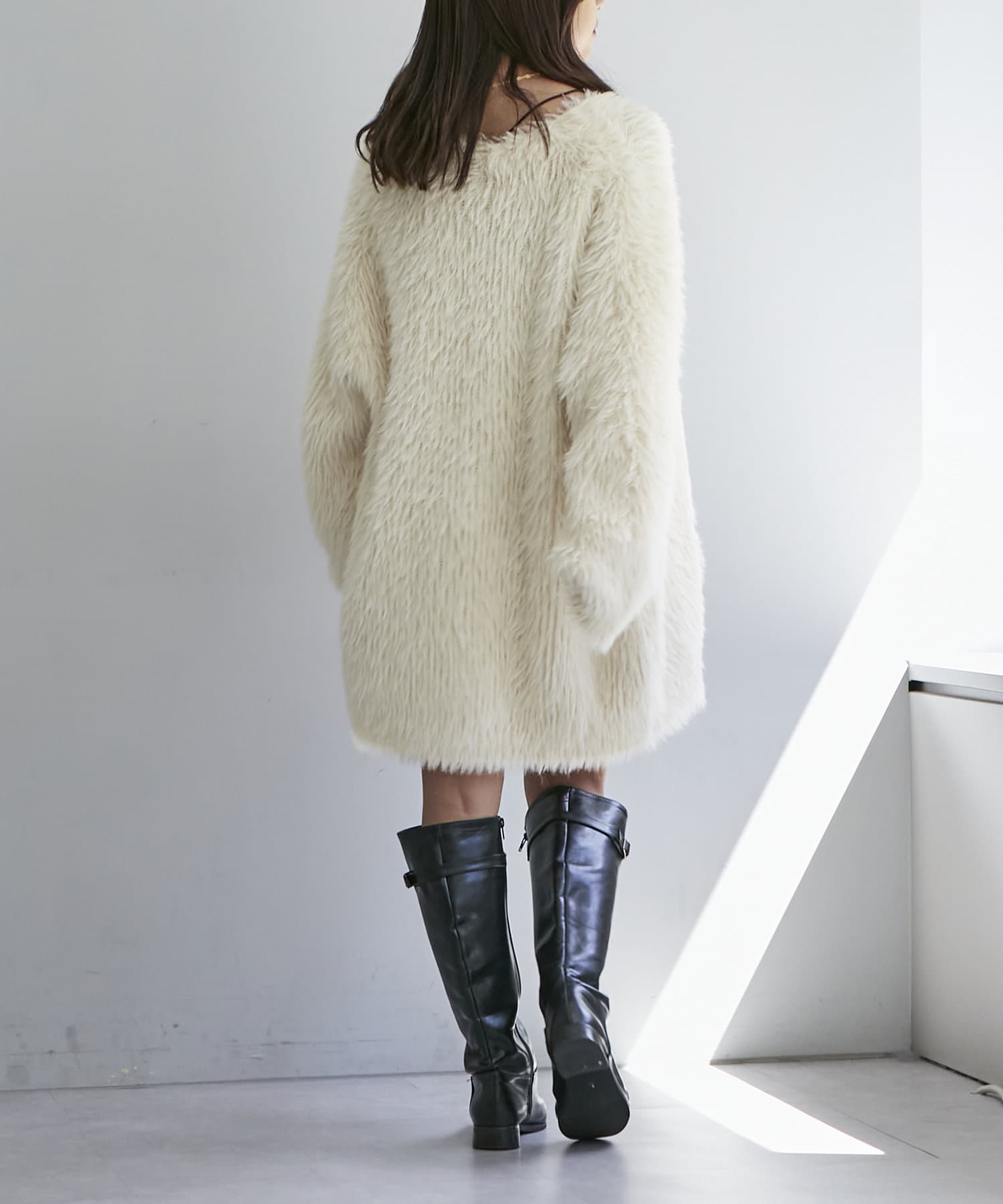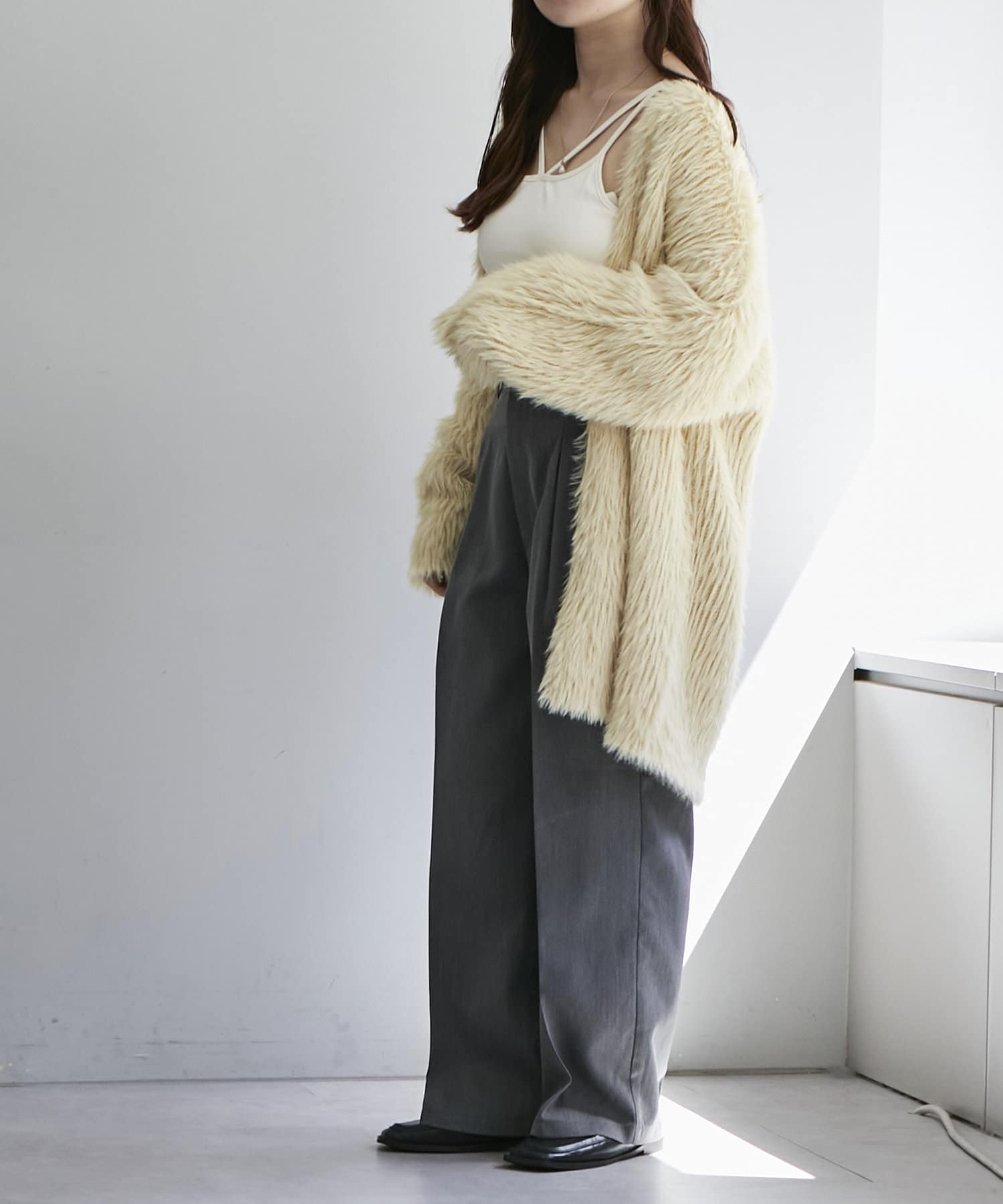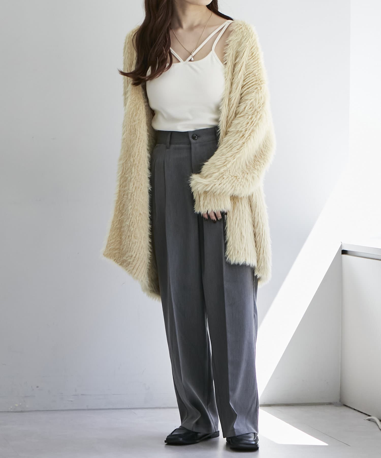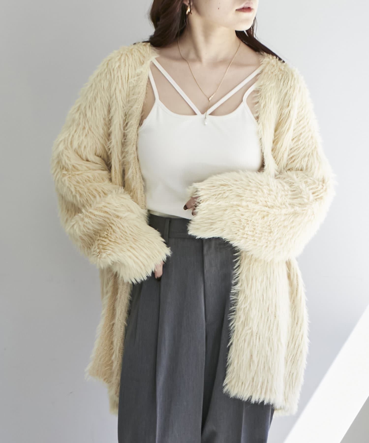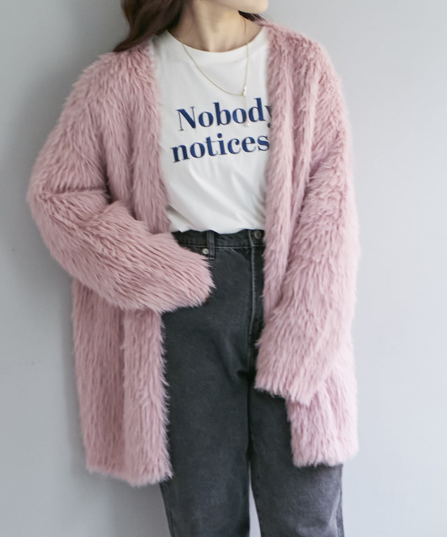 ・トレンドライクな毛足の長いシャギーカーディガン。