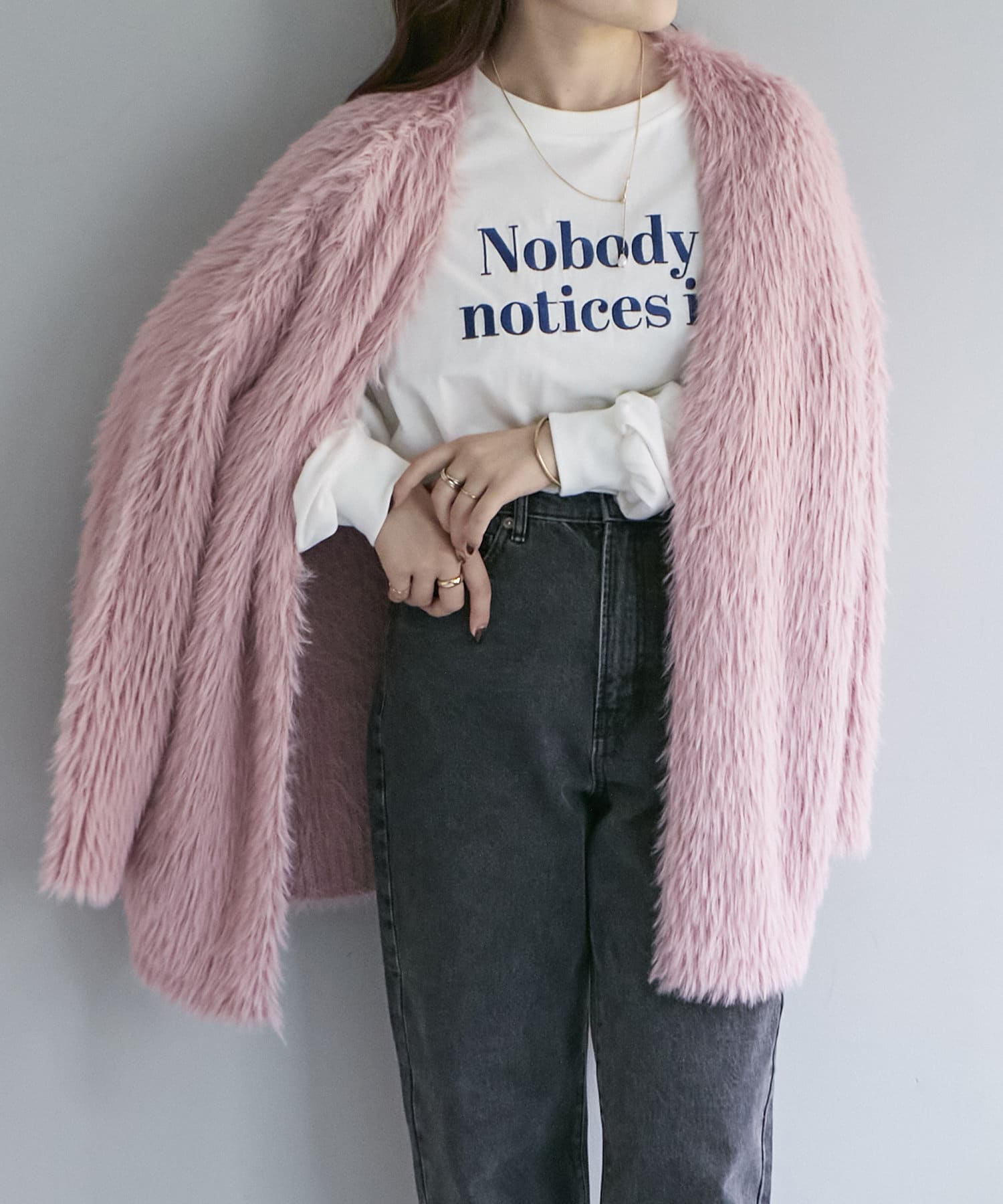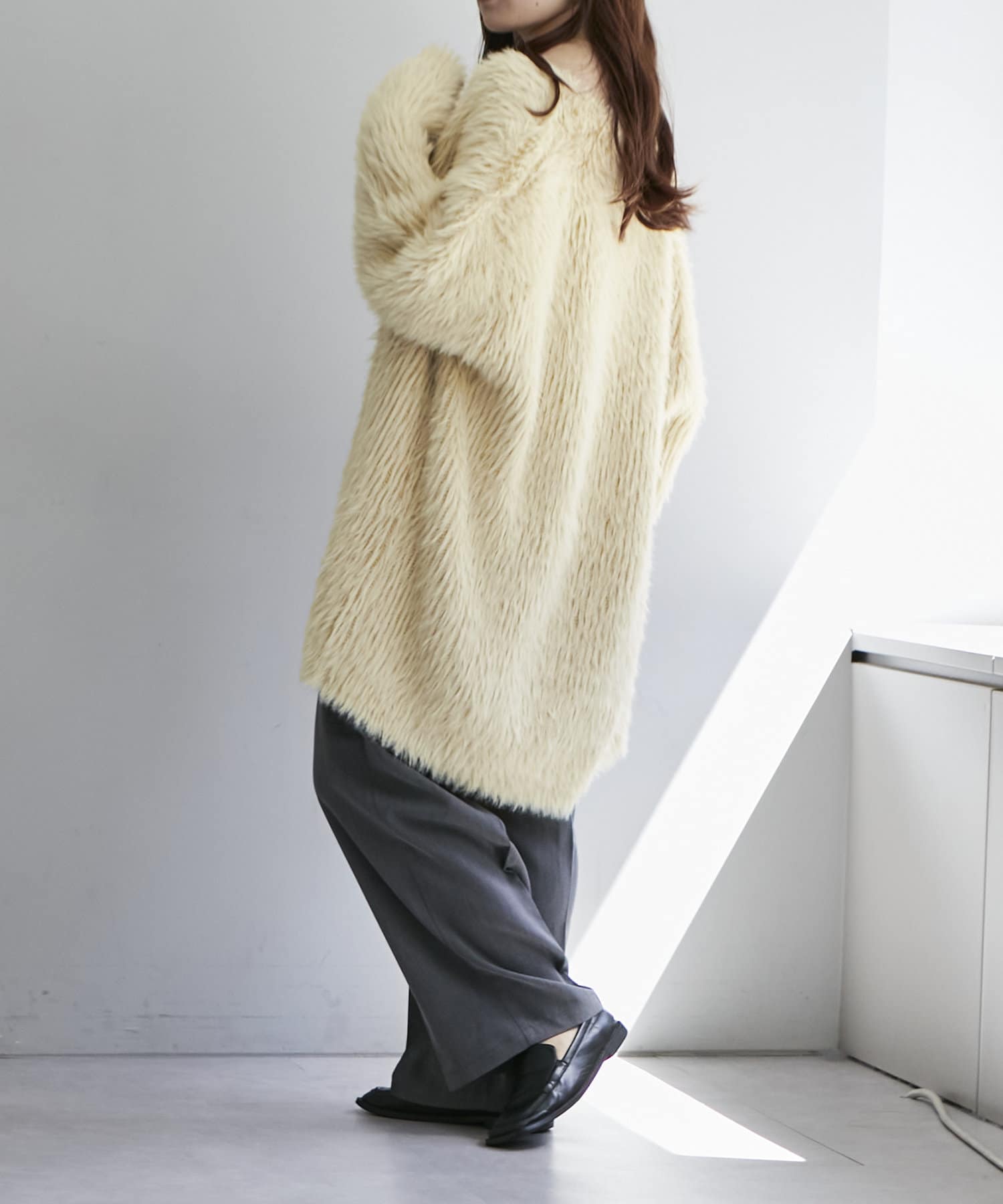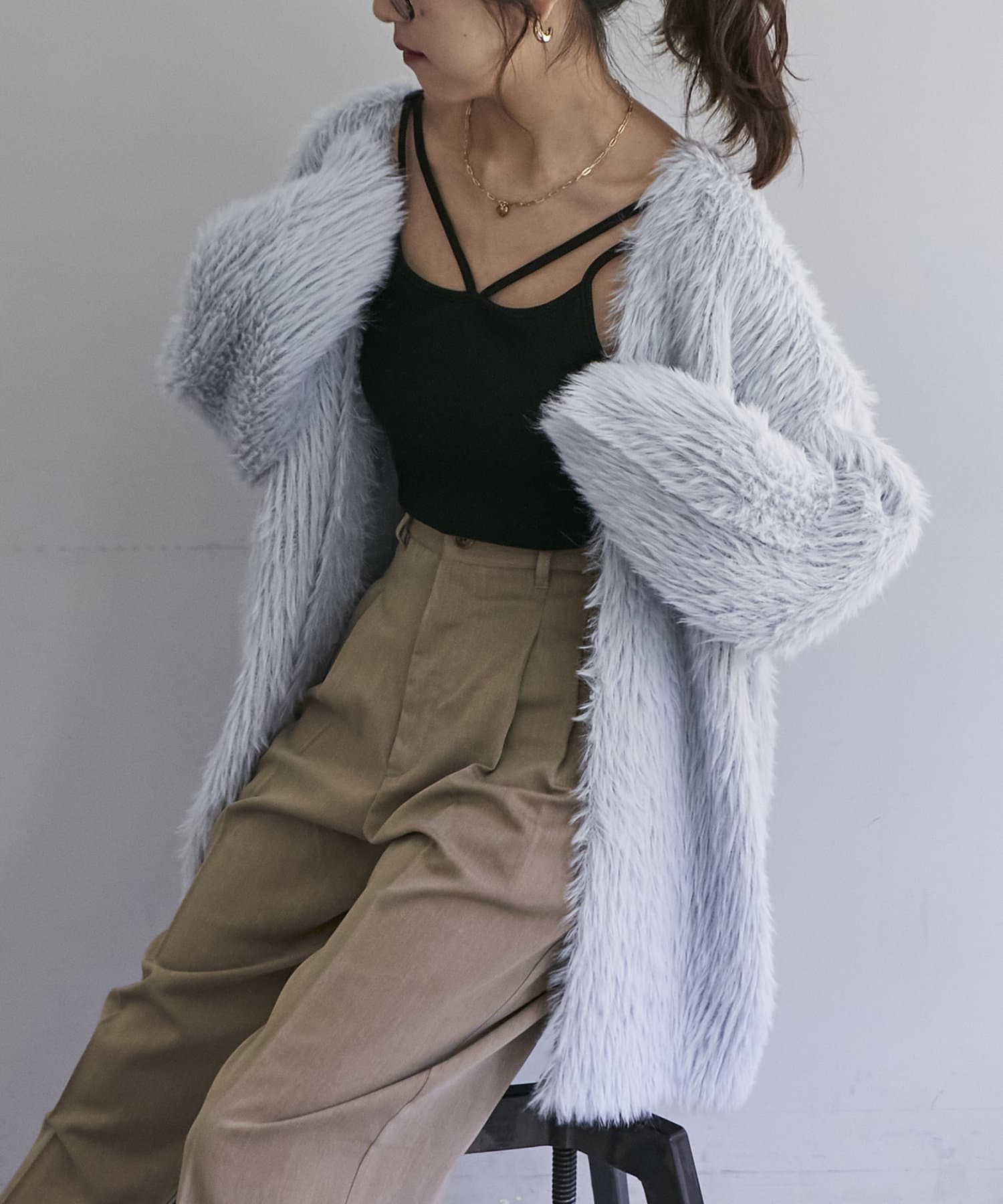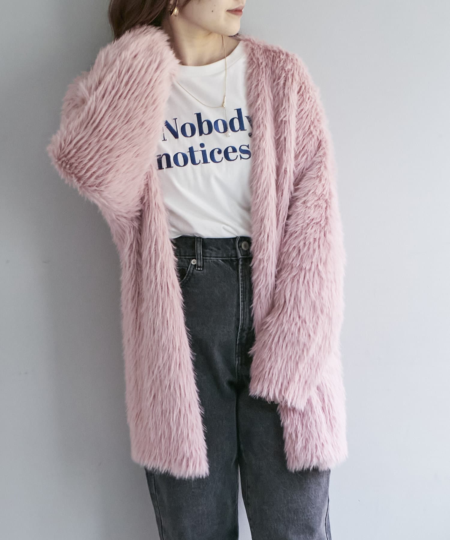 ・トレンドライクな毛足の長いシャギーカーディガン。