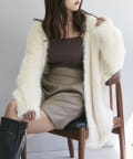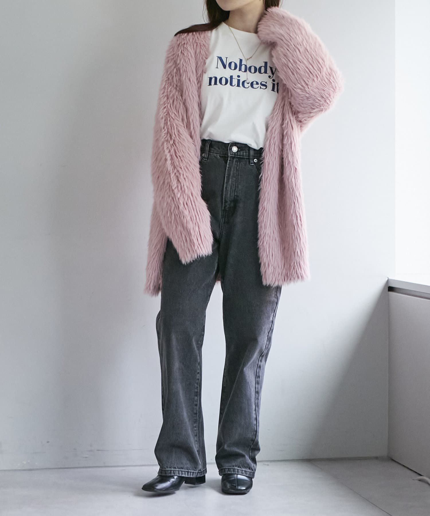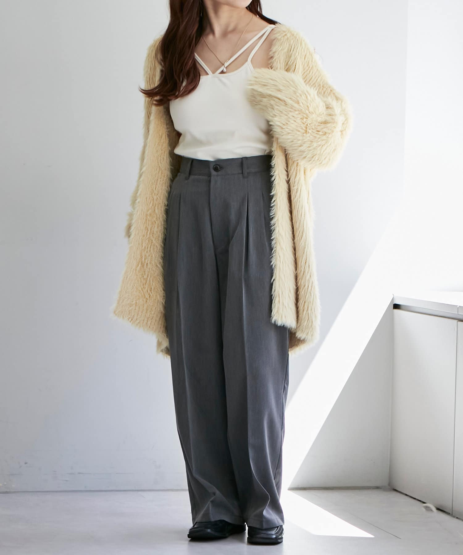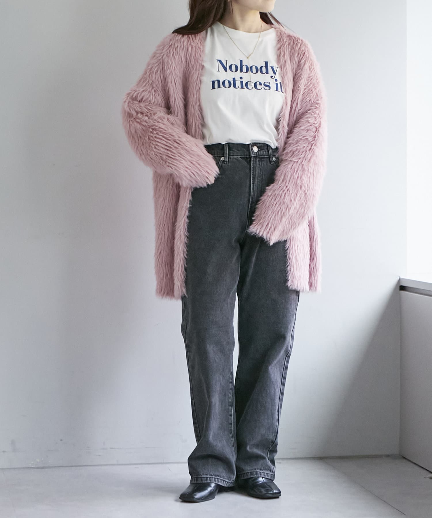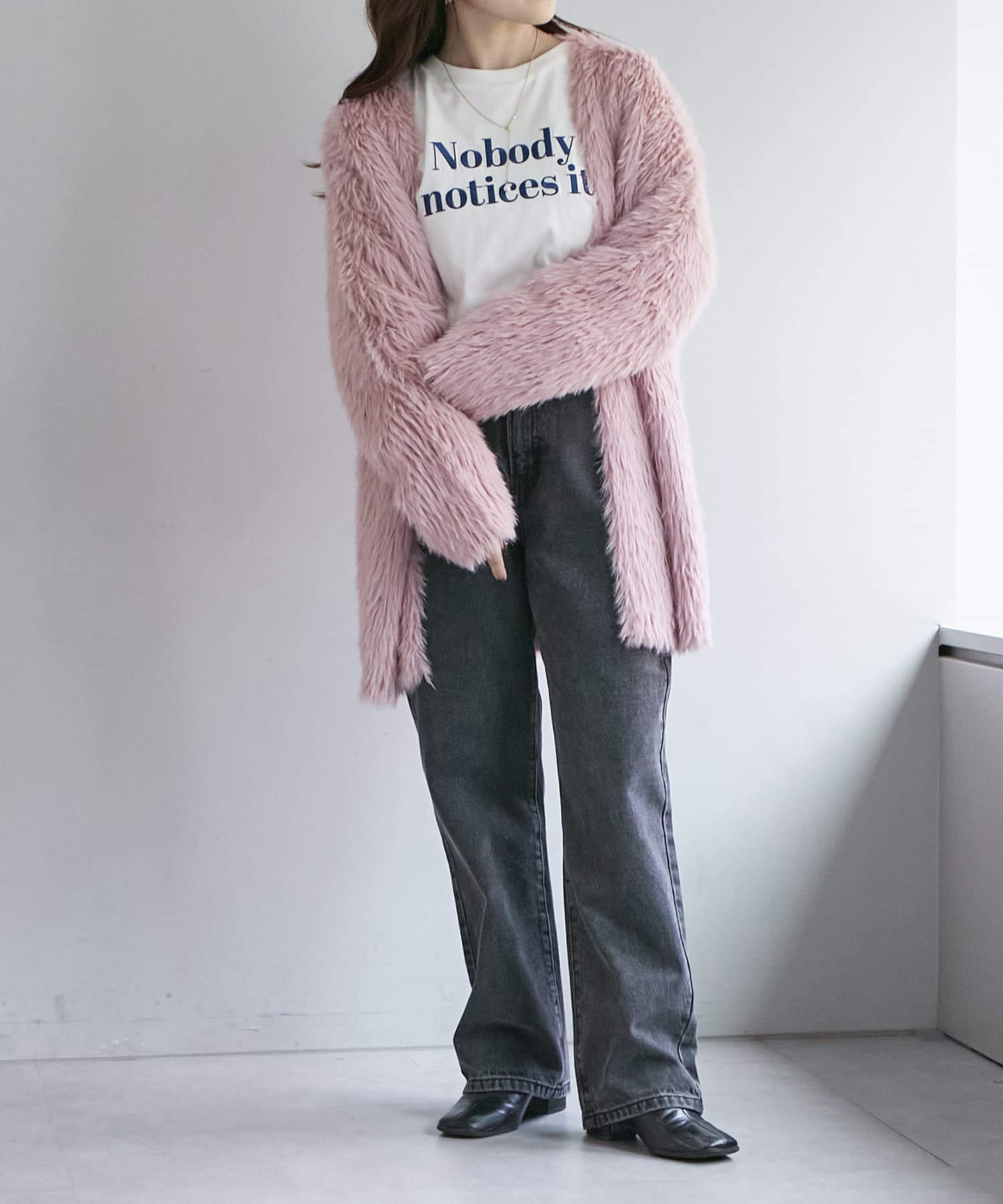 ・トレンドライクな毛足の長いシャギーカーディガン。