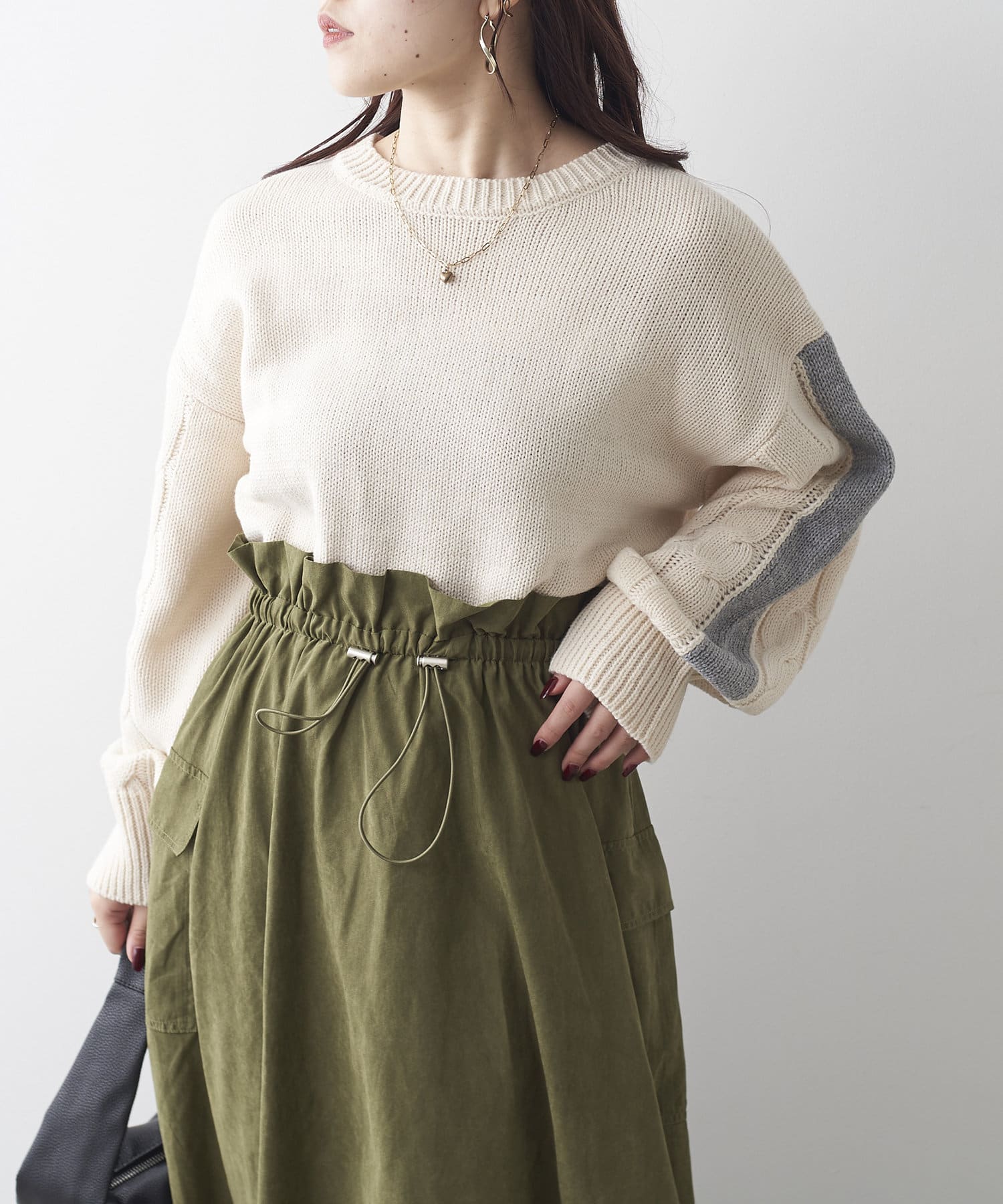 NICE CLAUP / OLIVE des OLIVE OUTLET(ナイスクラップ  / オリーブ デ オリーブ アウトレット) 袖ラインケーブルニット