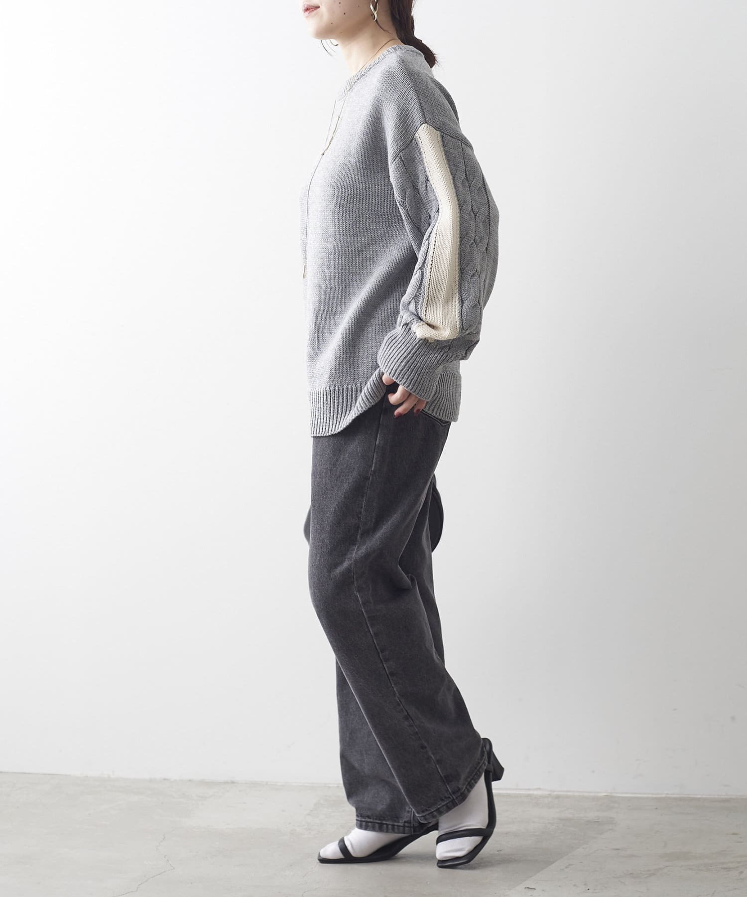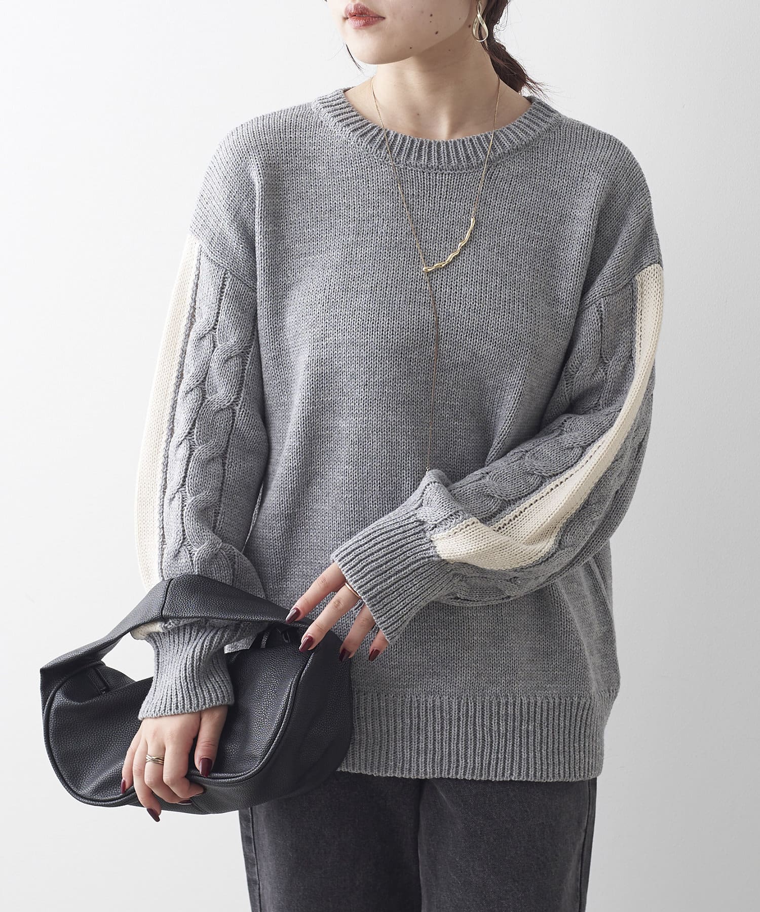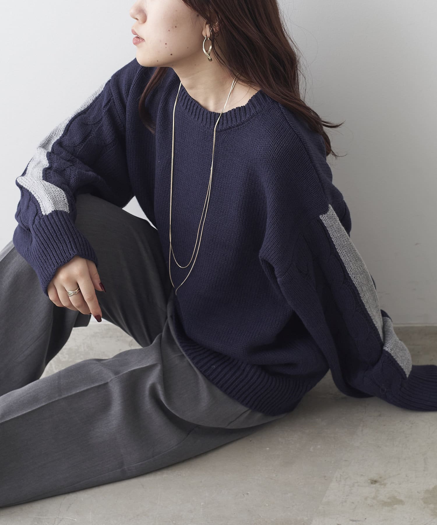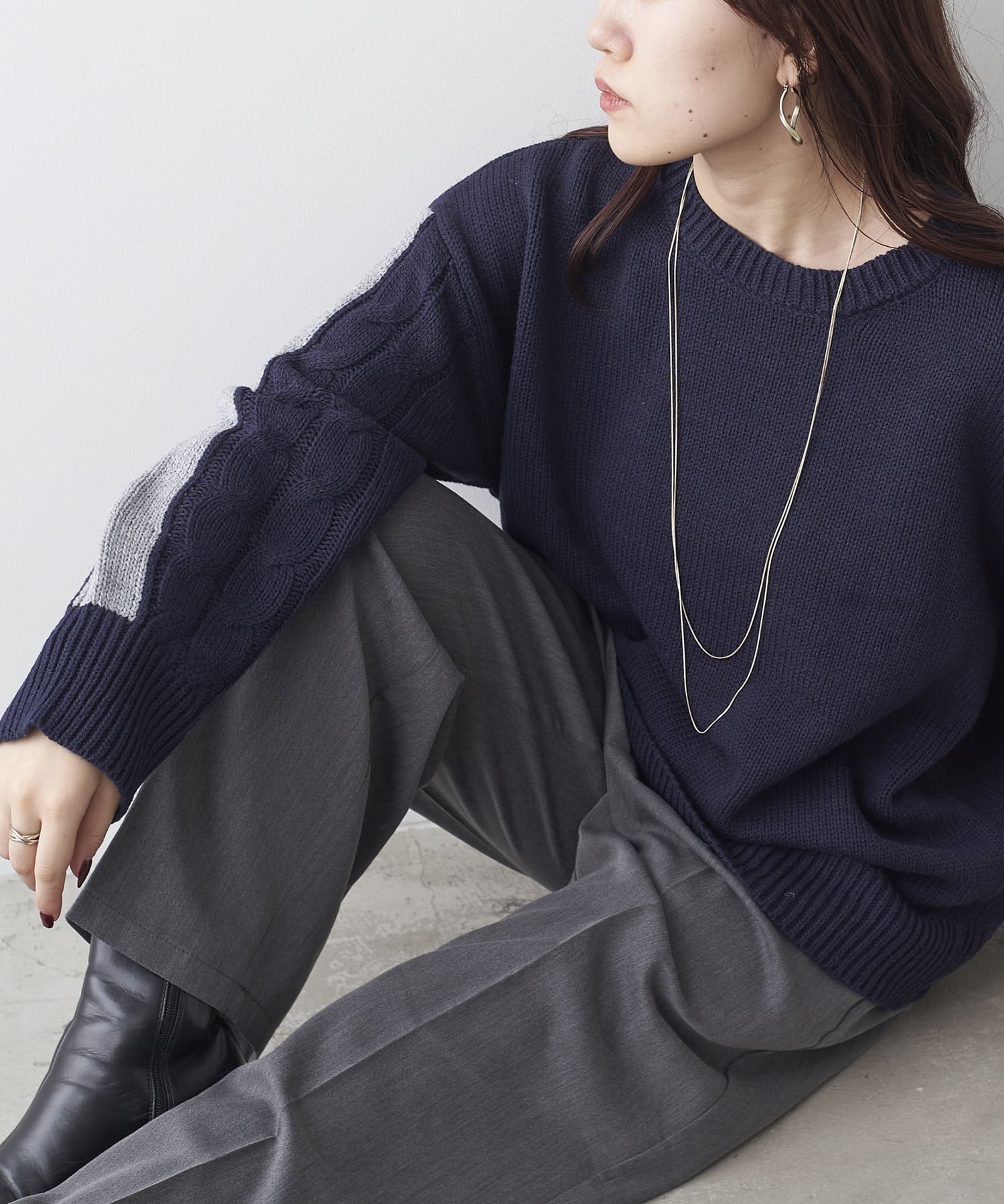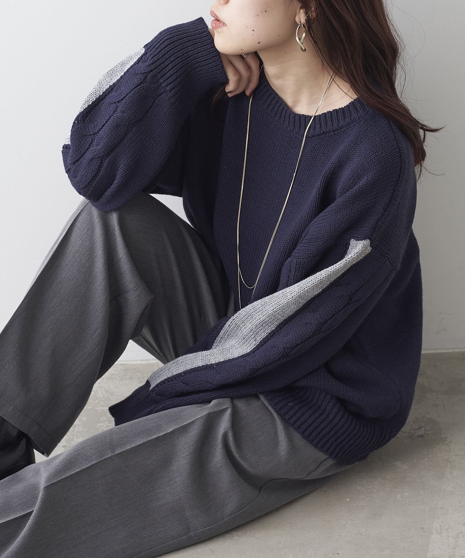 TOP > NICE CLAUP / OLIVE des OLIVE OUTLET > レディース > トップス > ニット/セーター > 袖ラインケーブルニット