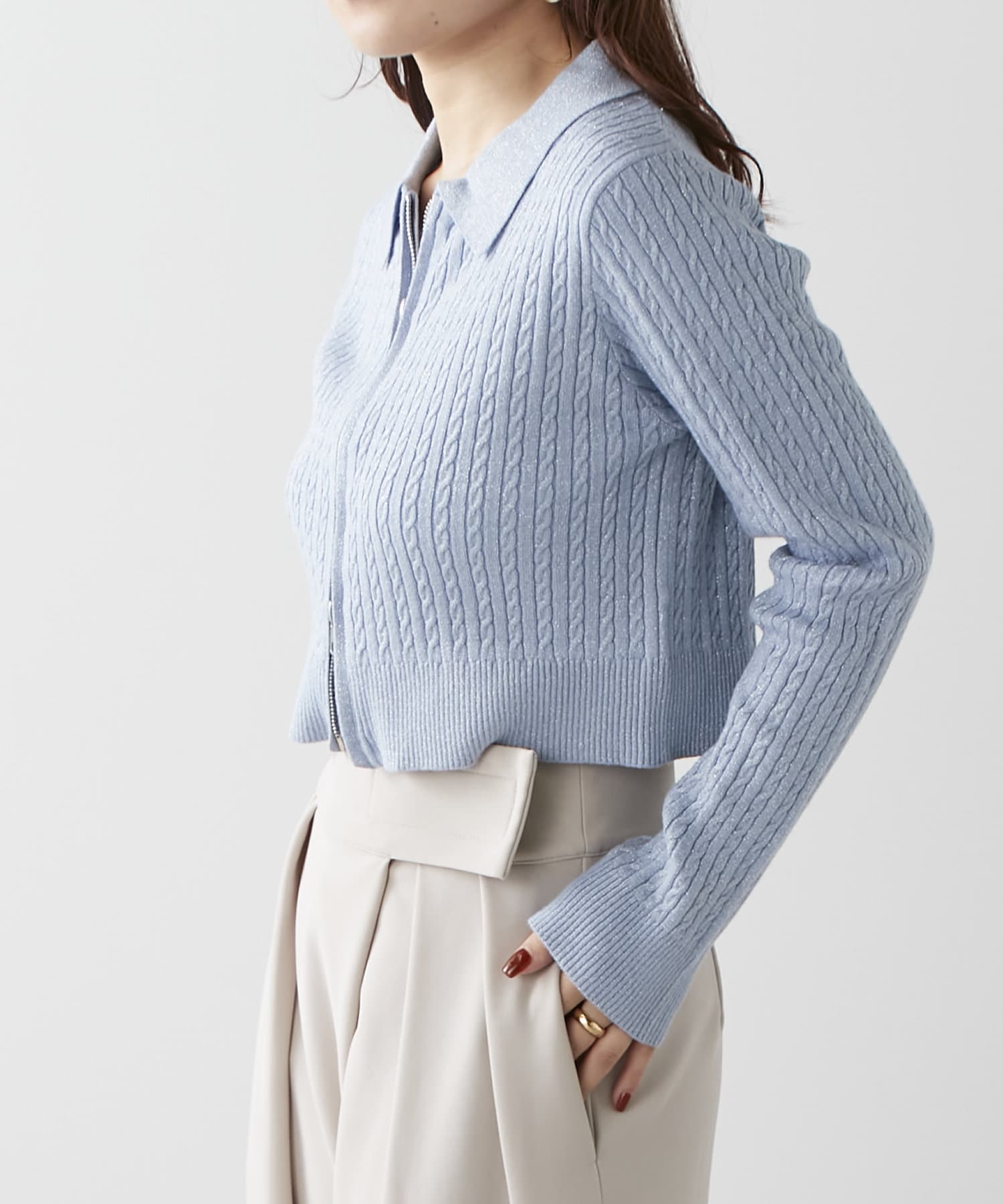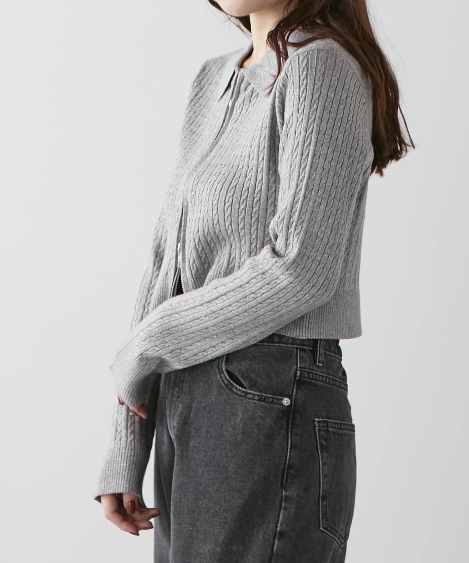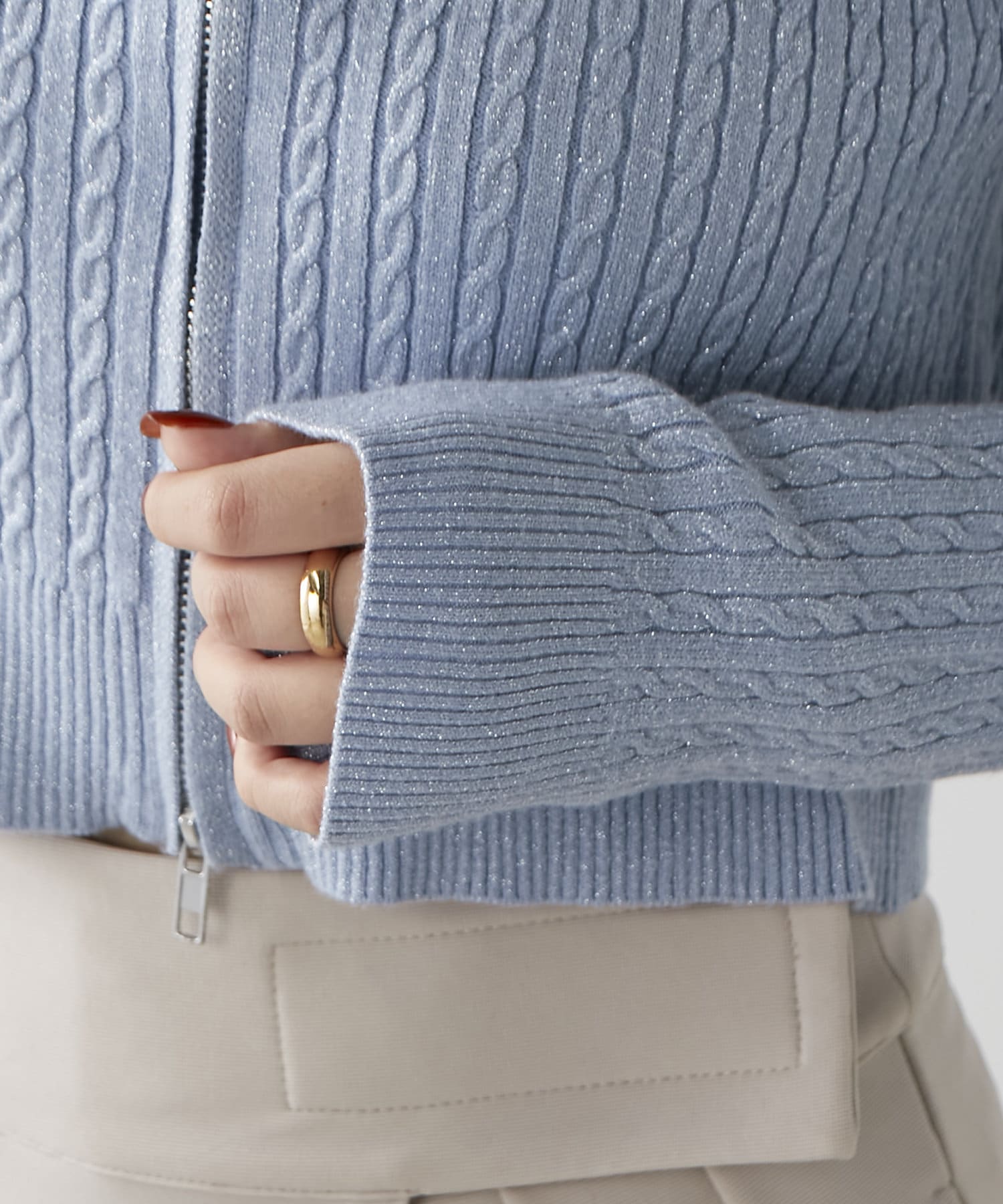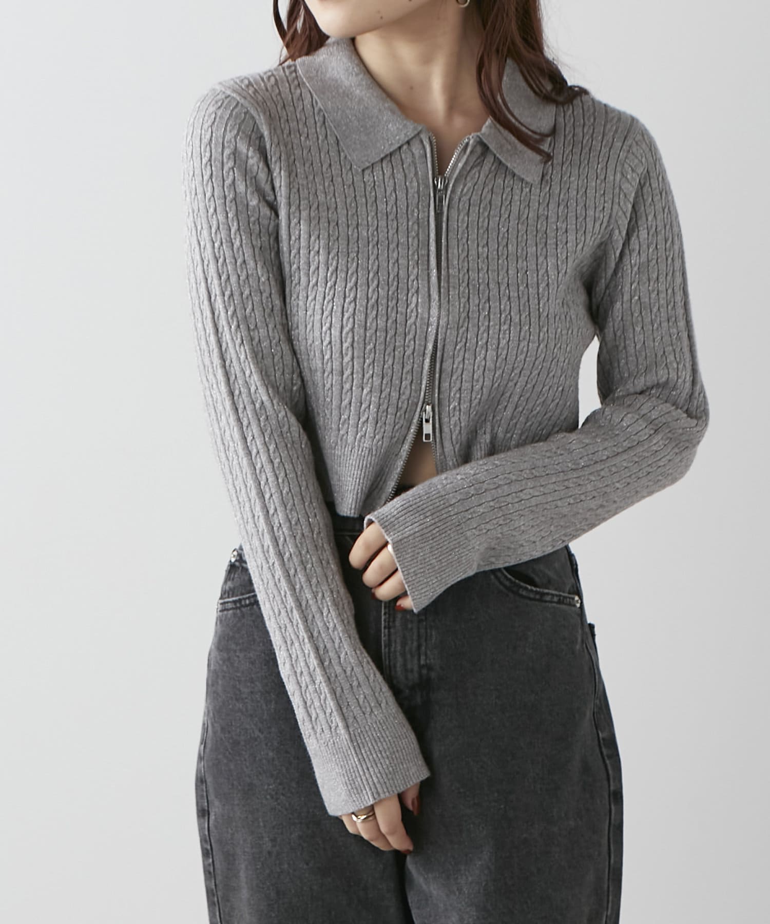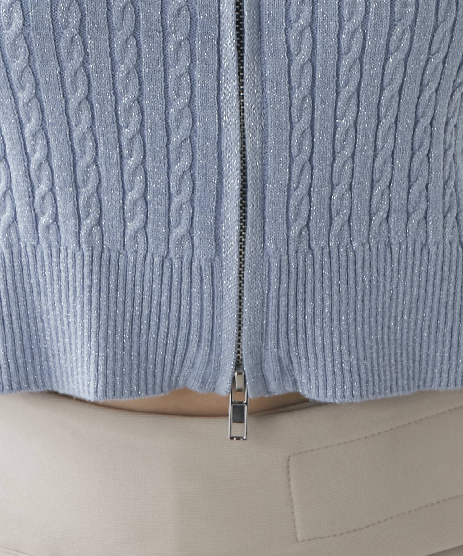 wジップラメケーブルニット