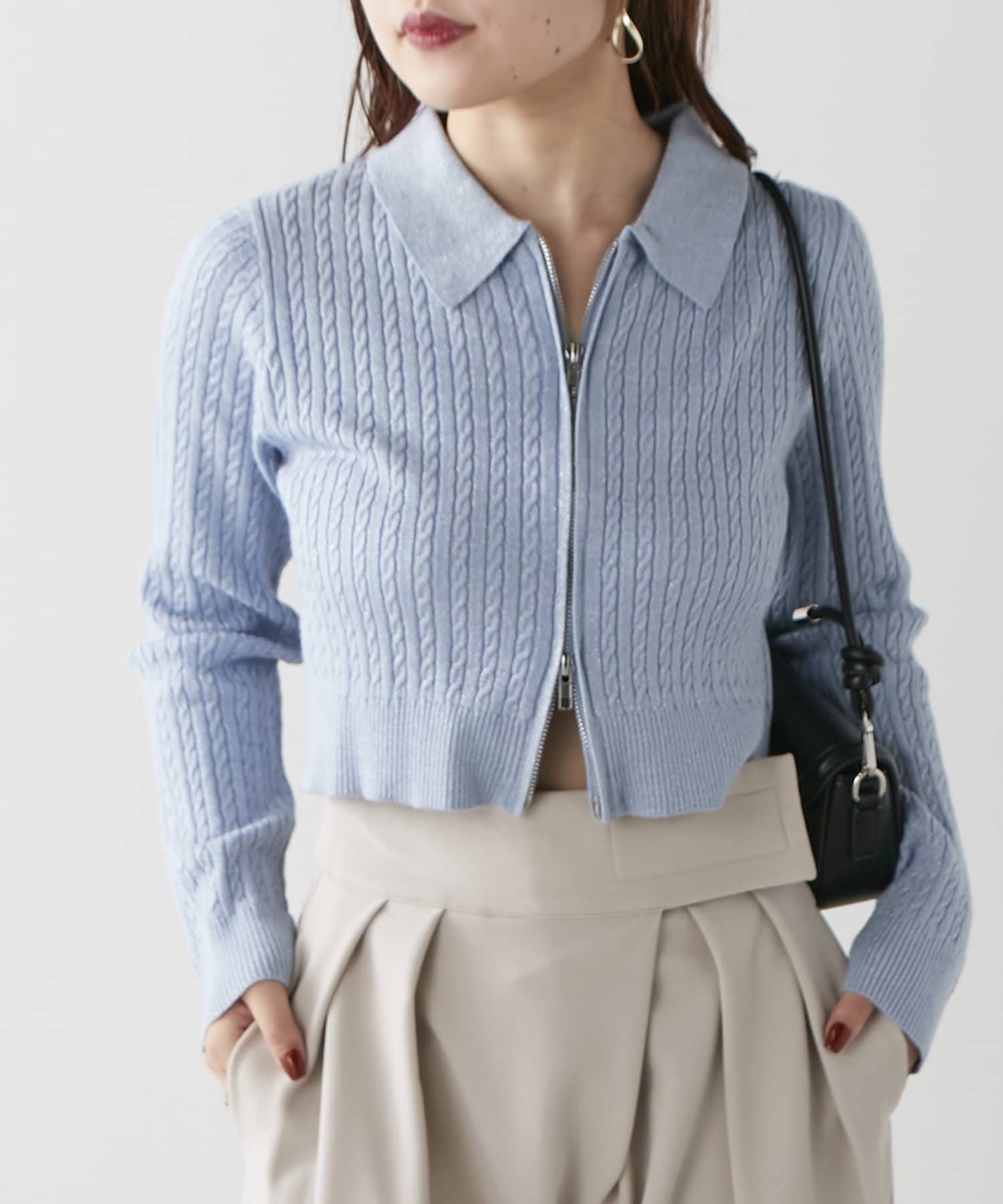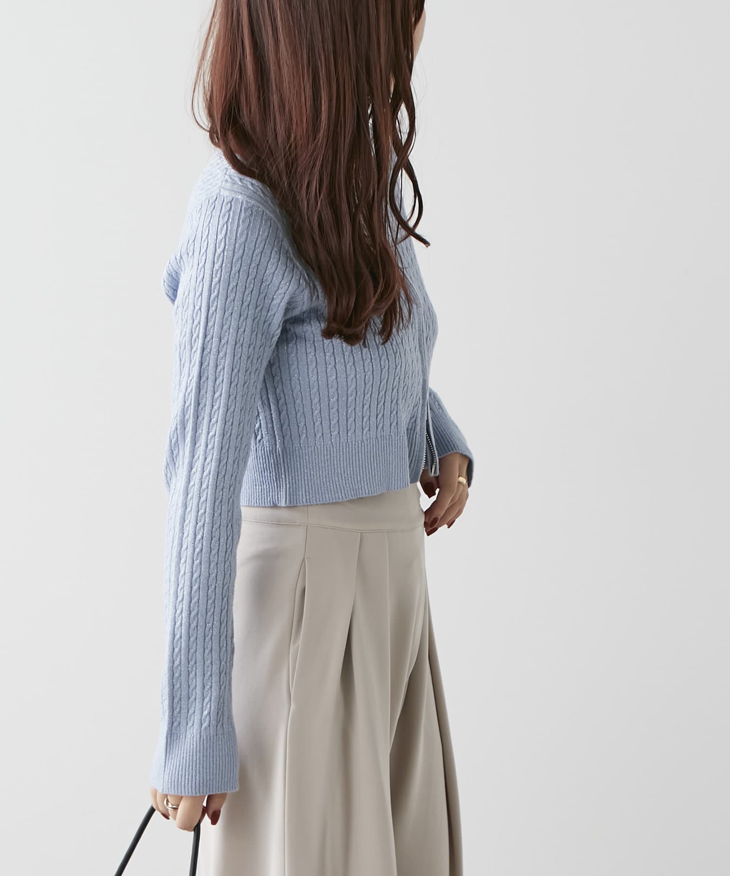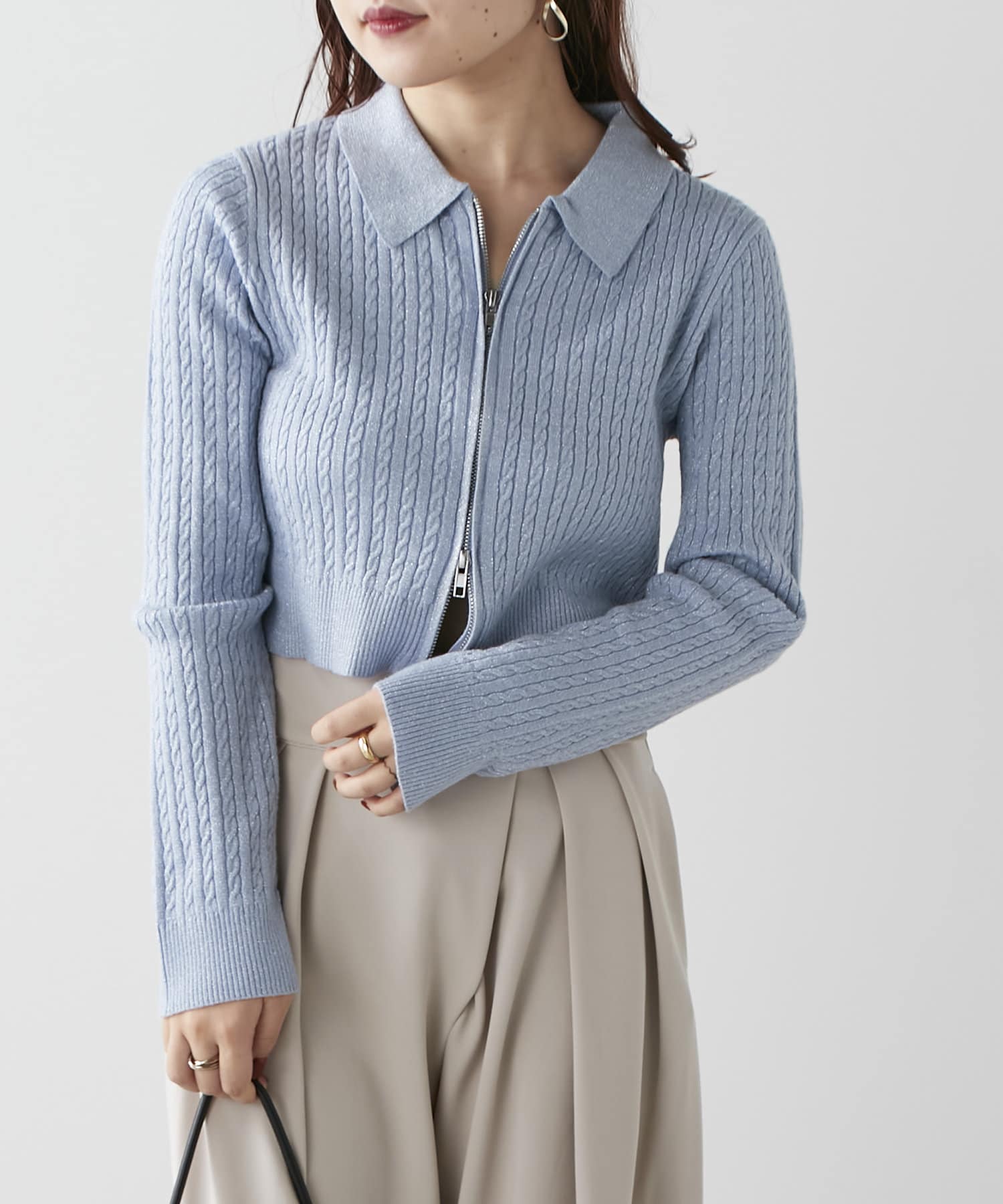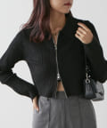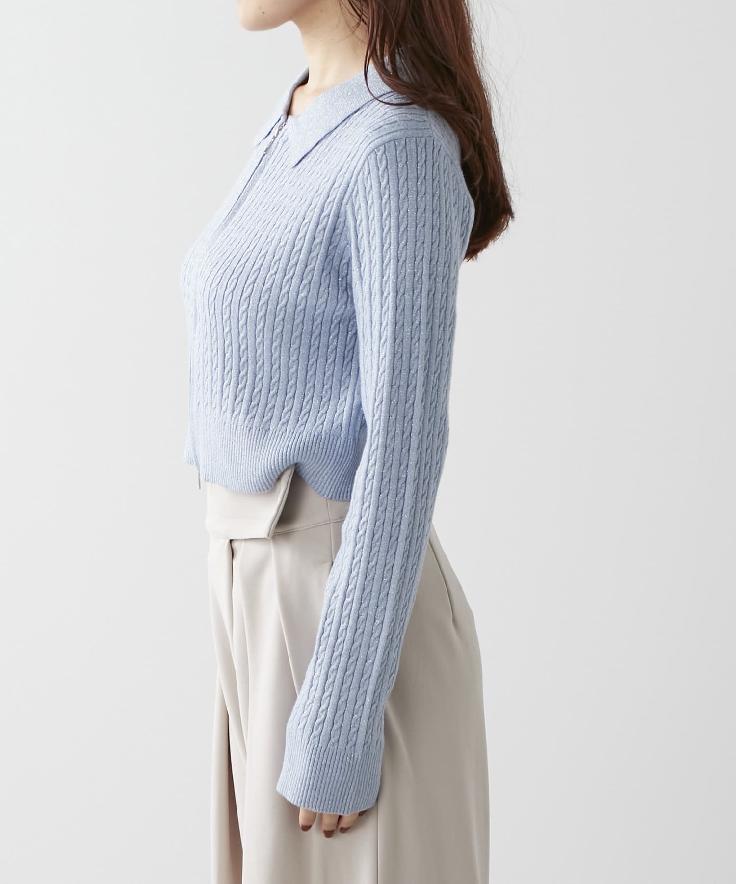 wジップラメケーブルニット