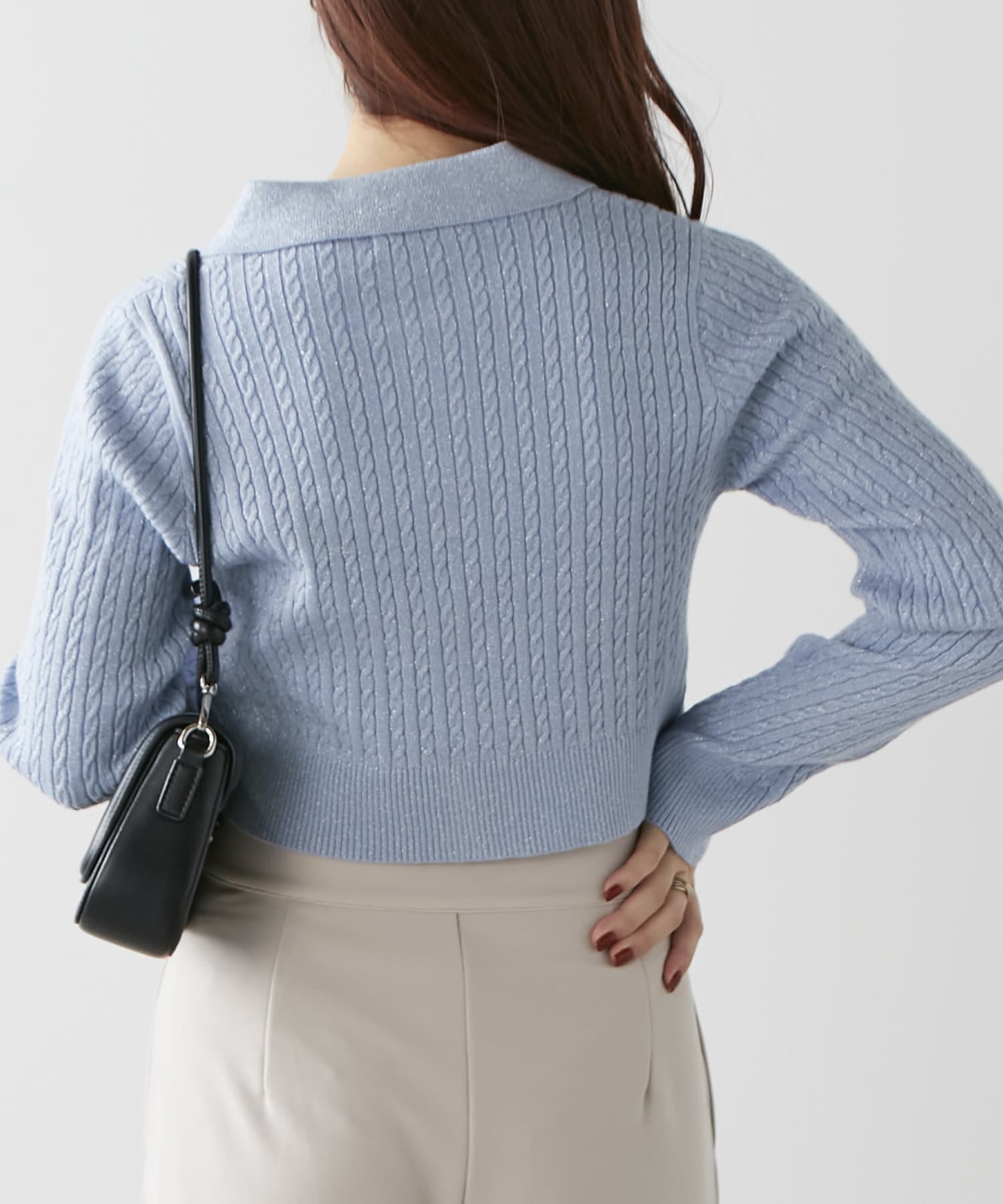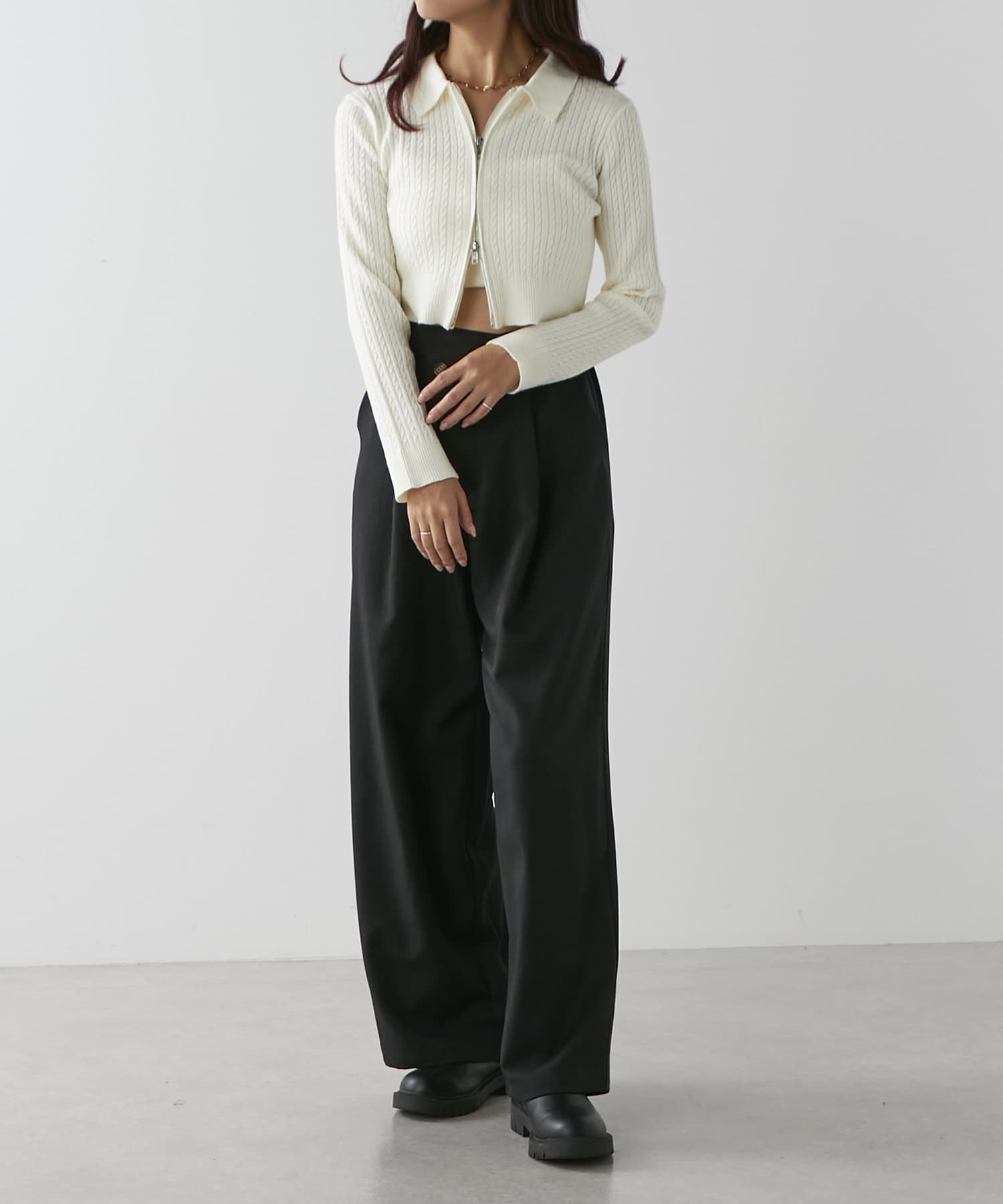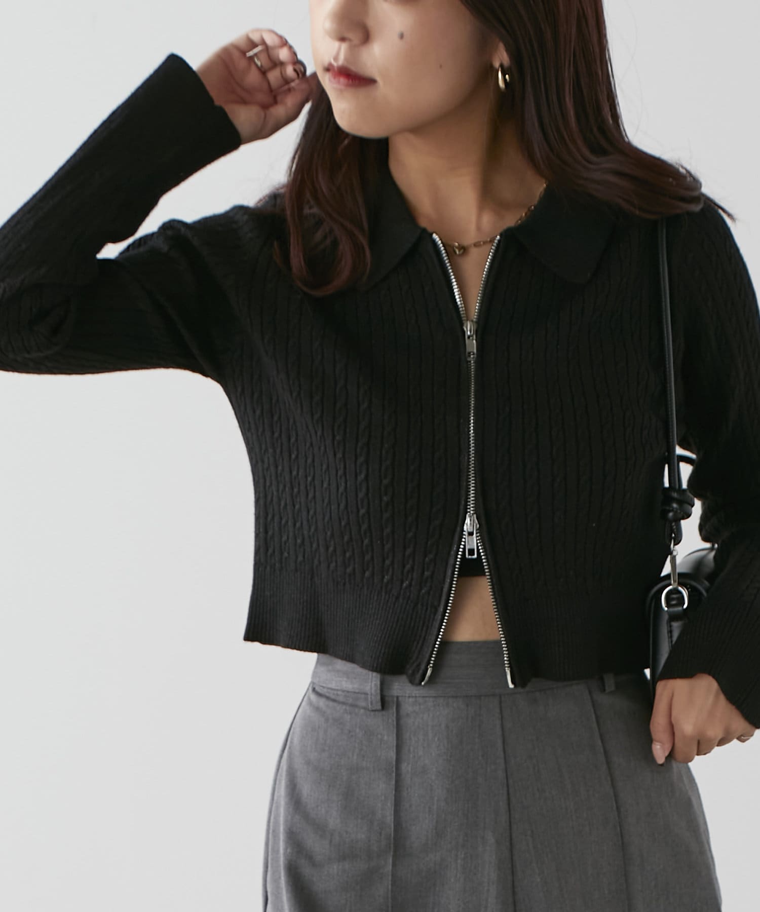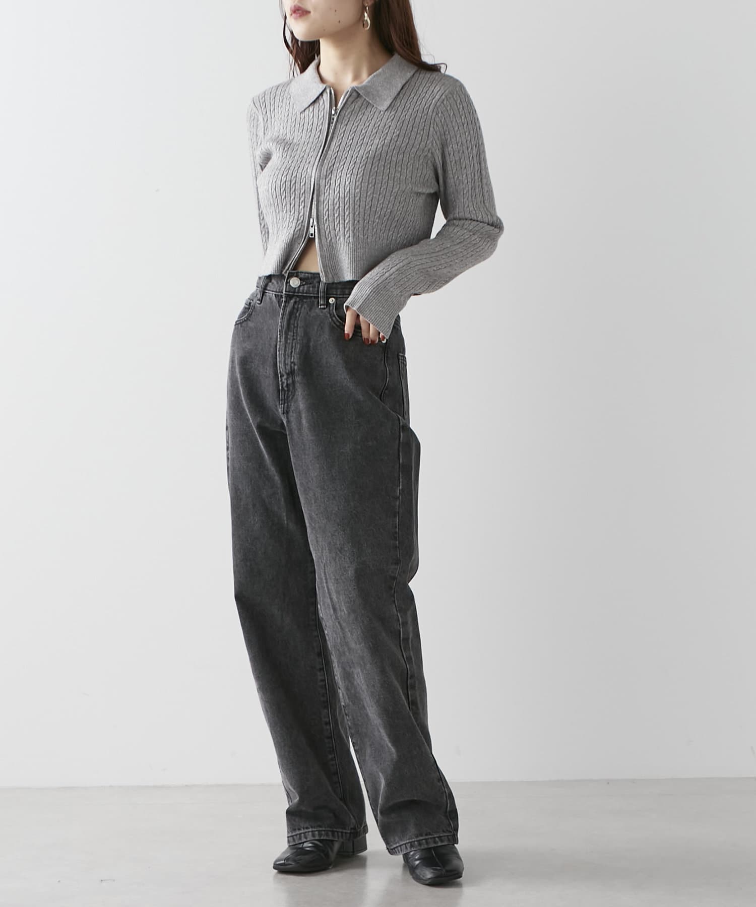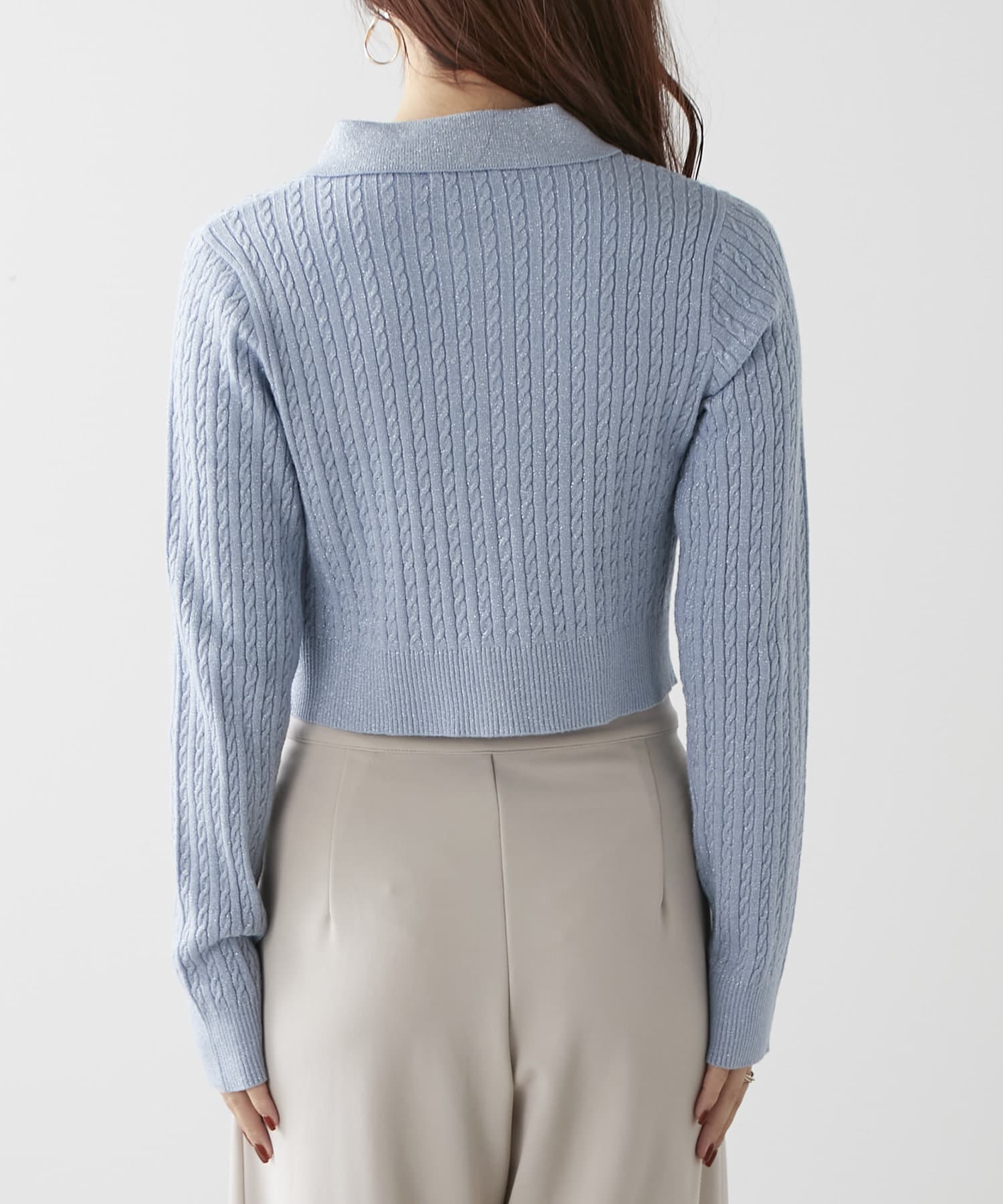wジップラメケーブルニット