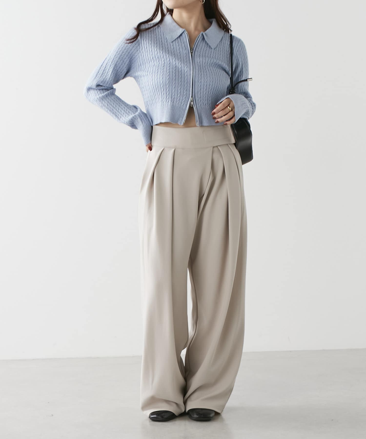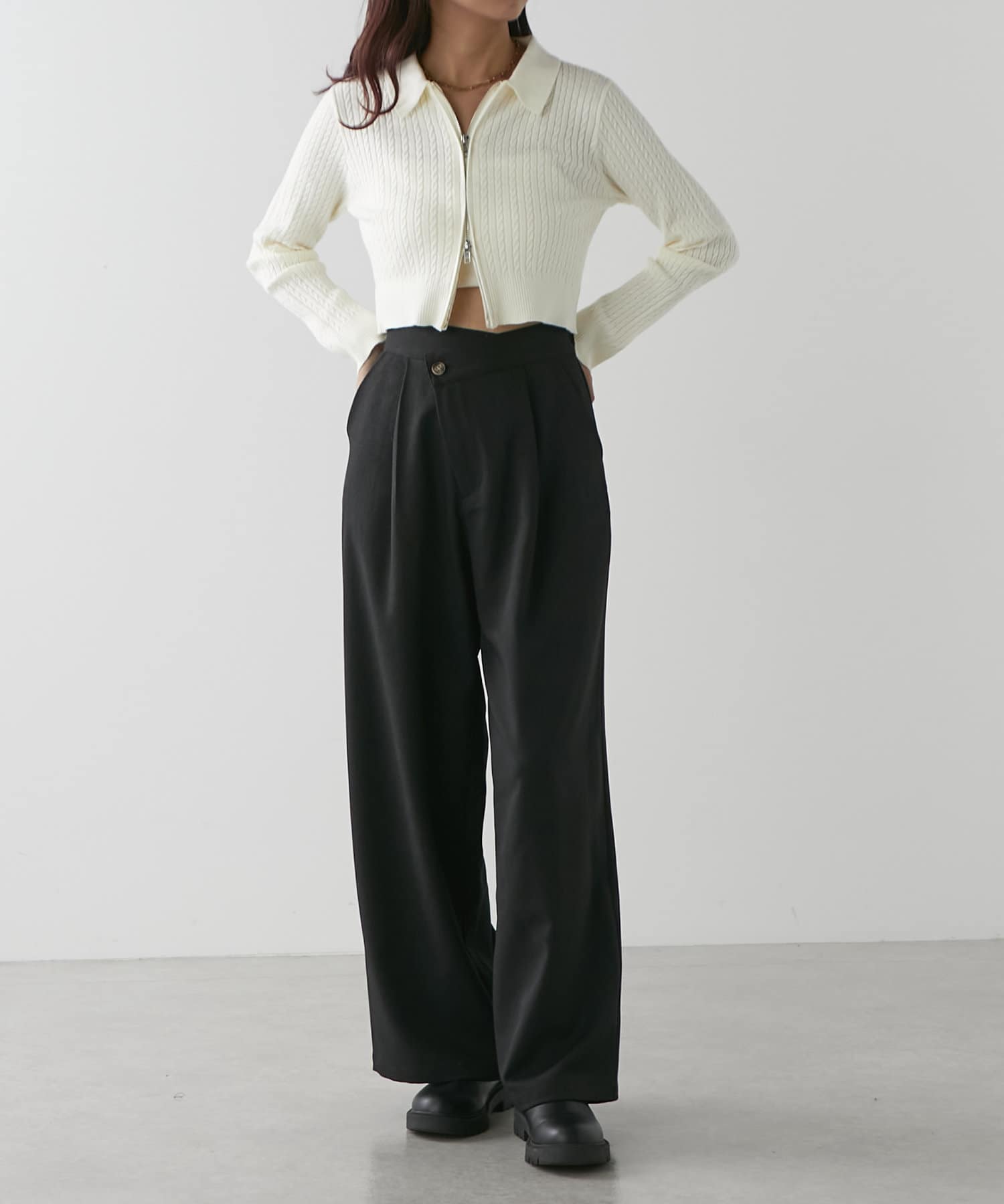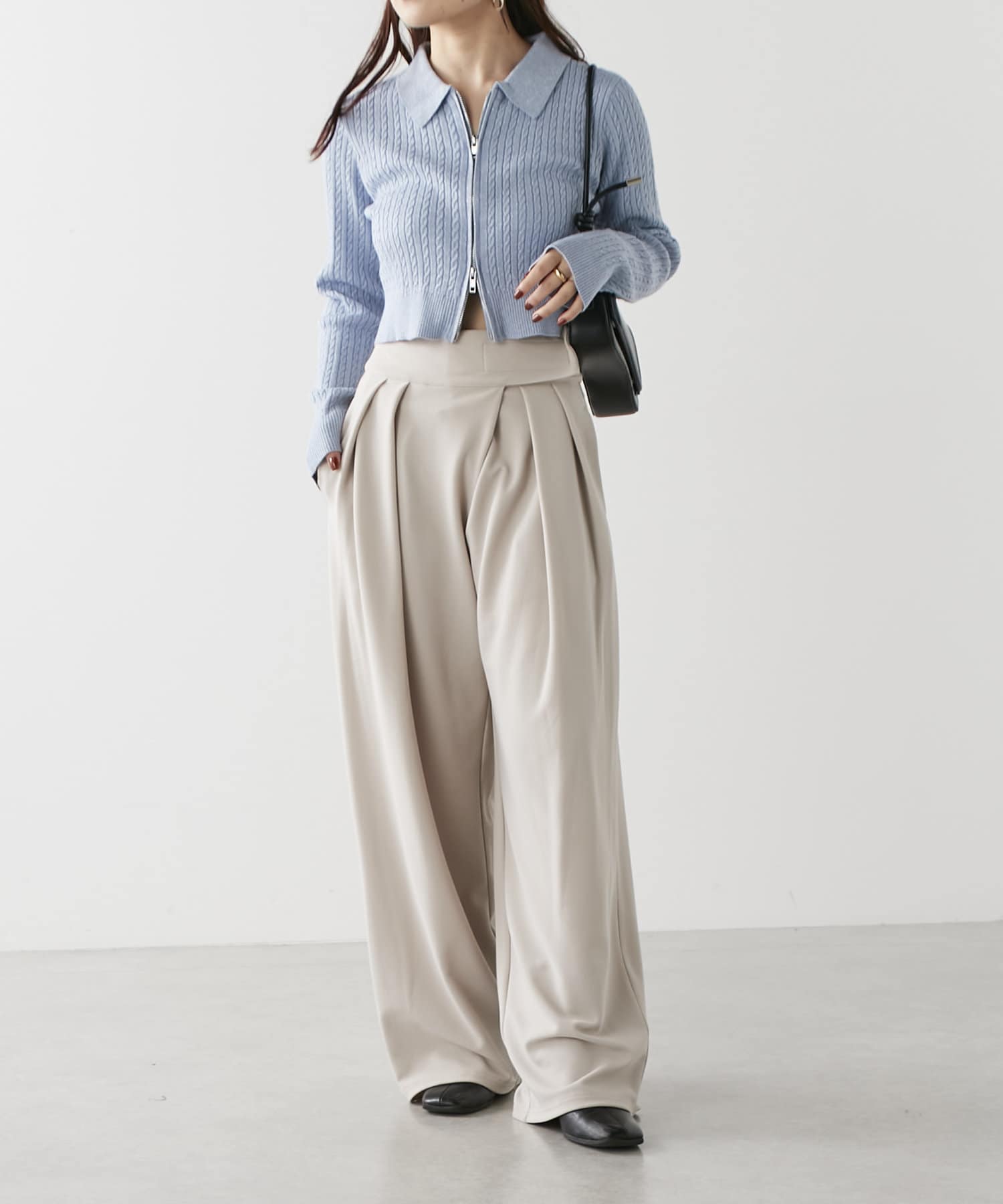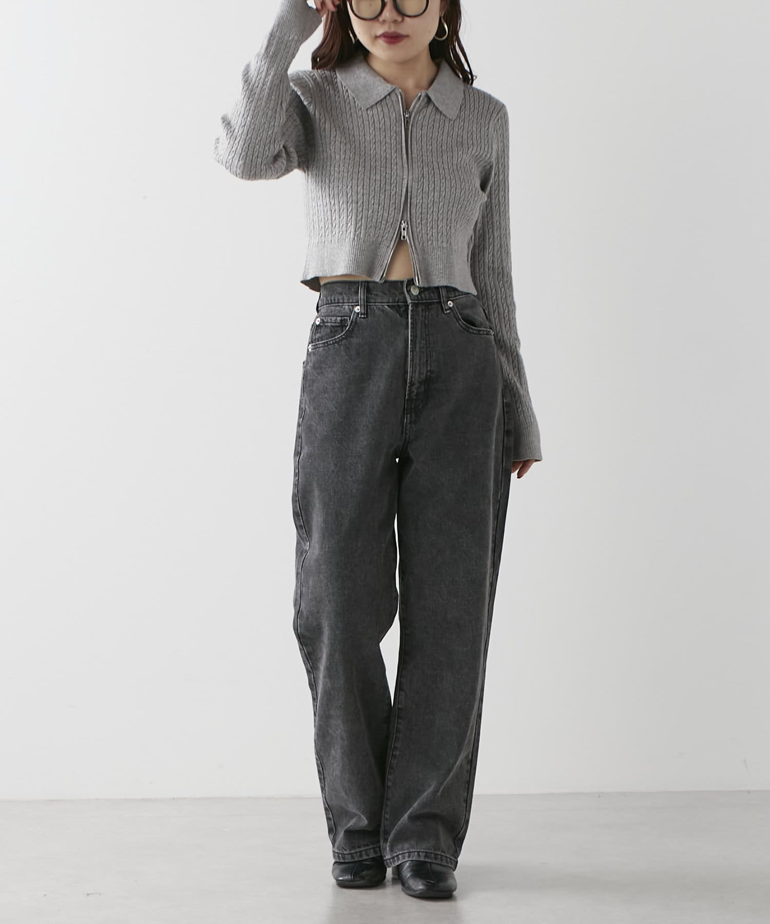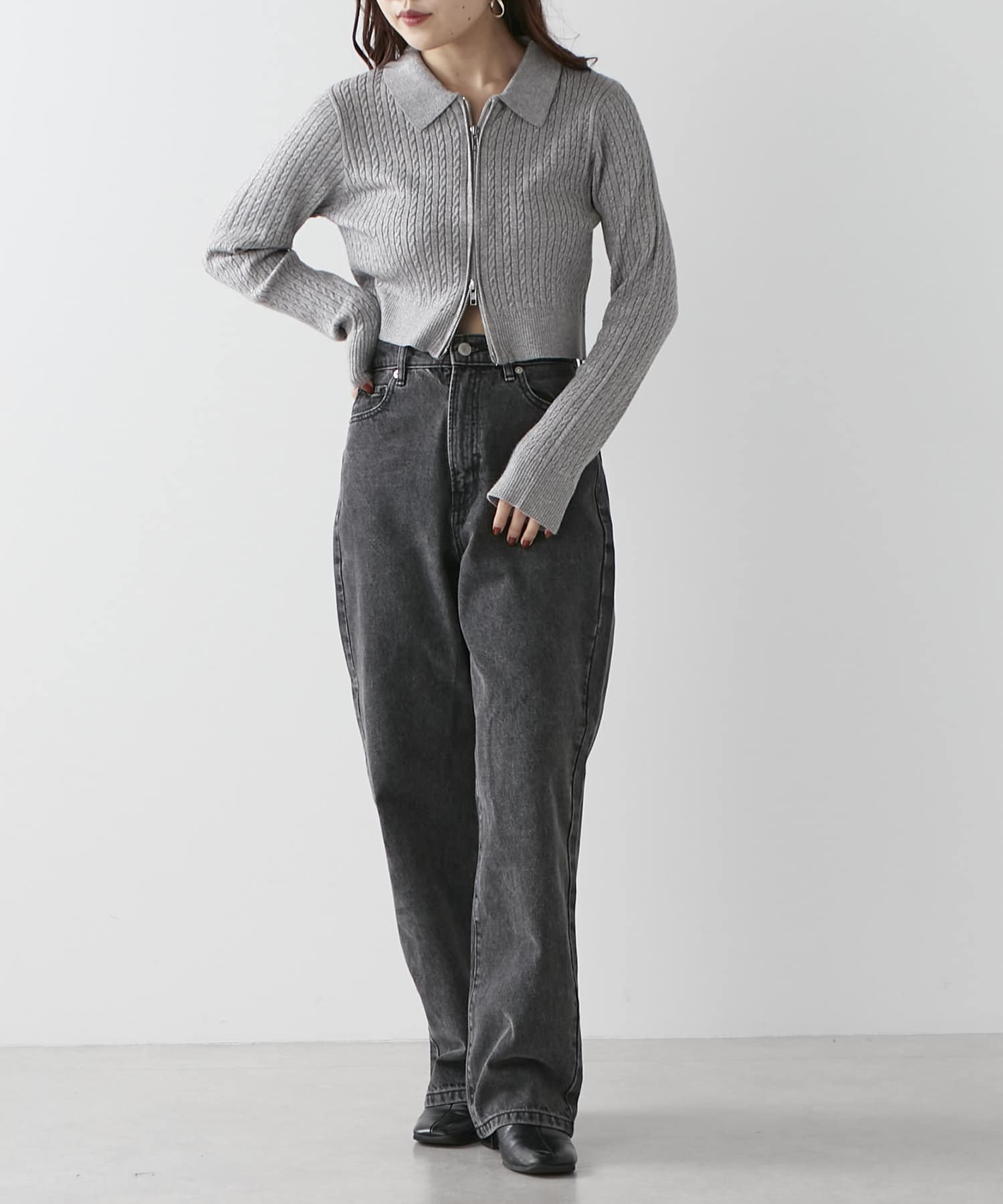 wジップラメケーブルニット