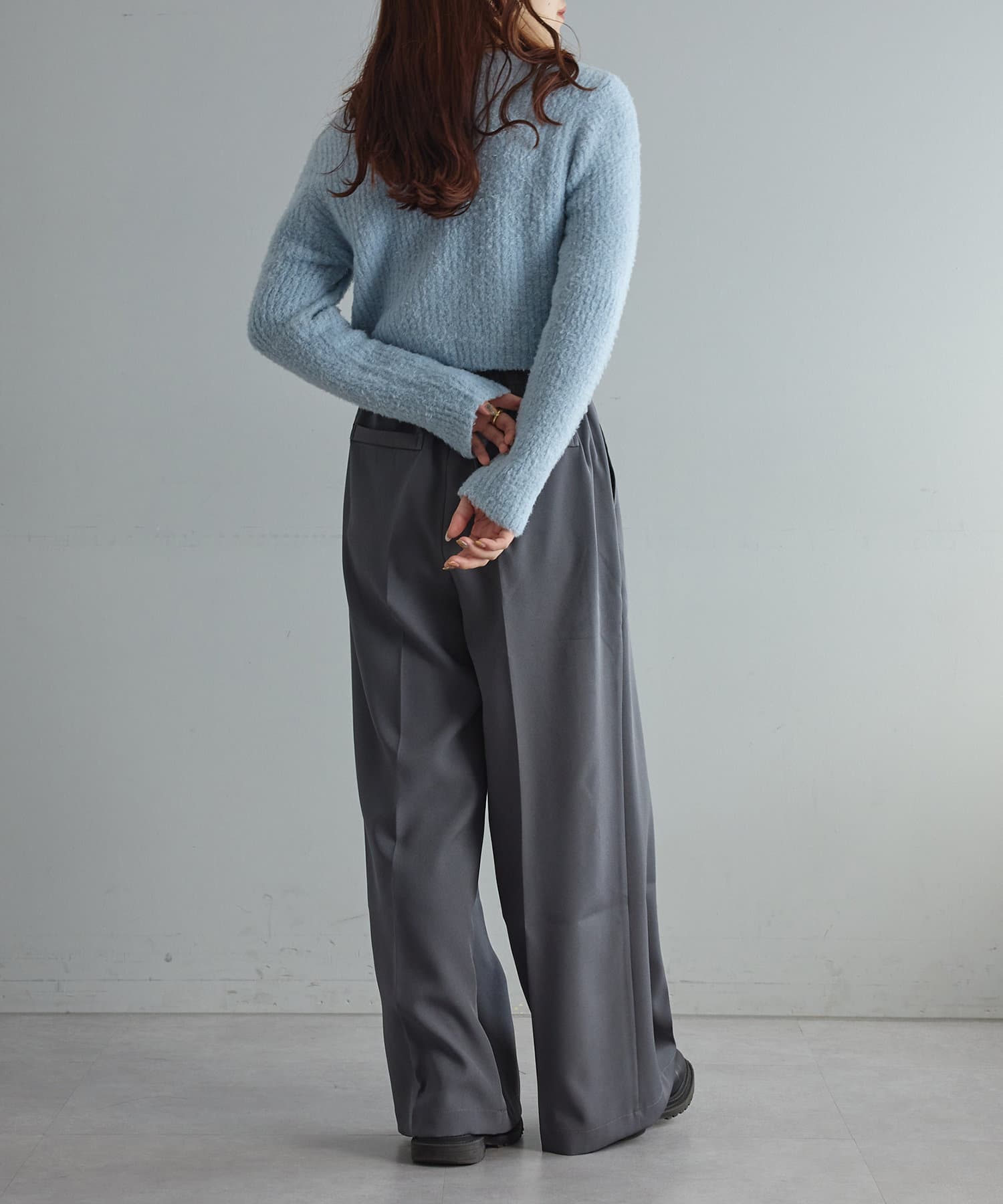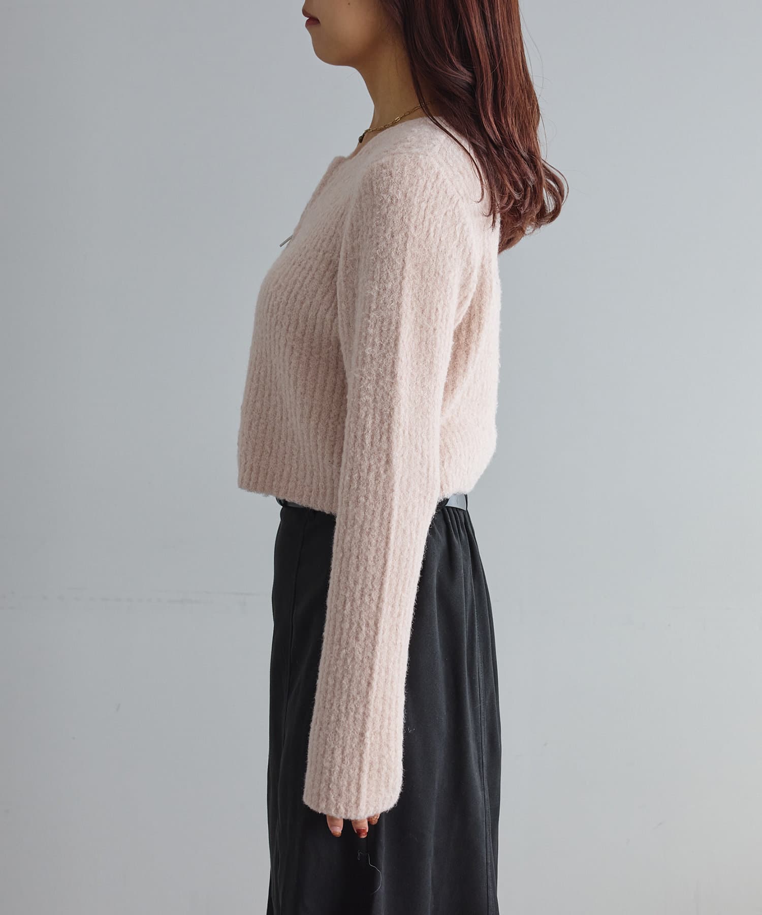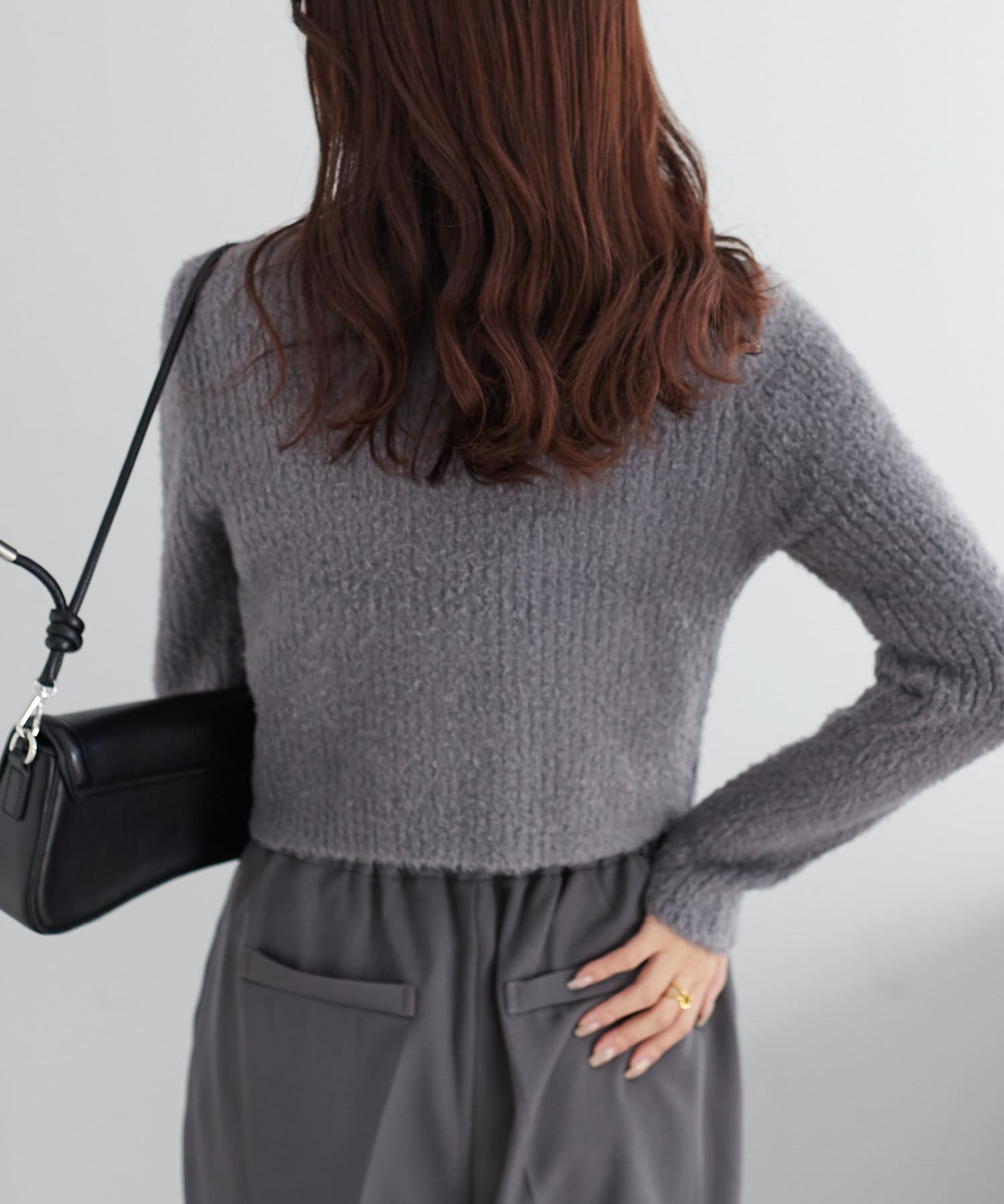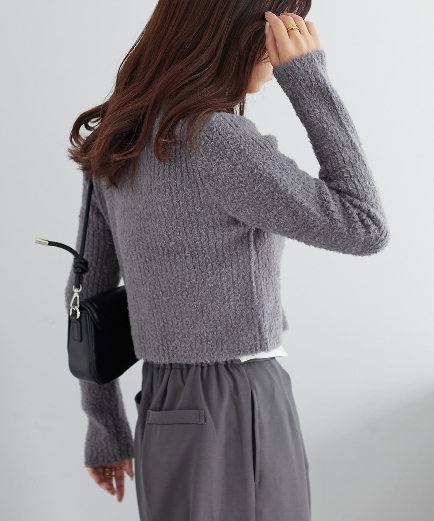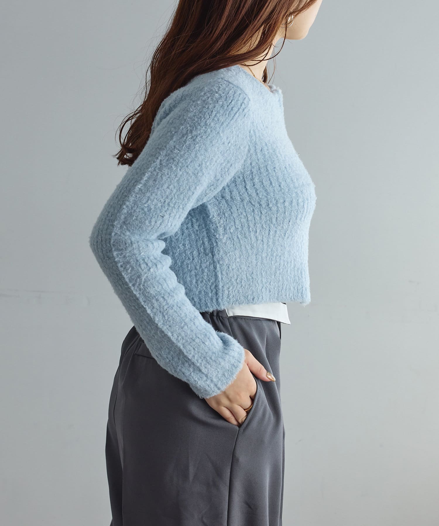 ・肌触りの良いフェザーヤーンのショート丈トップス