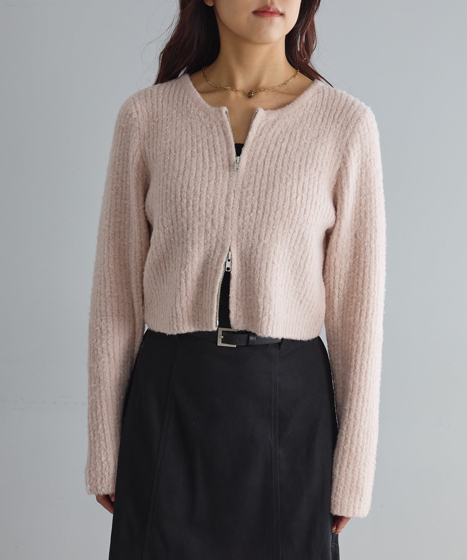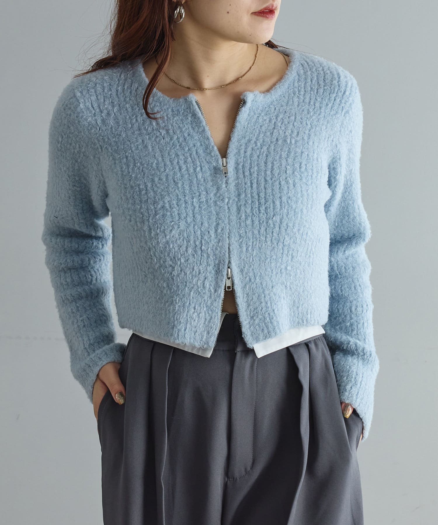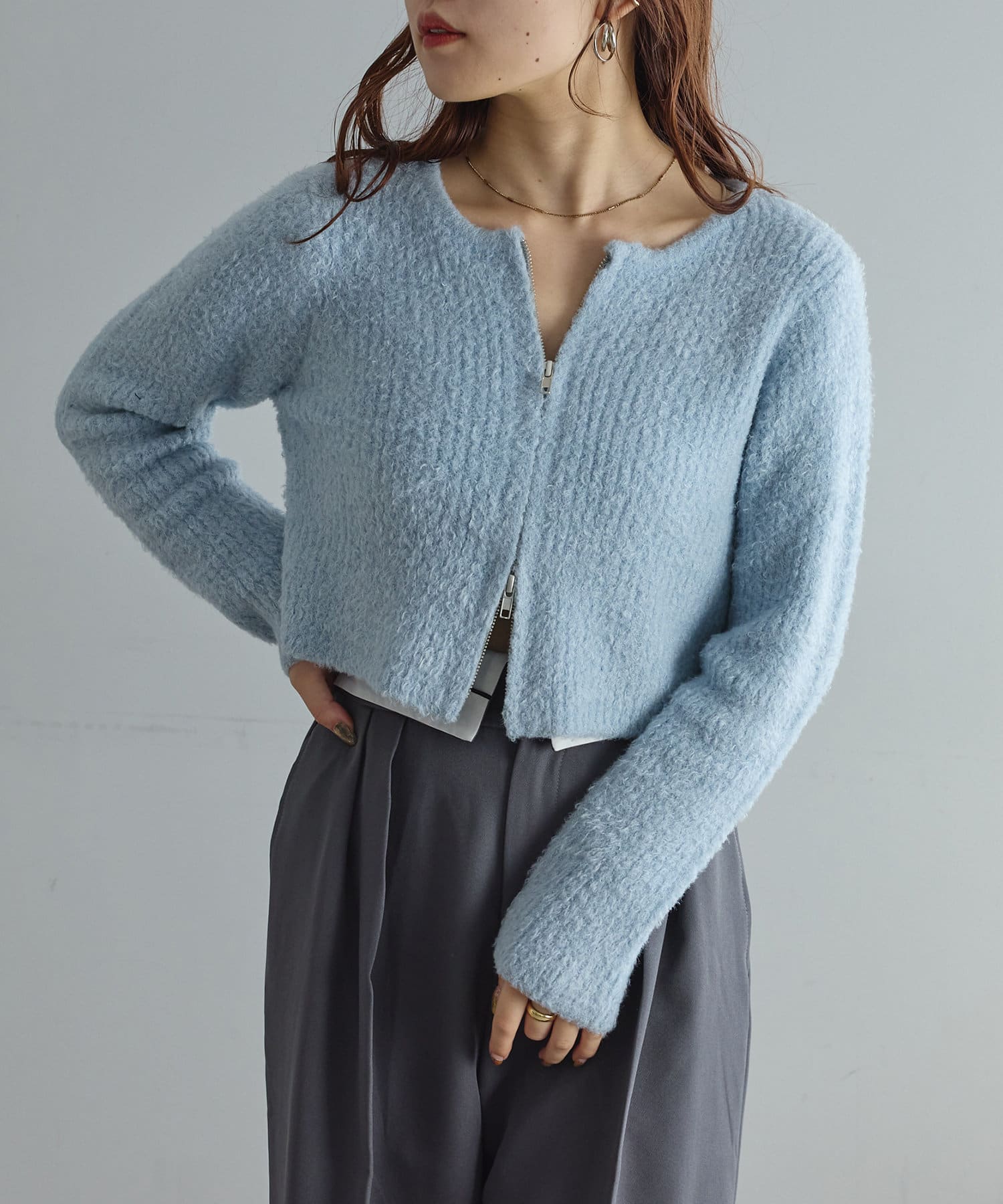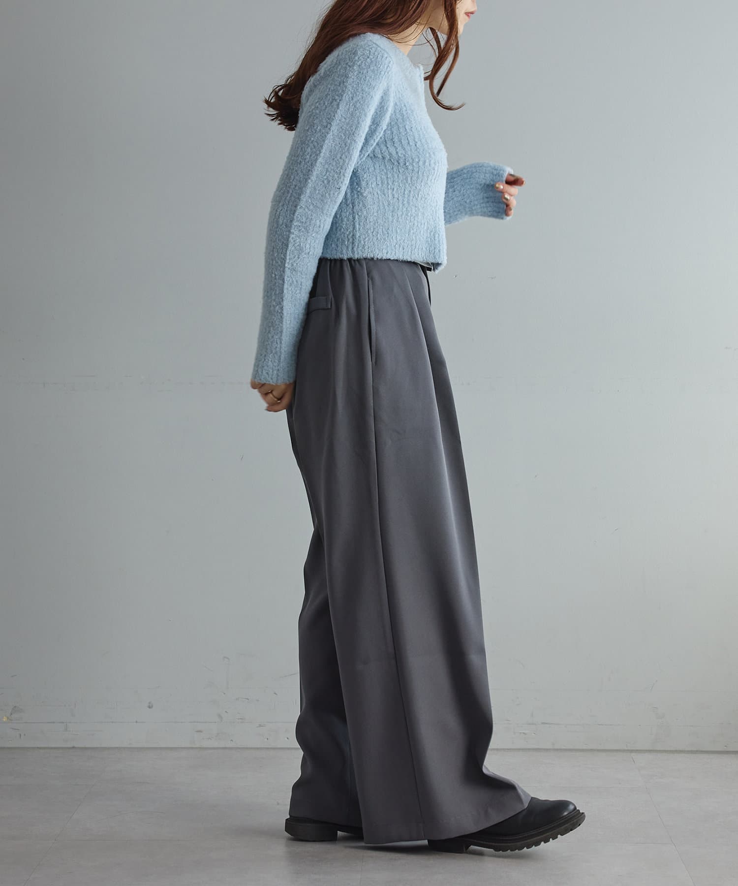 ・肌触りの良いフェザーヤーンのショート丈トップス