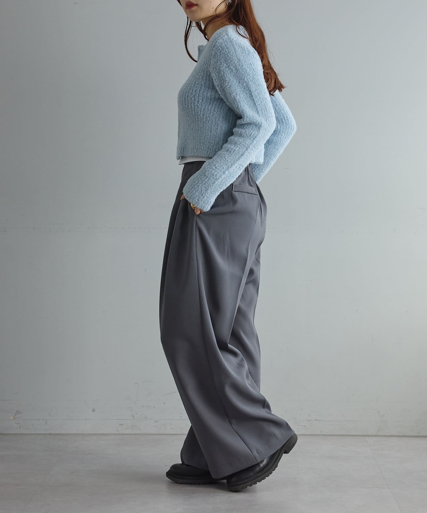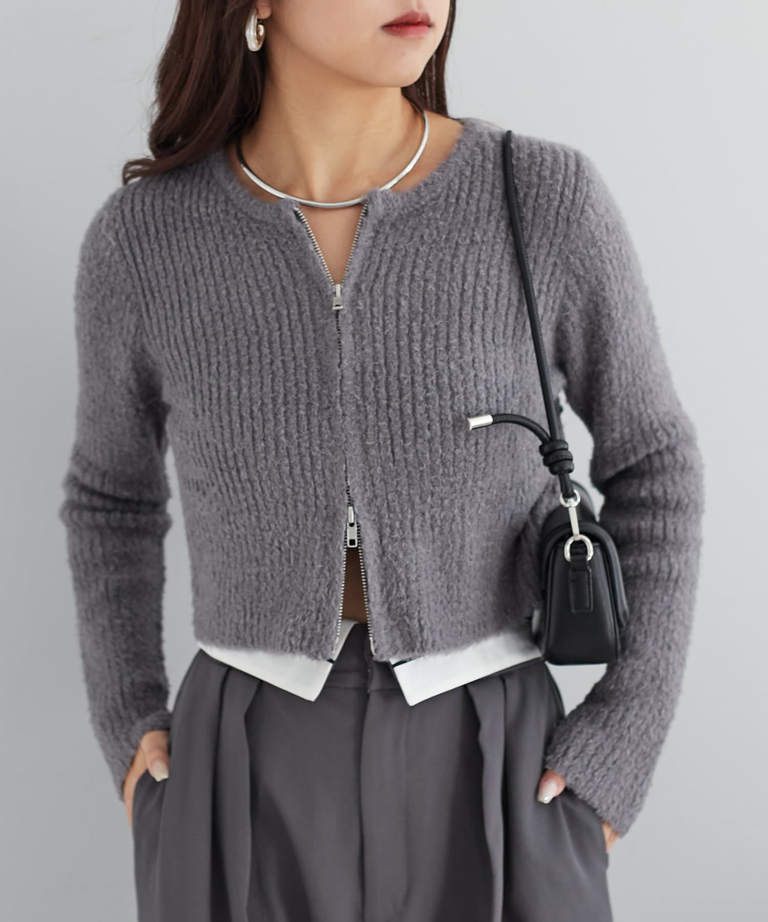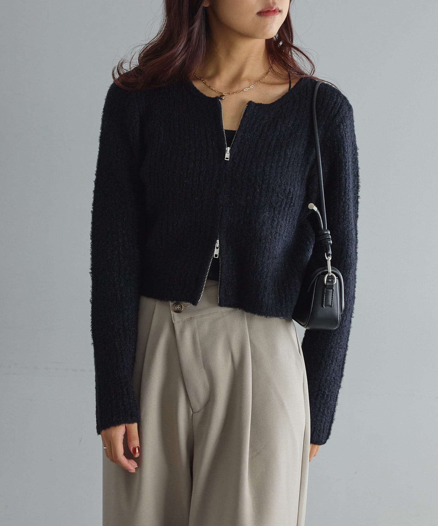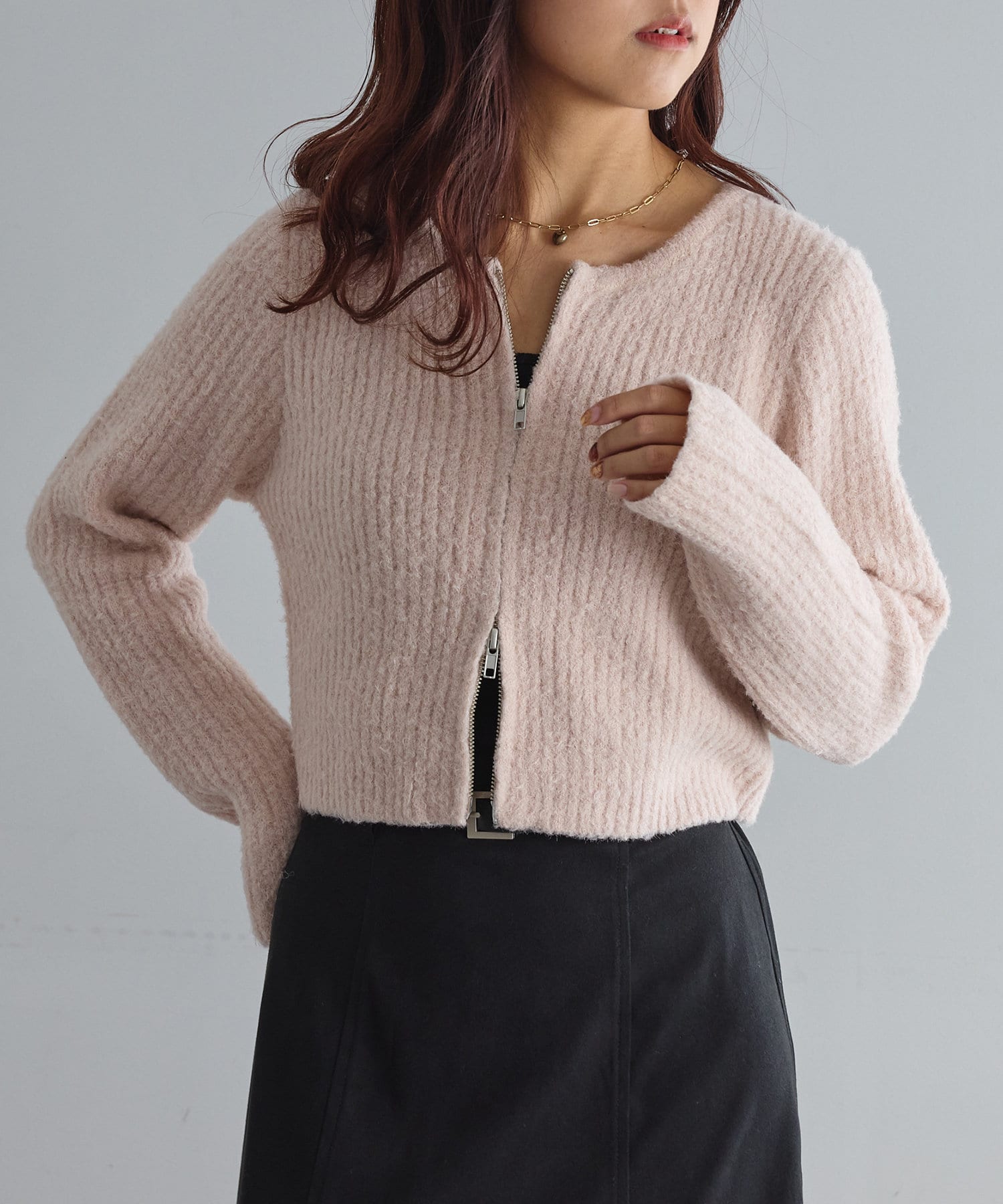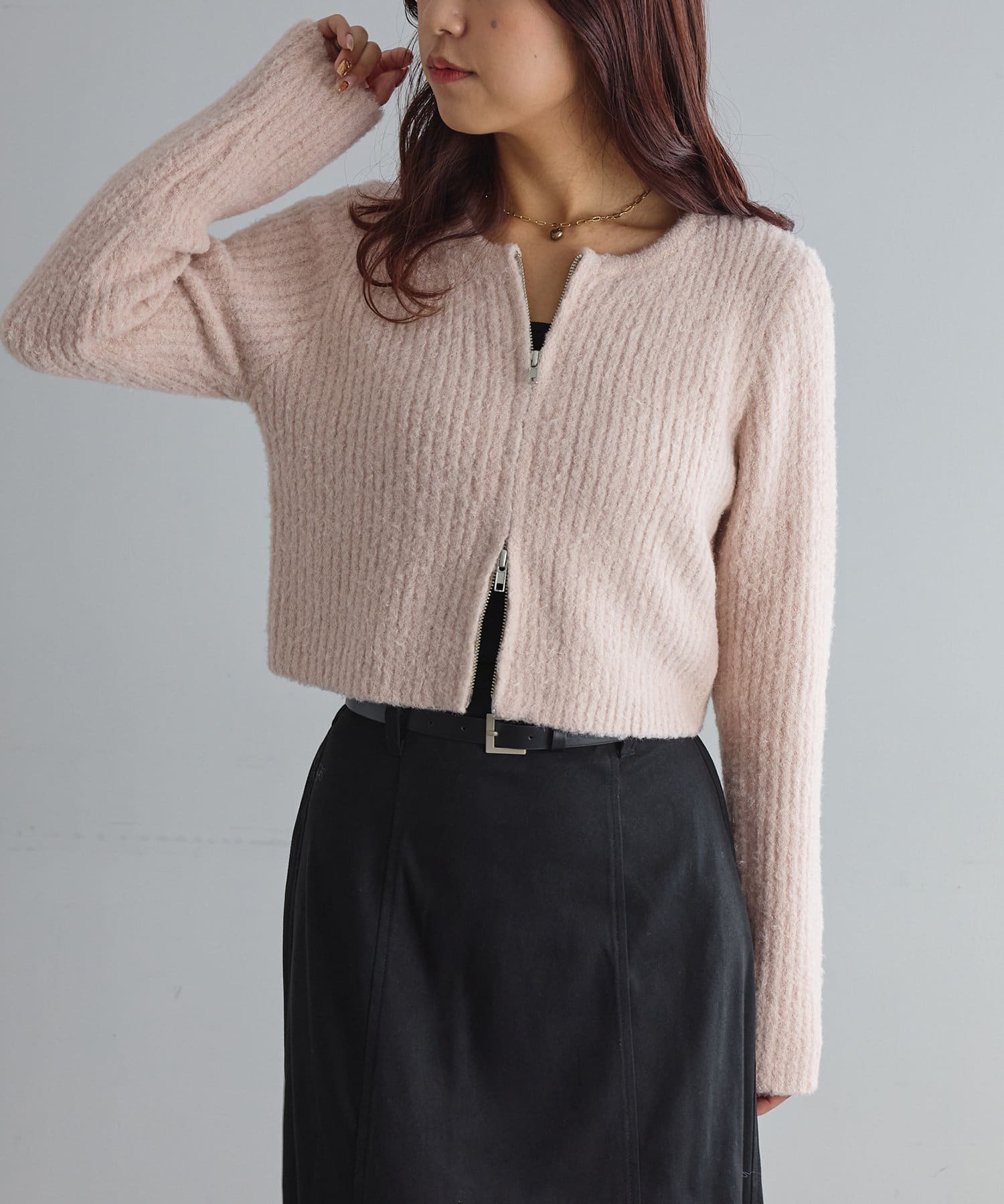 ・肌触りの良いフェザーヤーンのショート丈トップス