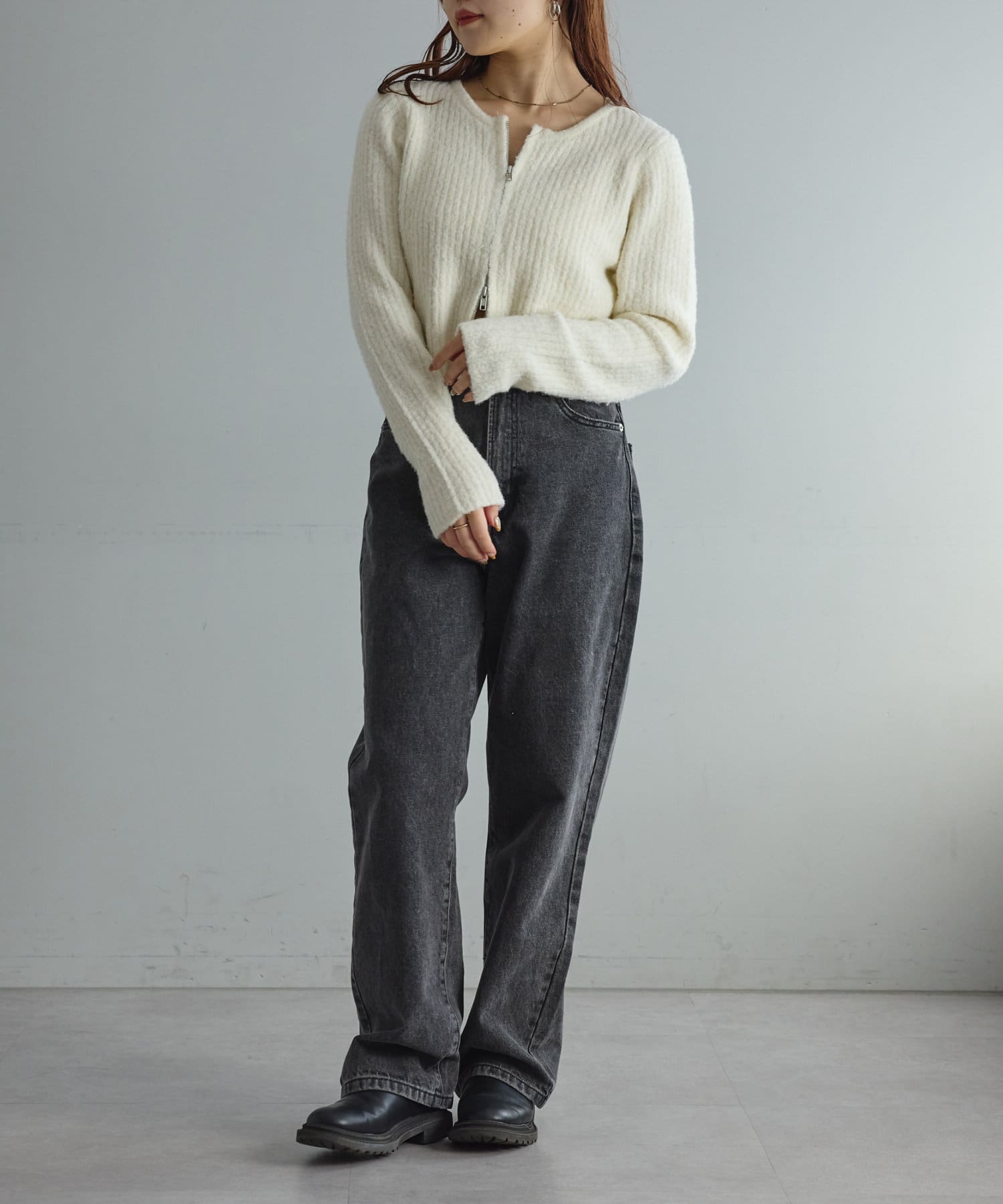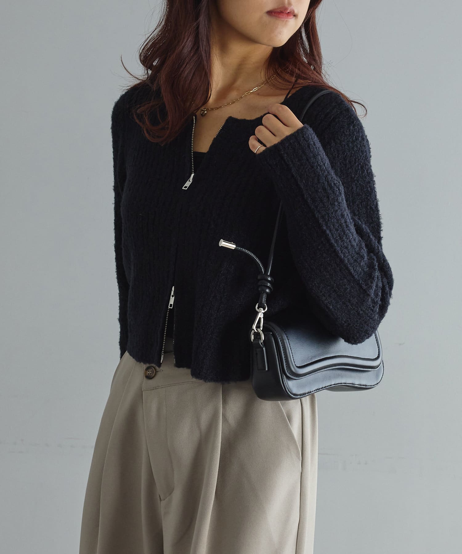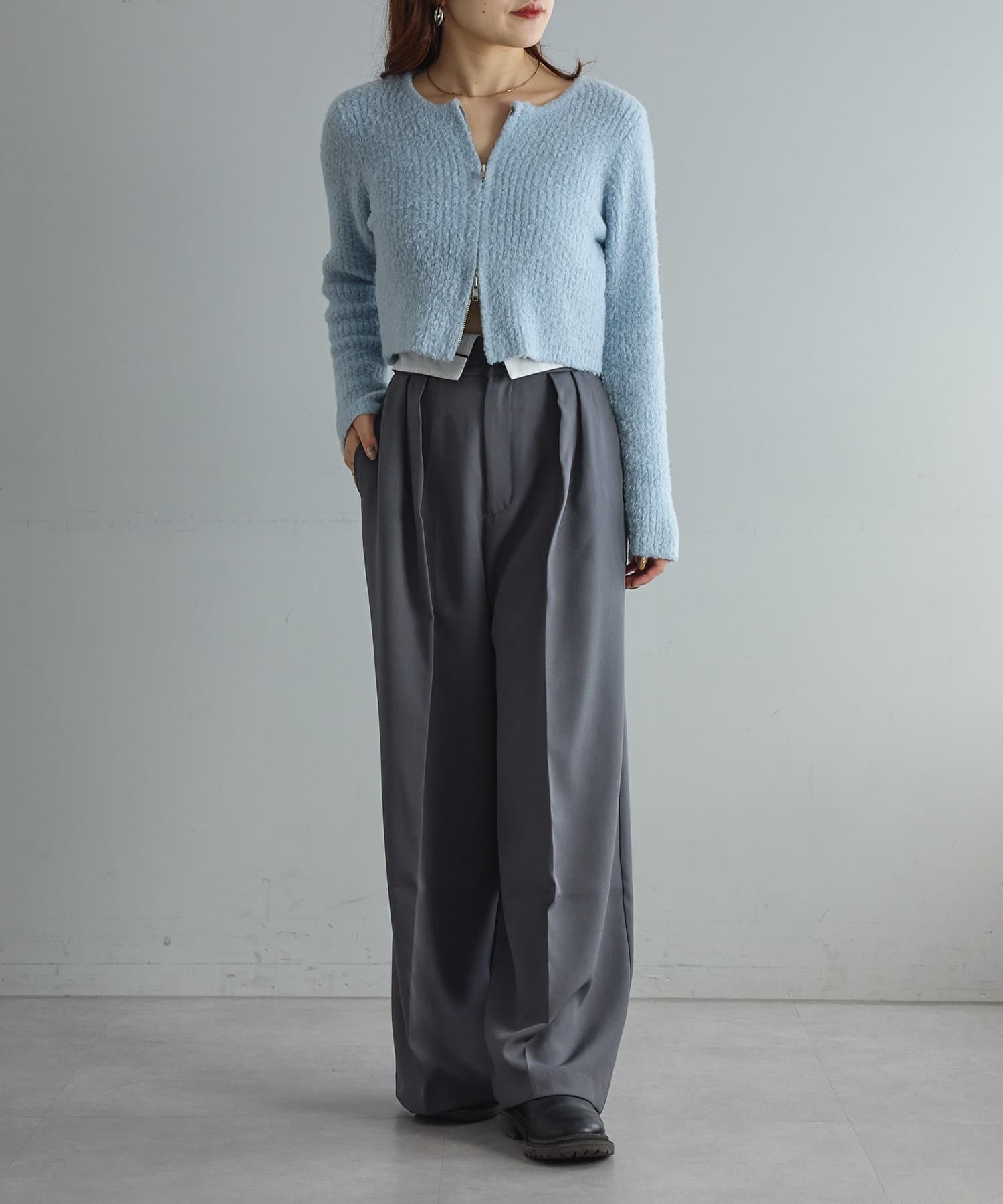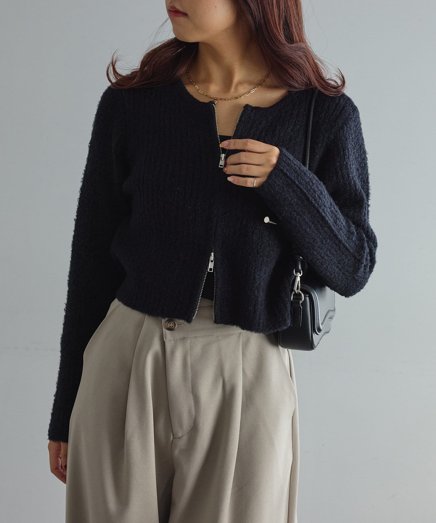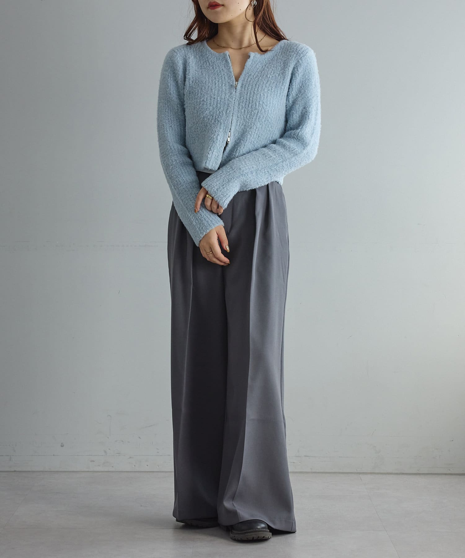 ・肌触りの良いフェザーヤーンのショート丈トップス