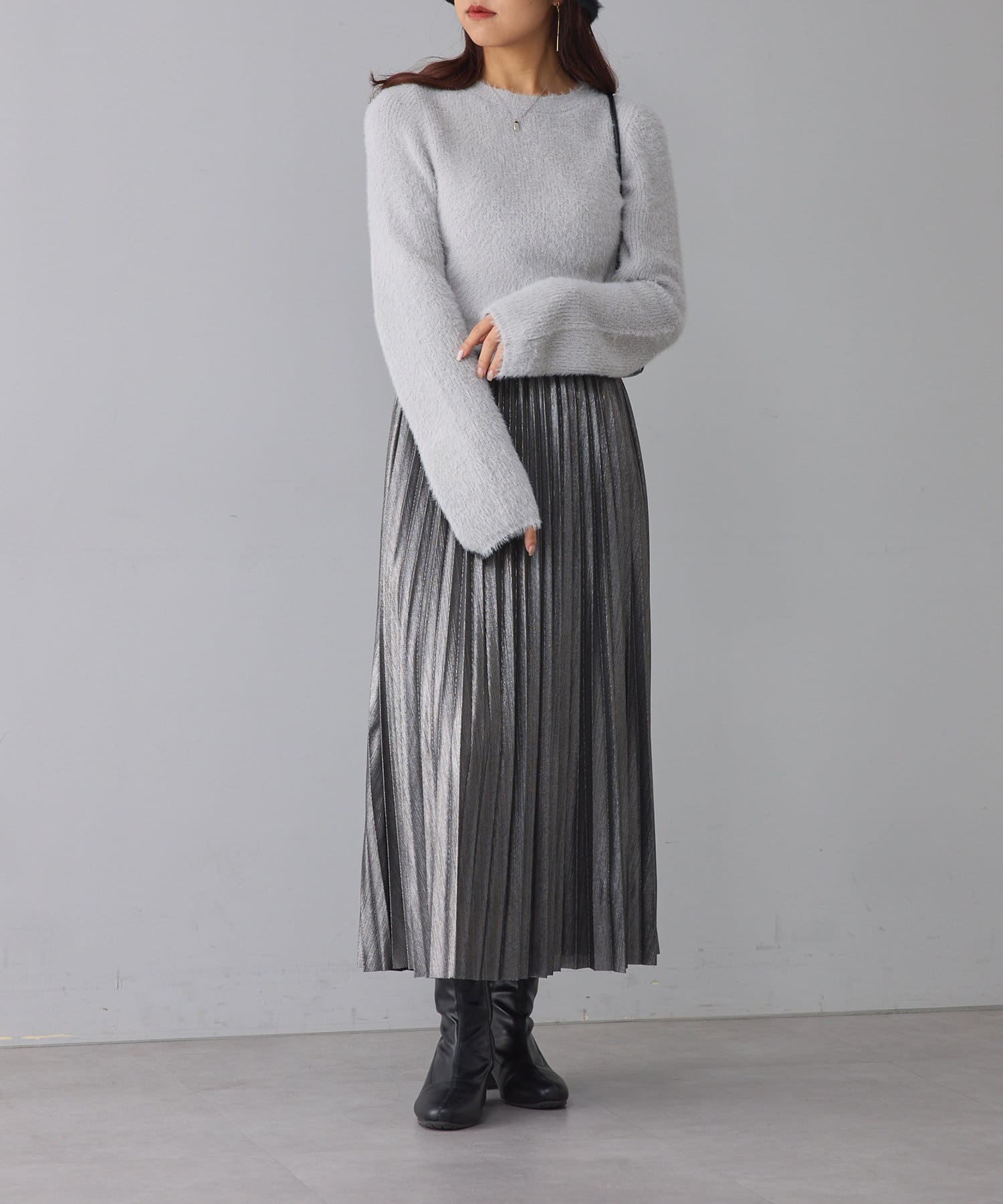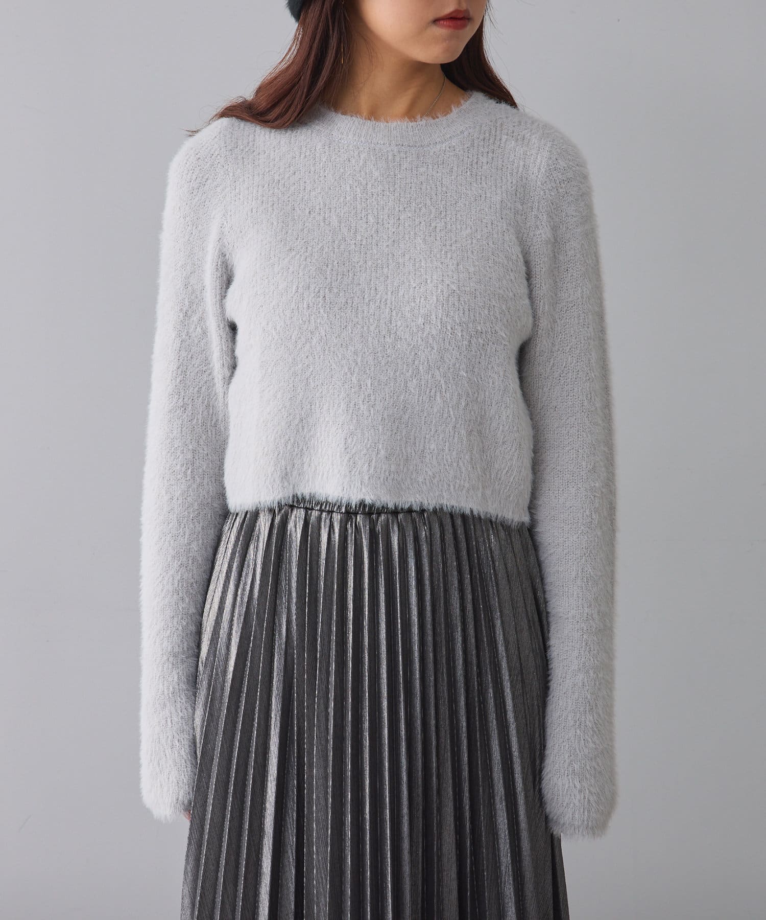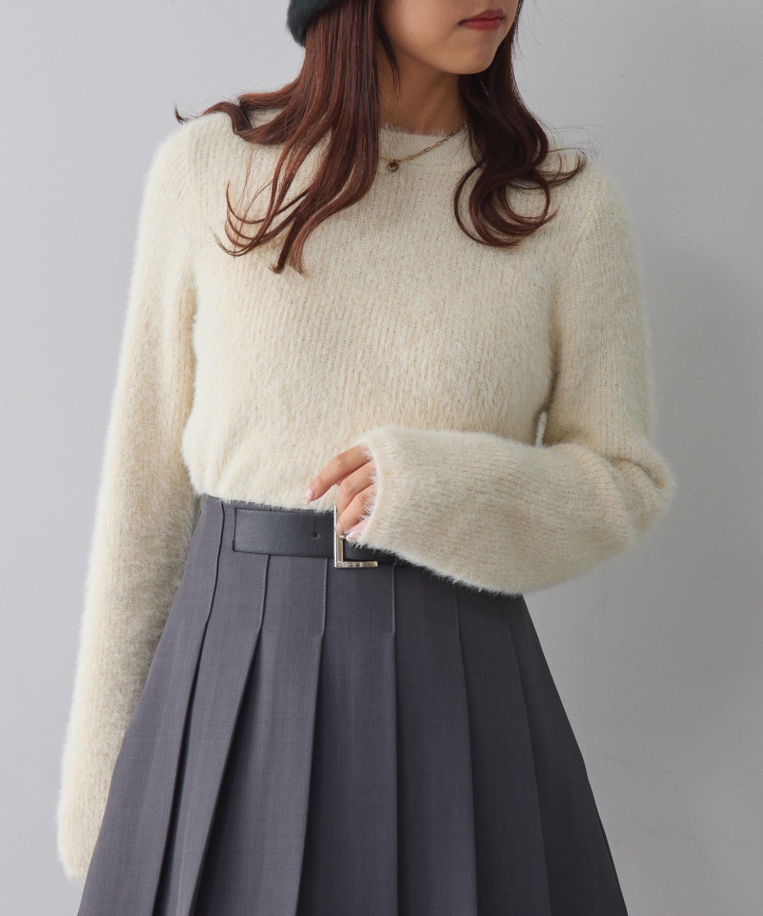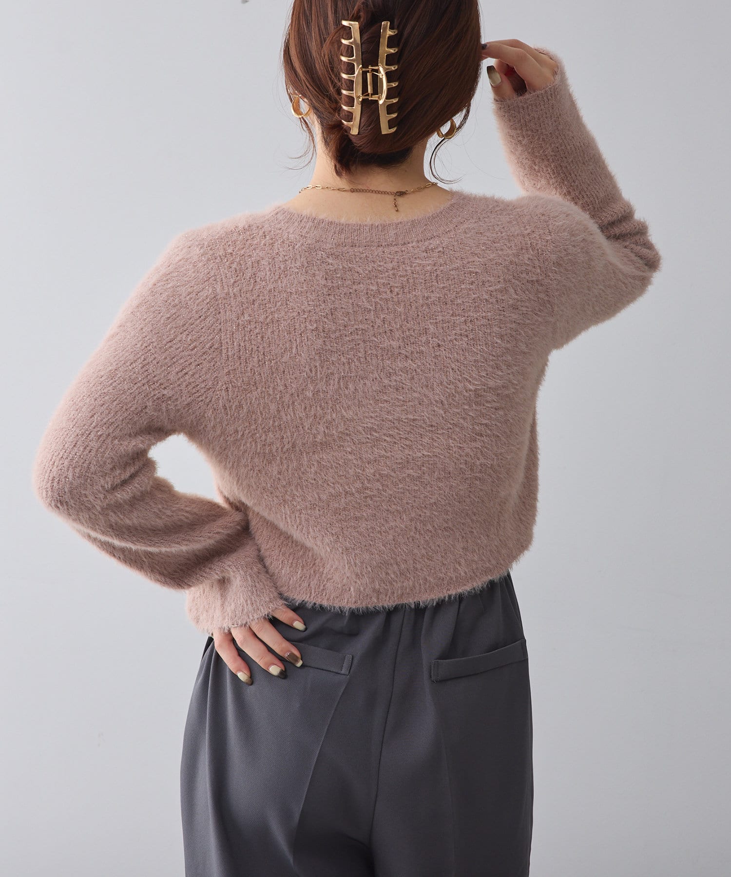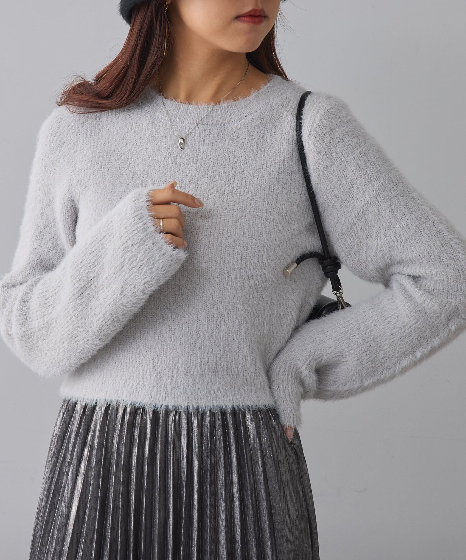・程よくラメの入った、触り心地の良いシャギーニット