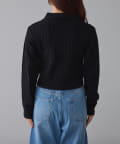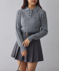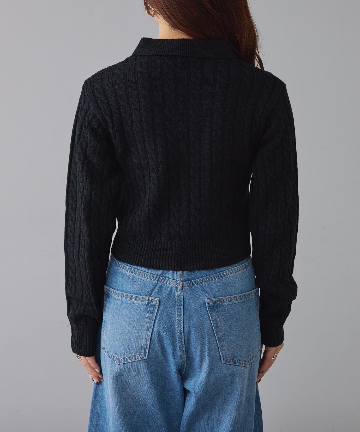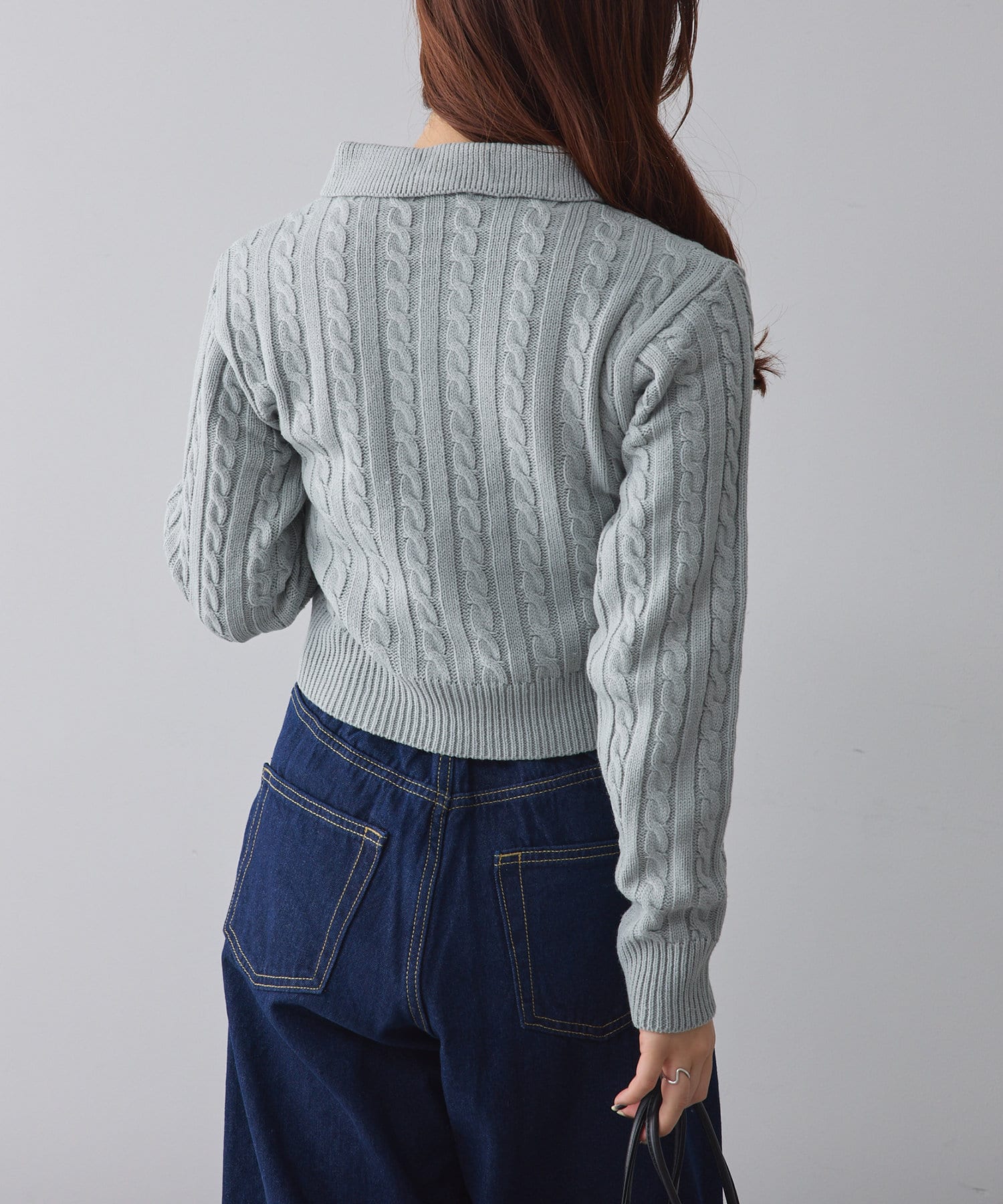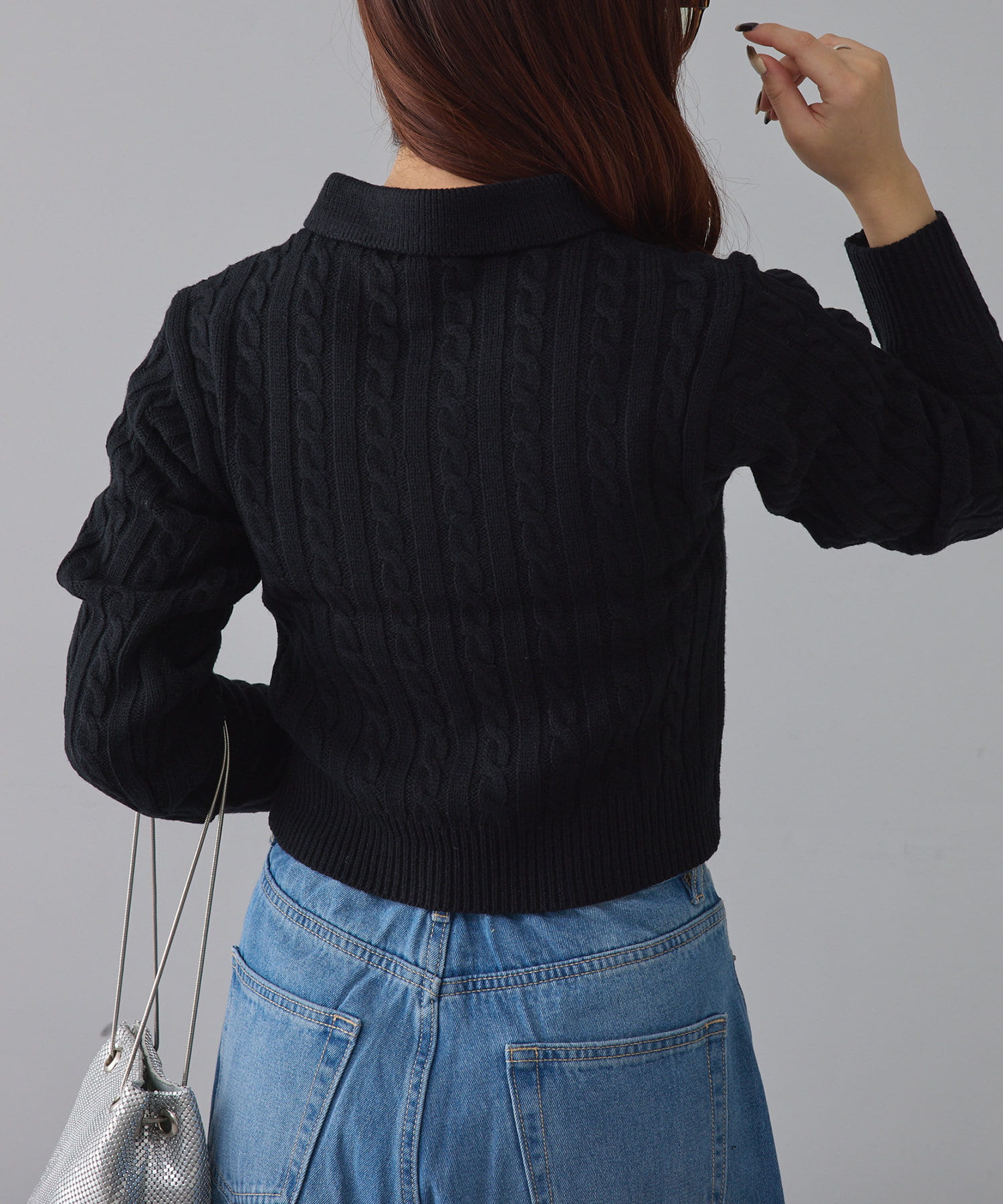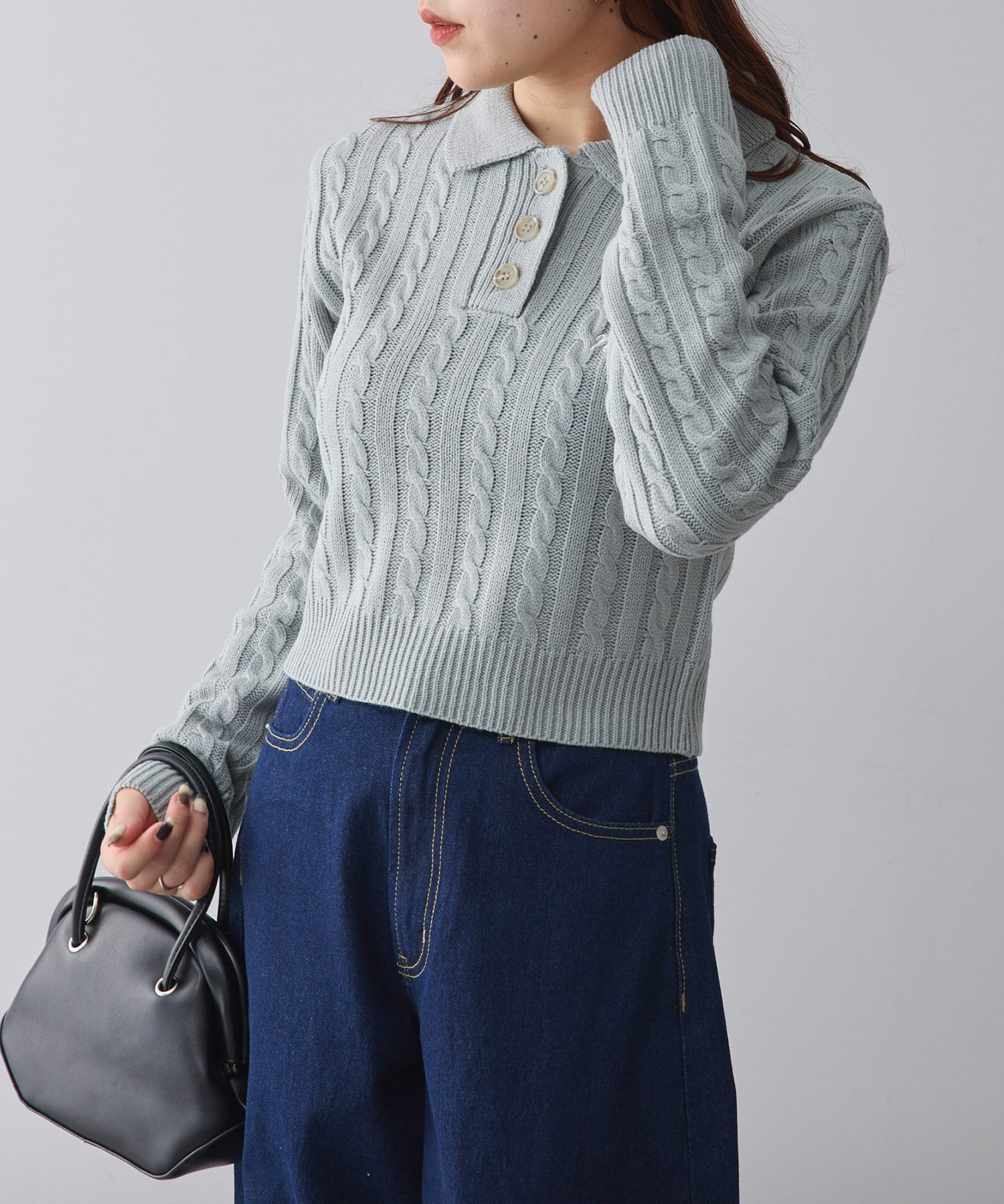 ・存在感のあるケーブルニットをショート丈のポロニットトップスに