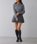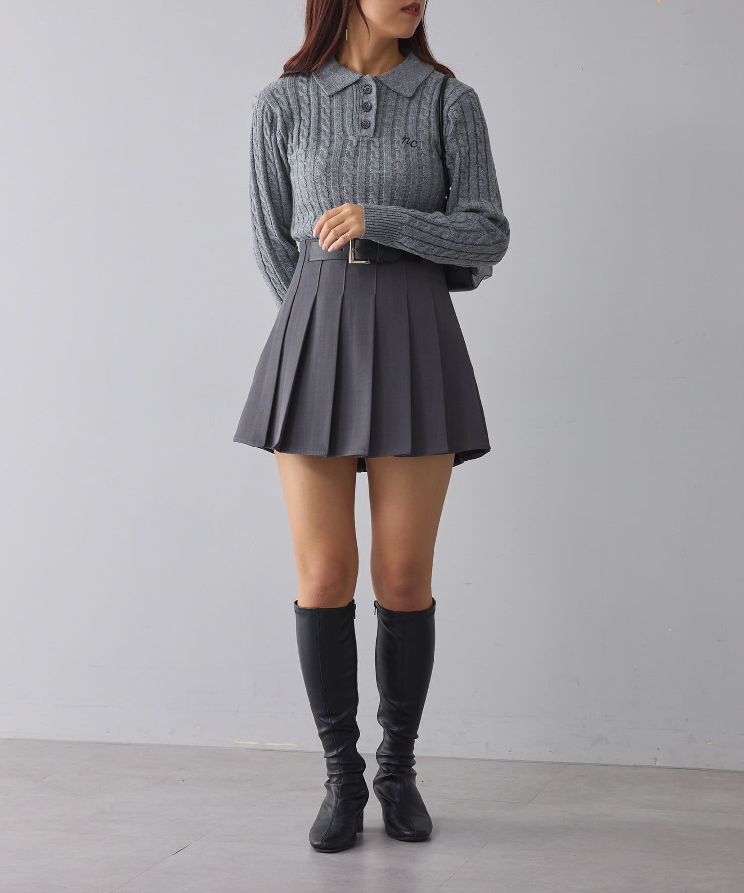・プリーツのミニスカート、ロングブーツ合わせでガーリーな着こなしがオススメ