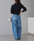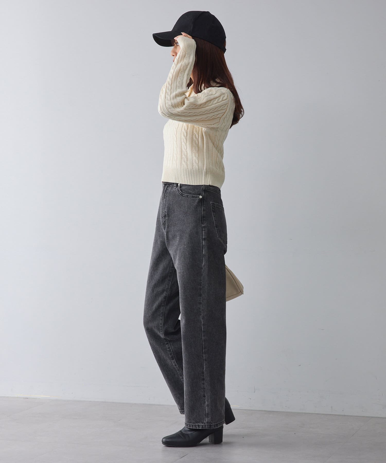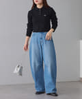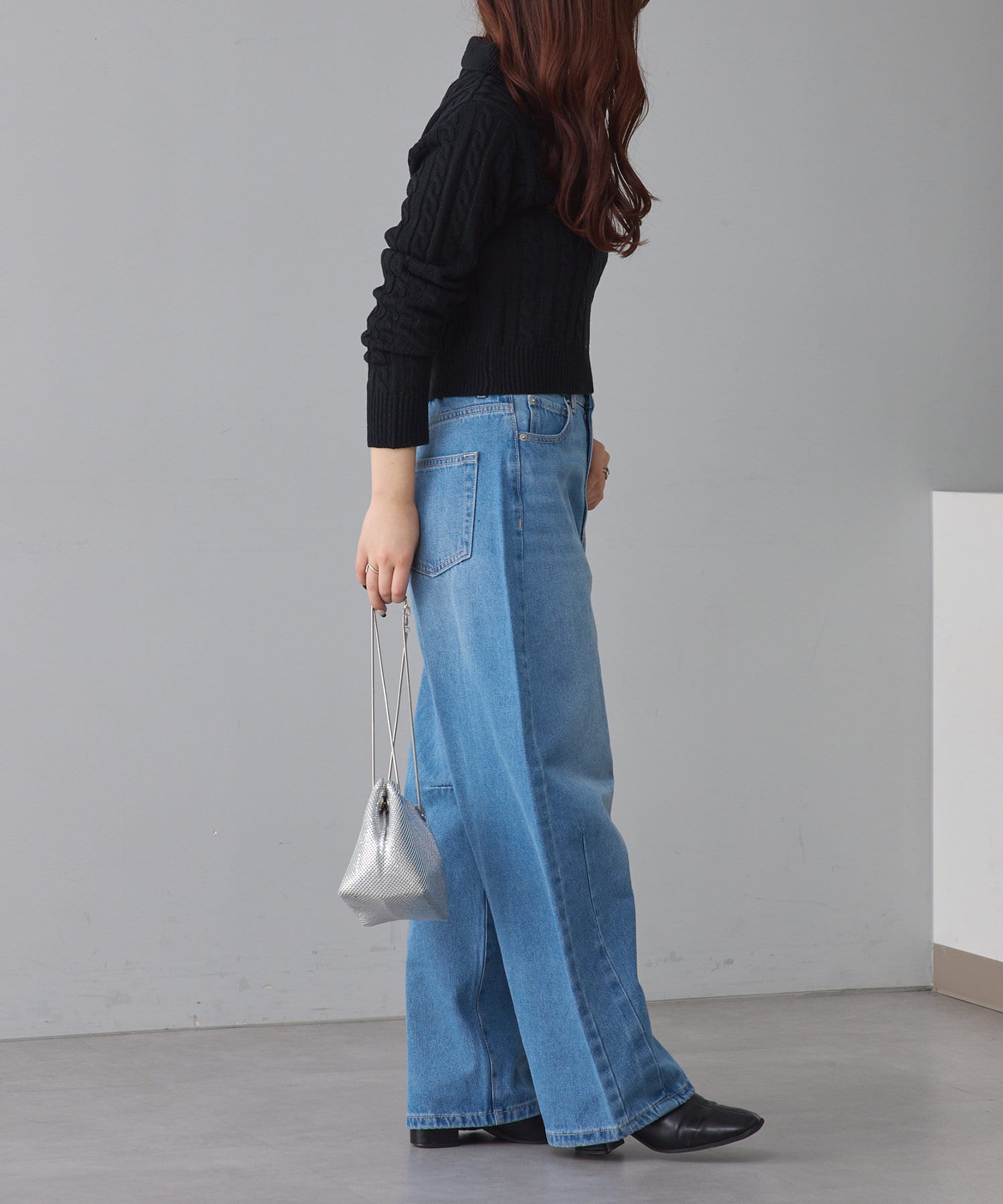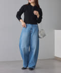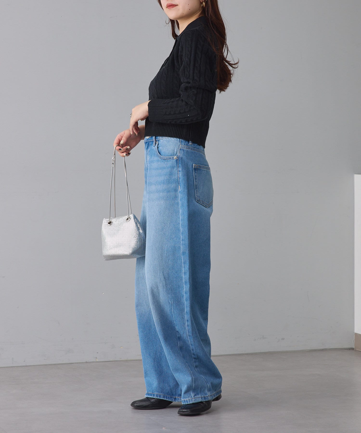 ・デニムはワイドなシルエットのもので上半身を華奢に見せることができます