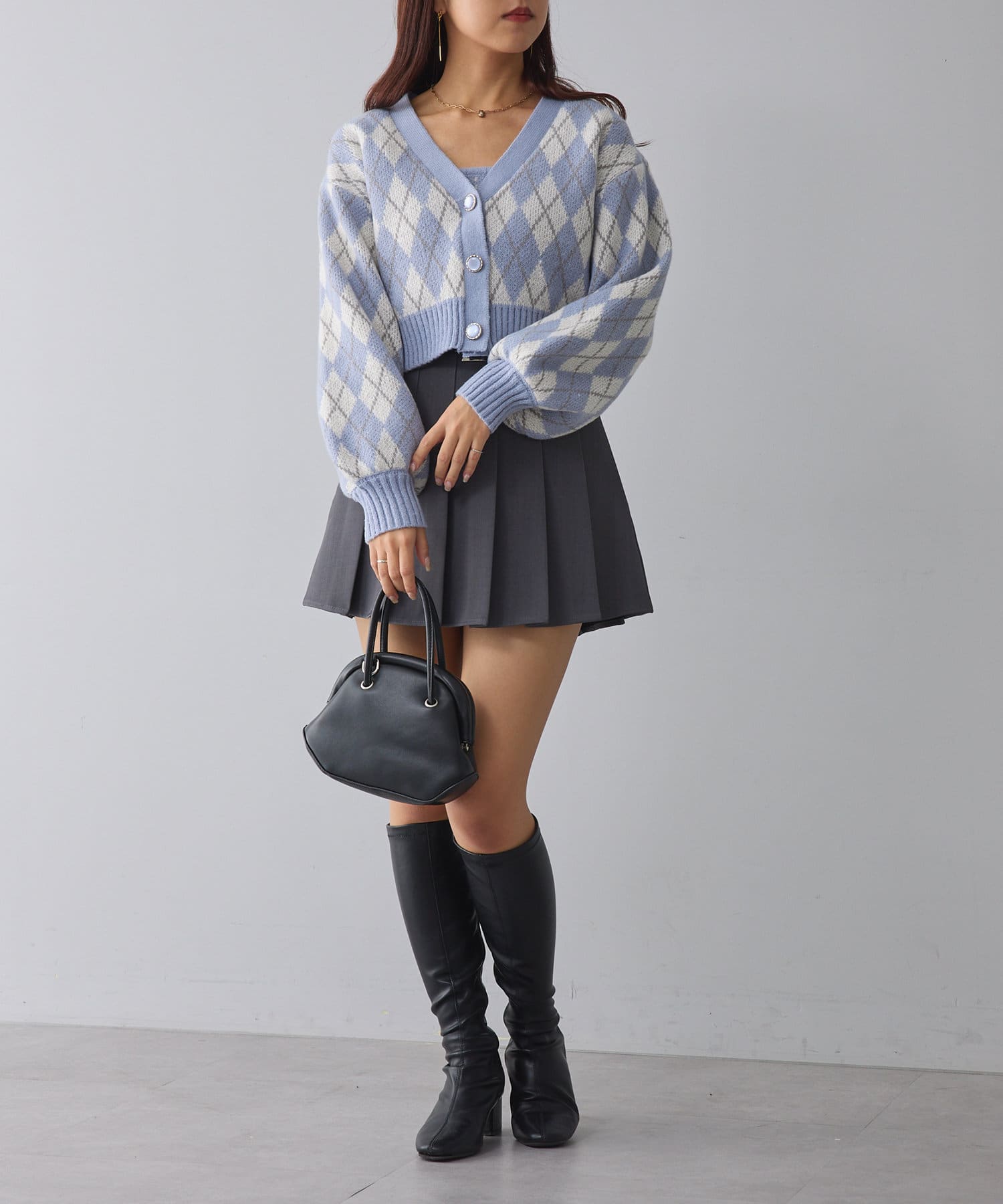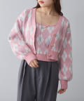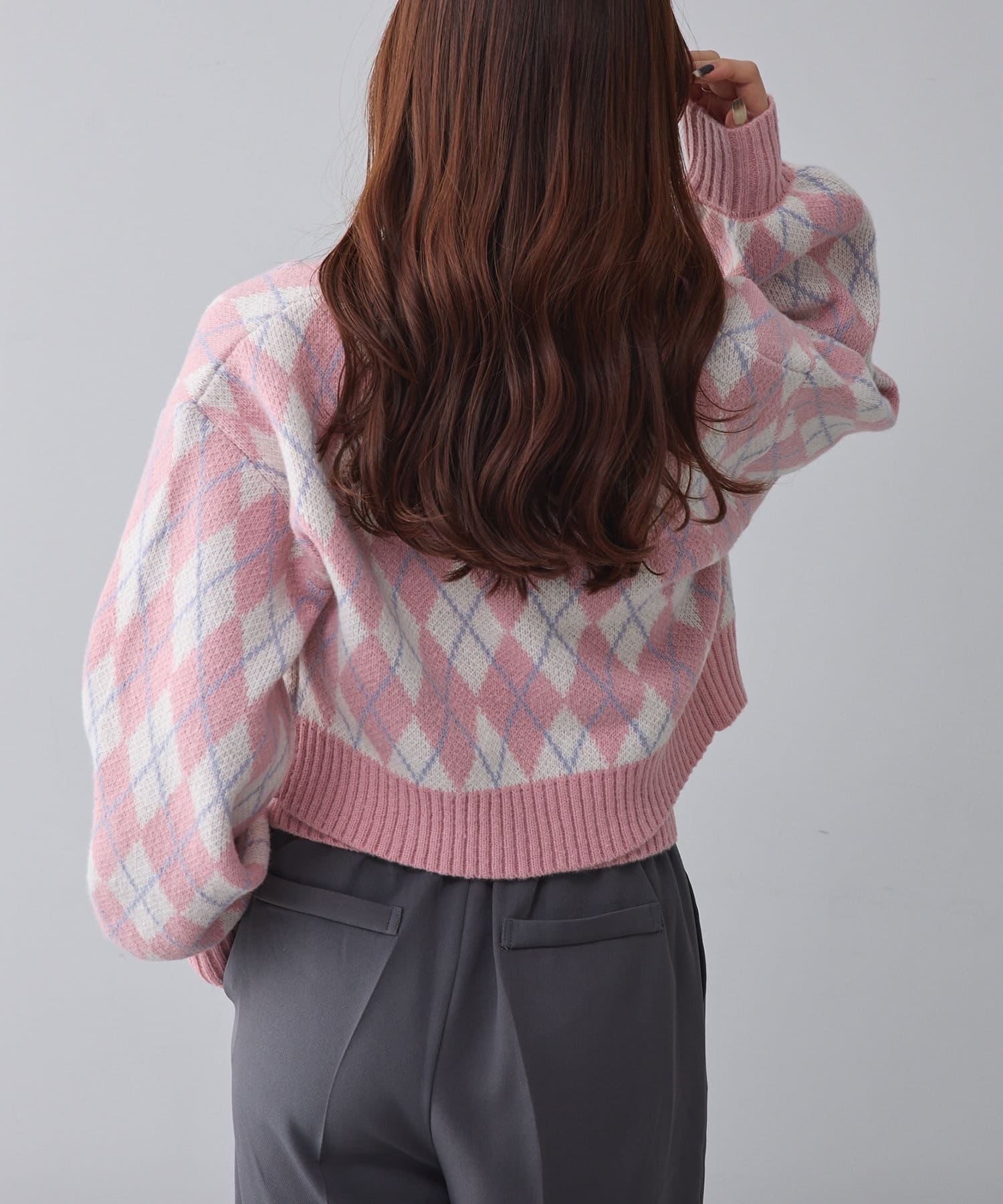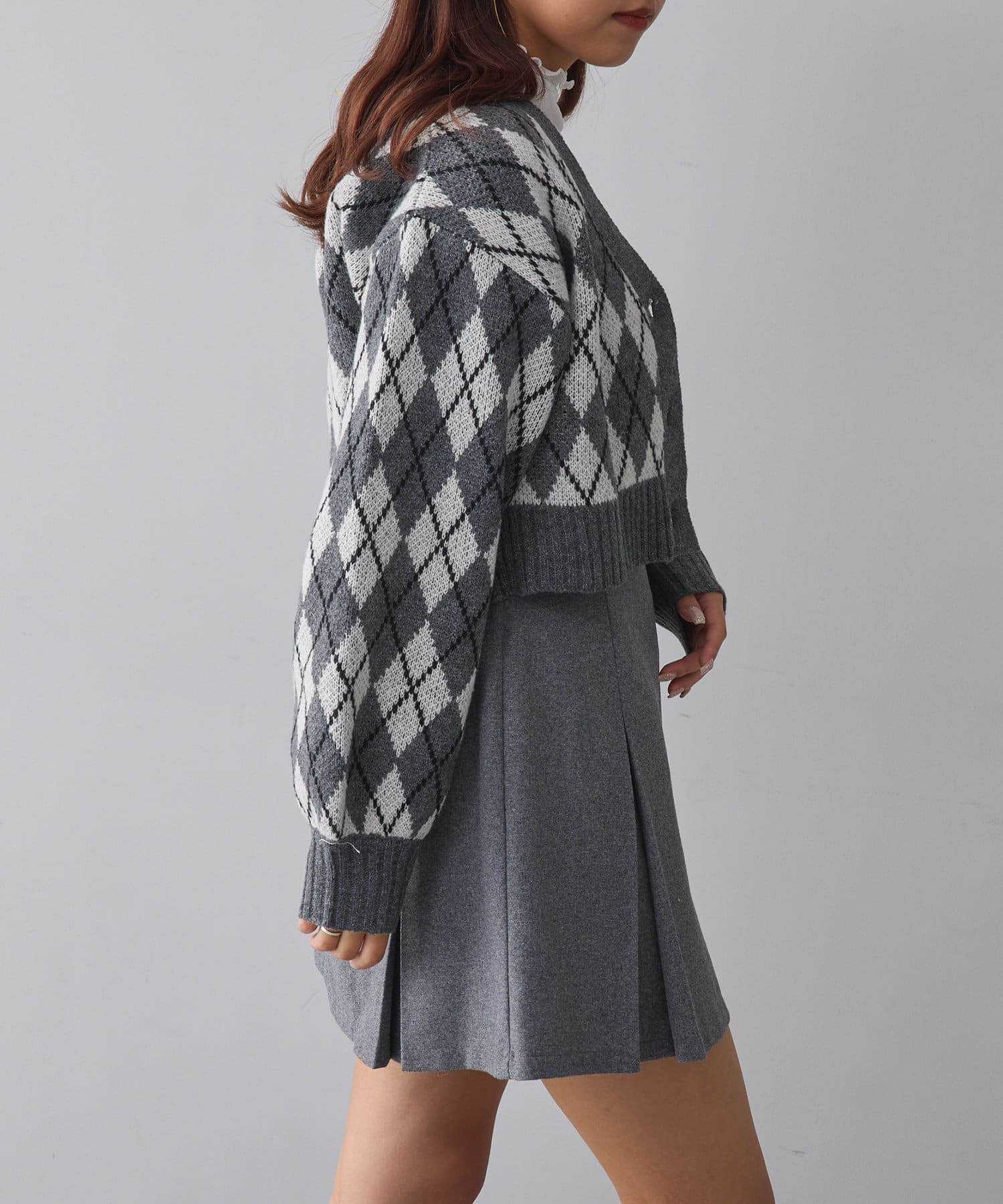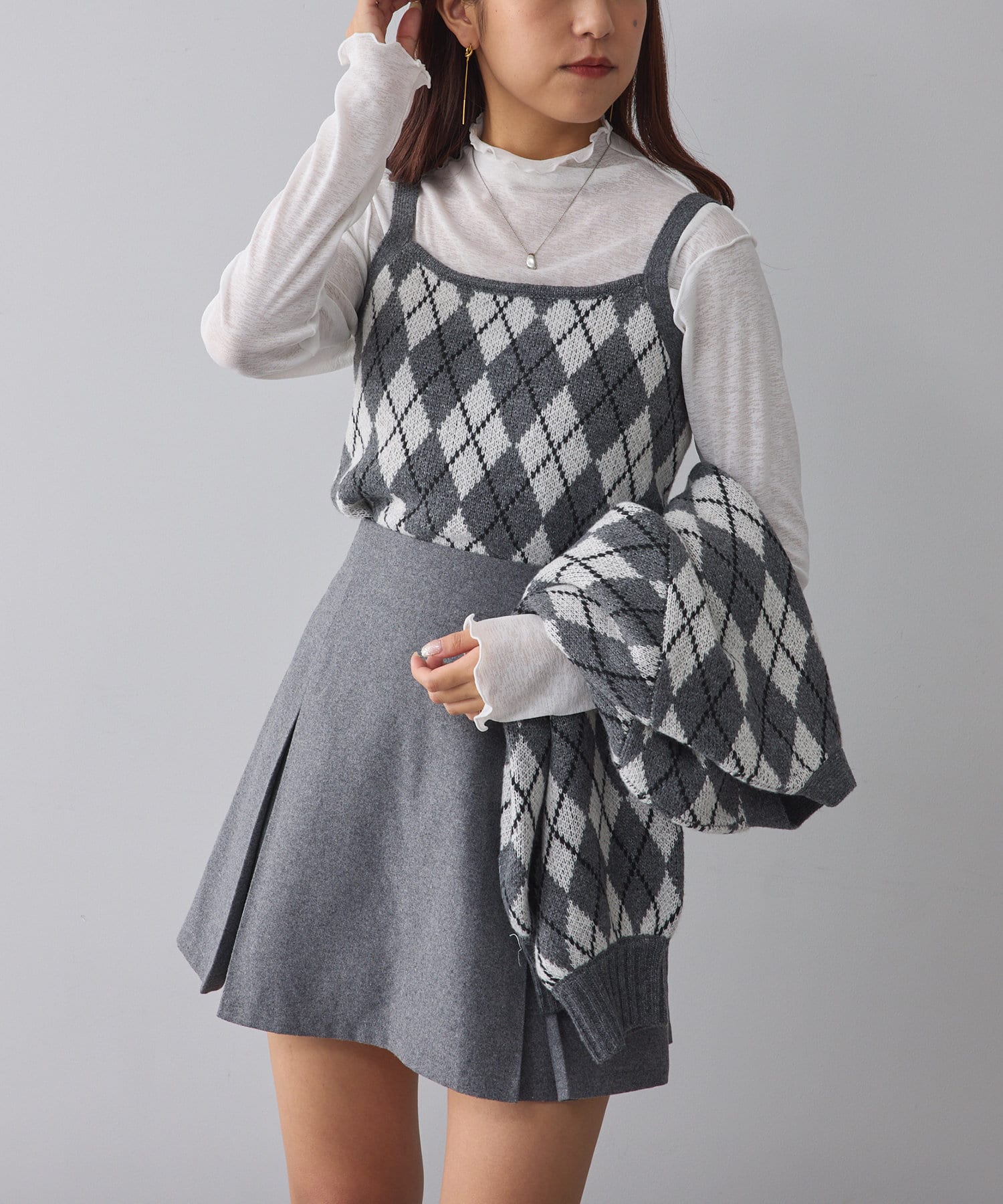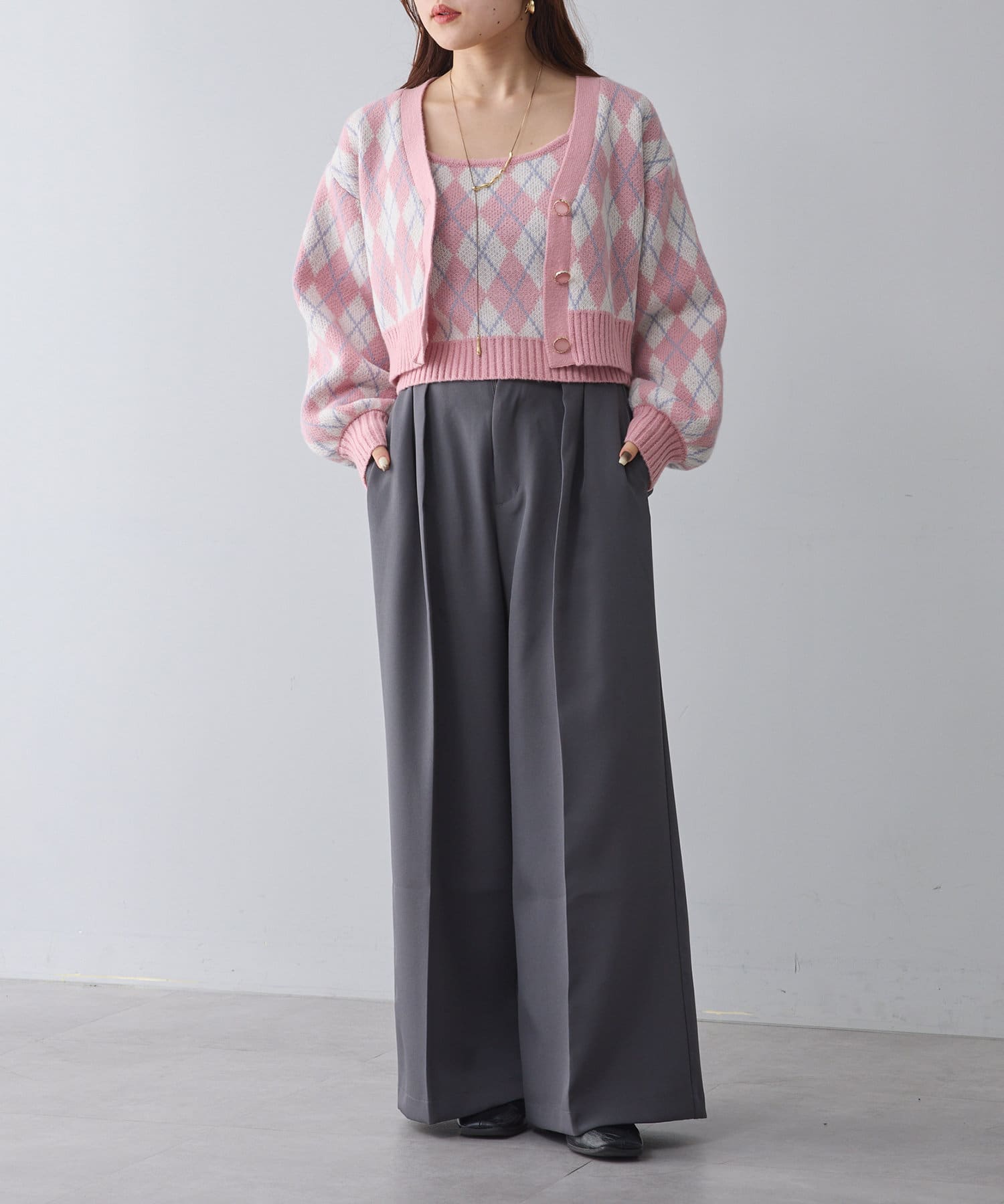 ・明るいアーガイルチェックが特徴のキャミとカーデのセット