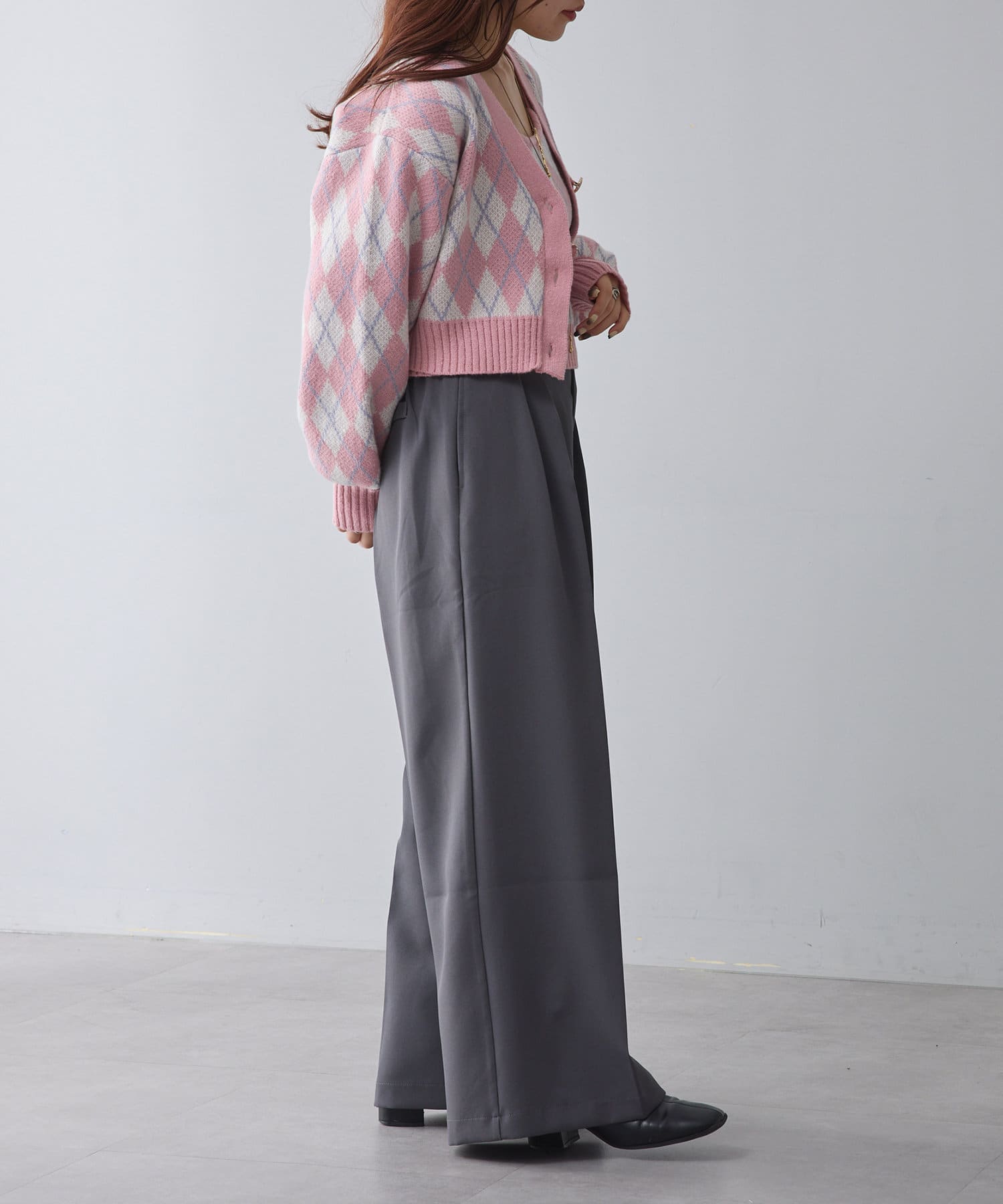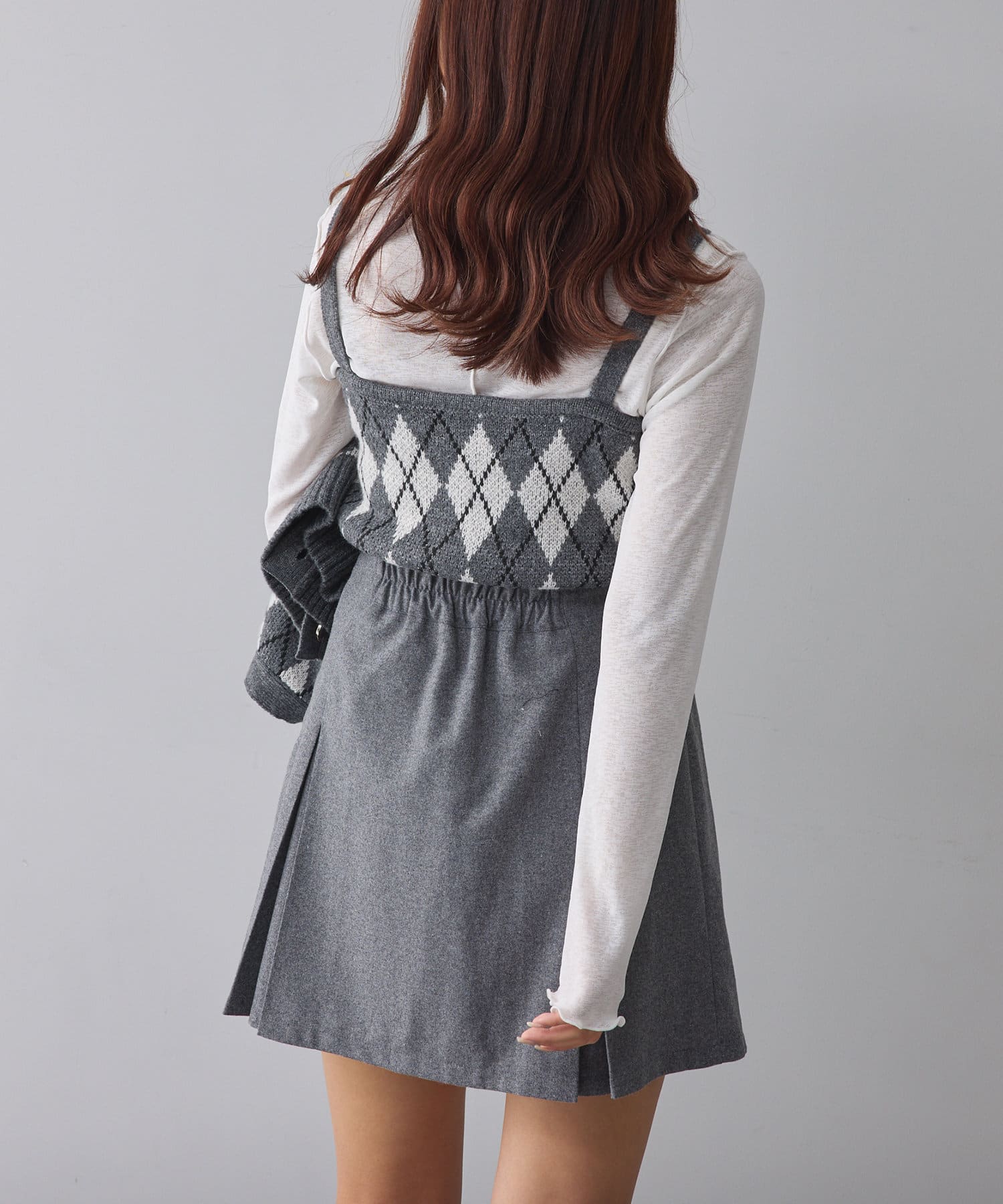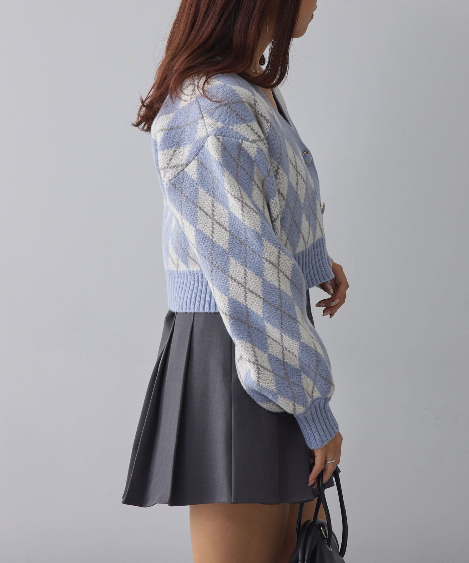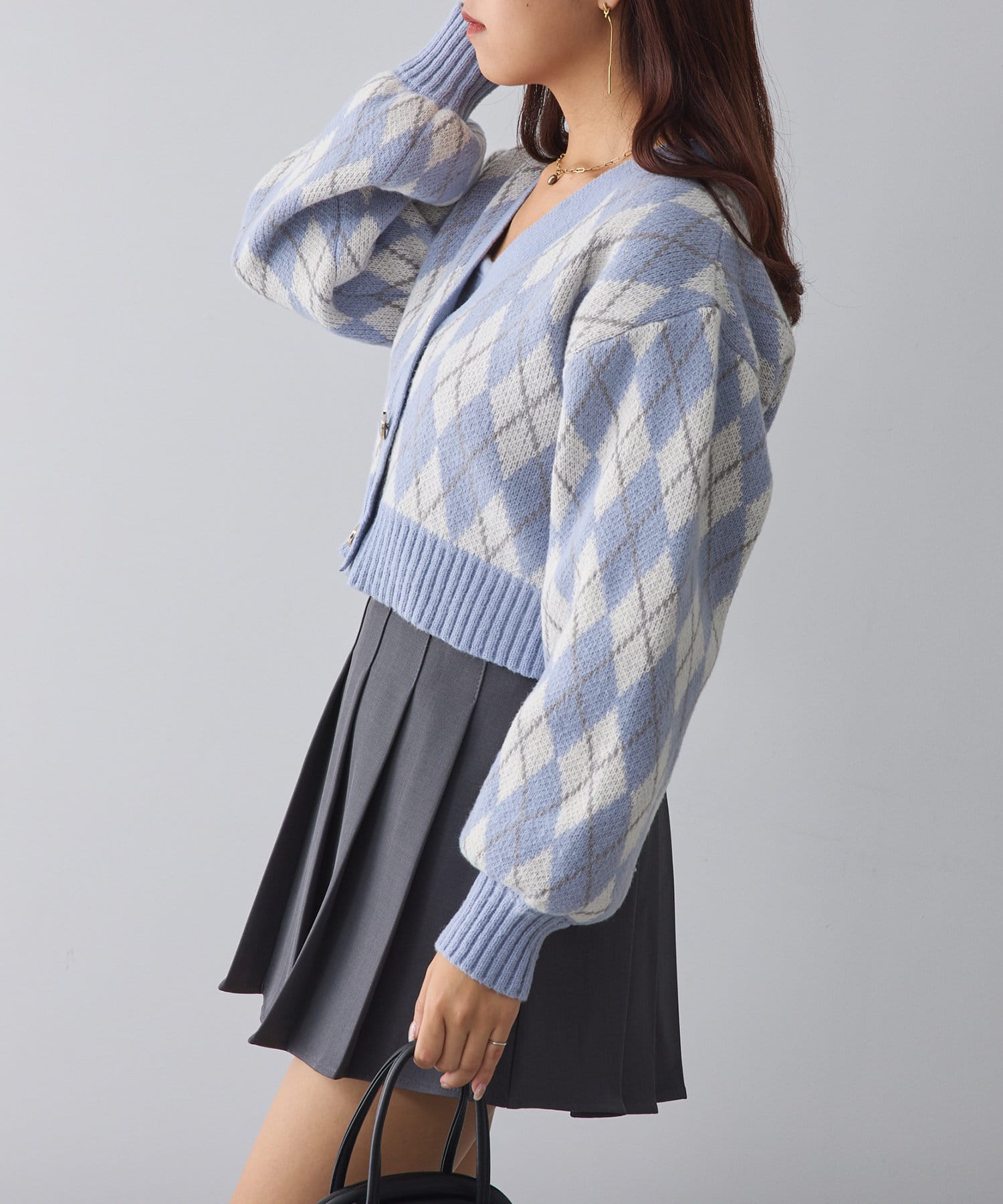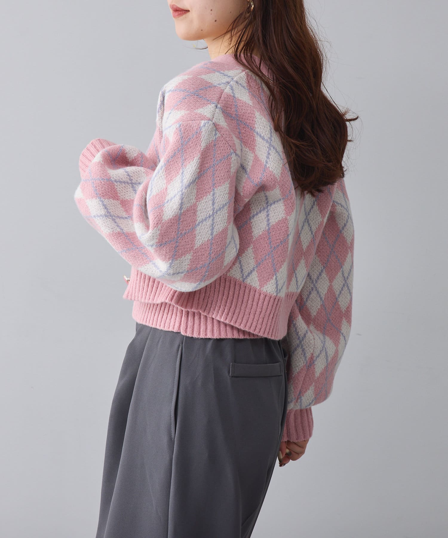 ・明るいアーガイルチェックが特徴のキャミとカーデのセット