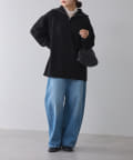 ・アウターはノーカラーのものを選んで、ハーフジップの襟を出してあげると小顔効果にも期待できるコーデに