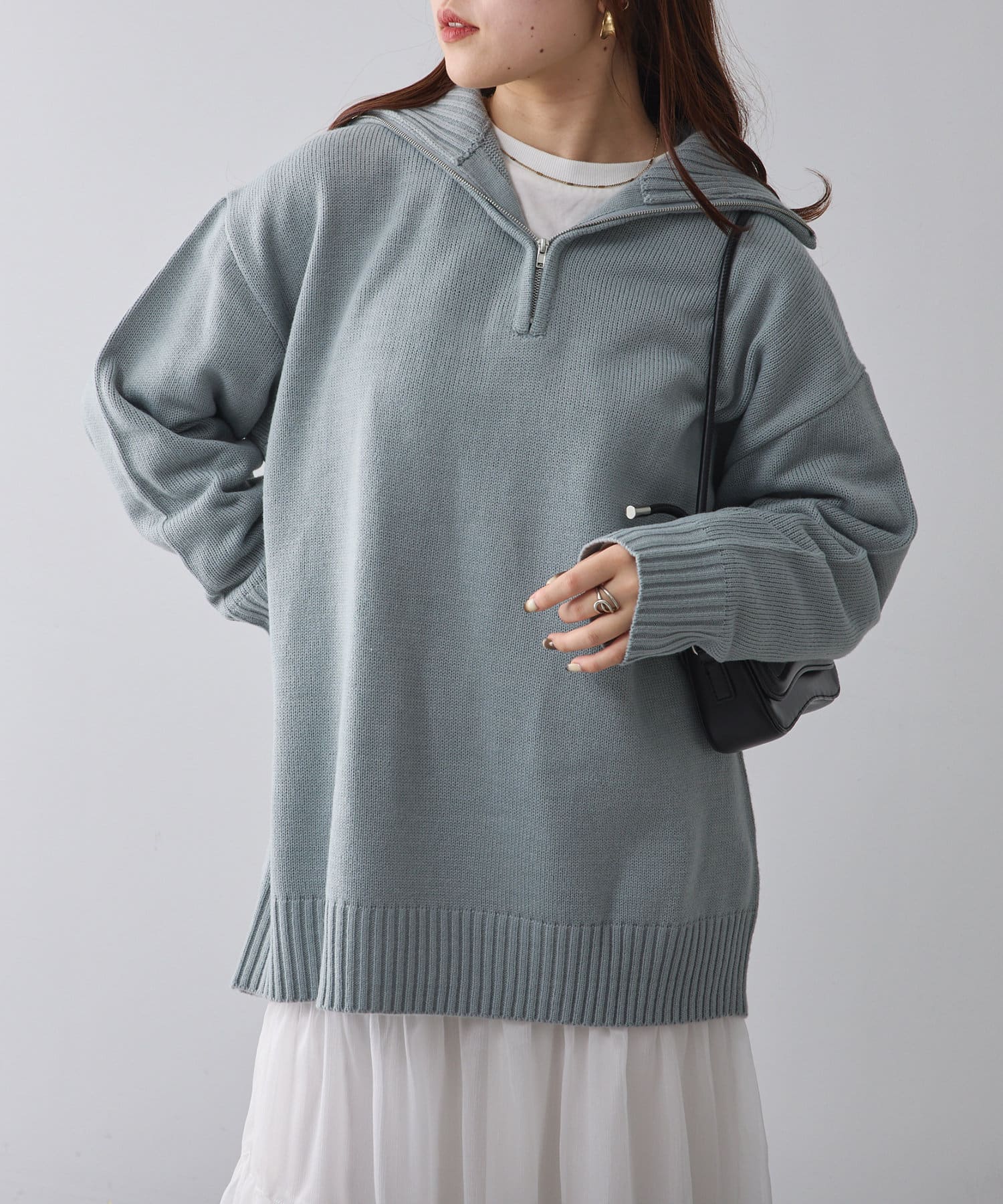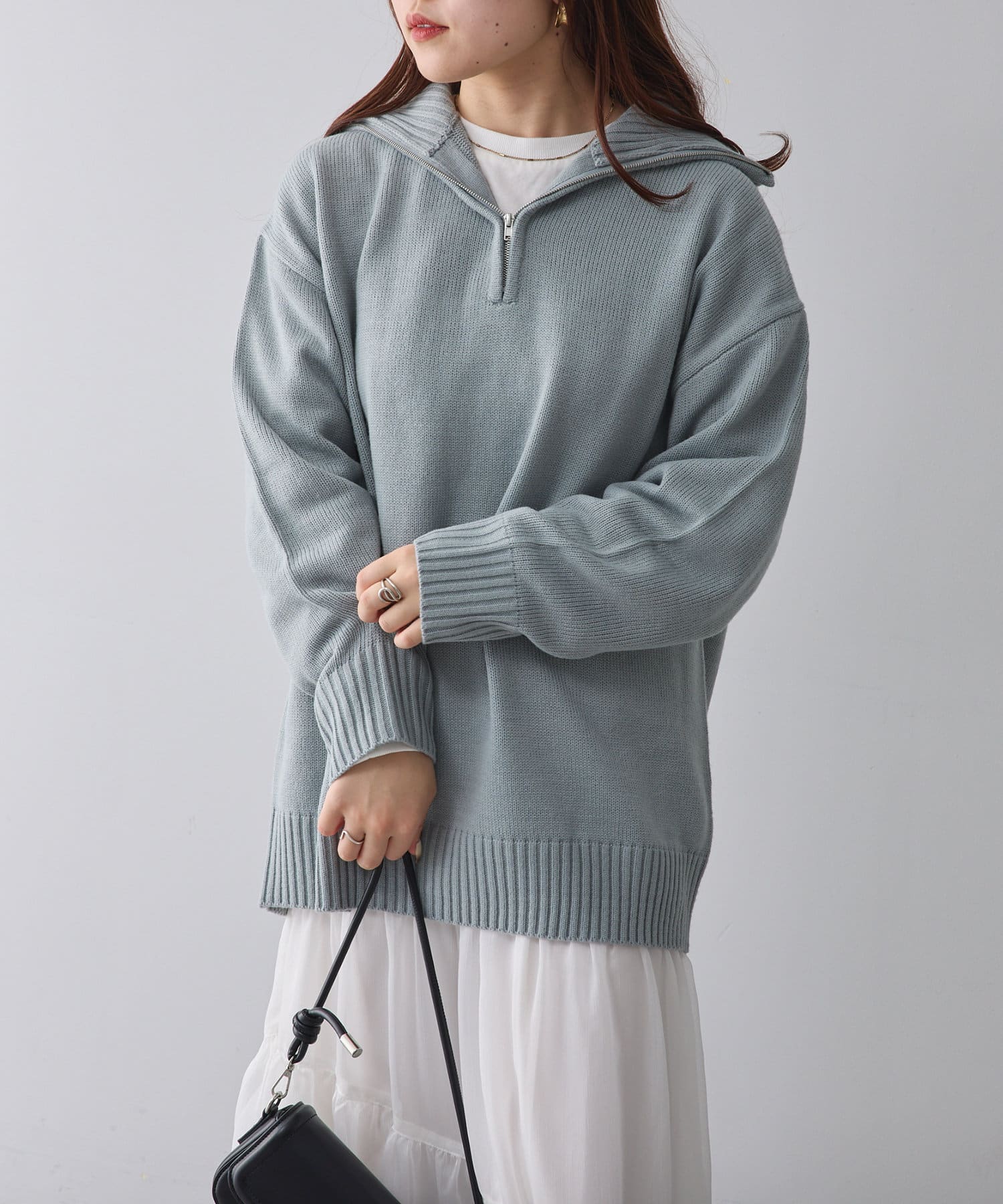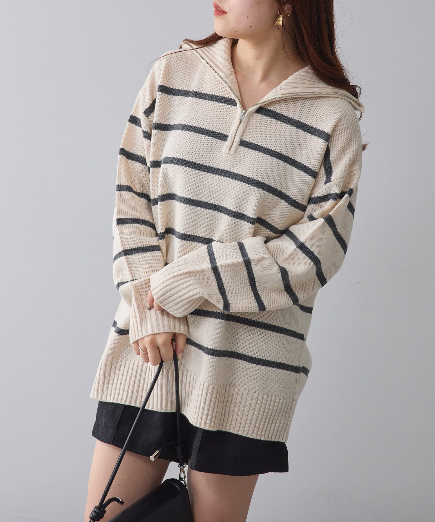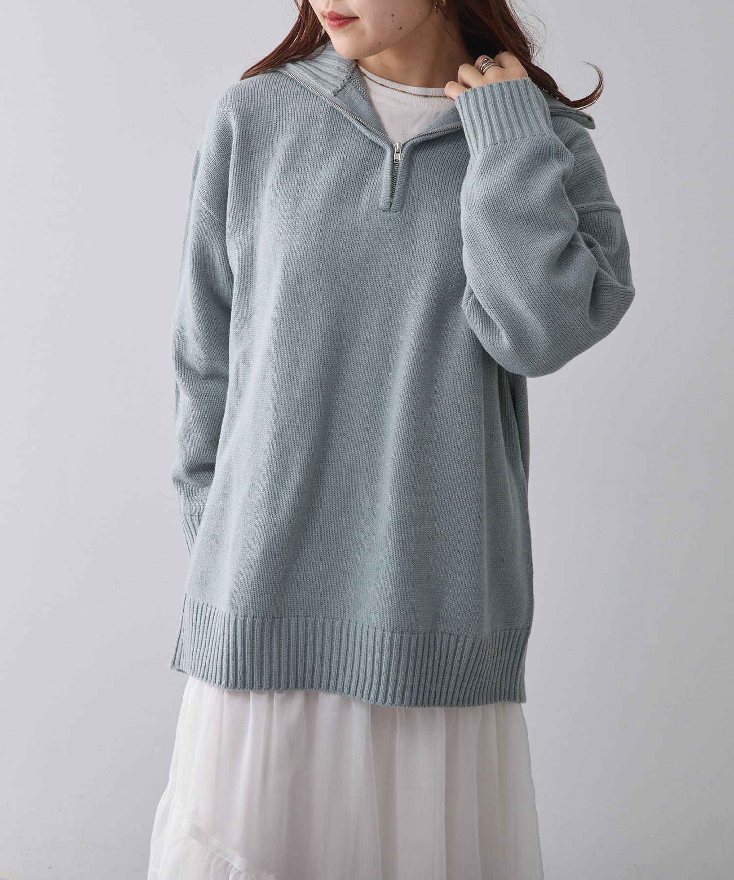 ・長めの丈が可愛いハーフジップニット