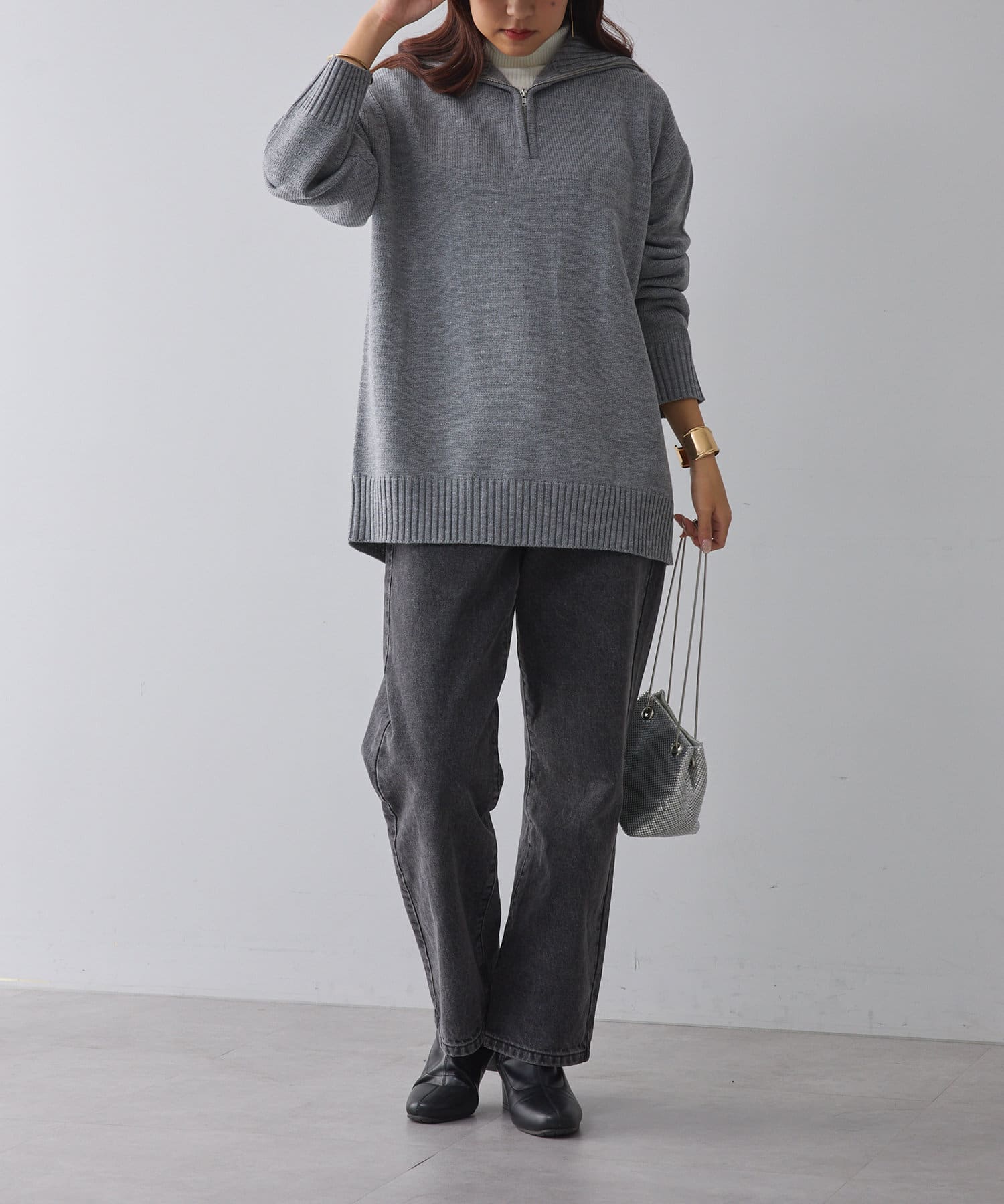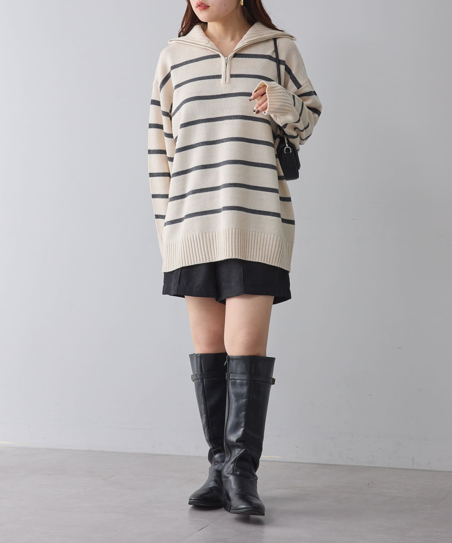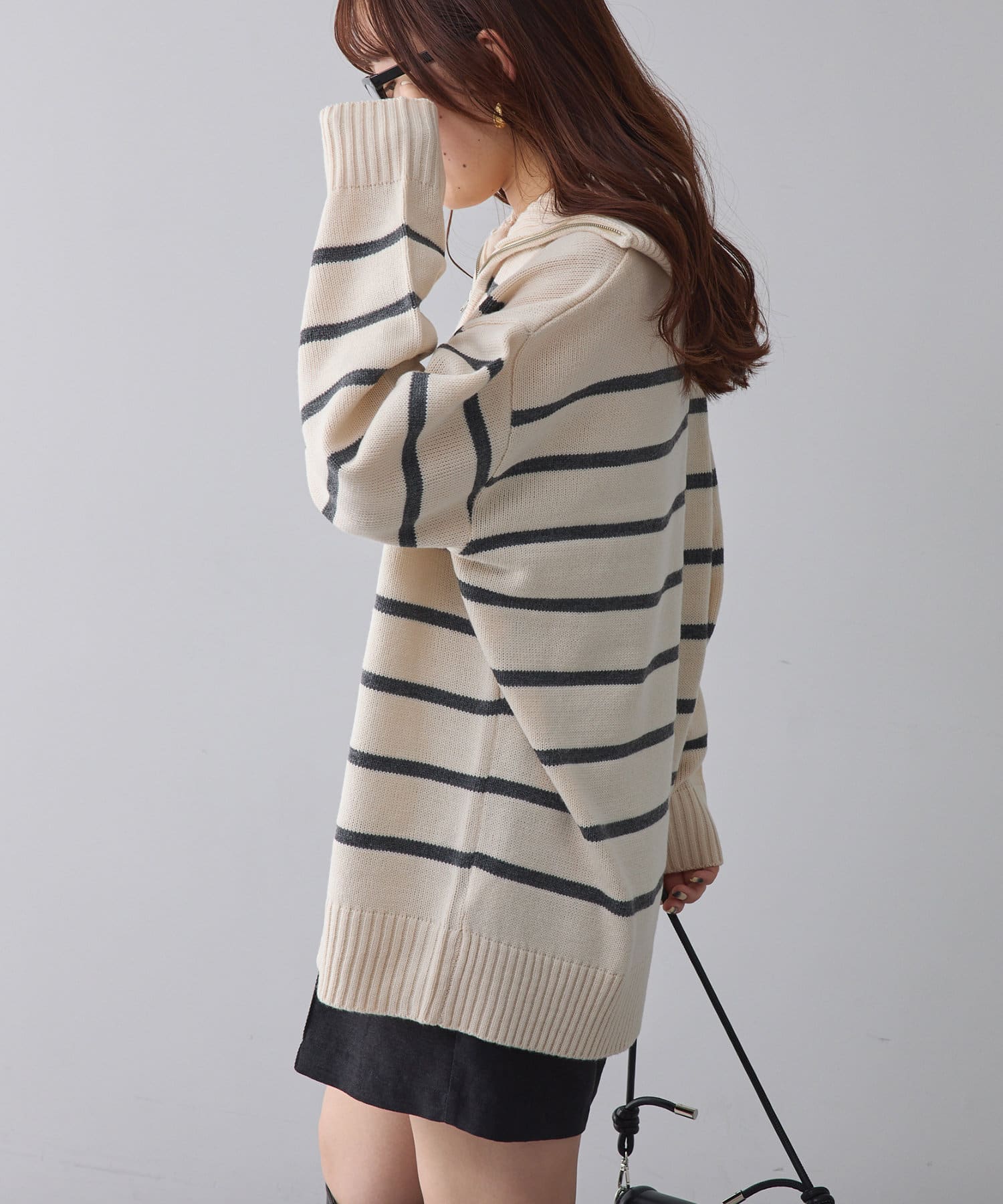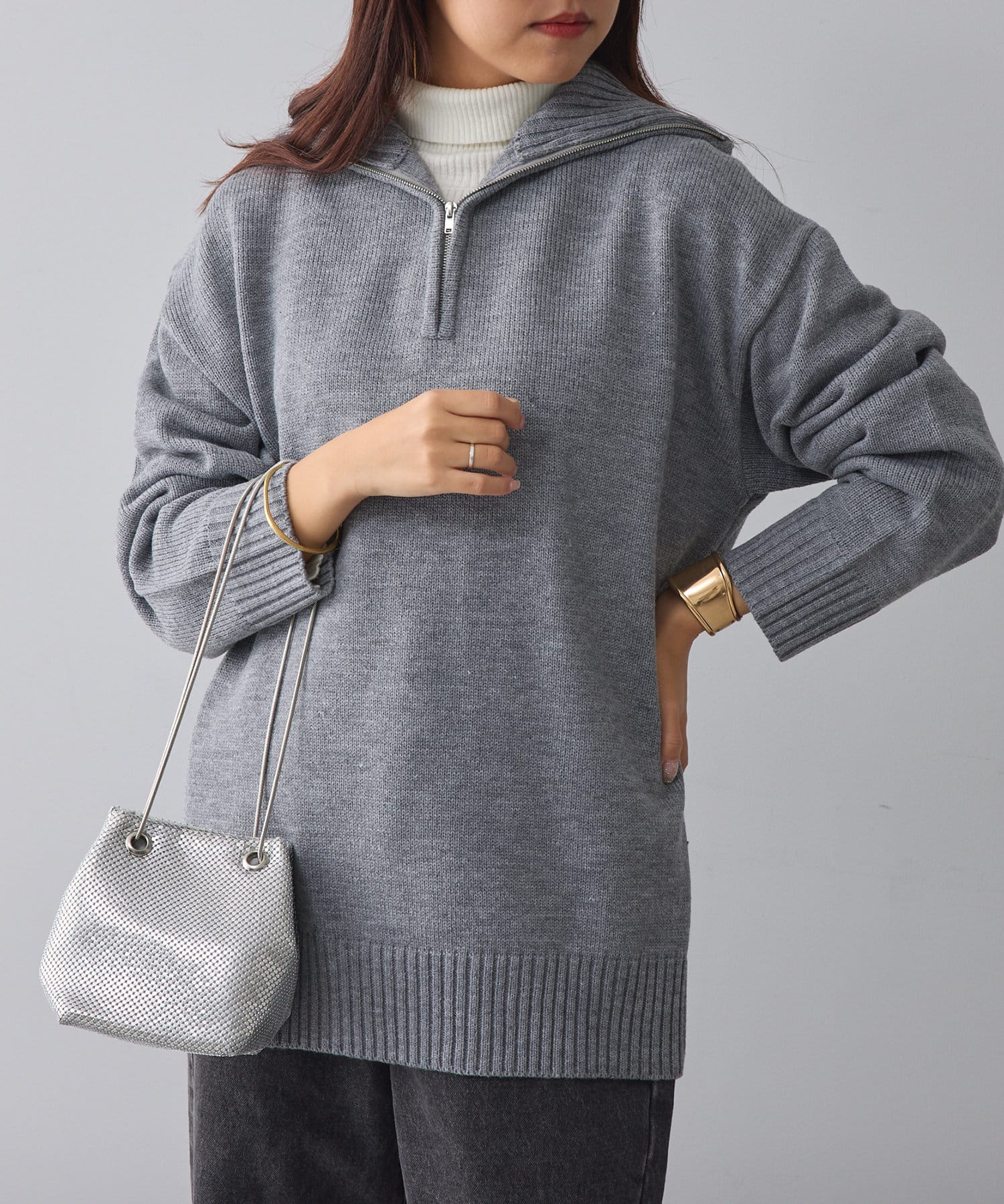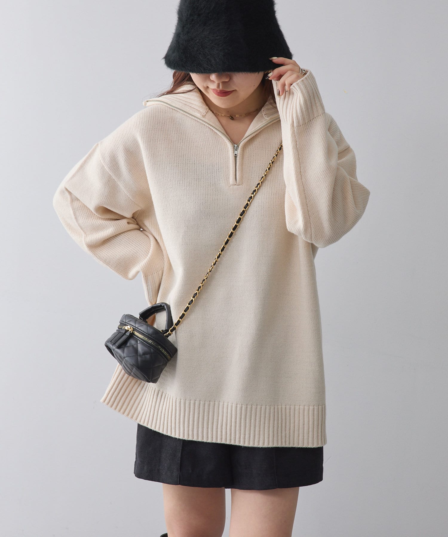 ・長めの丈が可愛いハーフジップニット