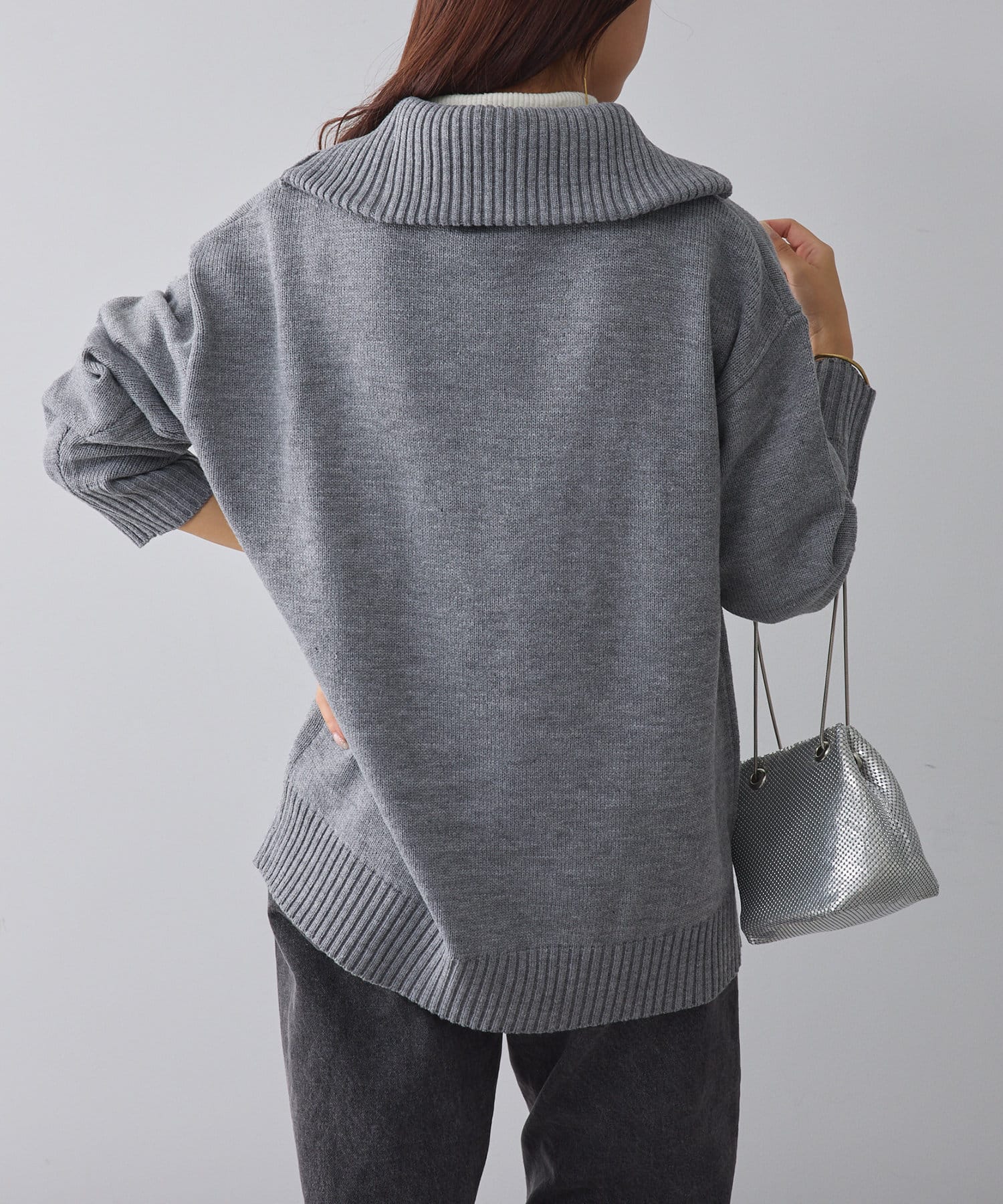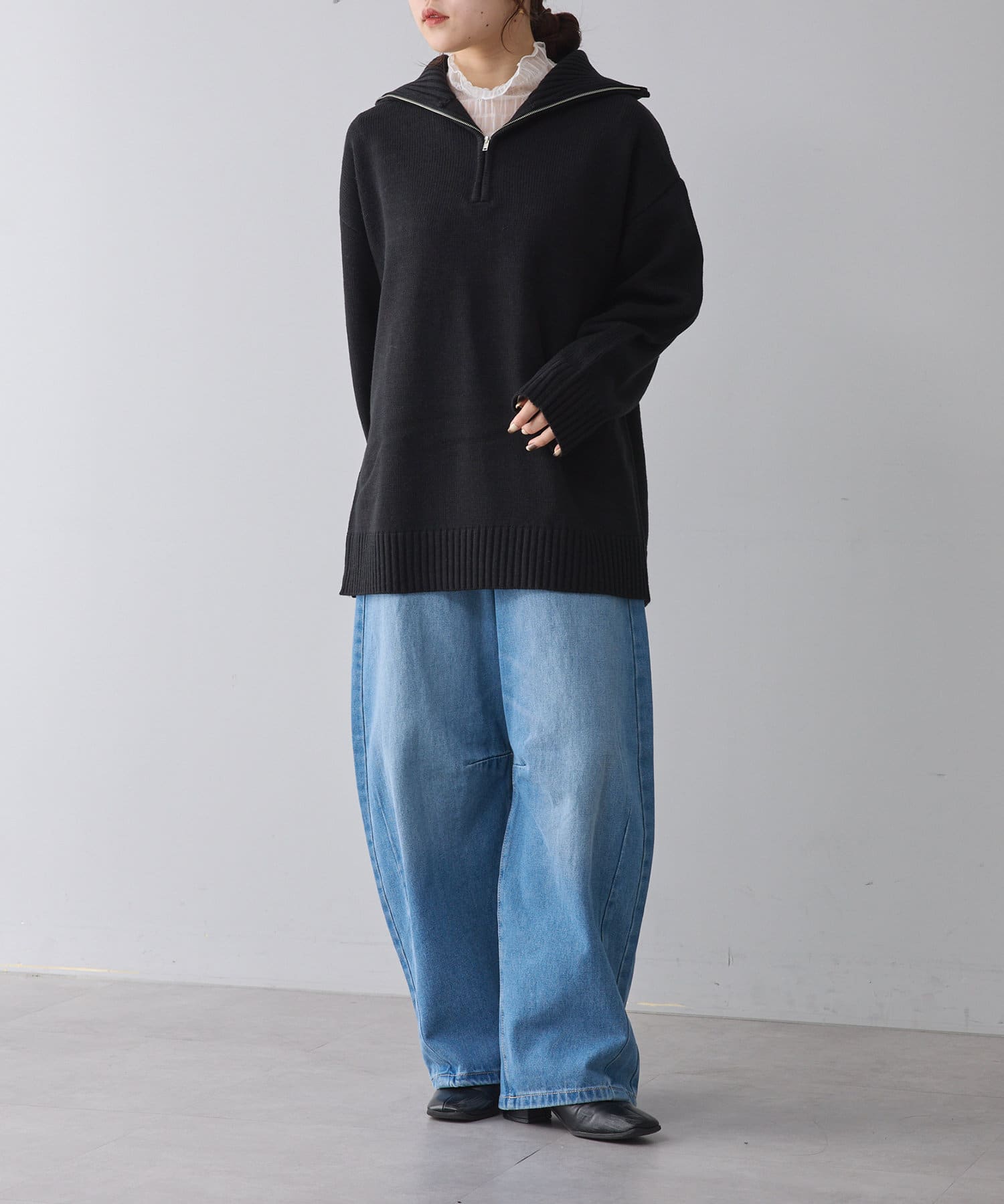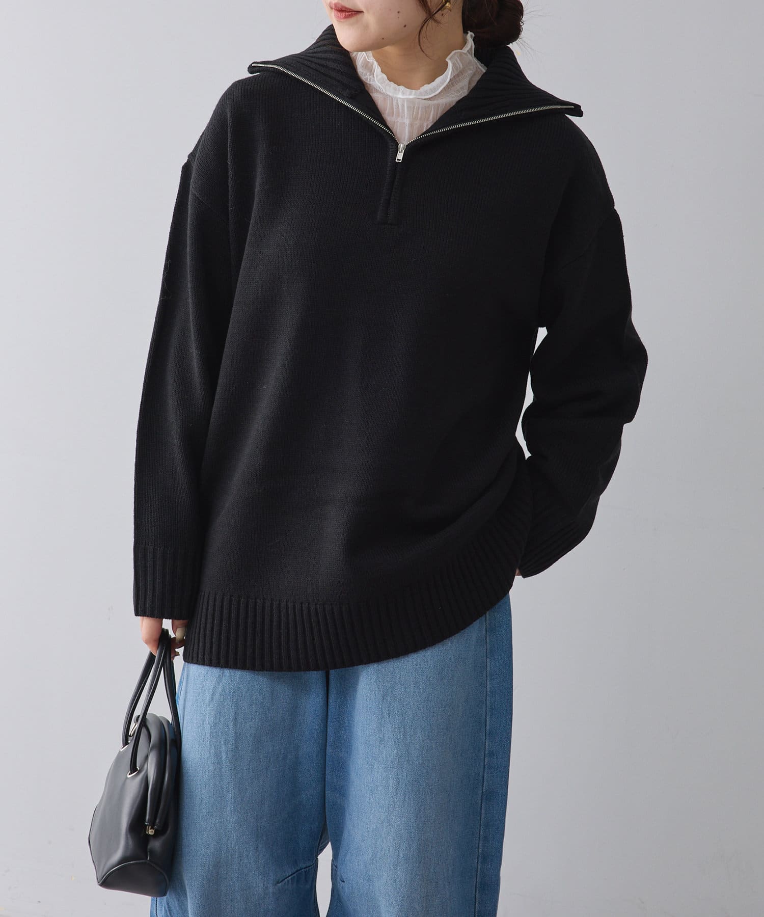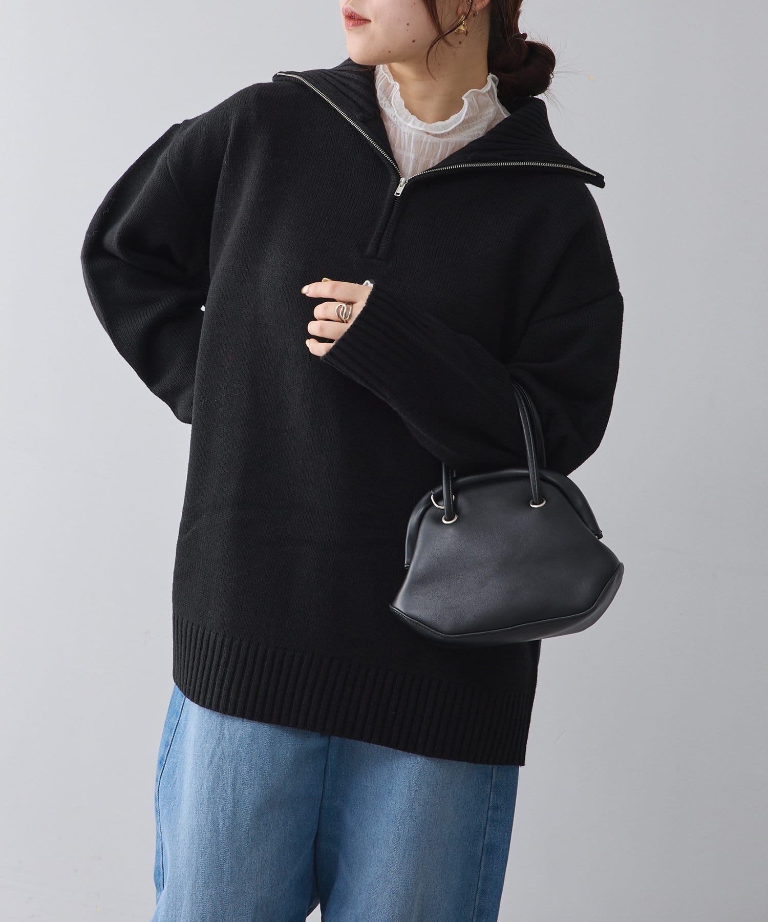 ・長めの丈が可愛いハーフジップニット