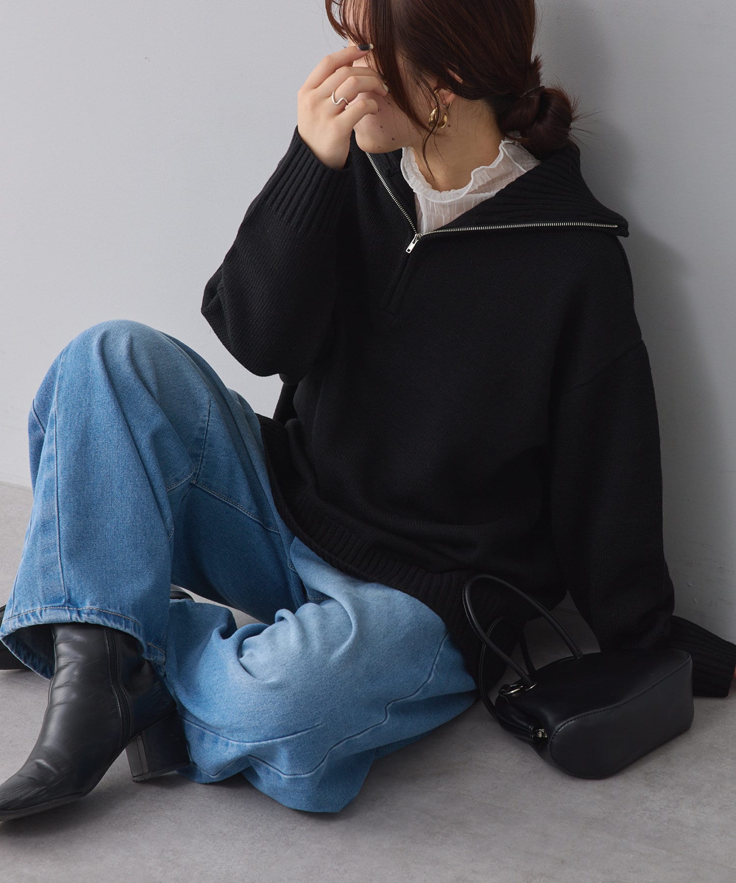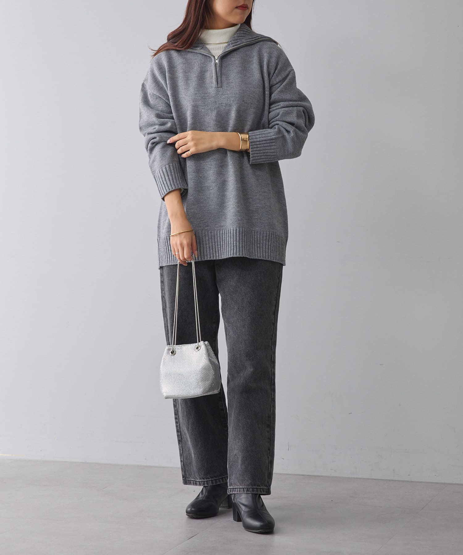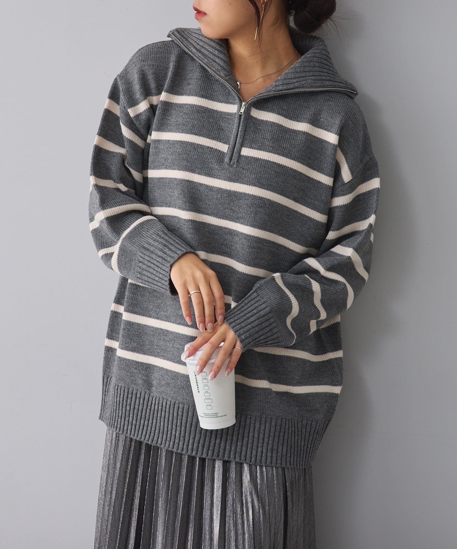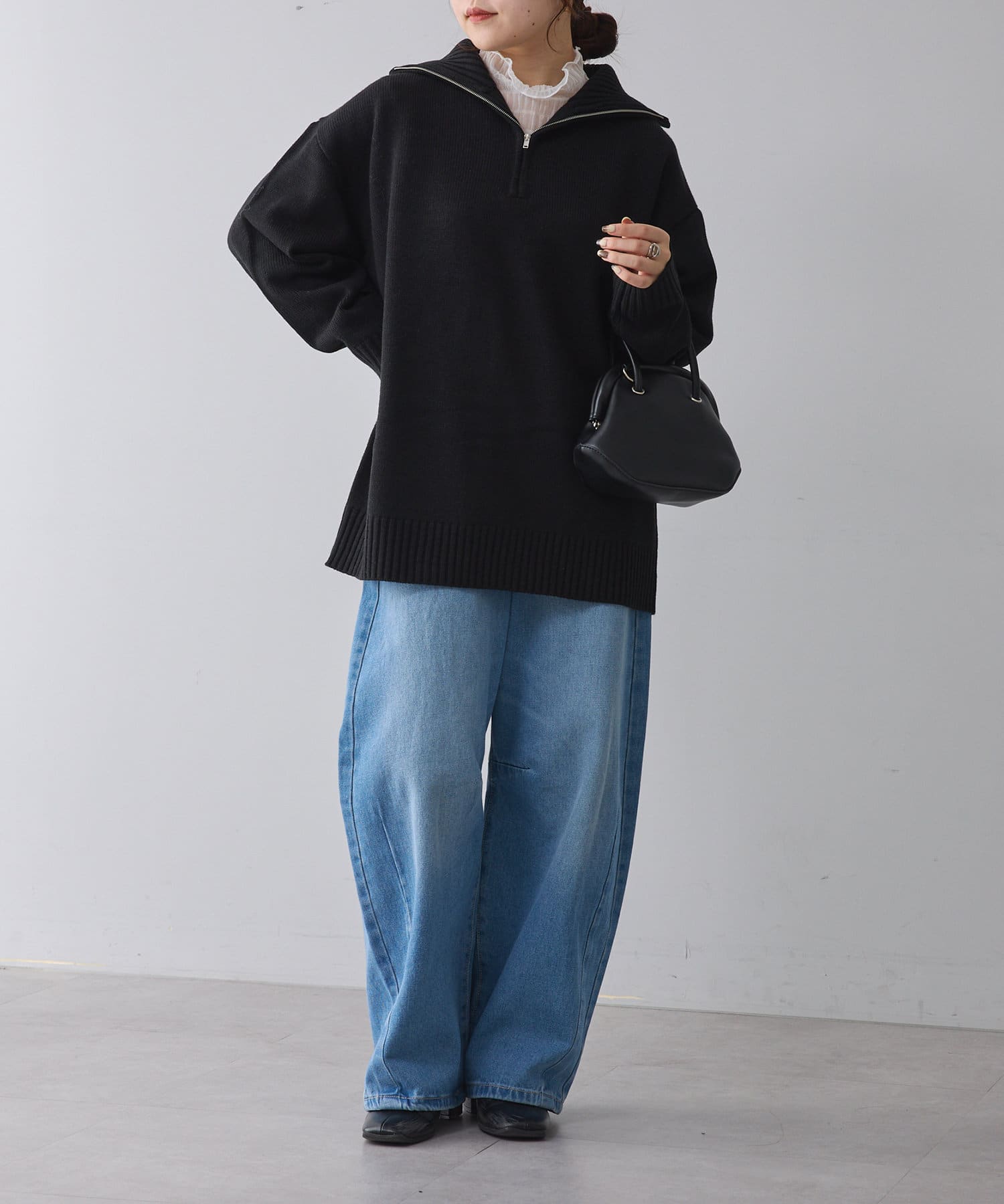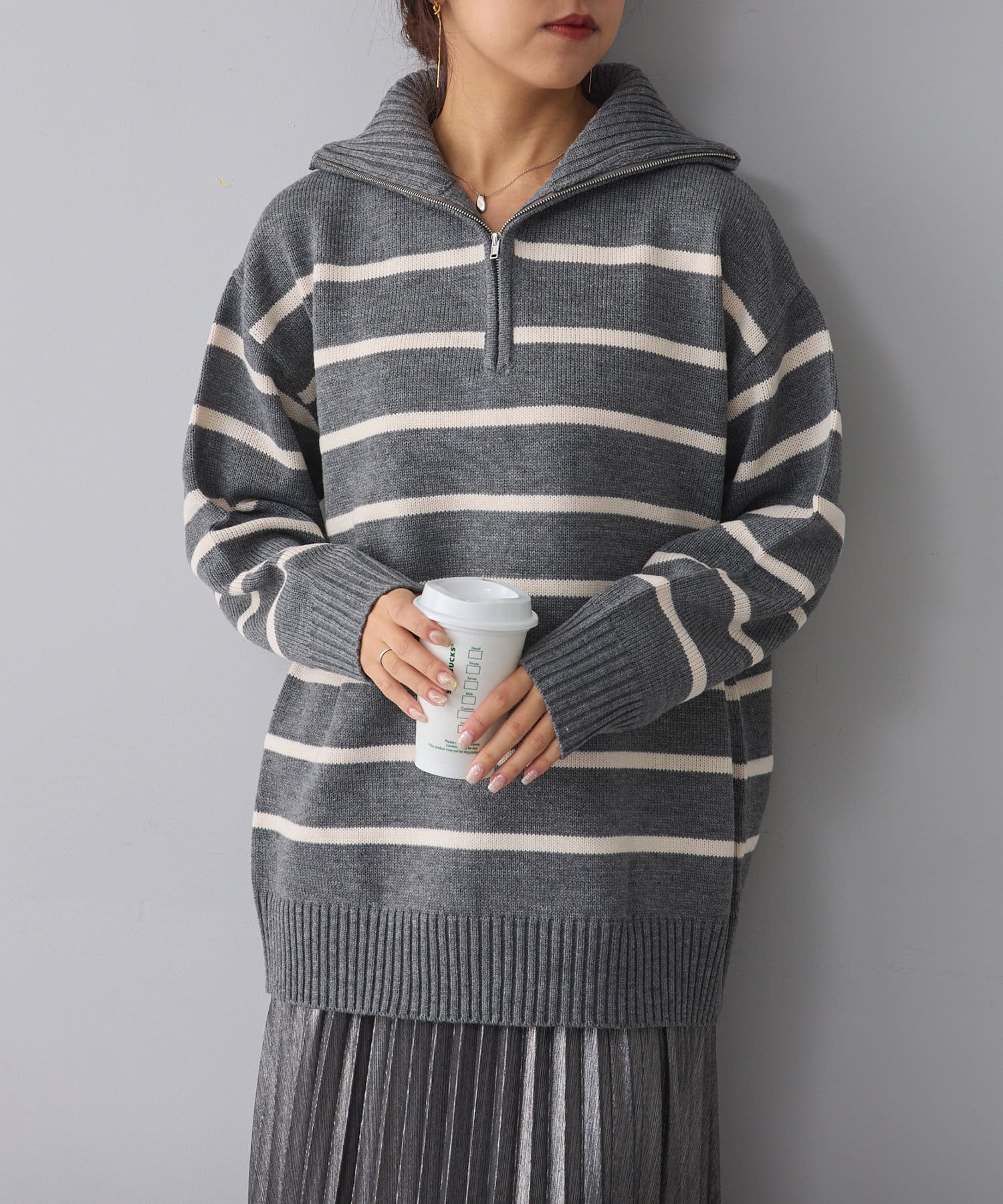・長めの丈が可愛いハーフジップニット