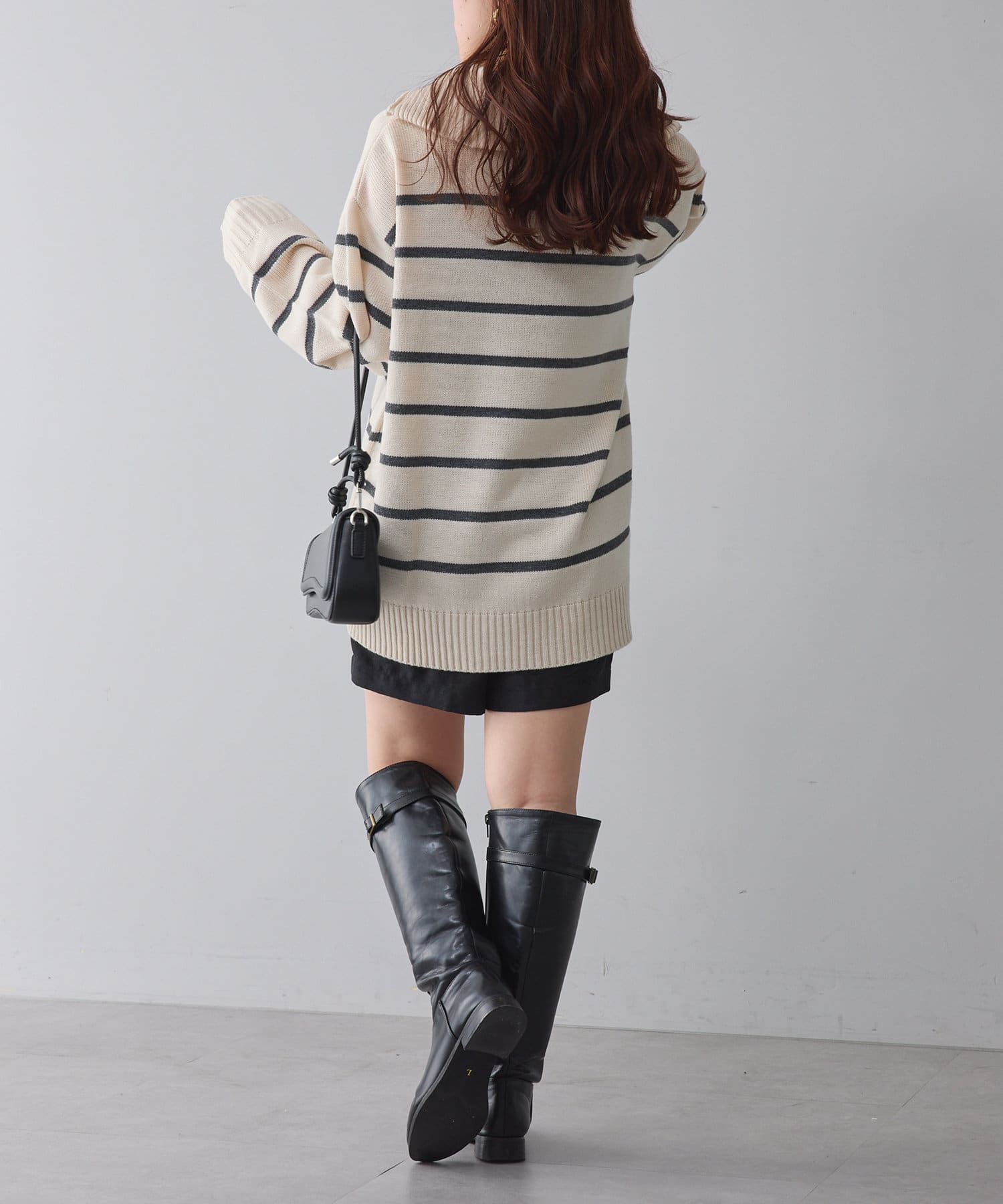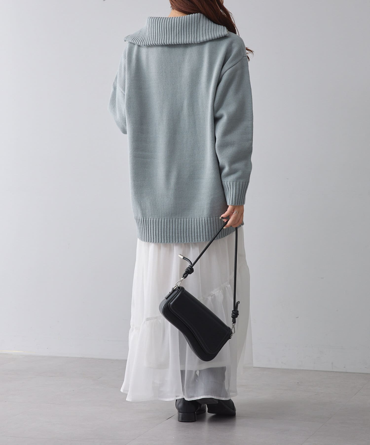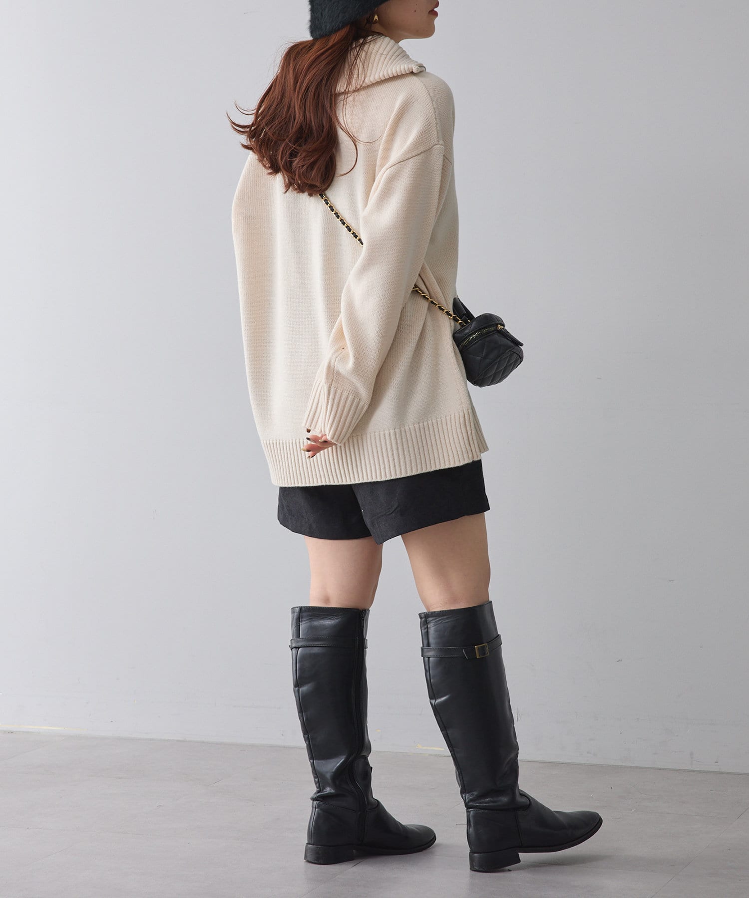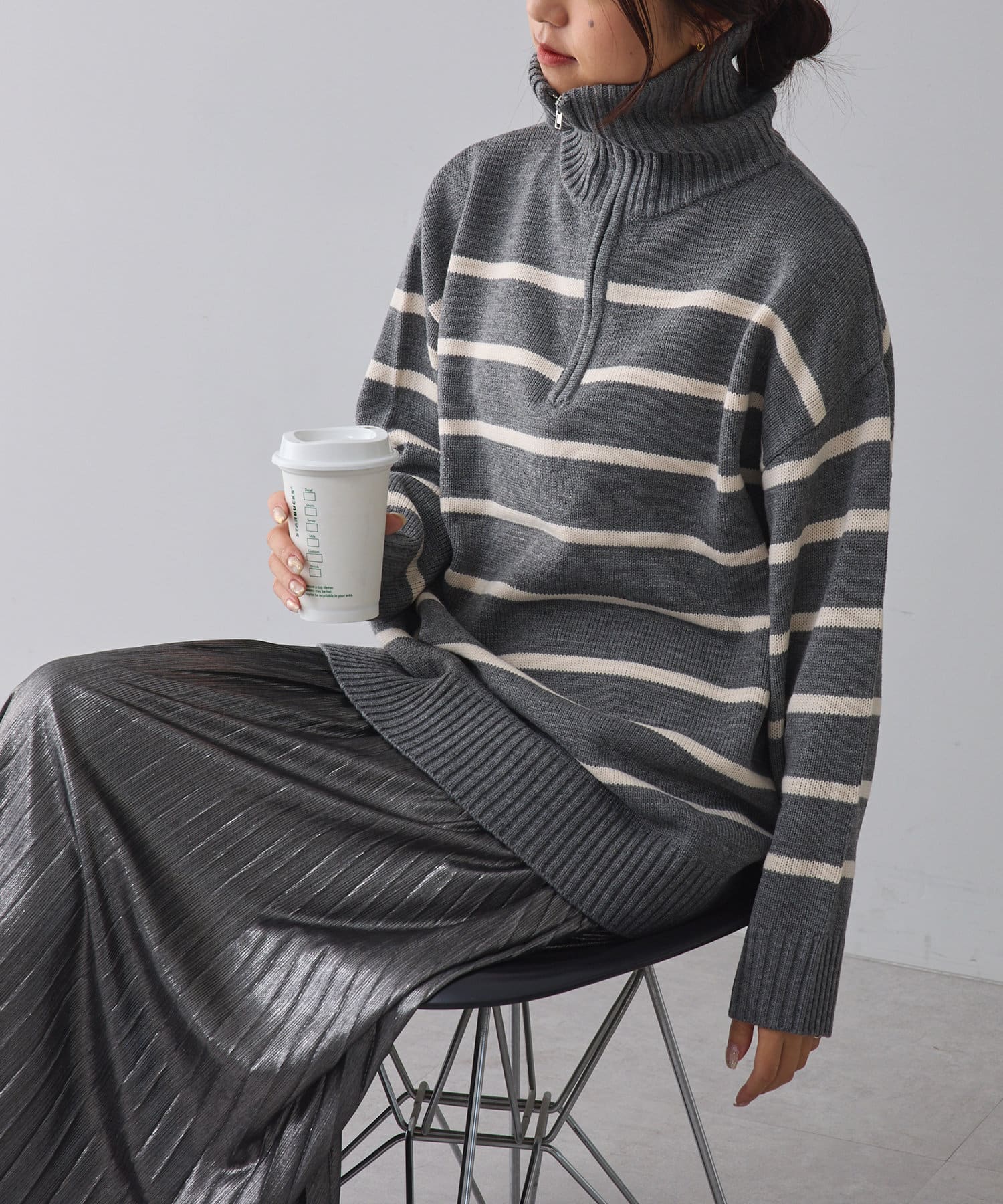 ・長めの丈が可愛いハーフジップニット