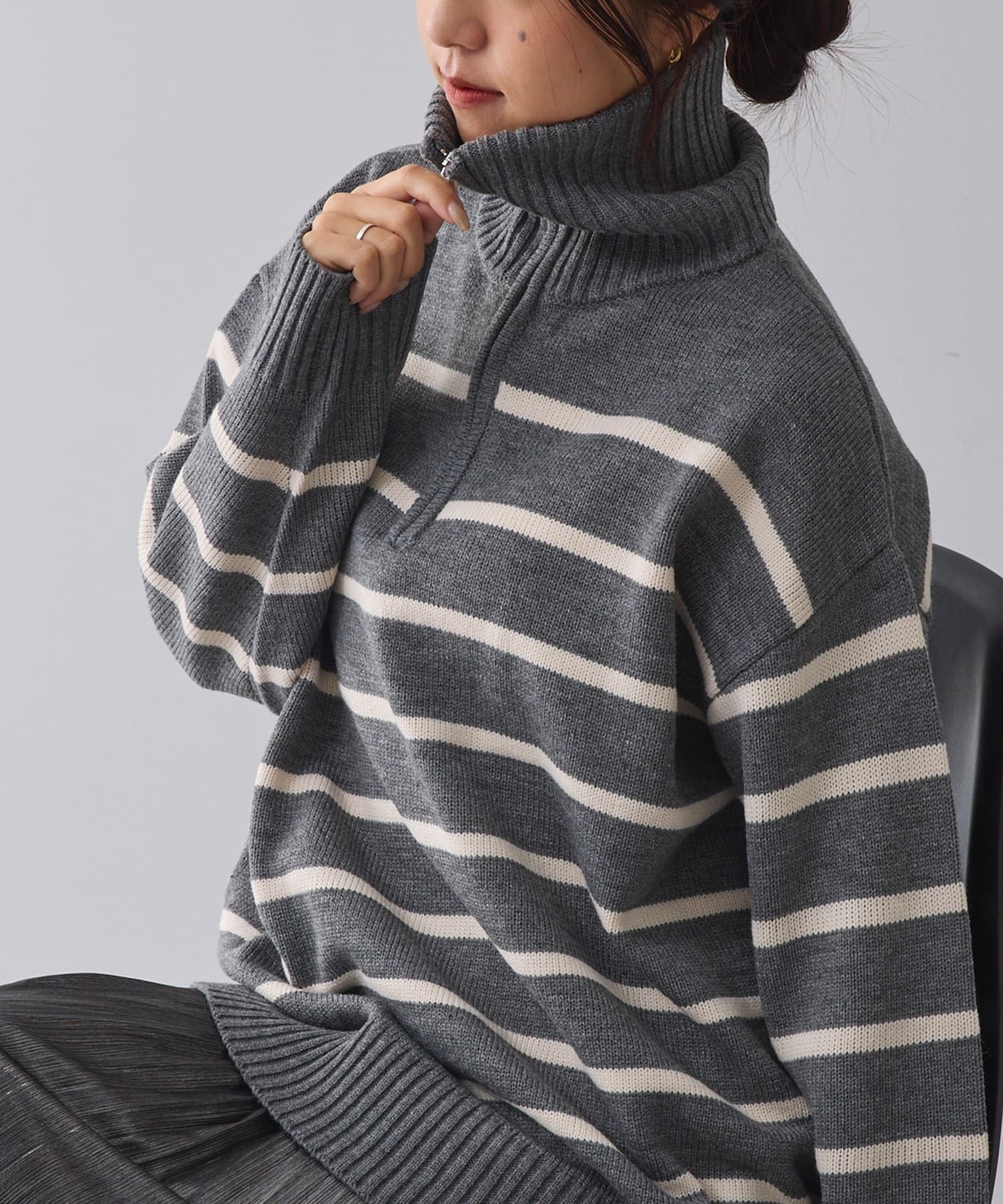 【大人カジュアルにも◎】無地、ボーダーハーフジップニット
