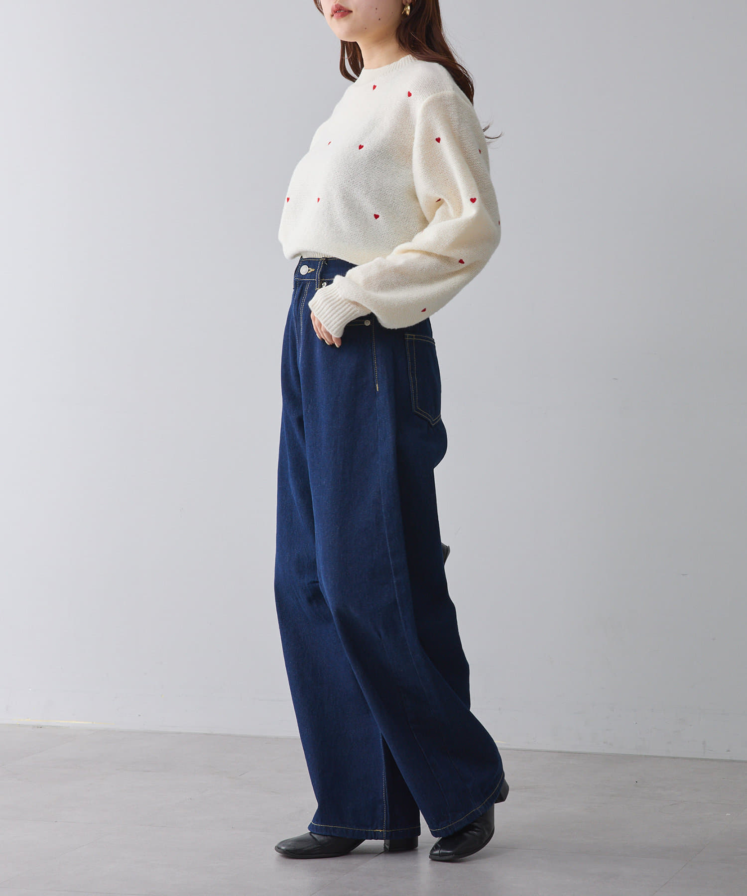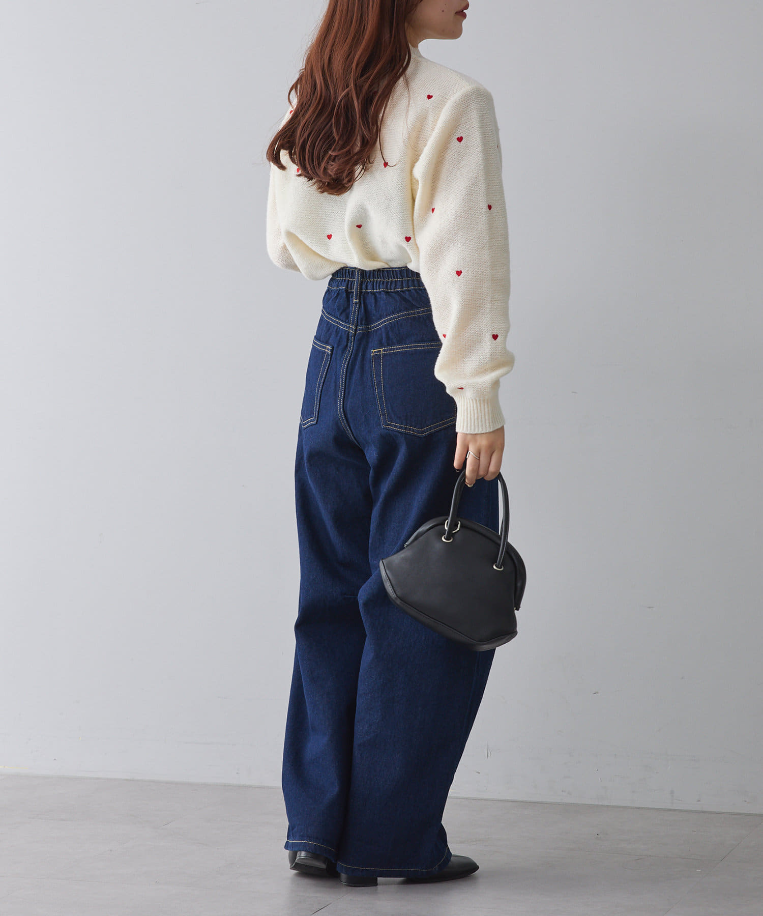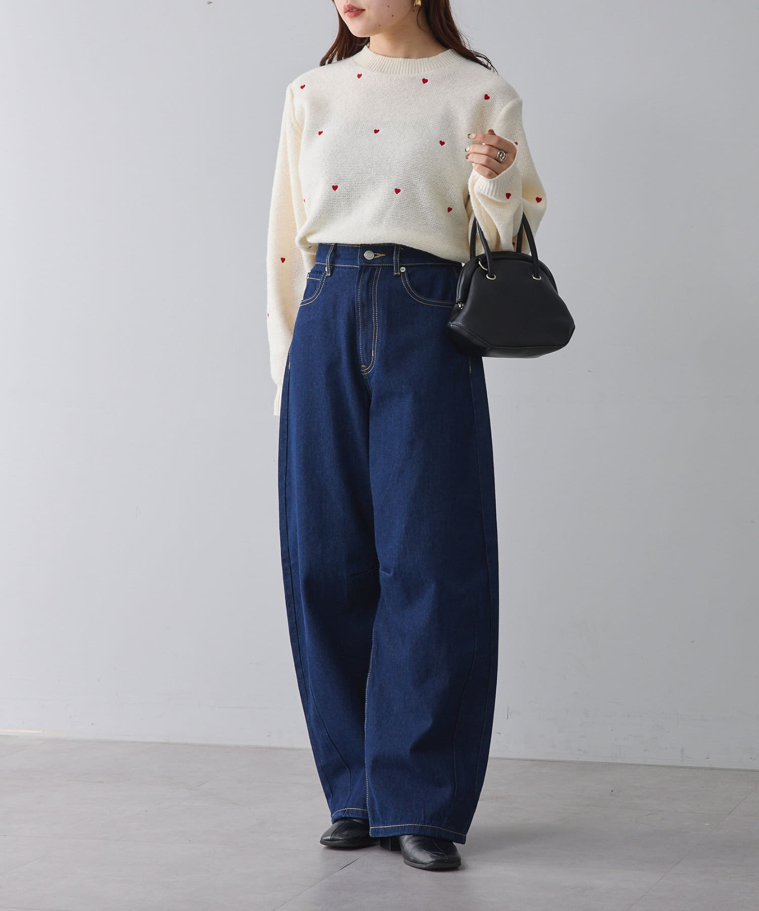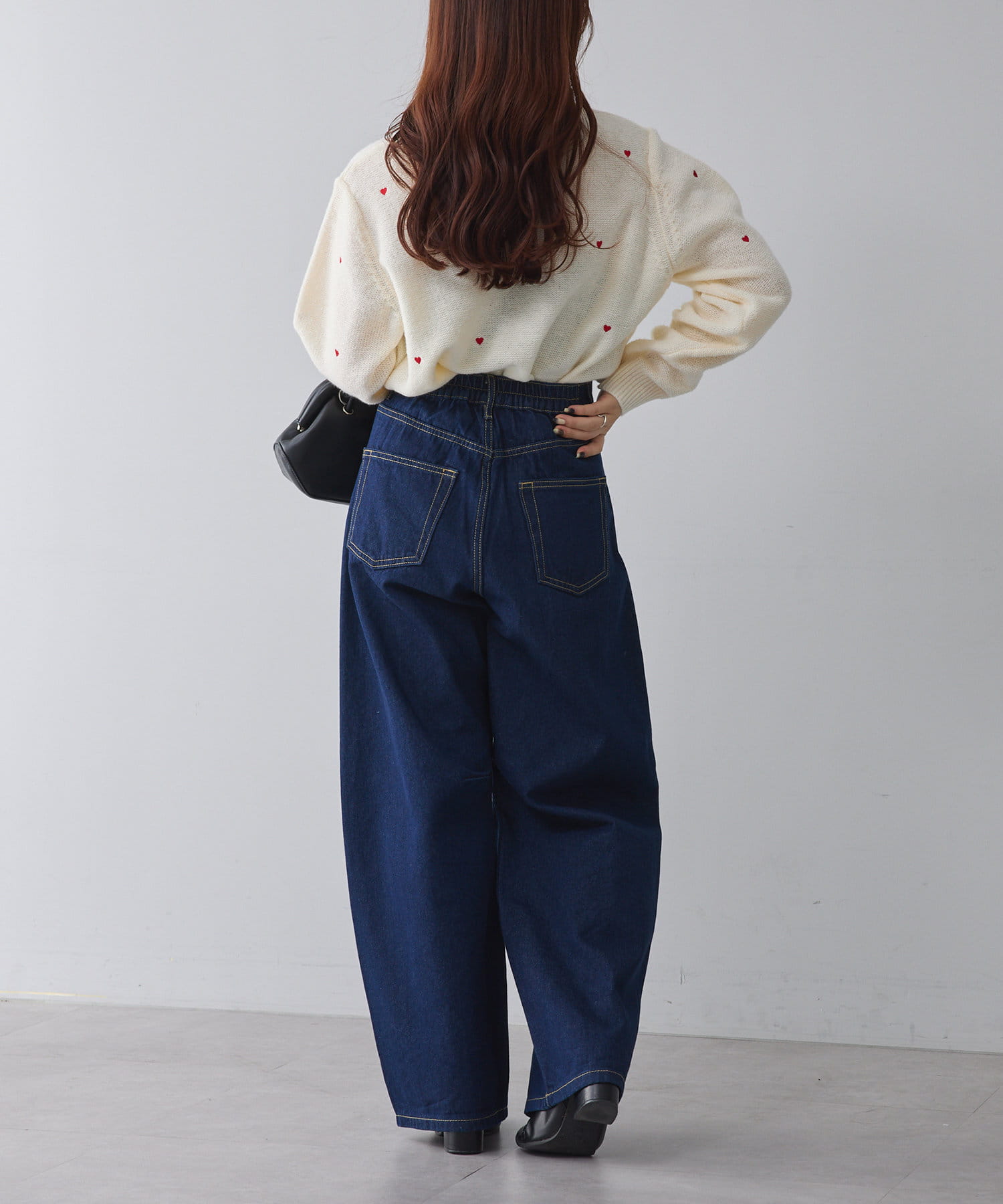 ・デニムを合わせるなら、ややワイドなタイプのものを選んで美脚に
