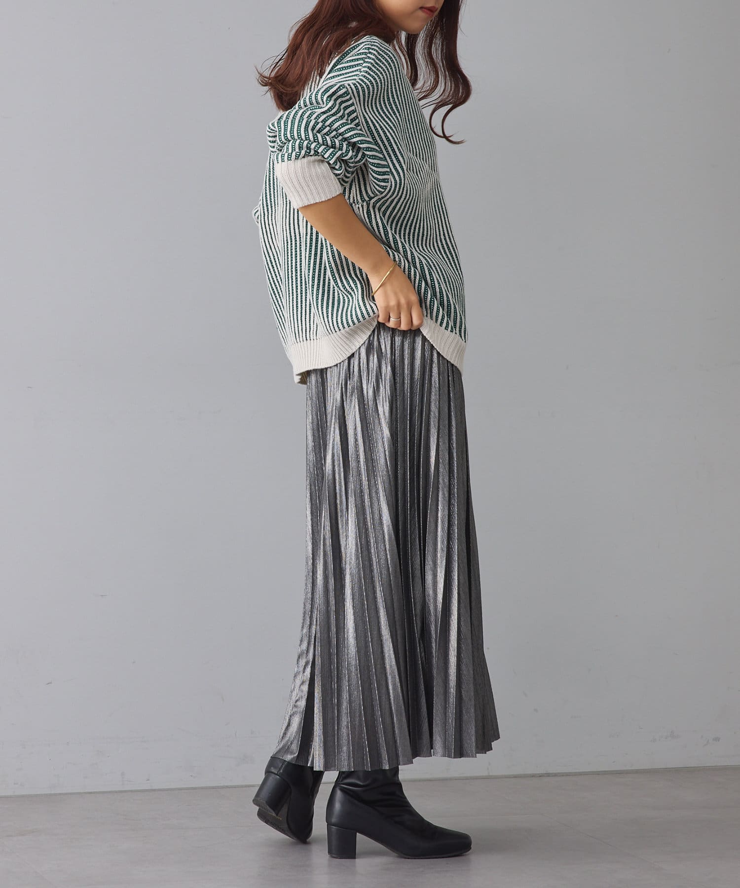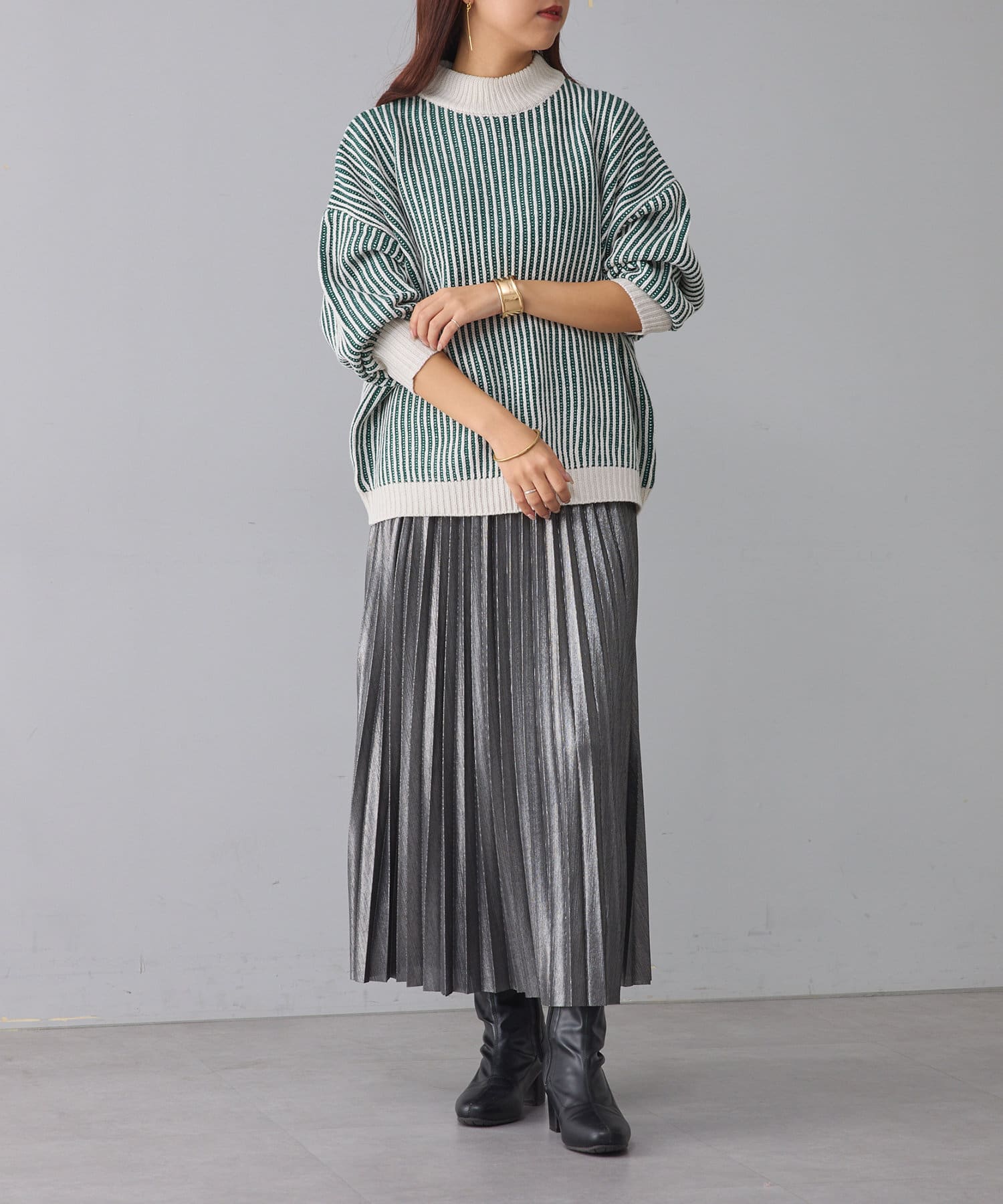 ・どんなシルエットのボトムとも相性が良い万能ニットです