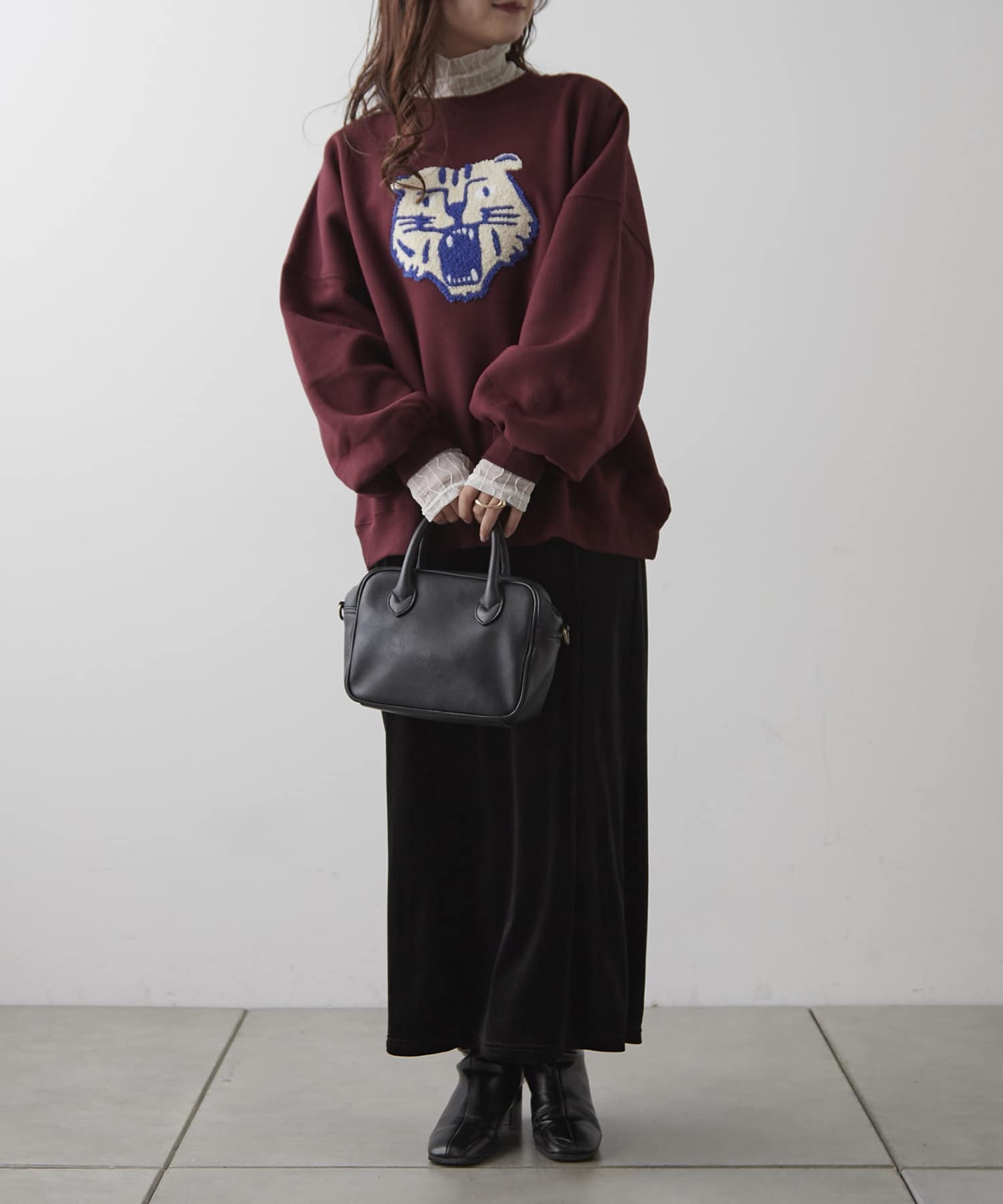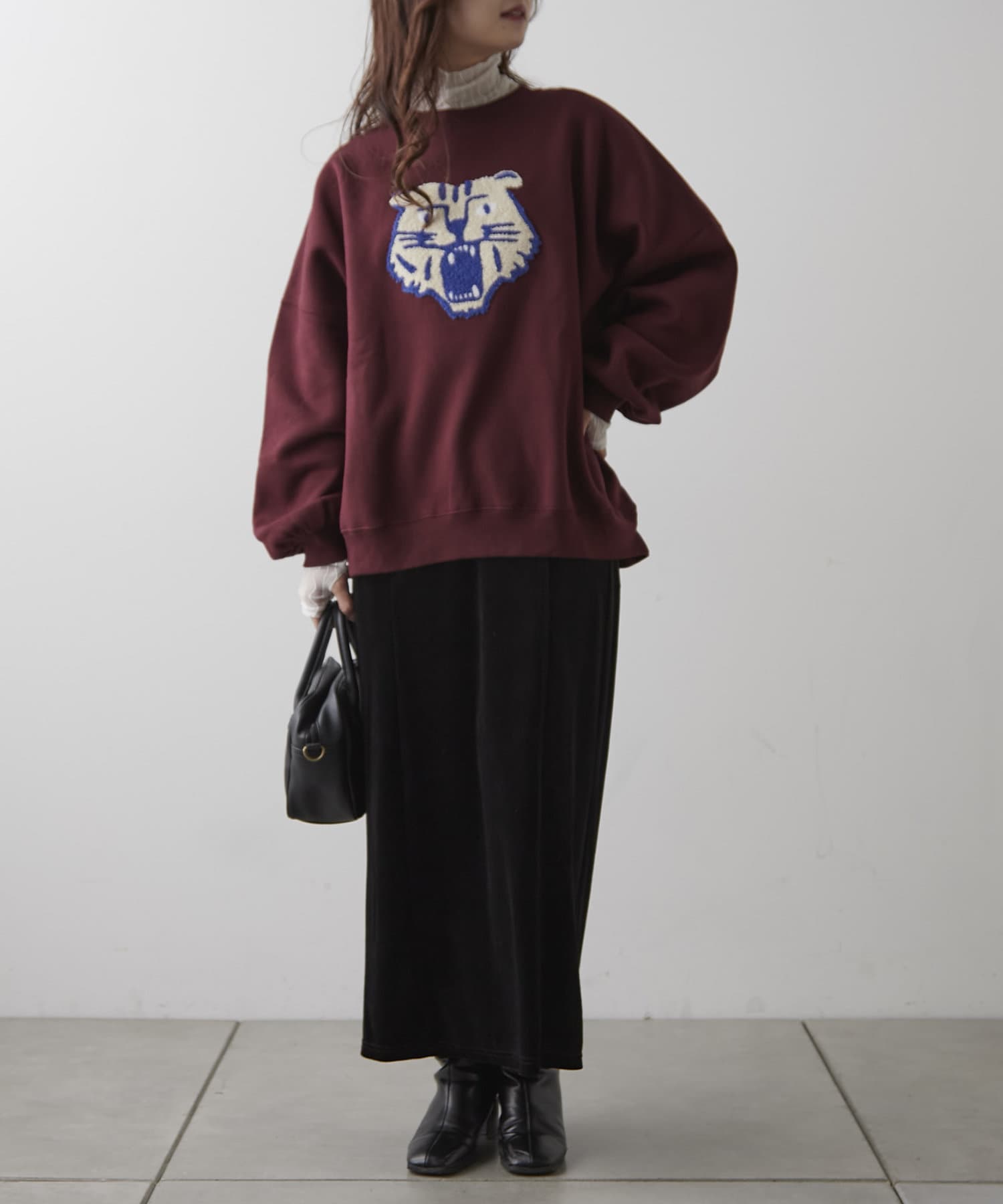 ・寒い時期はフリルハイネックなどを合わせたスタイリングも〇