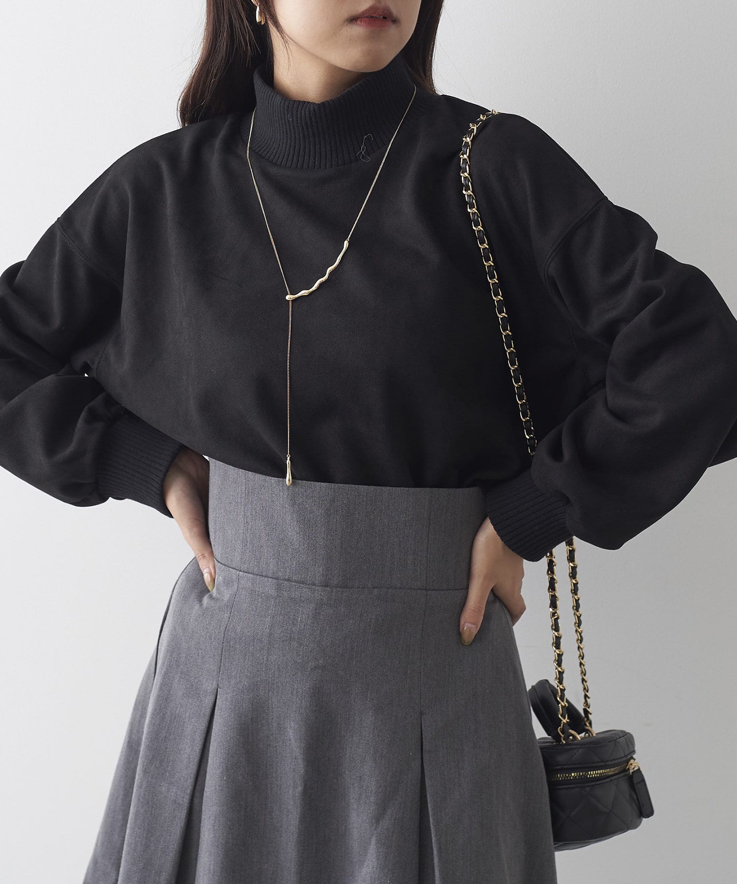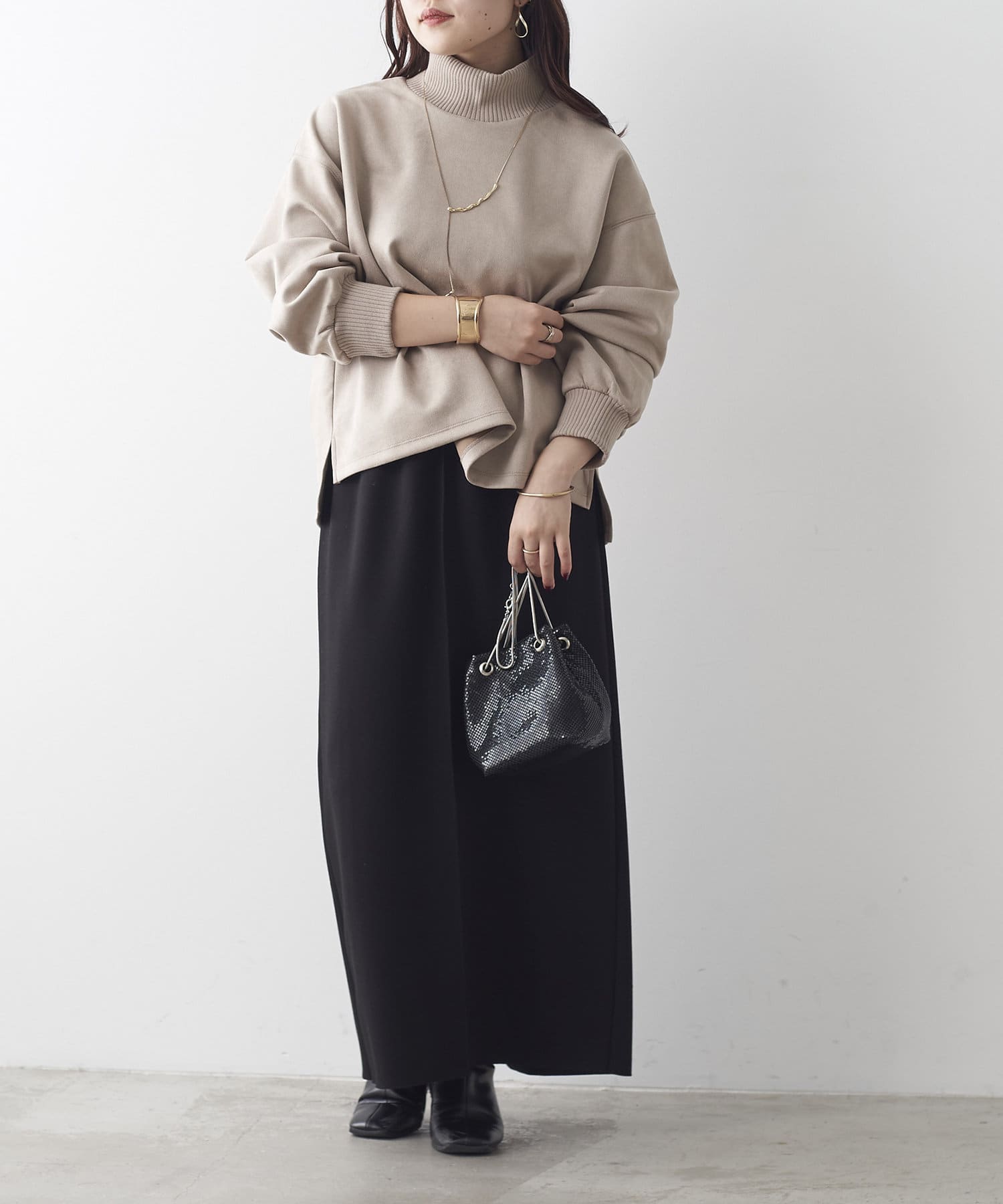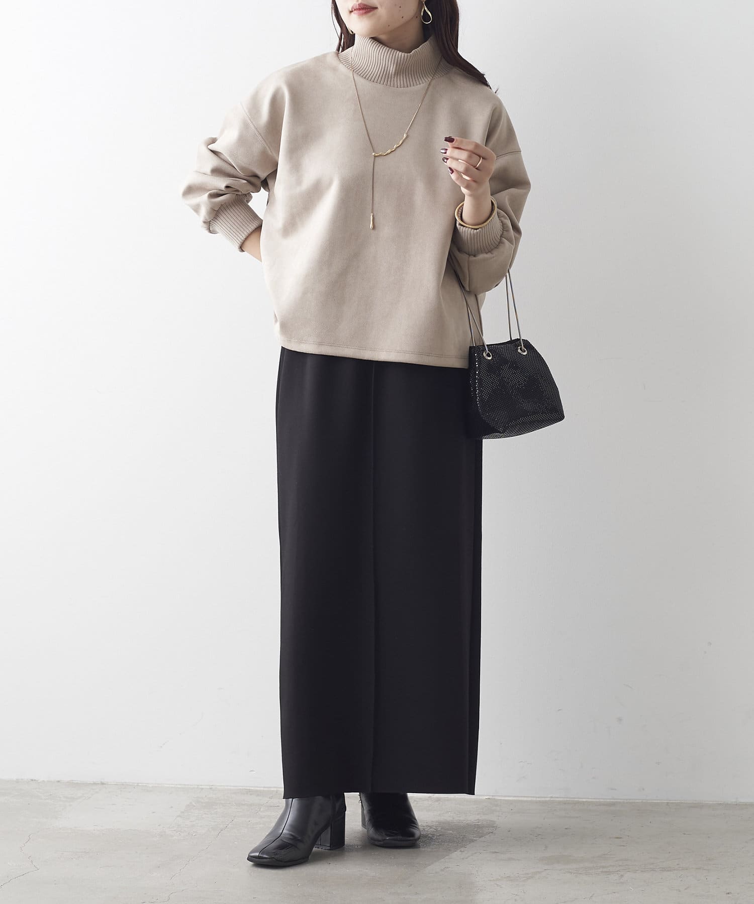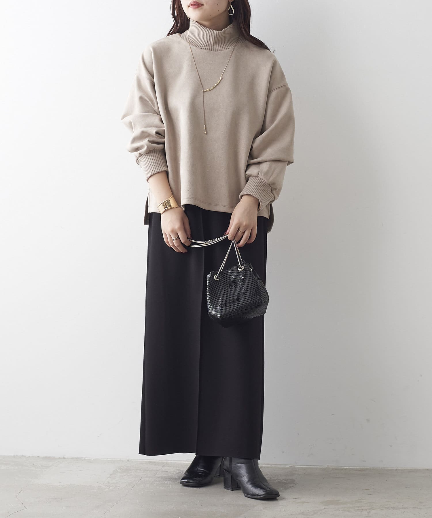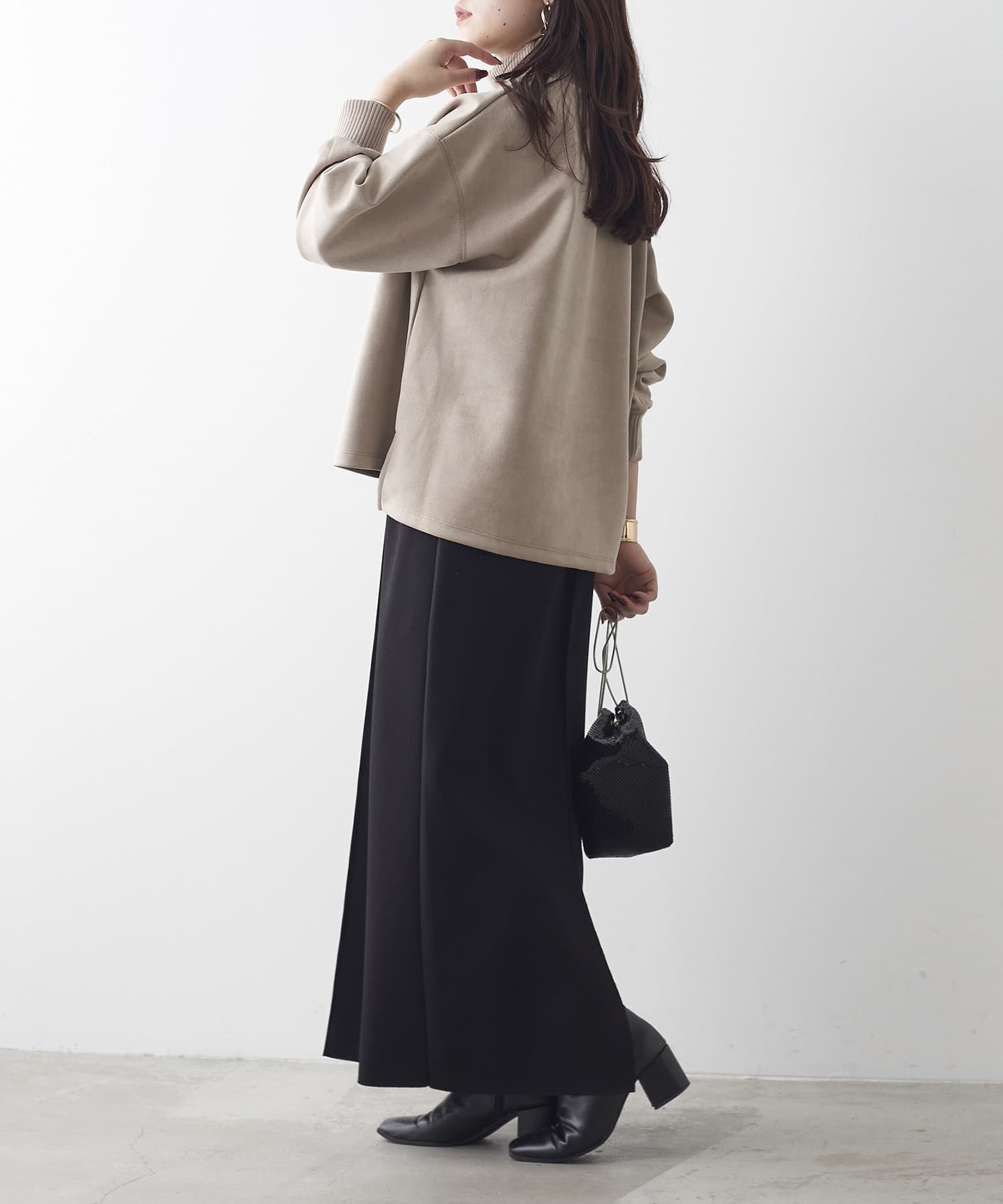 ・スエードポンチが上品見えするので、スラックスやロングスカートとのきれいめコーデもおすすめです。