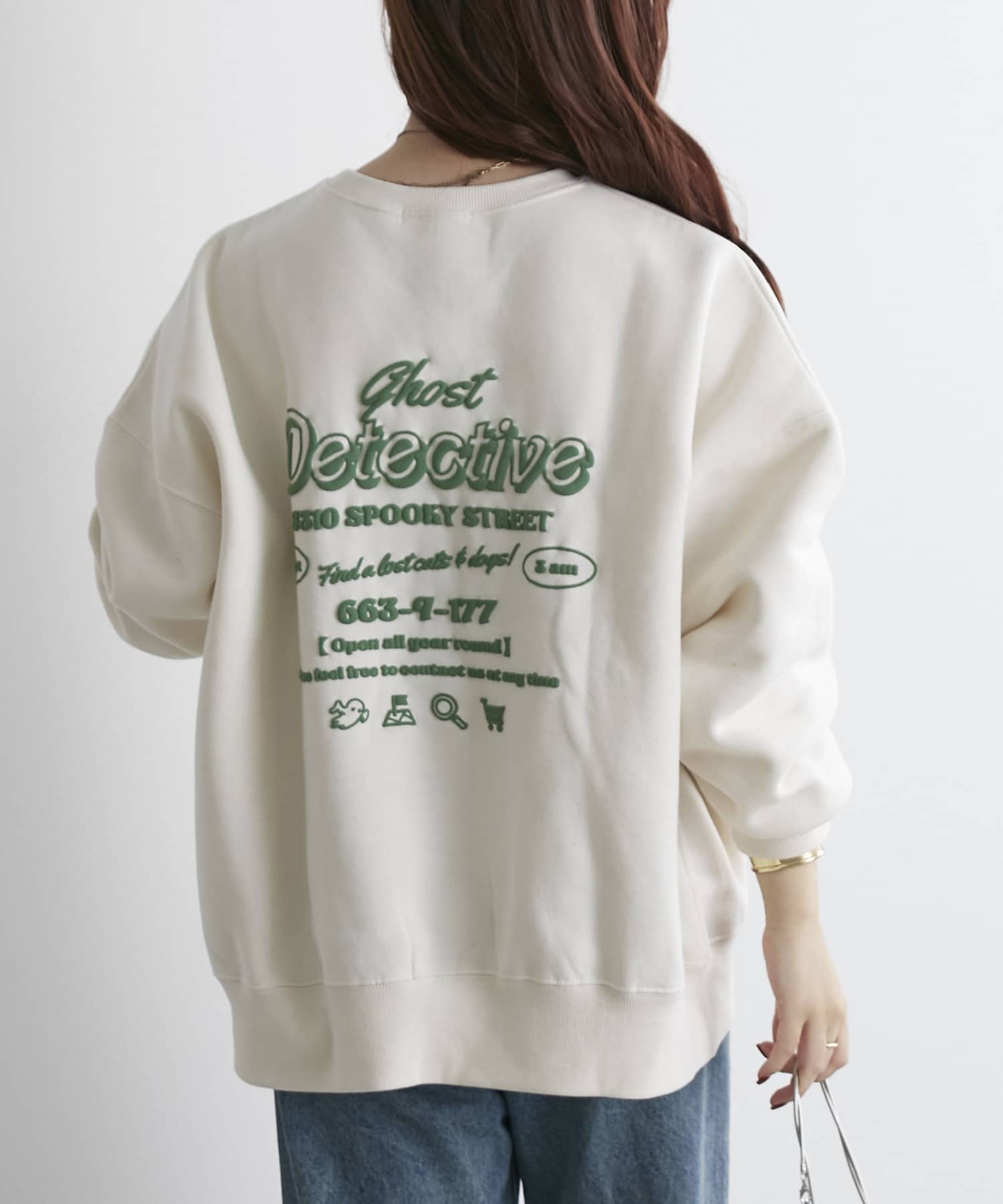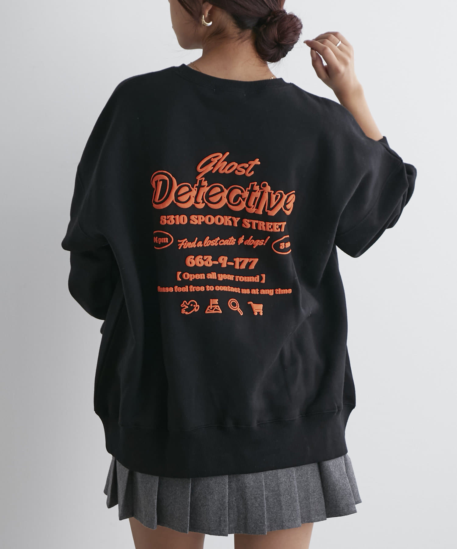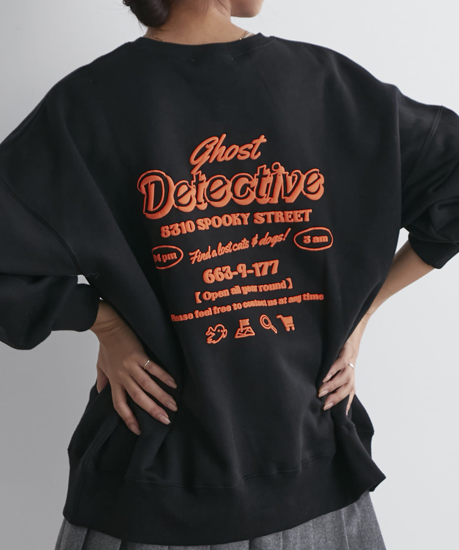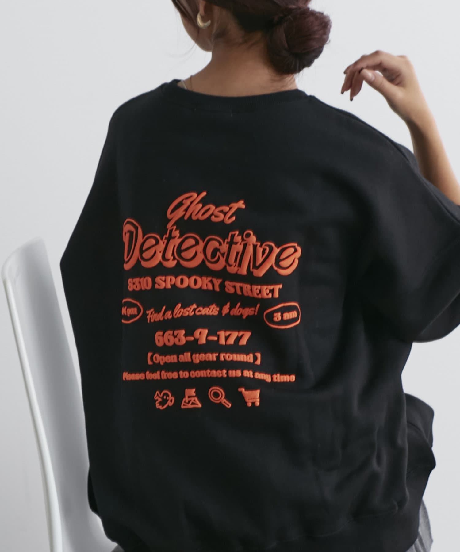 ・フロントにはさりげないおばけ刺繍とバックは目を惹く発泡ロゴプリントがコーデのポイントに